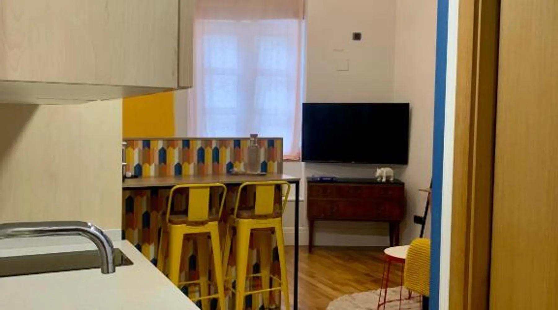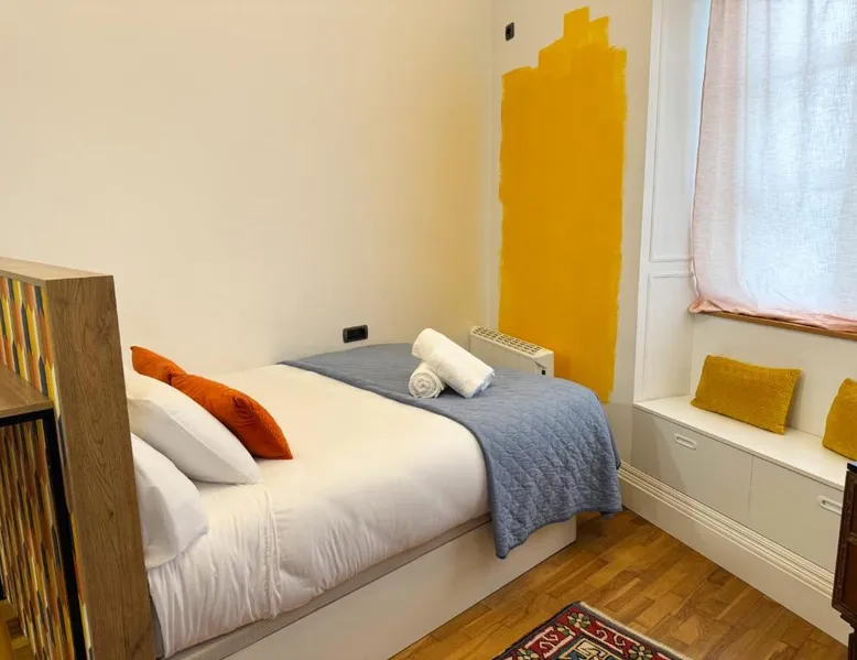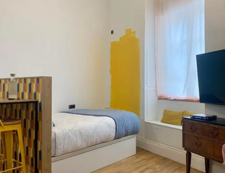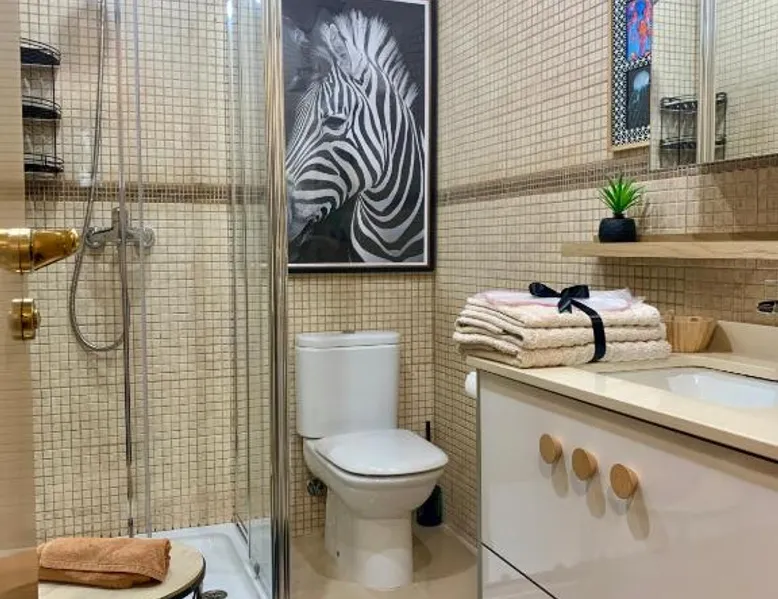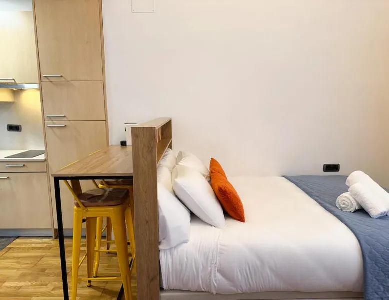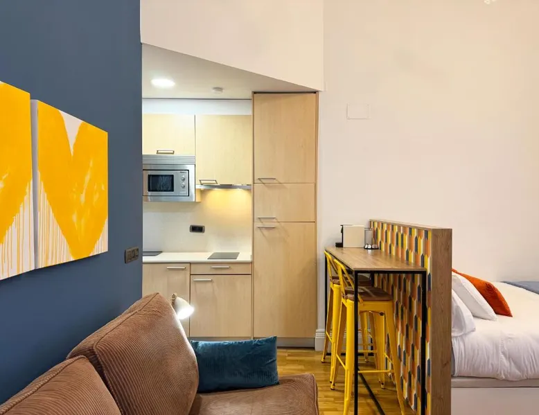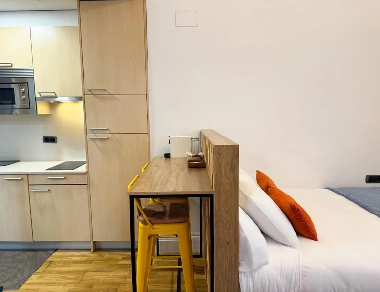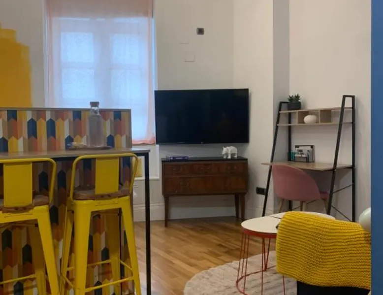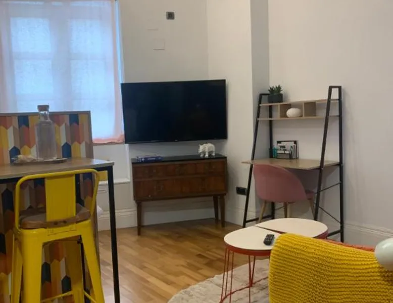 Comfortable Living Space: Labarta Estudio en Puerta del Sol con parking in Vigo offers a one-bedroom apartment with a fully equipped kitchenette, washing machine, and free WiFi. The property includes a patio with a view of a landmark, a dining area, and a work desk. Modern Amenities: Guests can enjoy streaming services, a coffee machine, microwave, and free toiletries. The apartment features tiled and parquet floors, a seating area, and a TV. Additional amenities include a hairdryer, electric kettle, and kitchenware. Prime Location: Located 5.6 mi from Vigo Airport, the apartment is a short walk from Estación Marítima de Vigo (5 minutes) and Centro cultural Caixanova (984 feet). Nearby attractions include Santa María Collegiate Church (2-minute walk) and Amnesty International (3-minute walk). Highly rated for its convenient and central location. The apartment has 1 bedroom and 1 bathroom with a shower and free toiletries. The well-fitted kitchen features a stovetop, a refrigerator, kitchenware and a microwave. Boasting a patio, this apartment also features a washing machine, a tea and coffee maker and a flat-screen TV with streaming services. The unit has 1 bed.