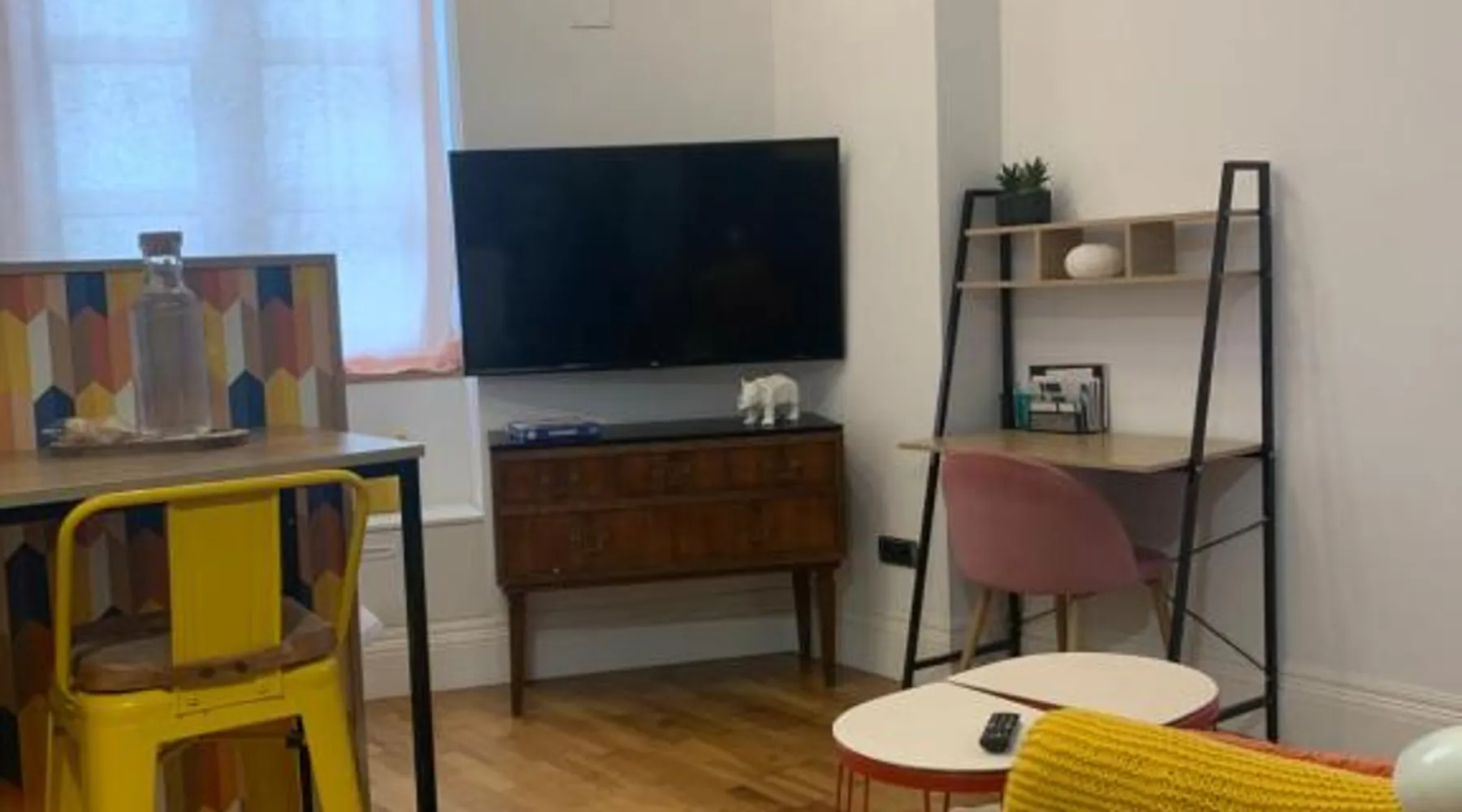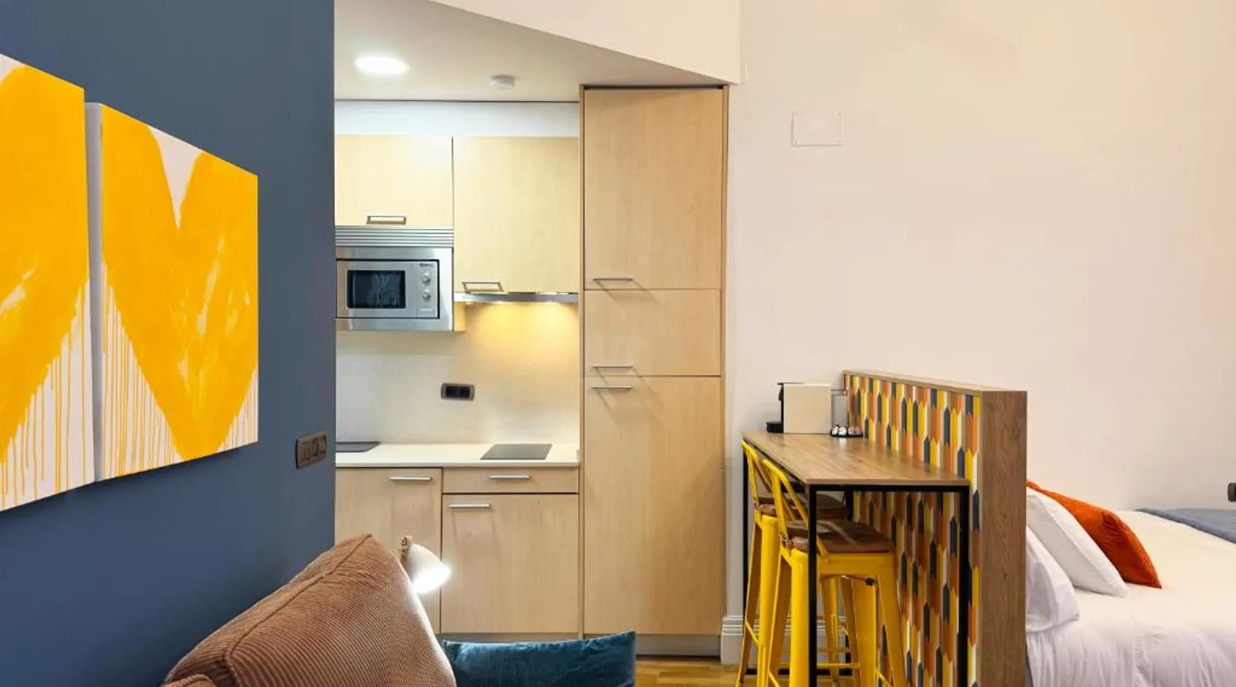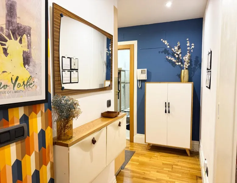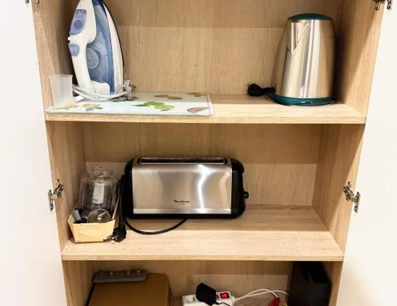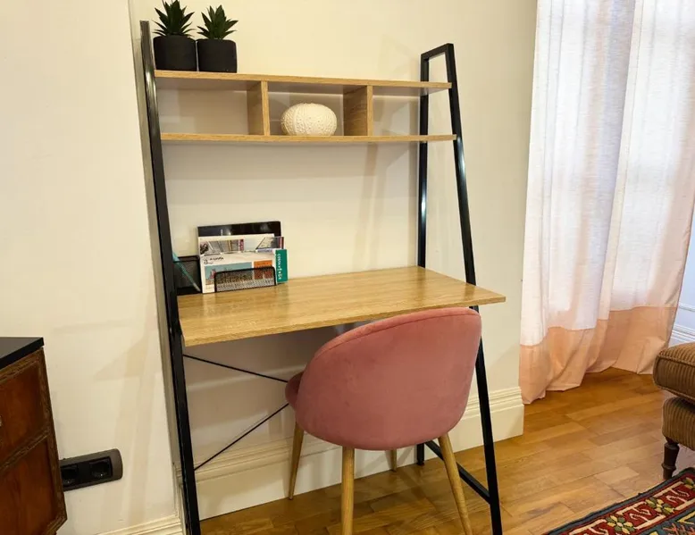 Comfortable Living Space: Labarta Estudio en Puerta del Sol con parking in Vigo offers a one-bedroom apartment with a fully equipped kitchenette, washing machine, and free WiFi. The property includes a patio with a view of a landmark, a dining area, and a work desk. Modern Amenities: Guests can enjoy streaming services, a coffee machine, microwave, and free toiletries. The apartment features tiled and parquet floors, a seating area, and a TV. Additional amenities include a hairdryer, electric kettle, and kitchenware. Prime Location: Located 5.6 mi from Vigo Airport, the apartment is a short walk from Estación Marítima de Vigo (5 minutes) and Centro cultural Caixanova (984 feet). Nearby attractions include Santa María Collegiate Church (2-minute walk) and Amnesty International (3-minute walk). Highly rated for its convenient and central location. The apartment has 1 bedroom and 1 bathroom with a shower and free toiletries. The well-fitted kitchen features a stovetop, a refrigerator, kitchenware and a microwave. Boasting a patio, this apartment also features a washing machine, a tea and coffee maker and a flat-screen TV with streaming services. The unit has 1 bed.