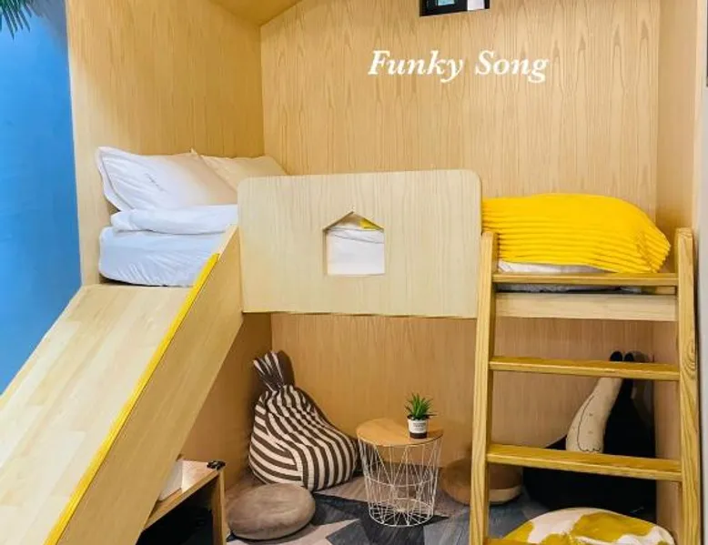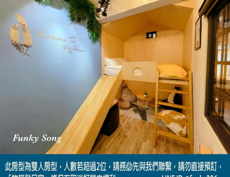 Comfortable Accommodations: Funky Song in Tainan offers family rooms with air-conditioning, private bathrooms, balconies, and sofa beds. Each room includes a TV, hairdryer, slippers, bath or shower, and a sofa. Essential Facilities: Guests enjoy free WiFi, a lounge, shared kitchen, bicycle parking, and luggage storage. Additional amenities include a balcony, sofa bed, and sofa. Convenient Location: Located 3.1 mi from Tainan Airport, the property is a 15-minute walk from Tainan Confucius Temple and 0.6 mi from Chihkan Tower. Nearby attractions include Neimen Zihjhu Temple (22 mi) and E-Da World (28 mi). Guest Satisfaction: Highly rated by guests for room comfort, Funky Song ensures a pleasant stay with comfortable accommodations. This air-conditioned double room includes a flat-screen TV with cable channels and a private bathroom. The unit offers 1 bed.