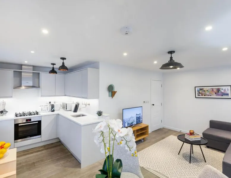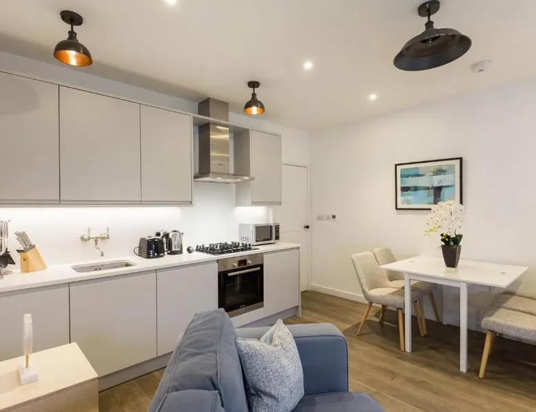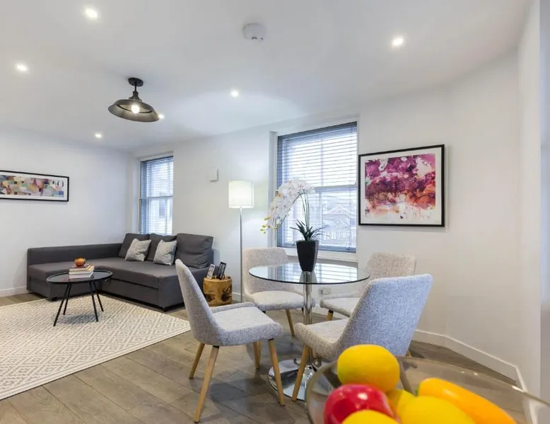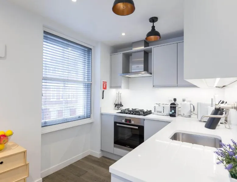 Prime City Center Location: Urban Chic - Rathbone is located in London city center, offering easy access to key attractions. Tottenham Court Road is a 7-minute walk away, while Oxford Street lies 4 minutes on foot. London City Airport is 9.3 mi from the property. Comfortable Accommodations: The apartment features a terrace, balcony, and patio, providing city views. Guests enjoy free WiFi, a fully equipped kitchen, and a private bathroom with free toiletries. Additional amenities include a washing machine, dishwasher, and TV. Convenient Services: Urban Chic - Rathbone provides express check-in and check-out services, ensuring a smooth arrival and departure. Family rooms cater to all travelers, and parking is available on-site. Local Attractions: Nearby attractions include Dominion Theater (1640 feet), Oxford Circus (less than 0.6 mi), and Center Point Tower London (6-minute walk). Boating is available in the surrounding area. This spacious apartment consists of 1 living room, 2 separate bedrooms and 1 bathroom with a shower and free toiletries. In the well-equipped kitchen, guests will find a refrigerator, a dishwasher, kitchenware and an oven. This apartment features a washing machine, flat-screen TV, city views, as well as chocolate for guests. The unit offers 3 beds.