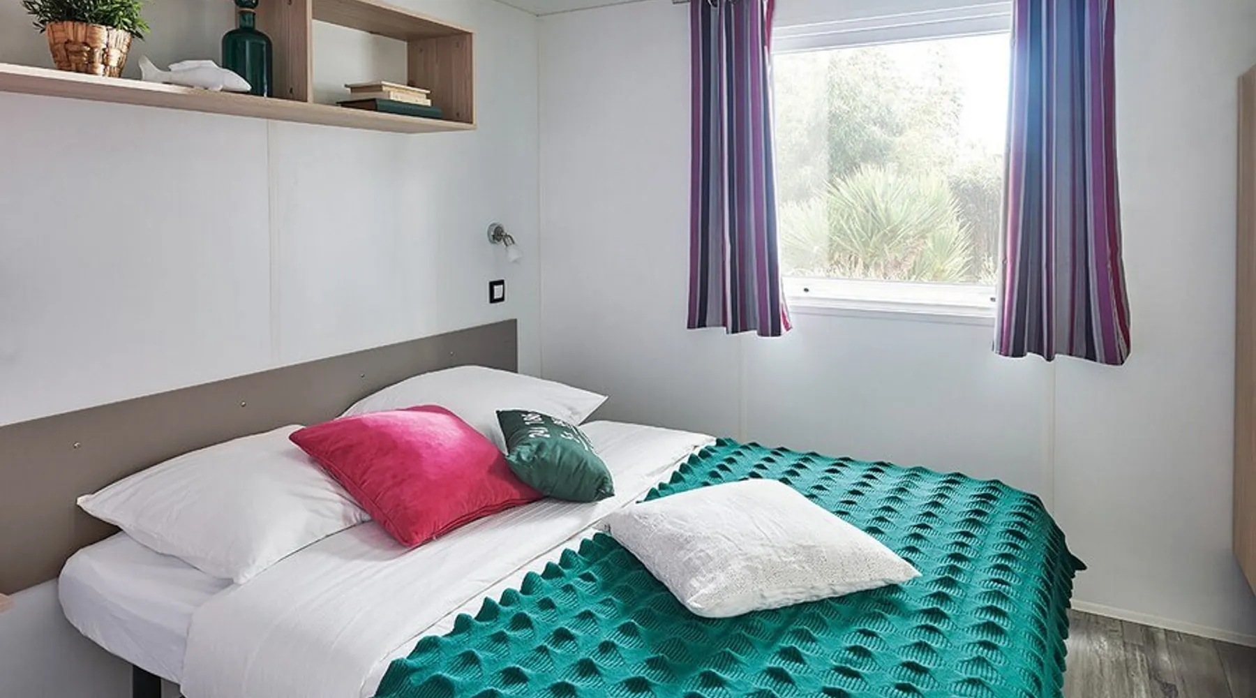 Welcome to maeva! of 24m² The space 3-room Glenan mobile home for 4/6 people of approximately 24m² with: Lounge area with a convertible bench Equipped kitchen area 1 bedroom with 1 double bed (140x190) 1 children's room with 2 single beds (80x190) 1 shower room Separate WC 1 raised covered terrace Note: The beds on the convertible bench are suitable for 2 people under 13 years old and prohibited for adults. The mentioned bed sizes are non-contractual. It is possible to have slight differences in sizes depending on the rental models. Bed arrangement and decoration may also vary. The mobile home includes: Television Gas hob, coffee maker, refrigerator, microwave, kitchen utensils and crockery adapted to the number of people in the accommodation 1 garden furniture Pillows and duvets provided for each bed (sheets optional) The residence: Discover the best of Brittany in a campsite where nature, relaxation and laughter mix. Located in Benodet, seaside resort, the campsite maeva Club La Mer Blanche**** welcomes you for a family holiday under the sign of joy, conviviality and wide spaces. Warm atmosphere, vitamin activities and guaranteed comfort: everything is designed to make you live an unforgettable summer. Facilities & leisure on site Take full advantage of your family vacations thanks to infrastructures designed for young and old: Water park with multi-track slides for slides full of sensations Indoor and heated swimming pool for any weather Heated paddling pool for the little ones, safely XXL play area with inflatable giraffe structure, mini climbing walls, slide, dome and city stadium Game room with flipper and pallet table for fun breaks Bicycle rental to explore the surroundings Multisport and city-stade terrains to spend as a team Animations At camping maeva Club La Mer Blanche, place with smiles and energy: Jumpies, exclusive dances that mix "jump" and "happy" to make you move with the family The Colorires, an ultra colorful sporting journey to live together (pigments, challenges, guaranteed laughter) Mizzy Club, the magical world of the smallest with our mascot Mizzy : songs, coloring, shows... Aquatonic, sports tournaments, petanque, to animate your days Friendly evenings: blindtests, karaokes, quizzes, themed meals, pancakes party, mussels-frites, giant paëlla... Useful services A simple holiday, without taking the lead: Restaurant bar with on-site service and take away Grocery shop for daily shopping Meal evenings organized all summer Concert halls to enjoy evening events Wi-Fi, baby kit, laundry, everything is available as an option according to your needs Discovery of the region/neighbourhood Benodet is the jewel of the southern Finistère, between sandy beaches, Breton ports and green countryside: Farniente on the beaches of Benodet or by the sea Excursions to the archipelago of Glénan, Concarneau, Quimper or Pointe du Raz Hiking on coastal trails, Breton markets and local heritage to discover Good to know Campsite open from 5 April to 20 September 2025 Mandatory bracelet to access the water park The campsite is equipped with infrastructure accessible to people with reduced mobility. If you would like more details, do not hesitate to contact us. This family establishment does not accept reservations including minor individuals unaccompanied by their parents to ensure a family atmosphere Dogs accepted (subject to conditions for a surcharge), parking available Why choose this campsite maeva Club ? 100% family friendly atmosphere Water area with heated swimming pools and slides Fun and original entertainment like the roommates Kids club with mascot Mizzy Practical services and on-site catering Location and access In Benodet, South Brittany, 4 km from the beaches Easy access by car via the N165 Quimper Train Station 20 minutes away, Quimper Cornouaille Airport less than 25 km Bicycle rental to explore the surroundings without car Now what? Pack your bags and let yourself be carried by the good maeva mood! Book your family holiday now at Maeva Club La Mer Blanche campsite. Enjoy Brittany as you have never seen: between swimming, games and shared laughter. Maeva welcomes you home. Other things to note You'll receive a voucher with all the information you need to hand over the keys once you book. Beach access: 3500m PRM access Wifi access: extra charge: €11/week (1 device) - to be paid on-site Children's playground Family entertainment: themed evenings, blindtest, lotto nights, quiz... - open from 05/04 to 02/05, 05/07 to 30/08. Sports activities: sports tournaments, pétanque competitions - open from 05/04 to 02/05, 05/07 to 31/08. Pets allowed: (outside category 1/2) that are less than 25kg Security deposit (extra) Baby chair: €15/week - upon reservation and availability - to be paid on-site Children's club: Mizzy club 4/8 and 9/12 years old - open Monday to Friday - open from 05/04 to 02/05, 07/07 to 30/08. Bread Deposit: July/August only Grocery store July/August only Bed linen: €12/week/single bed - €14/week/double bed - by reservation (15 days before arrival) and availability - to be paid on site Crib: €15/week - upon reservation and availability - to be paid on-site End of stay cleaning: optional - €80 (2 bedroom accommodation) - €90 (3 bedroom accommodation) - to be paid on site Animation level: 63 Number of stars: 4 Water Park: Water slides open from 05/07 to 31/08 ( times to check on site) Bocce ball Ping Pong: Snowshoes not provided Pool: outdoor - open from 05/04 to 11/05, from 28/05 to 01/06 and from 05/07 to 30/08 (times to be consulted on site) Indoor pool: and heated paddling pool - open all season - access with bracelet during opening hours (check on site) Plancha: €5/day (minimum 4 days) - upon reservation and availability - to be paid on-site Possibility of bike rental: see rates and rules on site Near trade: first businesses 3 km away Ecological fee: contribution to household waste: from €0.55/day/person (subject to change) - to be paid on-s