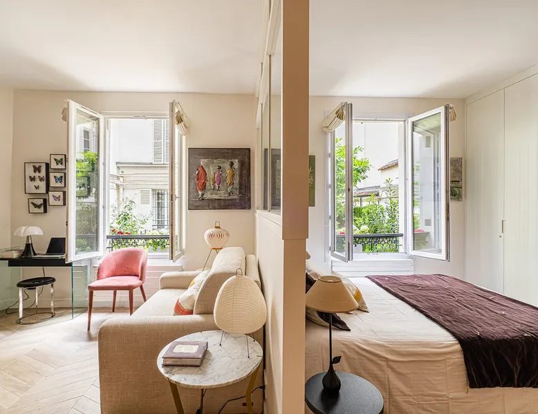 3 minutes from the Champs de Mars / Eiffel Tower, a 35 m2 haven of peace on a wooded, flowery, quiet and safe courtyard (caretaker). Lively neighborhood 1 minute from Rue Cler (permanent market). Restaurants, terraces, etc. Charming studio 6 minutes' walk to the other Charming Apartment Eiffel Tower/Les Invalides". Registration Details 7510705078932