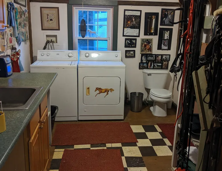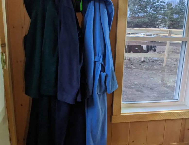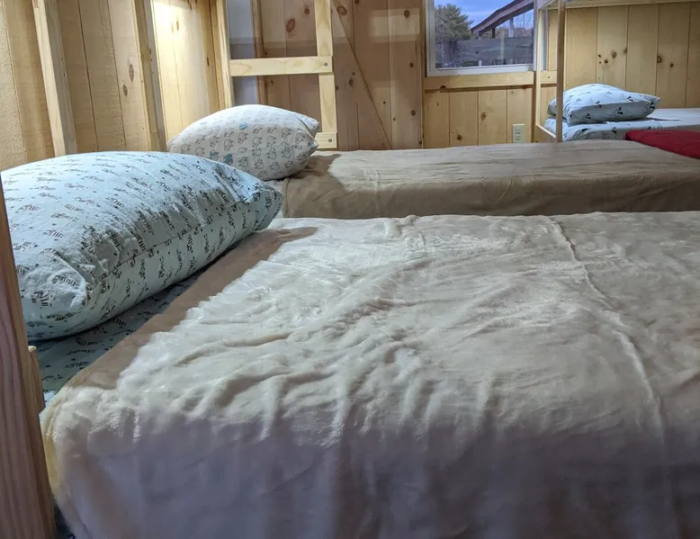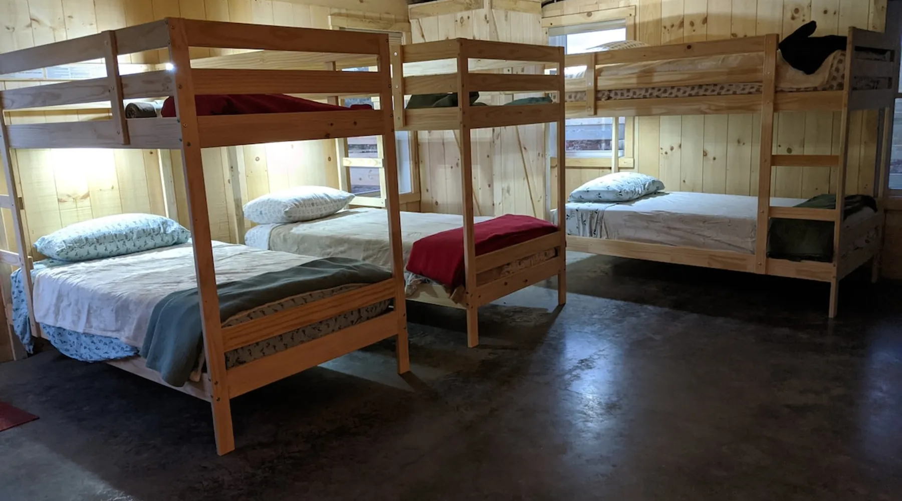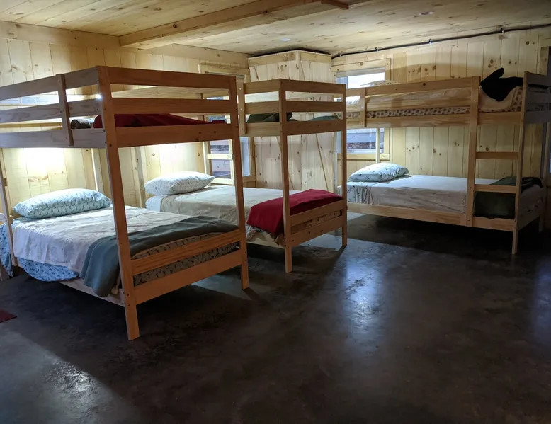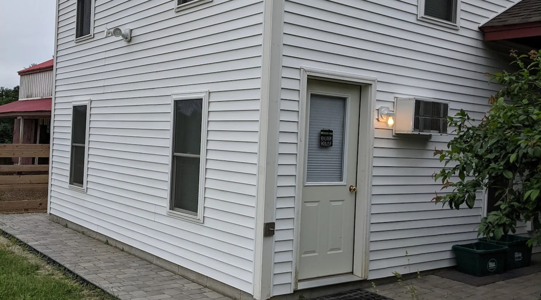 Welcome to the bunkhouse! We're a low cost, short term shared lodging like a hostel for a max of 6 male/female guests. Travel workers stay for months, vacationers for weekends with guests around the world! Built in 2019 with modern amenities, the bunkhouse is attached to the North Road Farm horse riding school. The historic farm built in 1805 is owned and managed by Airbnb superhost and horse instructor Jan. She and husband Rich live on the farm available to you, our guest to feel at home. The space The bunkhouse is one big shared main room 18' x 22', expanded off the horse equipment room and bath room. The ell is attached to the horse barn. Rich & I live in the main house attached to the barn through the open garage where the tractor, boat and upstairs apartment tenant's Dodge van. Finished entirely in wood, it smells like fresh cut pine trees with big windows on three sides. The bunk beds are natural pine also complementing the wood walls and ceiling. The space is clean & spacious. A/C cool in the summer. Warm in the winter with radiant heat from the floor. Catch inspiring sunrises and breathtaking sunsets. Outdoor private patio hanging & chilling will be finished in the spring. You have a private entrance, so come and go as you please. Be considerate of the tenant who lives above in the apartment. Have fun, but no wild parties! If you break the rules, you will asked to leave immediately. Quiet time 10 pm to 8 am. Guest access Guests have full access to the shared bunkhouse room, work/desk table, refrigerator, microwave, shower, sink, toilet, washer/dryer. Other things to note You may hear the horses moving about during the night. They are nocturnal creatures, sleeping no longer than 4 hours at a time Not deep long sleepers like humans. Feel free to bring carrots or apples as treat to give when barn staff is around to make sure your fingers don't get mixed up with the treats ;-)