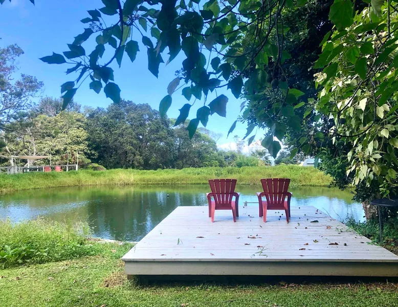 This hidden gem, nestled amongst lush greenery in Paauilo Mauka, offers a peaceful refuge during your Big Island adventures. Wake up to the sounds of birds in the surrounding native O’hia, Kukui and Koa trees, relax in our Japanese-style wood soaking tub, take a cold dip in our pond or lie on the grass in the sun. You might even want to get the firepit going in the evening, listen to the tree frogs and crickets sing, and stargaze in the 1 acre backyard. The space Our restful two-bedroom Garden Apartment is nestled on the ground level of the multi unit Main House at Keolamauloa Homestead. This historic residence also hosts the upstairs Treetop Apartment, and street facing Storefront Apartment. While our accommodation is simply outfitted, it will feel like a cool and calming retreat. It includes a private entrance, a fully equipped kitchen, and a bathroom that looks out on ferns and the pond below. The warm and comfortable living room is stocked with books of Hawaiian cultural interest and includes a propane fireplace for cool evenings and a pull-out couch should our guests need additional sleeping arrangements. Most of our visitors come to explore the natural beauty of the Big Island and enjoy our homestead as a restful basecamp. Keolamauloa will welcome you home, whether you have taken a beautiful walk in our rural neighborhood, traveled a few miles to Kalopa State Park and our historic Honoka’a town, or taken a day trip to Kohala and the Kona Coast or to Hilo and the Volcano. Keolamauloa Homestead is located 37 miles north of Hilo, at the cool 1800 ft. elevation in Paauilo Mauka. A historic family property, it was originally developed in the 1930’s as a coffee farm. As a center of community life, this homestead included a family-run general store. Japanese movies were shown in the garage to homestead families and friends. The strength and resourcefulness of this family have inspired those who followed. Today, our family works and plays on this small family farm and share a vision of sustainable living. In addition to our work as educators in local schools, Keith and I own and operate Manukai Designs from our workshop/studio. Guest access Guests have full access to the top 1 acre of our 4 acre homestead. Shared spaces include our large pond, upper sun deck, backyard fire pit, outdoor dining, hot tub and a bar-b-que area. You may access the hotub from 8am-9pm. Keith and I live with our teenage daughter on the homestead in a separate cottage, and while we are happy to answer any questions if you see us, we will respect your privacy. We are full time educators during the week, and our evenings and weekends are filled with working on the homestead, working in our art studio, relaxing or surfing. Other things to note Our vacation rental has been in operation since 2006, owned by my mother Kaye, with "boots on the ground" hosting by Keith and I (as we live on the homestead.) She received excellent ratings on AirBnB, and Keolamauloa was recommended in Lonely Planet. However, we all decided to put the rental on hold during 2020 and most of 2021 due to the pandemic. Beginning September 2021 , Keith and I took over all aspects of managing the rental, which required us to create a new Airbnb account. So... while we have few reviews, please be assured we are well versed in excellent customer service. We have enjoyed welcoming guests back to Keolamauloa!