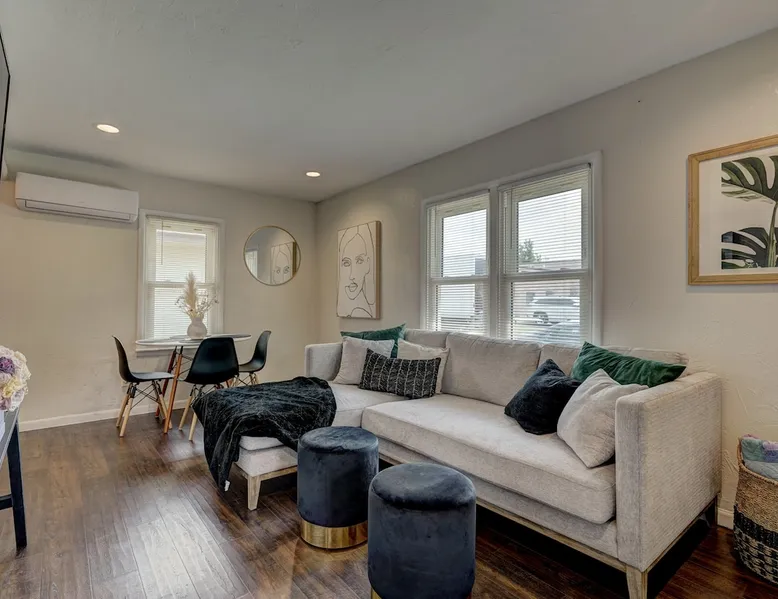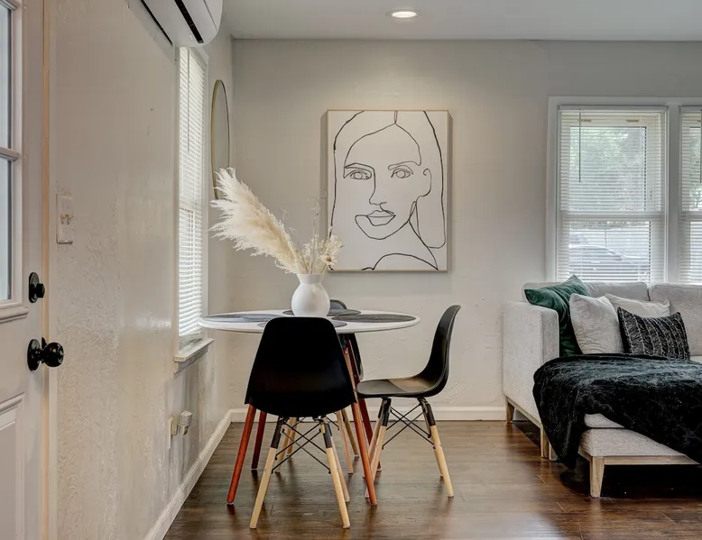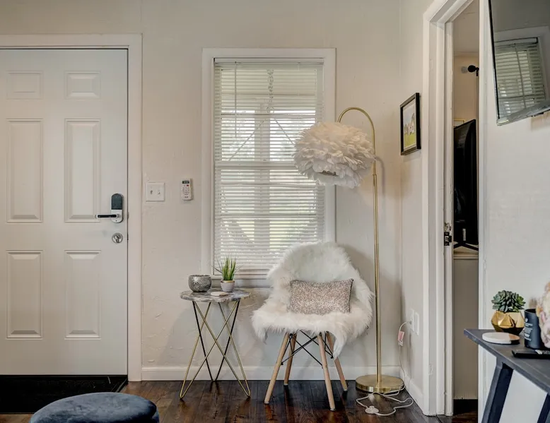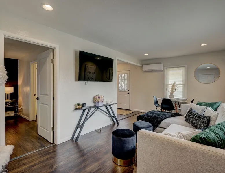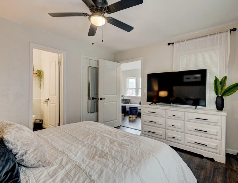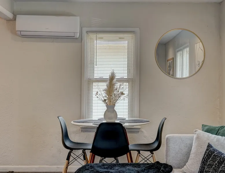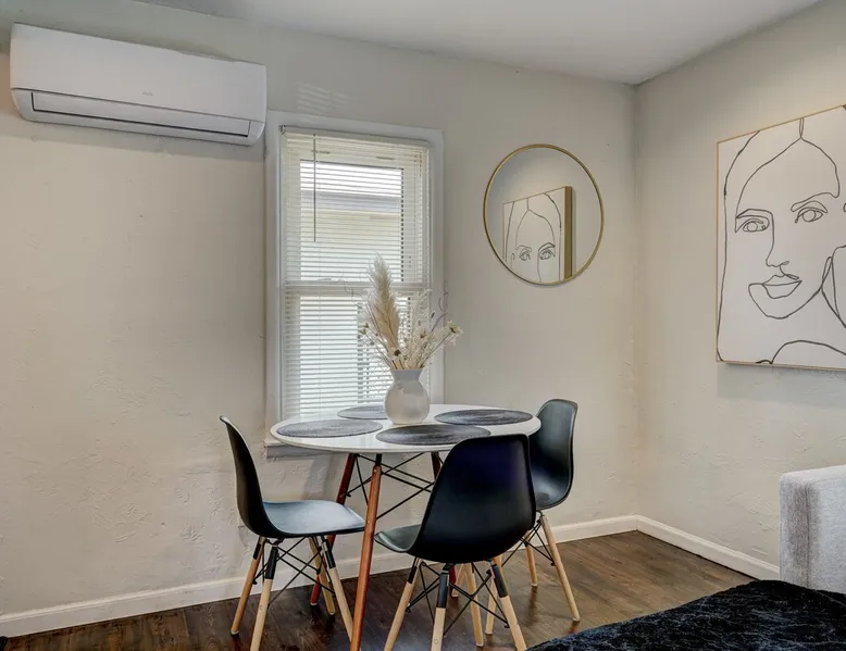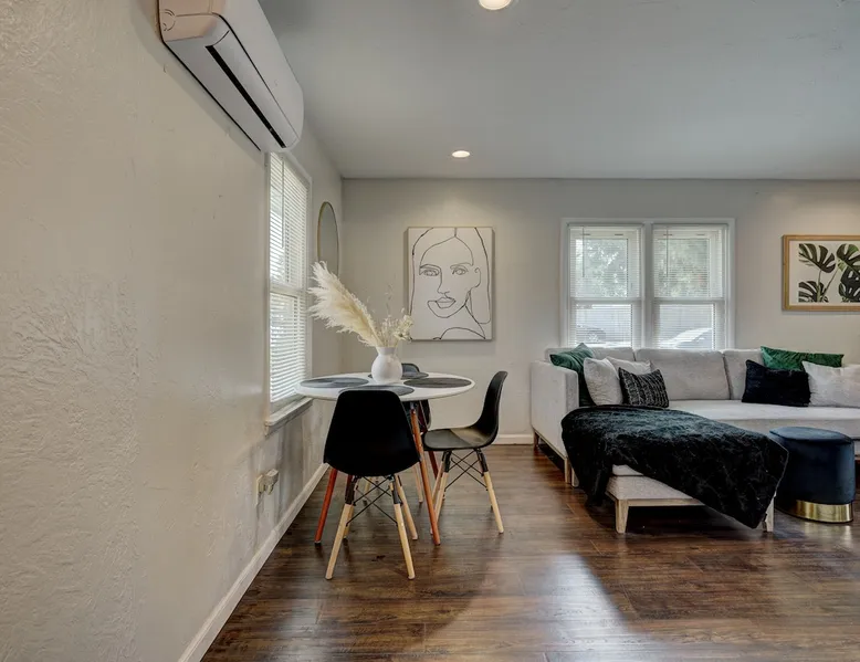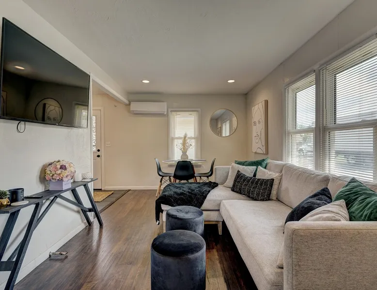 For business or for pleasure, enjoy all OKC has to offer from this updated 1 bedroom one bathroom home! Located in the heart of Oklahoma's fast growing metro, this home features a full kitchen, free street/driveway parking, and is close access to all major highways. A quiet neighborhood, yet walking distance/short drive to some of OKC's most popular restaurants and bars! Come see what this beautiful city has to offer! The space The bedroom features a comfortable queen bed, two convenient side tables, and a dresser for your belongings. You'll also enjoy the added convenience of a small walk-in closet and an attached bathroom, ensuring your privacy and comfort. As you step beyond the bedroom, you'll be greeted by a quaint living room and dining area, thoughtfully designed for relaxation and enjoyment. The fully functional kitchen, complete with a pantry, provides all the necessary amenities for your culinary adventures. Please note that the laundry facilities are detached from the home and are shared with 2 guests at the neighboring property.