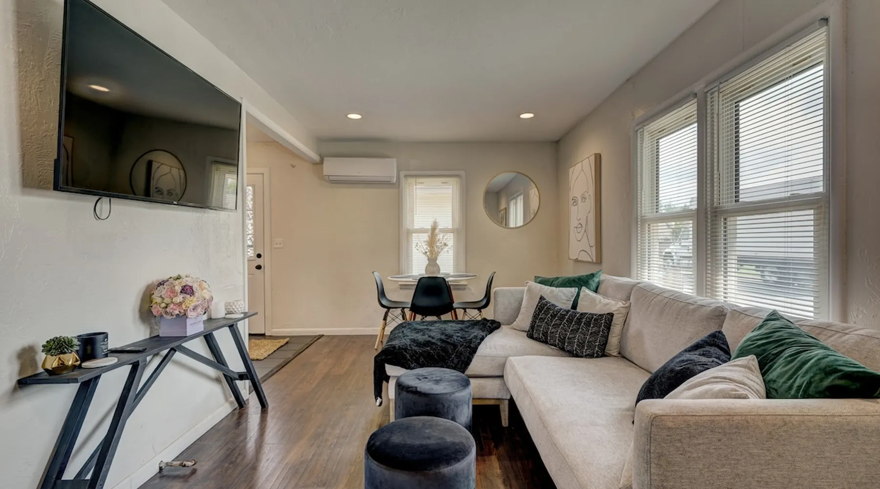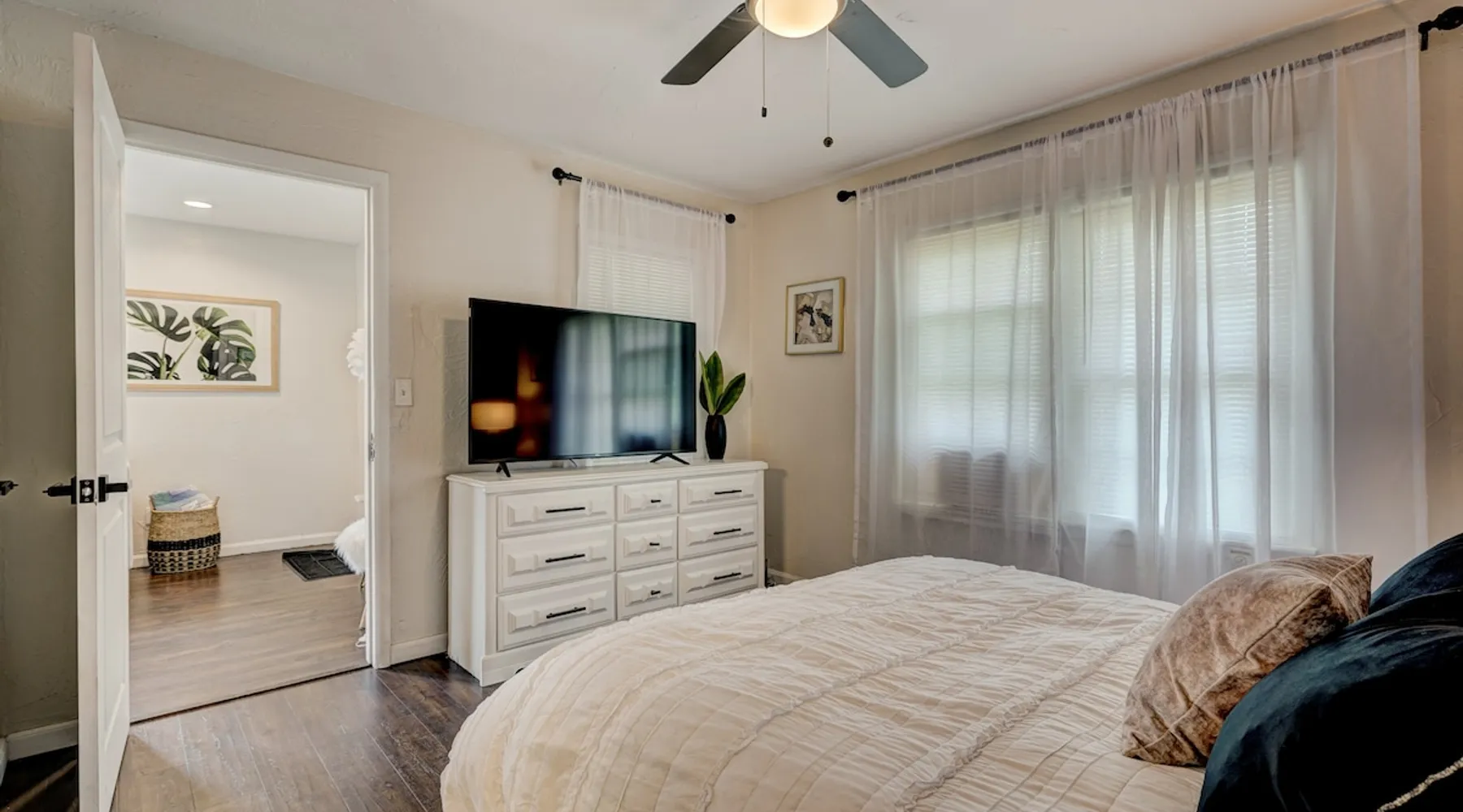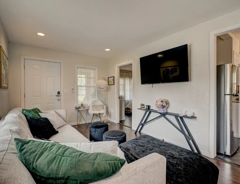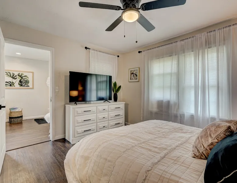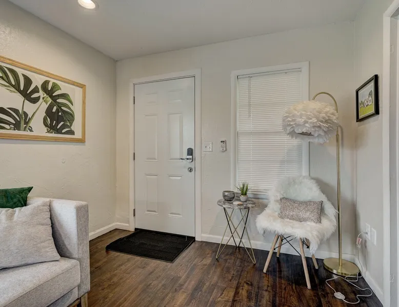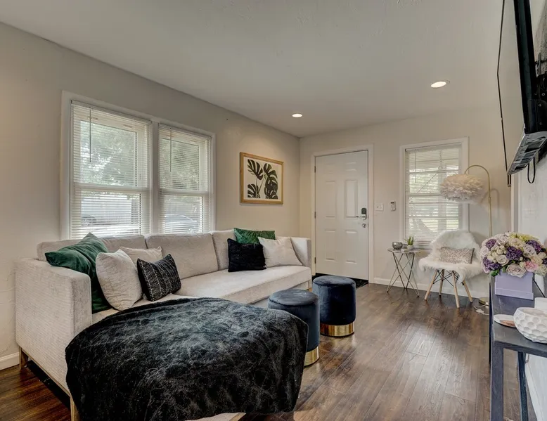 For business or for pleasure, enjoy all OKC has to offer from this updated 1 bedroom one bathroom home! Located in the heart of Oklahoma's fast growing metro, this home features a full kitchen, free street/driveway parking, and is close access to all major highways. A quiet neighborhood, yet walking distance/short drive to some of OKC's most popular restaurants and bars! Come see what this beautiful city has to offer! The space The bedroom features a comfortable queen bed, two convenient side tables, and a dresser for your belongings. You'll also enjoy the added convenience of a small walk-in closet and an attached bathroom, ensuring your privacy and comfort. As you step beyond the bedroom, you'll be greeted by a quaint living room and dining area, thoughtfully designed for relaxation and enjoyment. The fully functional kitchen, complete with a pantry, provides all the necessary amenities for your culinary adventures. Please note that the laundry facilities are detached from the home and are shared with 2 guests at the neighboring property.