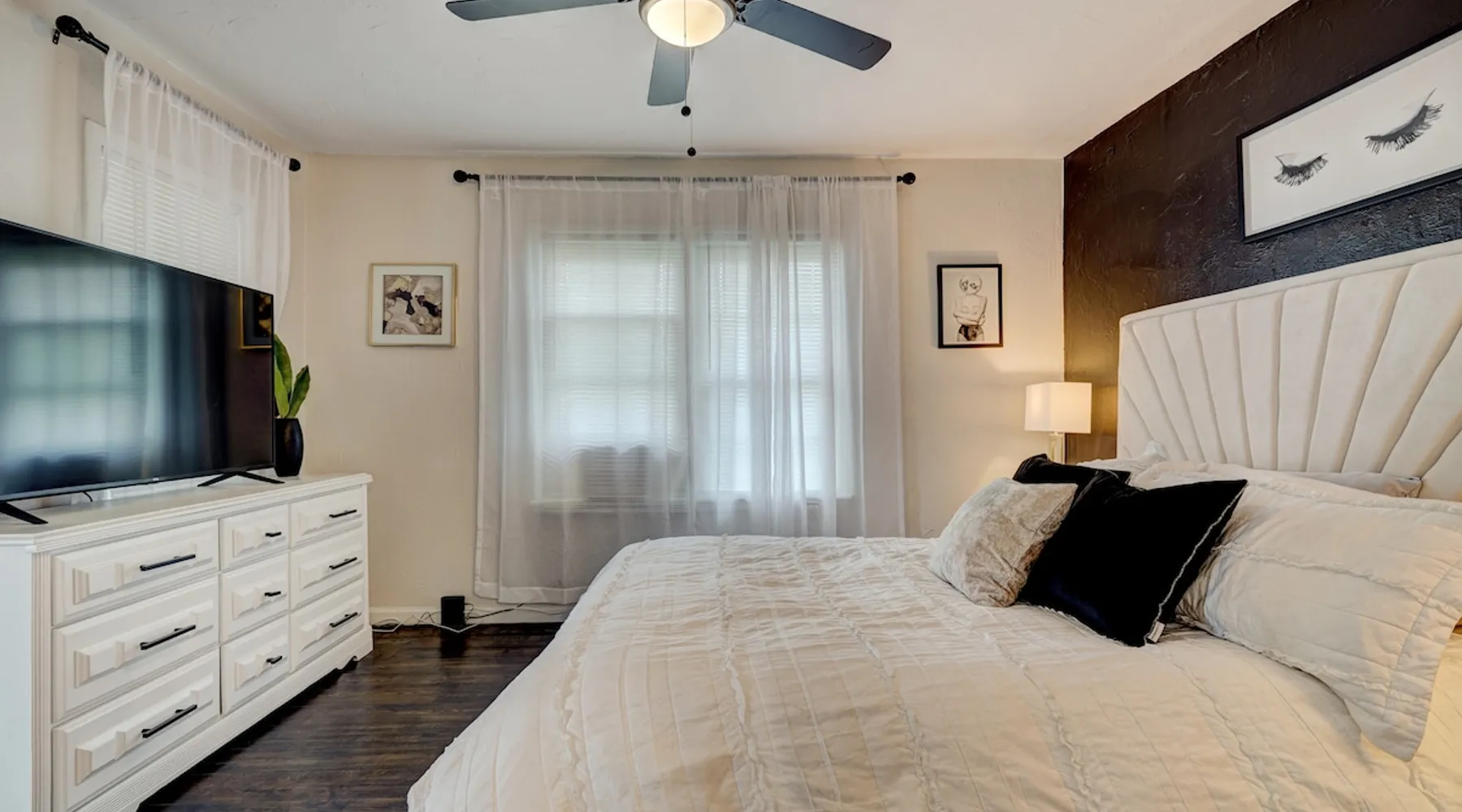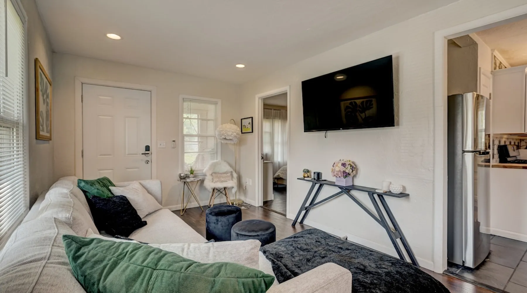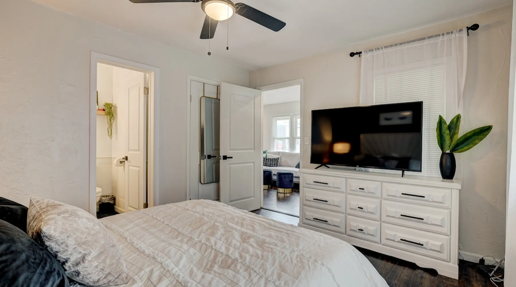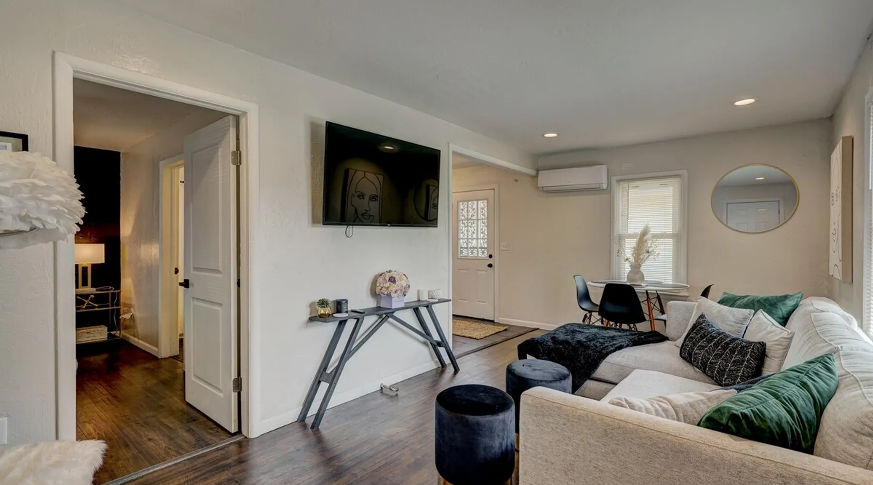 For business or for pleasure, enjoy all OKC has to offer from this updated 1 bedroom one bathroom home! Located in the heart of Oklahoma's fast growing metro, this home features a full kitchen, free street/driveway parking, and is close access to all major highways. A quiet neighborhood, yet walking distance/short drive to some of OKC's most popular restaurants and bars! Come see what this beautiful city has to offer! The space The bedroom features a comfortable queen bed, two convenient side tables, and a dresser for your belongings. You'll also enjoy the added convenience of a small walk-in closet and an attached bathroom, ensuring your privacy and comfort. As you step beyond the bedroom, you'll be greeted by a quaint living room and dining area, thoughtfully designed for relaxation and enjoyment. The fully functional kitchen, complete with a pantry, provides all the necessary amenities for your culinary adventures. Please note that the laundry facilities are detached from the home and are shared with 2 guests at the neighboring property.