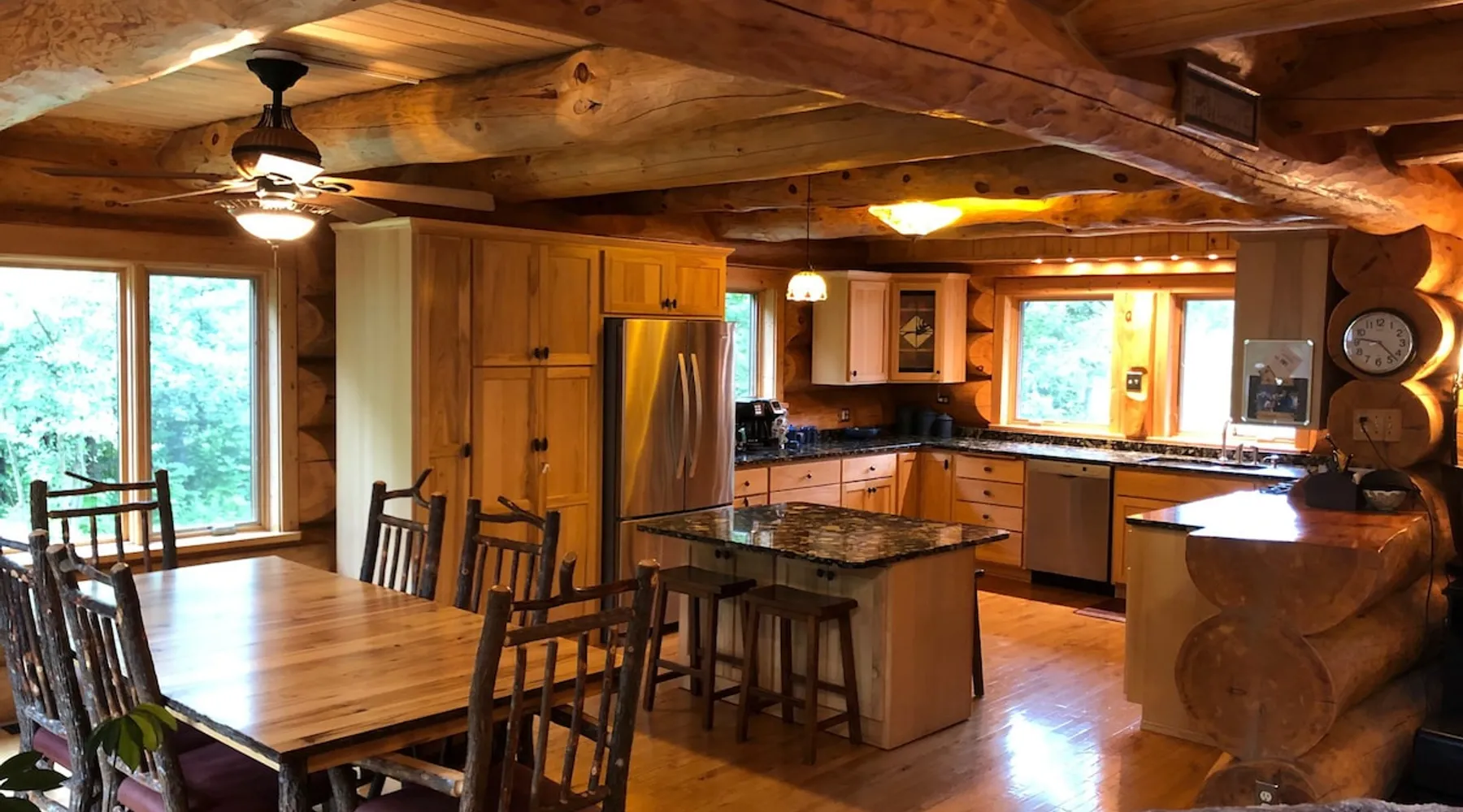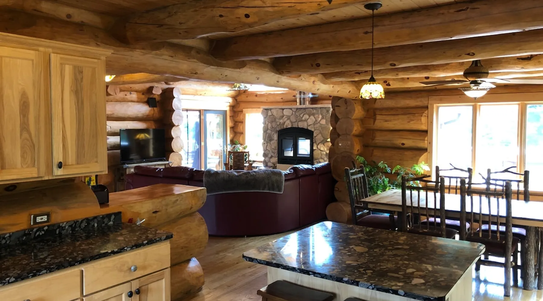 Come enjoy our handcrafted Pine Log lodge! The entryway opens to a spacious living room boasting a newly added indoor/outdoor fireplace and a fully equipped kitchen. There’s an en-suite bedroom on the main floor and two large en-suite bedrooms on the 2nd floor, one also has a jacuzzi. Booking 7-10 guests includes the guest loft with the 4th bedroom, 2nd kitchen, laundry & deck. Pricing for each guest above 6 is an additional per person fee. Please note children under 13 or pets are not allowed. The space The Lodge is simply stunning, built with over 80 hand-hewn, locally sourced Pines and a matching garage to boot! Our 40 acres is a small sample of the majestic northern woods. We have a small pond with a fire pit to enjoy the night sky and roast marshmallows. You can also see more info on the property at superiorgatewaylodge . com The new guest loft is also available and can accommodate up to 4 guests so if you book for 7-10 guests, 6 will stay in the lodge and 1-4 in the loft just 100 ft away. You will also have access to new washer/dryer for your stay. Self-serve continental breakfast will be available in the main lodge. For winter guests we’re are 1 mile from the CJ Ramstad/North Shore State Trail entrance so bring your trailer and snowmobile right from the lodge - weather permitting! We have lots of future plans for walking trails along an existing 1/2 mile access road to the back acreage so check back soon. Guest access We'll email you prior to your stay and include the passcode to enter the main door to the lodge. Inside you will have a welcome packet and your keys to your rooms will be on the key rack behind the door. If you also book the guest loft, you will get a second keypad passcode for the loft. Other things to note Self-Serve Continental breakfast offered.