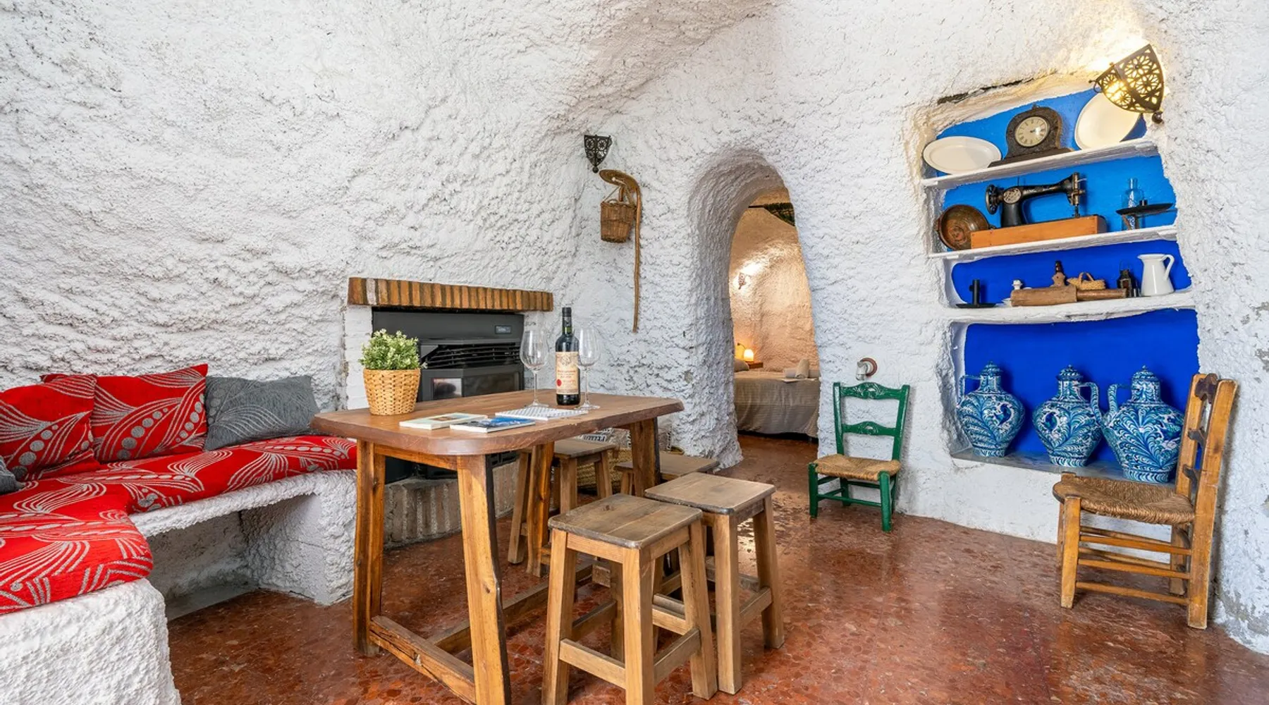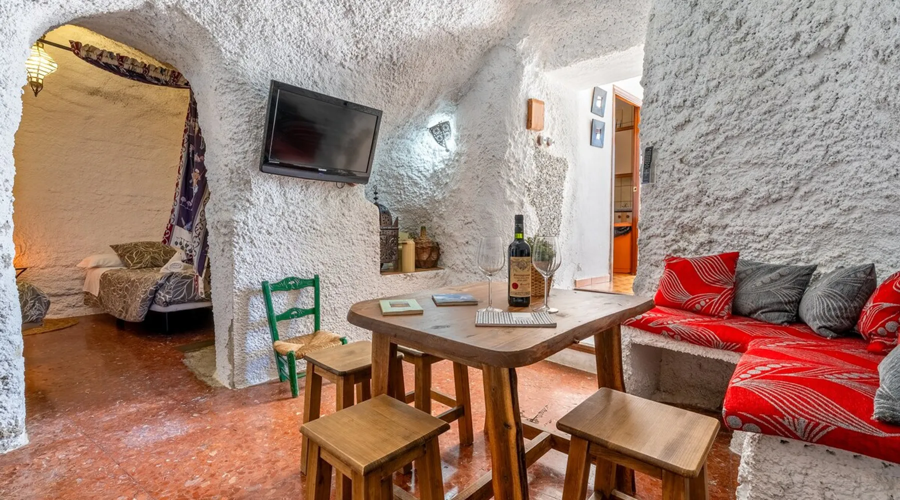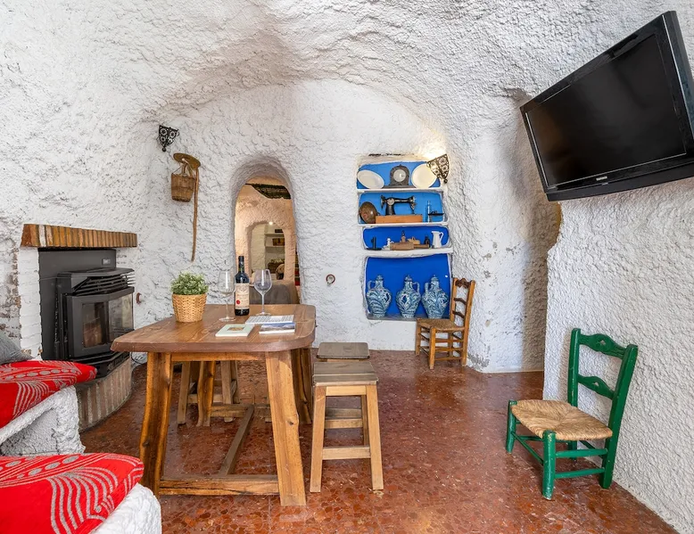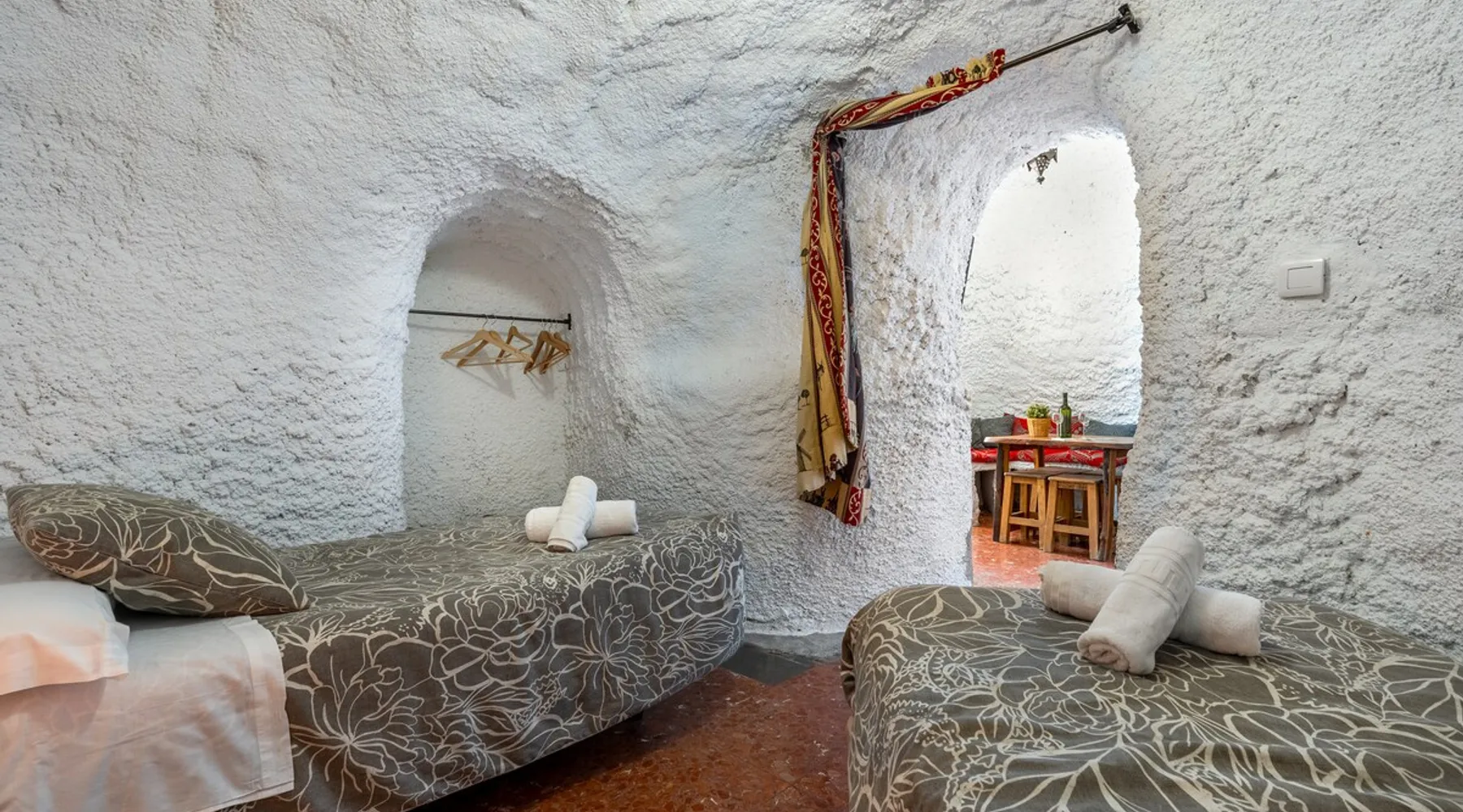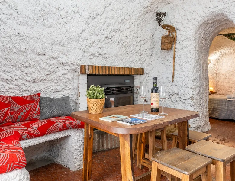 Cueva de la Abuela , is located in Cenes de la Vega . This is a village that is geographically very well located since it is just 5 km from Granada capital and 20 km from Sierra Nevada Ski station The Alhambra , one of our most precious treasures, we can arrive in just 11 minutes from home by car. The arrival in Granada center, it is greatly facilitated by bus nº33, with a frequency of 10 minutes from 6.30 am to 11.15pm The space Our cave house, which already in itself has a charm for being all integrated, is distributed as follows: Bedroom 1: 1.50 cm bed and two extra beds can be added Bedroom 2: Double room with two 90cm beds Bedroom 3: Room consisting of a 1.35 double bed Bedroom 4: Composite by two 90 cm beds Bedroom 5 : Room with a twin bed Bathrooms: two full bathrooms with shower, sink and toilet. One is on the second floor and the other on the ground floor Kitchen : Fully furnished with everything you need: dishwasher, oven, ceramic hob, refrigerator, toaster and everything you need Living rooms or living areas: We find a smaller, more cosy lounge at the entrance part of the cave , which has a pellet fireplace (the accommodation provides for the whole stay the necessary pellet) , tv and living table A second living room, much wider In the entrance of the house we find the POOL and the BARBECUE , which allow you to have an UNFORGETTABLE stay!! Guest access The house, is for full rent, so the stay will be quite spacious and will enter up to 8 people Registration Details ESFCTU00001802100038409800000000000000000000000000004