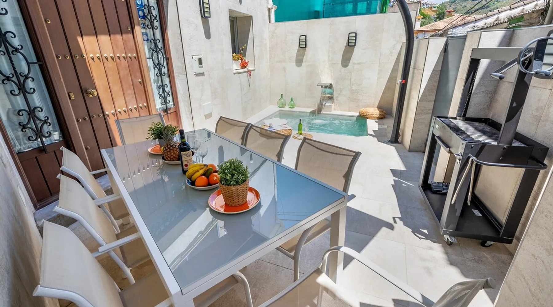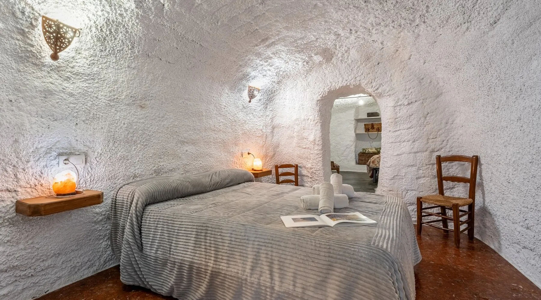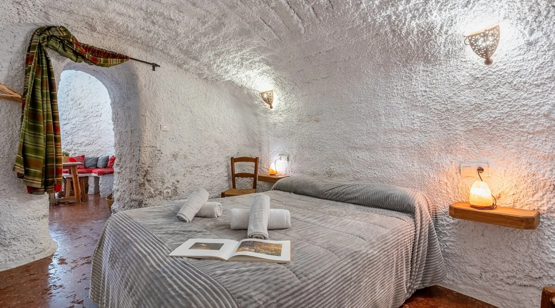 Cueva de la Abuela , is located in Cenes de la Vega . This is a village that is geographically very well located since it is just 5 km from Granada capital and 20 km from Sierra Nevada Ski station The Alhambra , one of our most precious treasures, we can arrive in just 11 minutes from home by car. The arrival in Granada center, it is greatly facilitated by bus nº33, with a frequency of 10 minutes from 6.30 am to 11.15pm The space Our cave house, which already in itself has a charm for being all integrated, is distributed as follows: Bedroom 1: 1.50 cm bed and two extra beds can be added Bedroom 2: Double room with two 90cm beds Bedroom 3: Room consisting of a 1.35 double bed Bedroom 4: Composite by two 90 cm beds Bedroom 5 : Room with a twin bed Bathrooms: two full bathrooms with shower, sink and toilet. One is on the second floor and the other on the ground floor Kitchen : Fully furnished with everything you need: dishwasher, oven, ceramic hob, refrigerator, toaster and everything you need Living rooms or living areas: We find a smaller, more cosy lounge at the entrance part of the cave , which has a pellet fireplace (the accommodation provides for the whole stay the necessary pellet) , tv and living table A second living room, much wider In the entrance of the house we find the POOL and the BARBECUE , which allow you to have an UNFORGETTABLE stay!! Guest access The house, is for full rent, so the stay will be quite spacious and will enter up to 8 people Registration Details ESFCTU00001802100038409800000000000000000000000000004