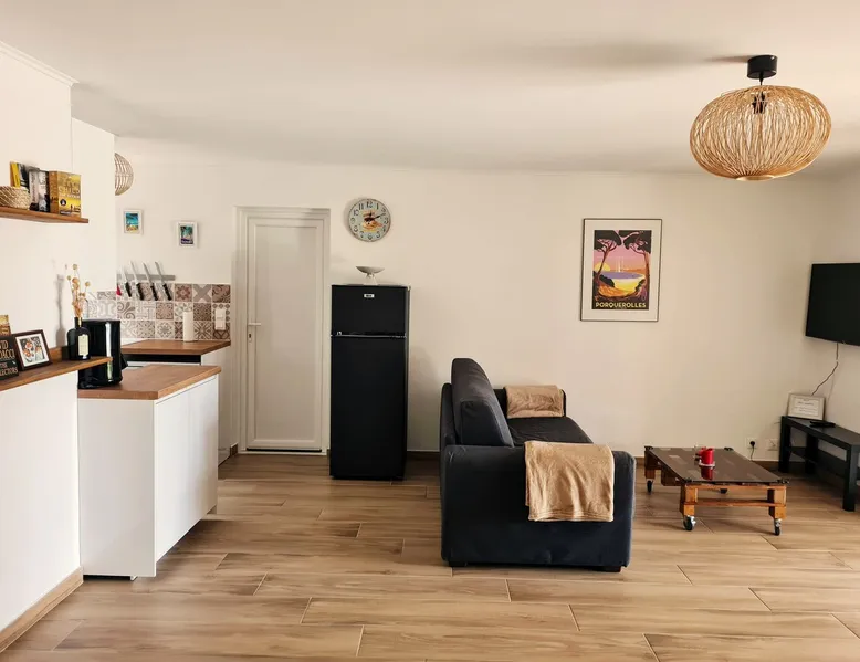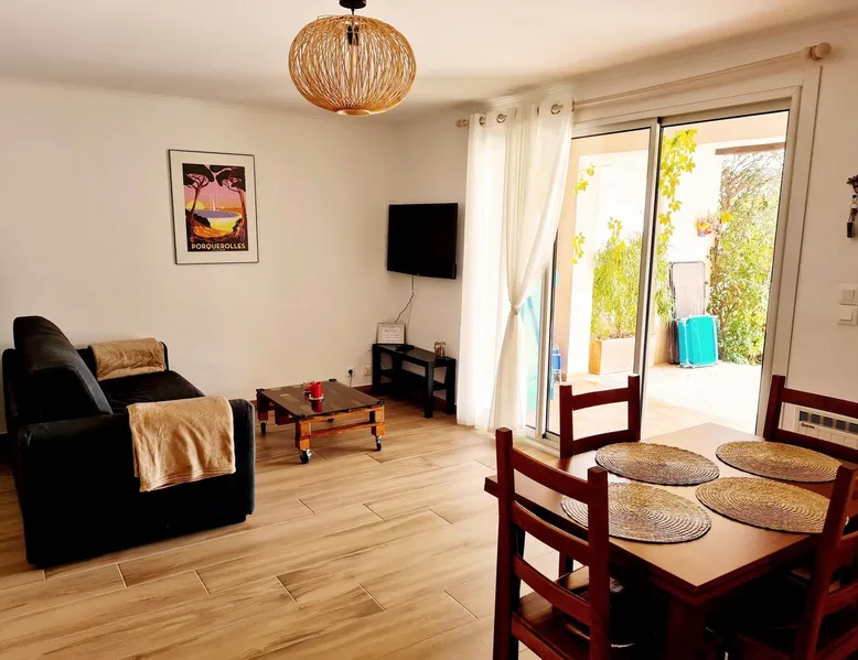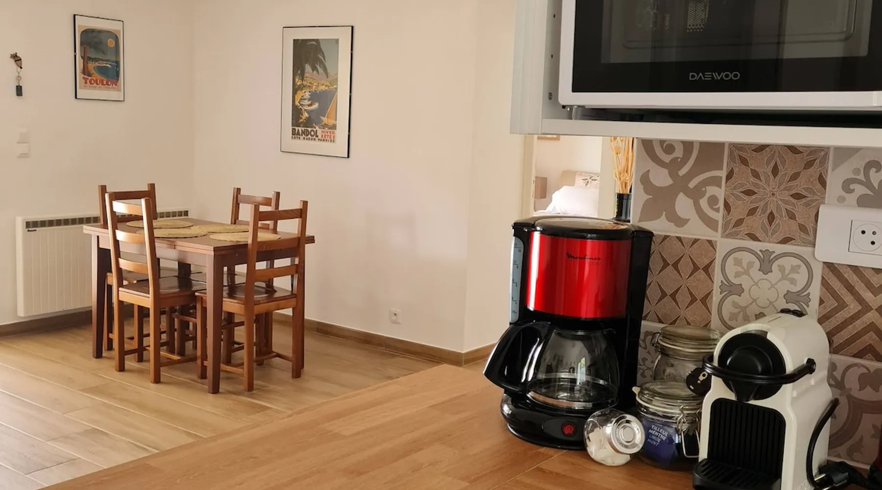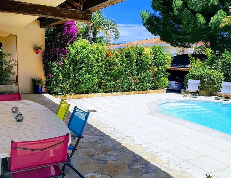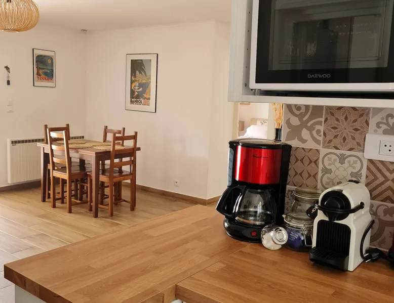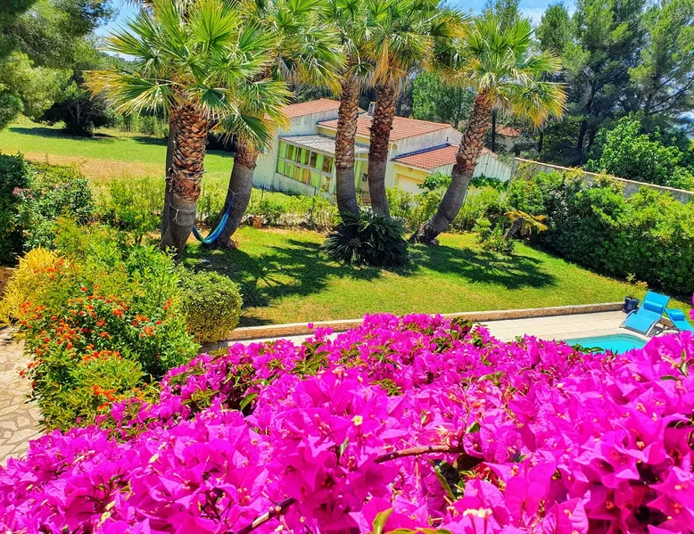 Bottom of 86 m2 Provençal villa located in a quiet private cul-de-sac. 5 minutes' drive to the beaches of Les Sablettes and Fabrégas and 5 minutes' walk to the forest, bus stop nearby. Reach the City of Sanary in 10 minutes and Bandol in 20 minutes. You have 2 bedrooms with 160 x 190 beds, a living/dining room with a 140 x 190 sofa bed, 2 bathrooms with walk-in showers, 2 fully equipped kitchens and 2 terraces. Baby bed Parking (2 cars) 9x4 pool and garden The space Fully equipped: kitchens with ceramic hobs, refrigerators, American and Nespresso coffee machines, kettles, microwaves, ovens, dishwashers. The living room has a comfortable 140 x 190 convertible sofa bed with real mattress and TVs. You have 2 private terraces of 37 m2 and 13 m2. Extra beds only for 2 children under 2 years old (two baby cribs available). A charcoal barbecue is available. All items available to guests must be used exclusively inside the villa. Guest access Parking, Terrace, Garden, Swimming pool Other things to note The pool and garden are shared with the owners who live upstairs (two adults and a child born in 2013) There is the option to delay the checkout (if the arrival of new guests is not scheduled for the same day) by paying €10 per additional hour. For a possible early check-in (if possible) the same rates are applied. You need to let them know in advance. Extra beds only for 2 children under 3 years old (2 folding cribs available)