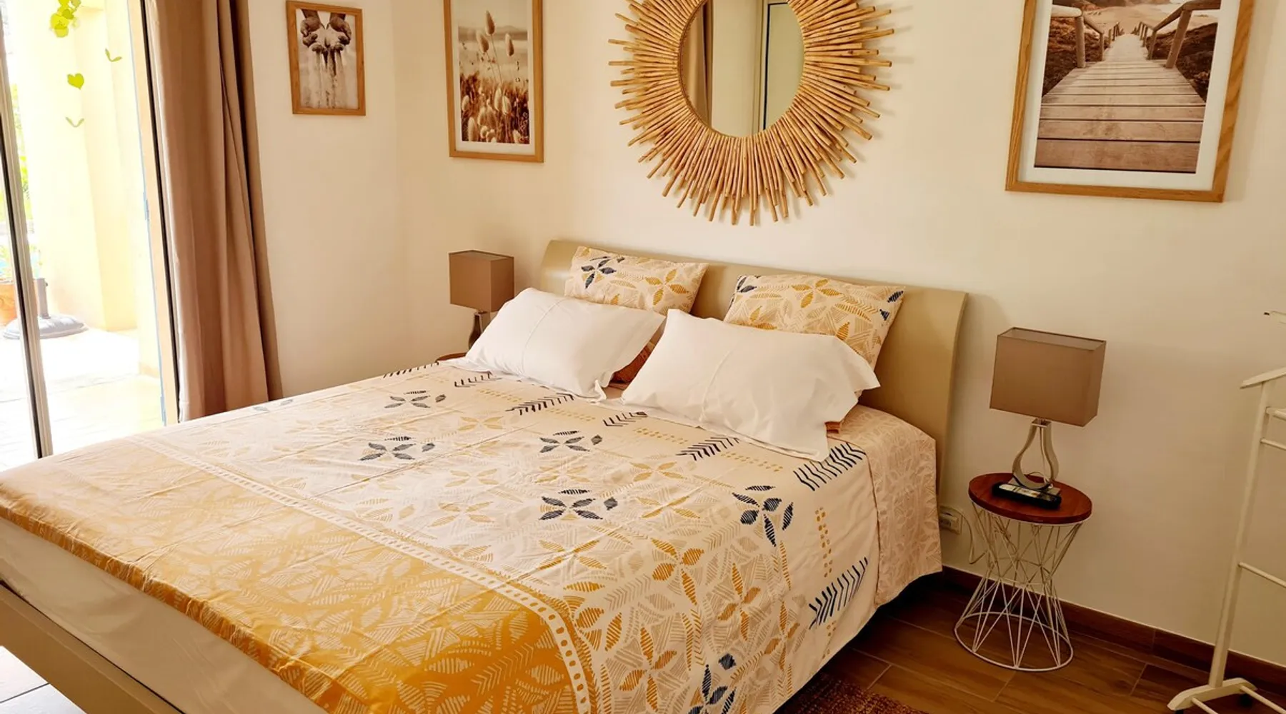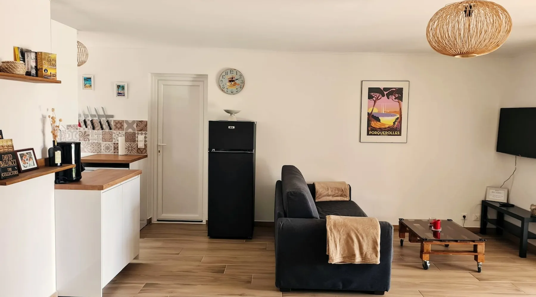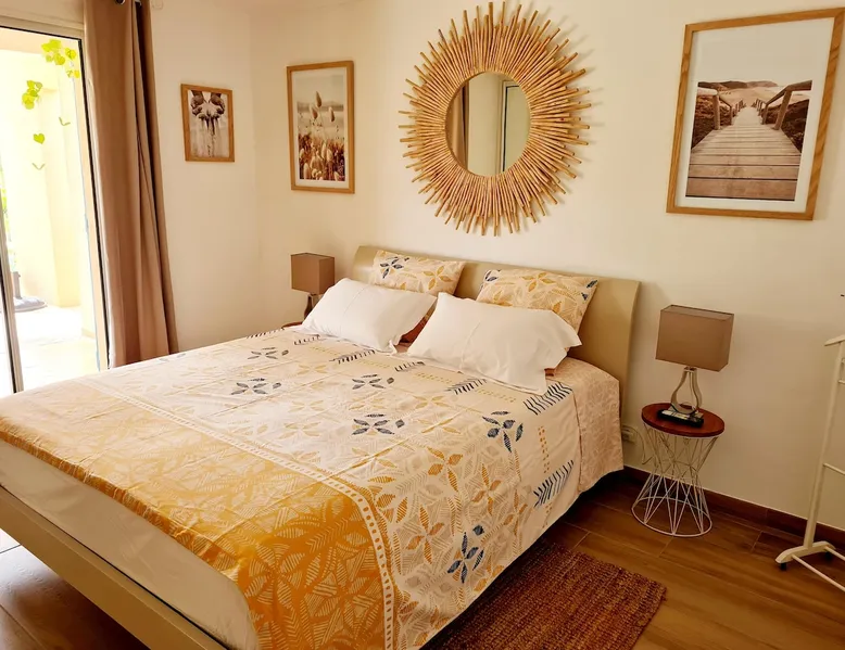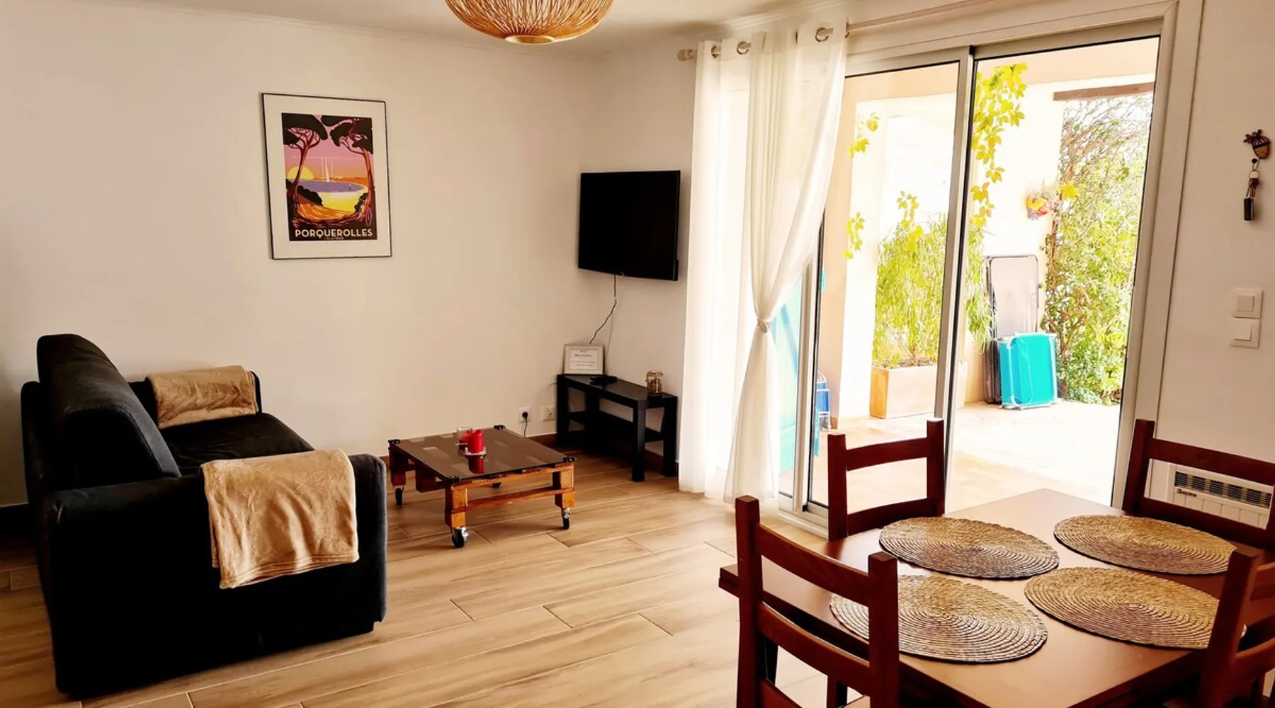 Bottom of 86 m2 Provençal villa located in a quiet private cul-de-sac. 5 minutes' drive to the beaches of Les Sablettes and Fabrégas and 5 minutes' walk to the forest, bus stop nearby. Reach the City of Sanary in 10 minutes and Bandol in 20 minutes. You have 2 bedrooms with 160 x 190 beds, a living/dining room with a 140 x 190 sofa bed, 2 bathrooms with walk-in showers, 2 fully equipped kitchens and 2 terraces. Baby bed Parking (2 cars) 9x4 pool and garden The space Fully equipped: kitchens with ceramic hobs, refrigerators, American and Nespresso coffee machines, kettles, microwaves, ovens, dishwashers. The living room has a comfortable 140 x 190 convertible sofa bed with real mattress and TVs. You have 2 private terraces of 37 m2 and 13 m2. Extra beds only for 2 children under 2 years old (two baby cribs available). A charcoal barbecue is available. All items available to guests must be used exclusively inside the villa. Guest access Parking, Terrace, Garden, Swimming pool Other things to note The pool and garden are shared with the owners who live upstairs (two adults and a child born in 2013) There is the option to delay the checkout (if the arrival of new guests is not scheduled for the same day) by paying €10 per additional hour. For a possible early check-in (if possible) the same rates are applied. You need to let them know in advance. Extra beds only for 2 children under 3 years old (2 folding cribs available)