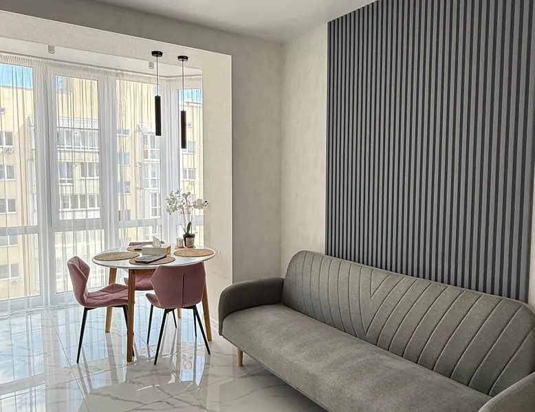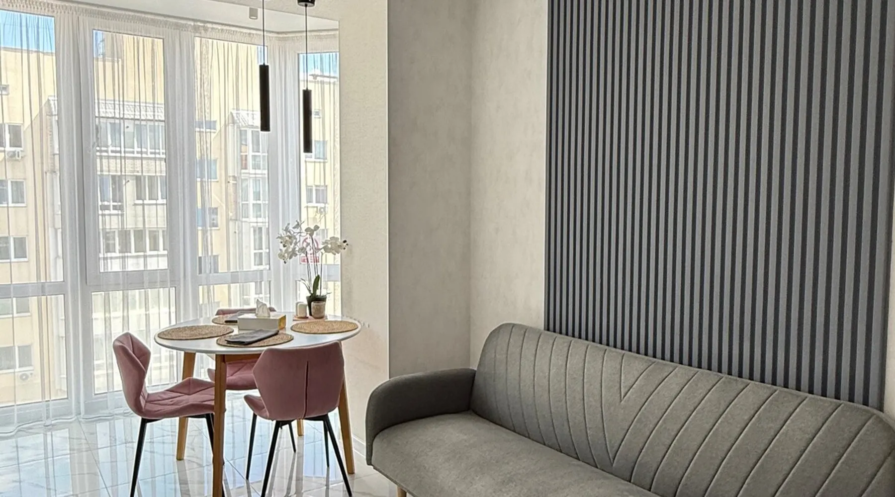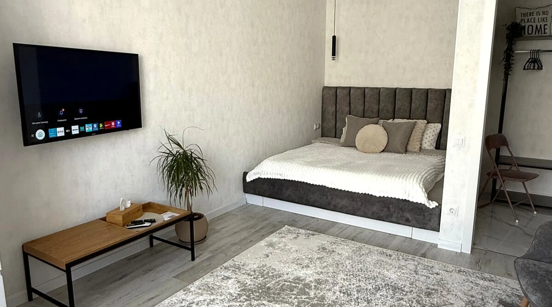 A combination of style and comfort in one apartment. The apartment is located in the heart of Vinnytsia, Podil (2 km from the center). Here you will find all the necessary little things for a comfortable stay (bed linen, towels, iron, hair dryer, dishes, coffee set, all household appliances, air conditioning, smart TV, Wi-Fi zone). Free parking on the premises of the house. There is a bank, pharmacy, shops, restaurants, gas station and shopping center nearby. Other things to note Quiet hours 10:00 PM - 8:00 AM. Parties and smoking in the apartment are prohibited.