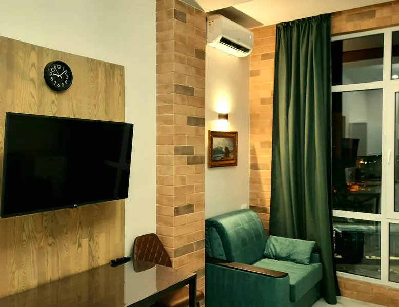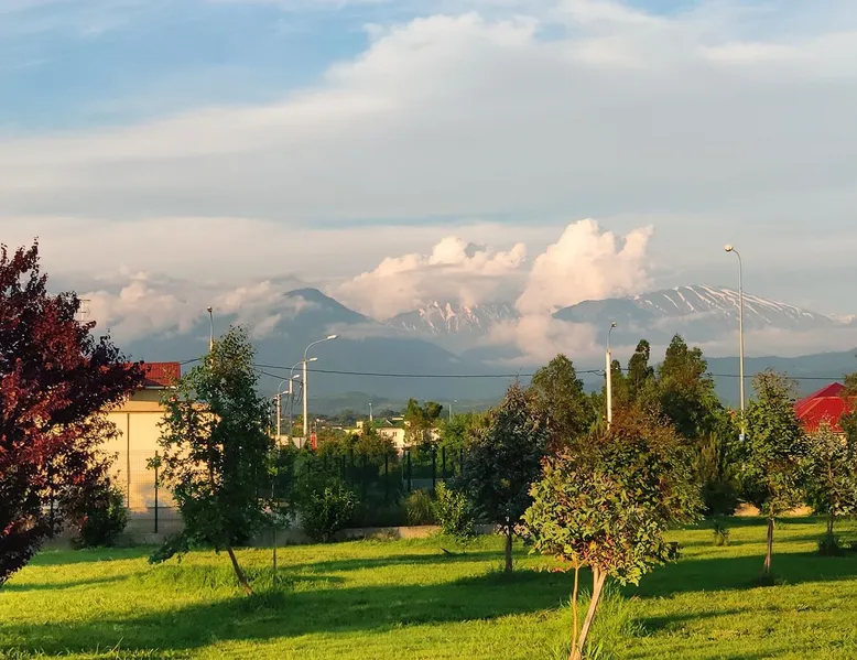 A comfortable apartment with a magical view of the mountains. There are all appliances and full-fledged sleeping places with spring mattresses for a comfortable stay of 5 people. The road to the sea with the best beaches will take 20 minutes through a charming ornithological park with a swan lake. The complex has a closed area with a kid playground. There is always free street parking. Olympic Park, SochiPark, restaurants, shops are within walking distance. The border with Abkhazia and the airport are nearby.