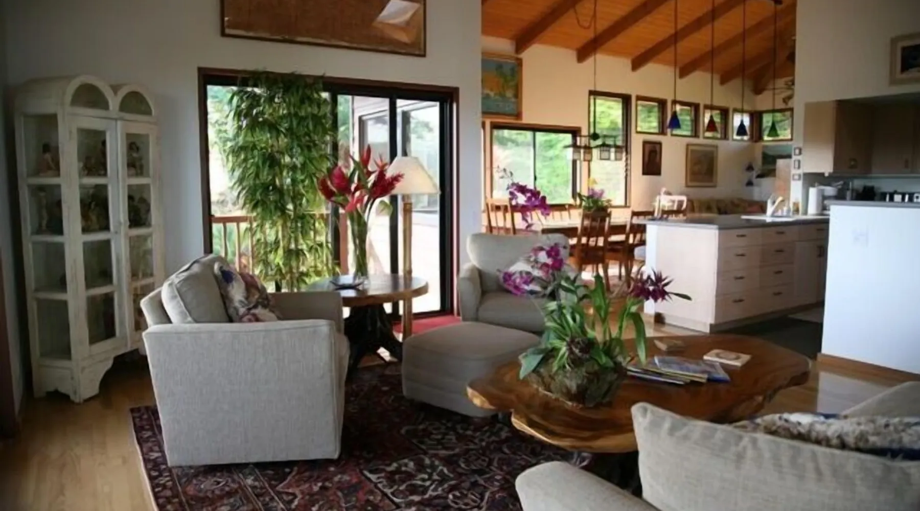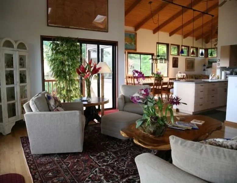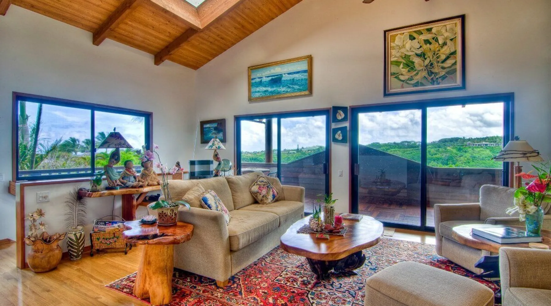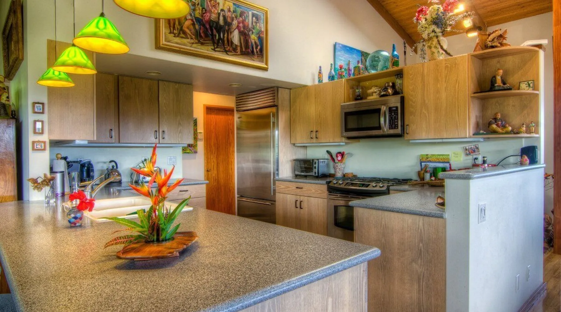 Ridge line home with pool, ocean and valley views One of the more sought after aspects of a vacation rental (or home for that matter) on Kauai is to be one of a kind; to have a view that can only be cherished by those privy to the specific angles and perspectives a particular property provides. Kumulani, perched on a ridge between Kalihiwai Bay and Anini Beach, is a perfect example. This 3,000 square foot home is a comfort zone in and out. Upstairs highlights include high ceilings, a spacious kitchen with wrapping granite countertops, an elegant dining area and a roomy living area. The master suite has a king bed, a spacious lanai and a charming Hawaiian chic decor. Downstairs, one bedroom features a king bed, the other has one double bed, and both have private baths and direct access to the pool and open lanai perfectly suited for a day (or days) of leisure. Located between the towns of Kilauea and Princeville, all the eating, shopping and fun-in-the-sun glory the North Shore has to offer is a short drive away, but when all of that is through, privacy and quiet are the last features of the day. Hawaii Life Rentals is a locally owned, licensed real estate company with rentals on Kauai, Maui, Oahu, and Hawaii. We offer on-island personal assistance and Concierge services. Disclosure: Full time residents (wife/husband) live in the guest house - Exterior security cameras in use Rates do not include taxes, cleaning and applicable fees. *This home is located in a Tsunami Evacuation Zone** TA-157-168-4352-01 SP 2012-9 TVNC 4227 Disclosure: Residents occupy the apartment located over the garage. Languages English