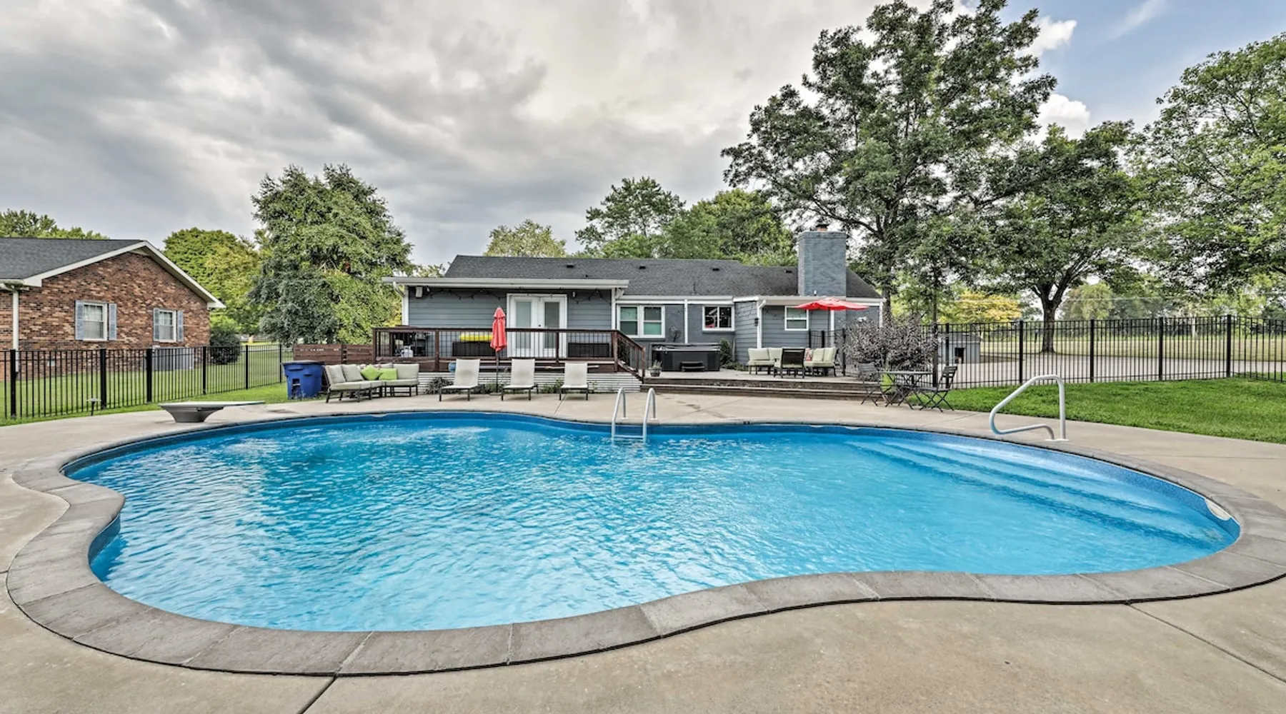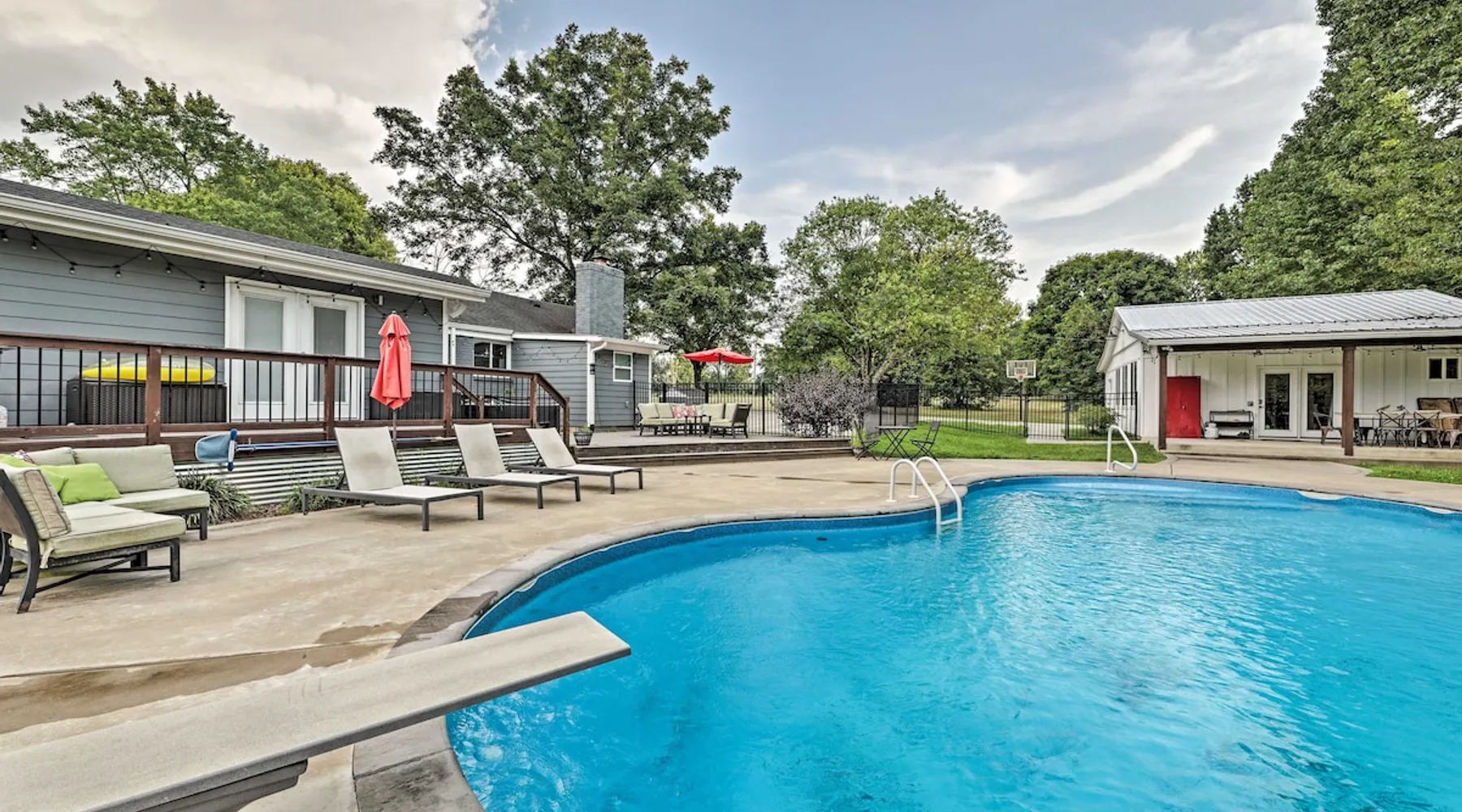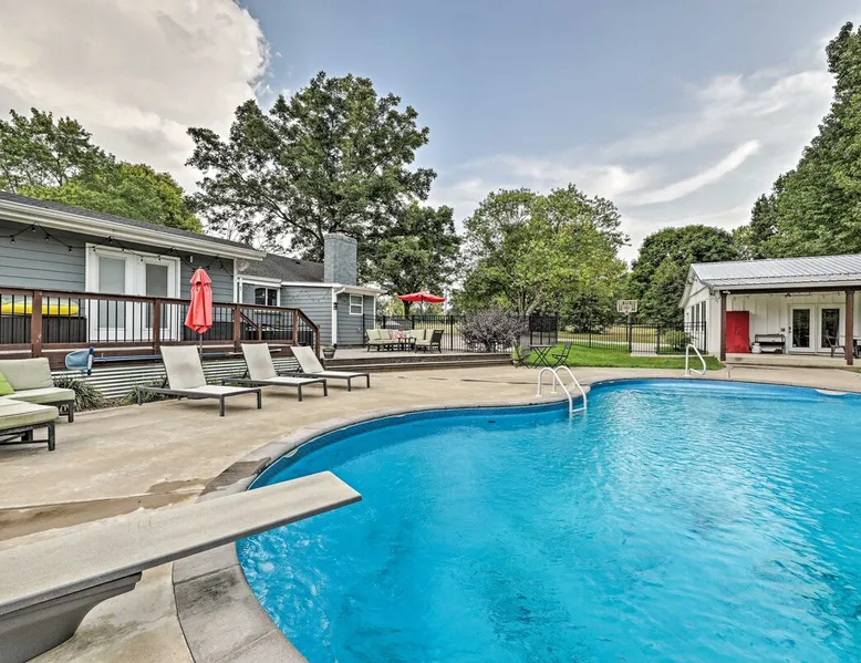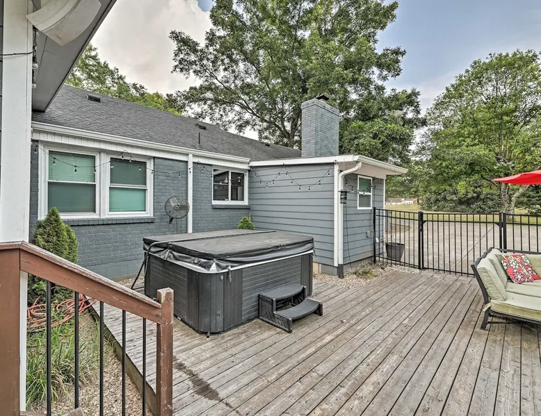 Enjoy a peaceful respite near the bustling scene of Nashville at this 3-bedroom, 3-bath vacation rental! Situated in Joelton, this quiet 'Hope House' offers the perfect place to unwind after a day spent exploring city attractions like the Grand Ole Opry. Step inside to find an inviting interior featuring an open floor plan, modern furnishings, and a fully stocked kitchen. Retreat to the back yard to lounge by the pool or relax in the hammock, then cap off each night gathered around the fire pit! The space Private Inground Pool & Hot Tub | Treehouse | Free WiFi | Single-Story Home | Pet Friendly w/ Fee Ideal for adventure lovers or serenity seekers alike, this tranquil vacation rental offers essential amenities, a quiet setting, and a prime location just minutes from the heart of Music City! Bedroom 1: Queen Bed | Bedroom 2: Twin/Full Bunk Bed | Bedroom 3: Full Bed, 2 Lofted Twin Beds | Living Room: Futon | Additional Sleeping: Crib OUTDOOR LIVING: Pool (Memorial Day-Labor Day), deck, pond, fire pit, hammock, 5 acres INDOOR LIVING: 4 Smart TVs w/ cable, wood-burning fireplace, piano, dining table, laptop-friendly workspace, ceiling fans KITCHEN: Fully equipped w/ stainless steel appliances, cooking basics, drip coffee maker, toaster, blender, knife set, dishware & flatware, island w/ bar stools GENERAL: Central air conditioning, keyless entry, washer & dryer, linens & towels, complimentary toiletries, hair dryers, trash bags & paper towels FAQ: 3 exterior steps required, pet fee (paid pre-trip), pool (depth 3’0 - 9’0) PARKING: Driveway (10 vehicles), RV & trailer parking Guest access Guests will have access to the entire property via keyless entry Other things to note - No smoking - Pet friendly w/ $200 fee (+ fees & taxes) - No events, parties, or large gatherings - Additional fees and taxes may apply - Photo ID may be required upon check-in - NOTE: The property requires 3 exterior stairs to enter and may be difficult for guests with limited mobility - NOTE: The homeowner lives nearby and may be on-site from time to time, they will make guests aware if they need to stop by - NOTE: The pool is open seasonally from Memorial Day through Labor Day