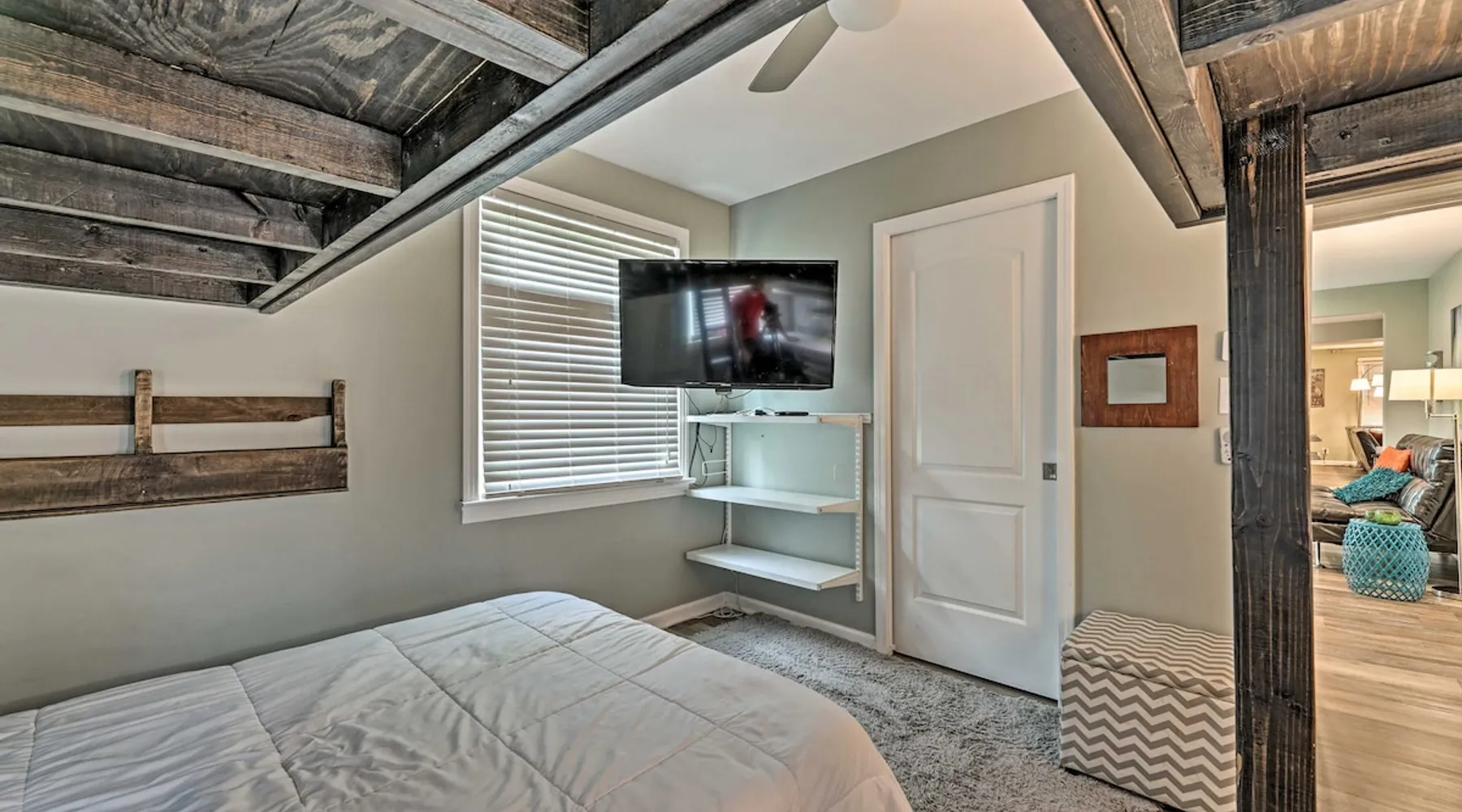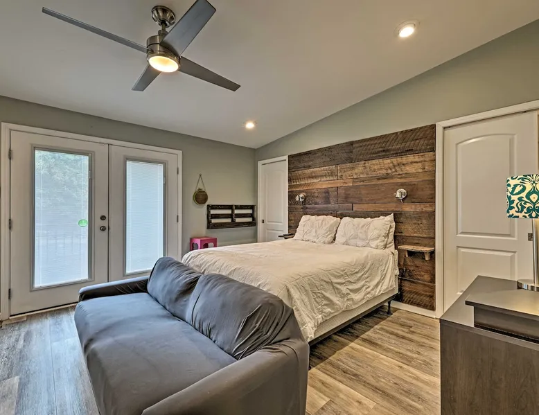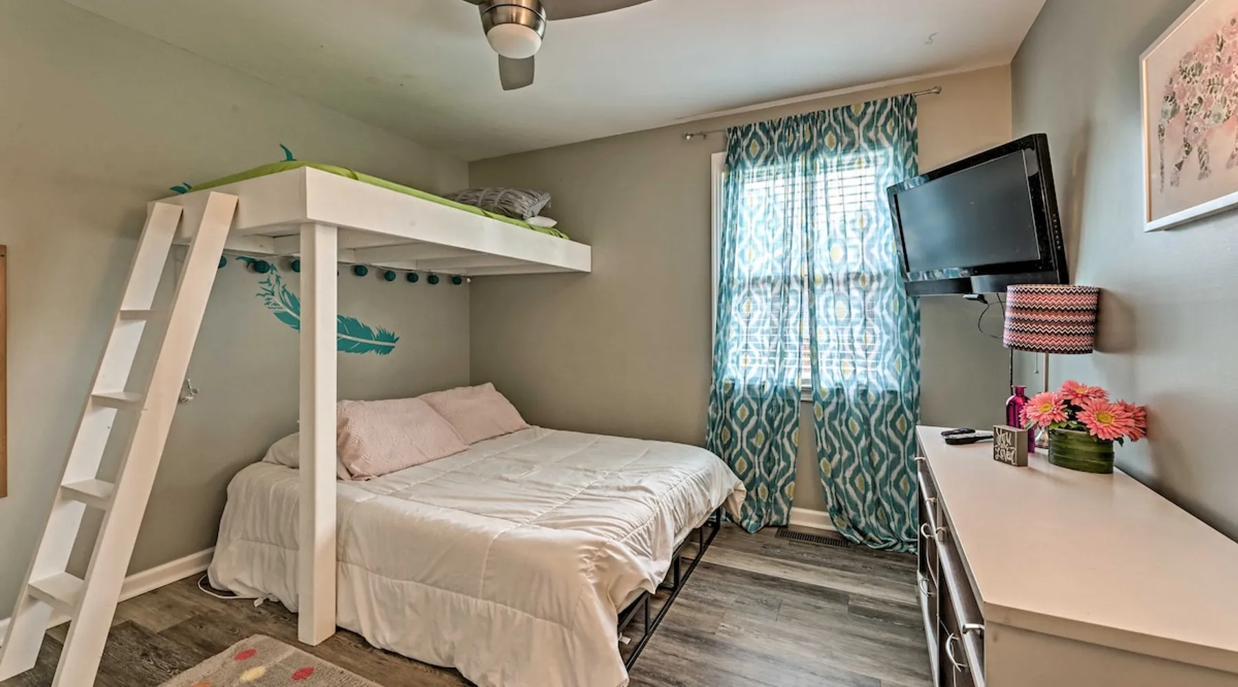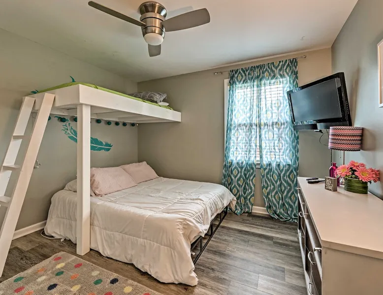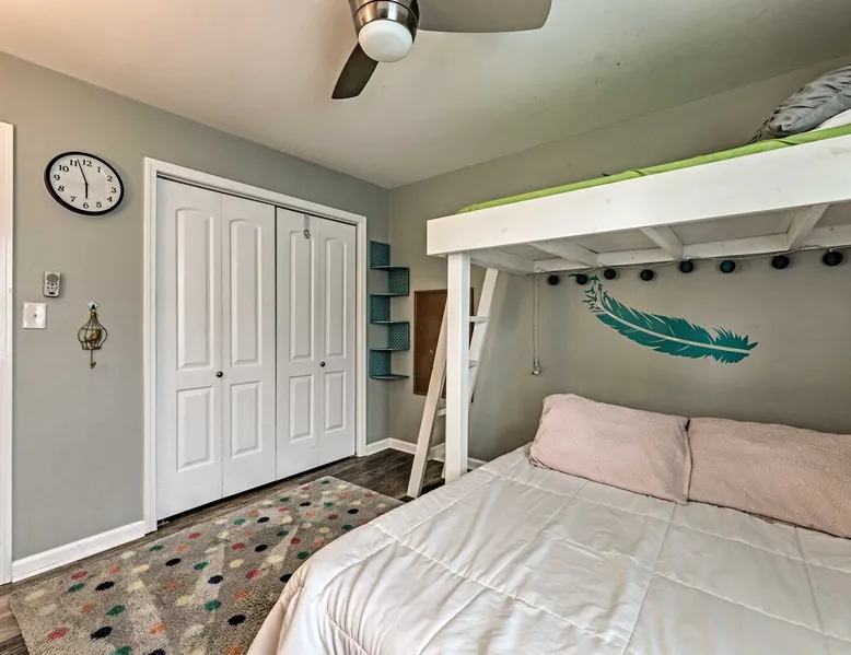 Enjoy a peaceful respite near the bustling scene of Nashville at this 3-bedroom, 3-bath vacation rental! Situated in Joelton, this quiet 'Hope House' offers the perfect place to unwind after a day spent exploring city attractions like the Grand Ole Opry. Step inside to find an inviting interior featuring an open floor plan, modern furnishings, and a fully stocked kitchen. Retreat to the back yard to lounge by the pool or relax in the hammock, then cap off each night gathered around the fire pit! The space Private Inground Pool & Hot Tub | Treehouse | Free WiFi | Single-Story Home | Pet Friendly w/ Fee Ideal for adventure lovers or serenity seekers alike, this tranquil vacation rental offers essential amenities, a quiet setting, and a prime location just minutes from the heart of Music City! Bedroom 1: Queen Bed | Bedroom 2: Twin/Full Bunk Bed | Bedroom 3: Full Bed, 2 Lofted Twin Beds | Living Room: Futon | Additional Sleeping: Crib OUTDOOR LIVING: Pool (Memorial Day-Labor Day), deck, pond, fire pit, hammock, 5 acres INDOOR LIVING: 4 Smart TVs w/ cable, wood-burning fireplace, piano, dining table, laptop-friendly workspace, ceiling fans KITCHEN: Fully equipped w/ stainless steel appliances, cooking basics, drip coffee maker, toaster, blender, knife set, dishware & flatware, island w/ bar stools GENERAL: Central air conditioning, keyless entry, washer & dryer, linens & towels, complimentary toiletries, hair dryers, trash bags & paper towels FAQ: 3 exterior steps required, pet fee (paid pre-trip), pool (depth 3’0 - 9’0) PARKING: Driveway (10 vehicles), RV & trailer parking Guest access Guests will have access to the entire property via keyless entry Other things to note - No smoking - Pet friendly w/ $200 fee (+ fees & taxes) - No events, parties, or large gatherings - Additional fees and taxes may apply - Photo ID may be required upon check-in - NOTE: The property requires 3 exterior stairs to enter and may be difficult for guests with limited mobility - NOTE: The homeowner lives nearby and may be on-site from time to time, they will make guests aware if they need to stop by - NOTE: The pool is open seasonally from Memorial Day through Labor Day