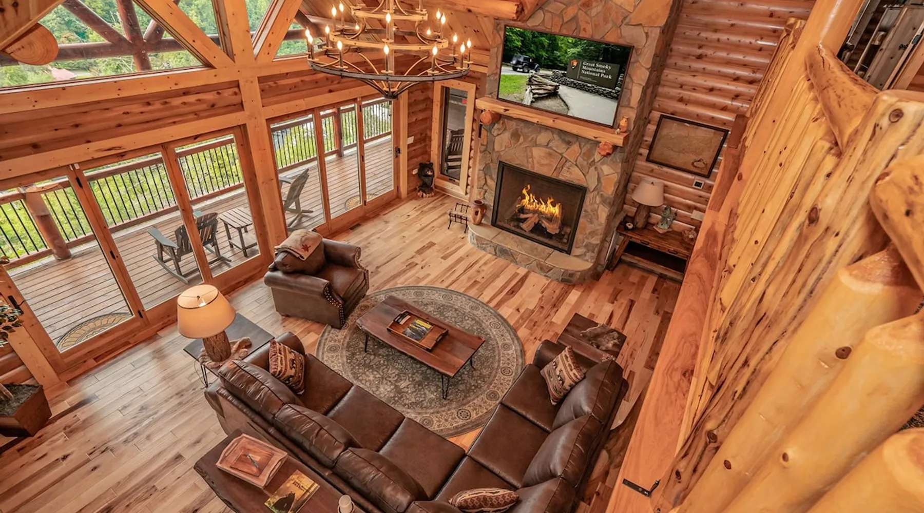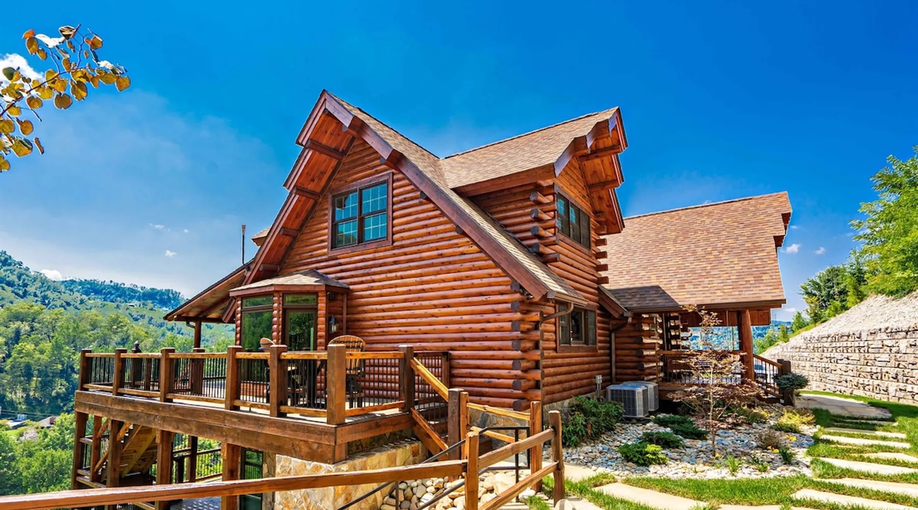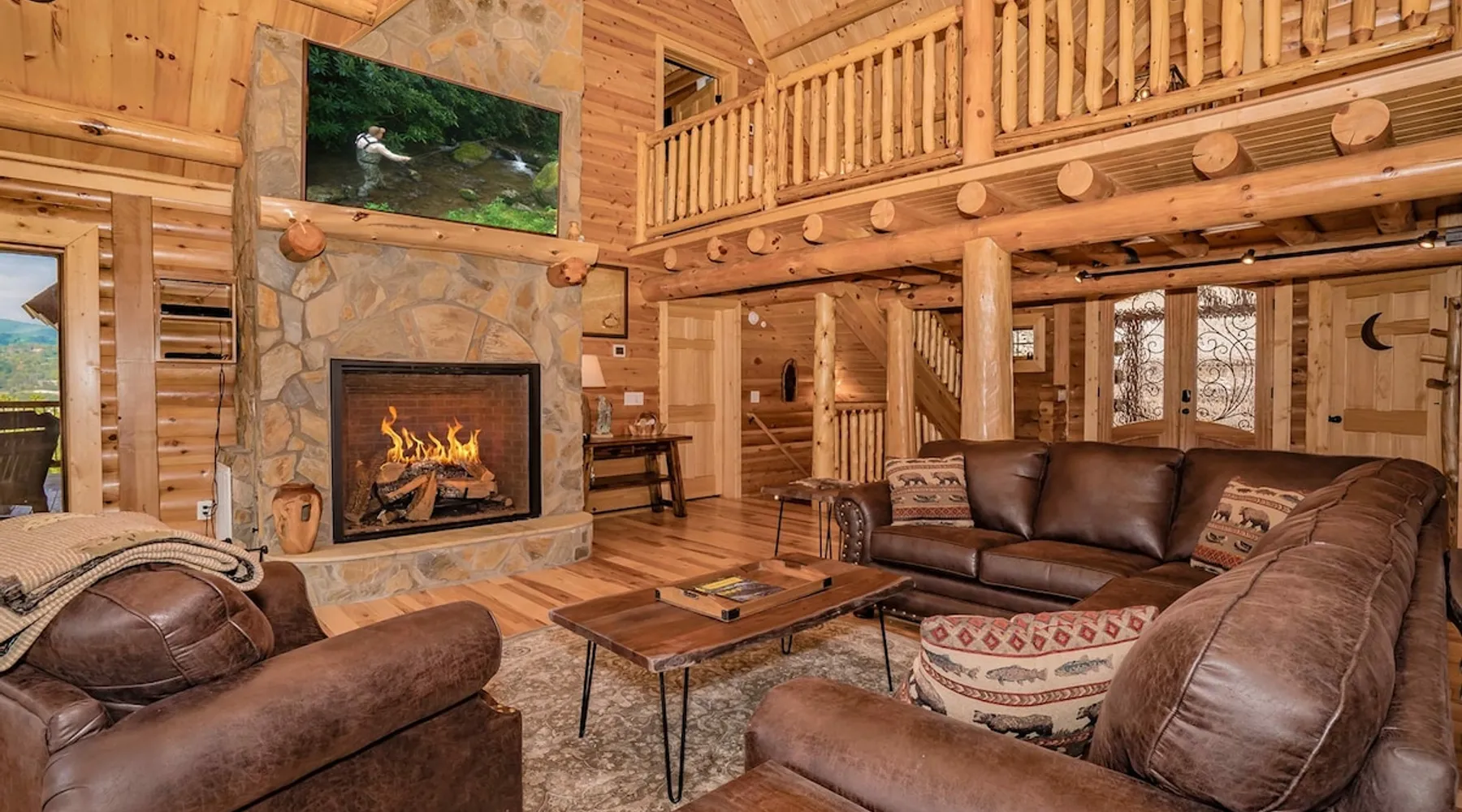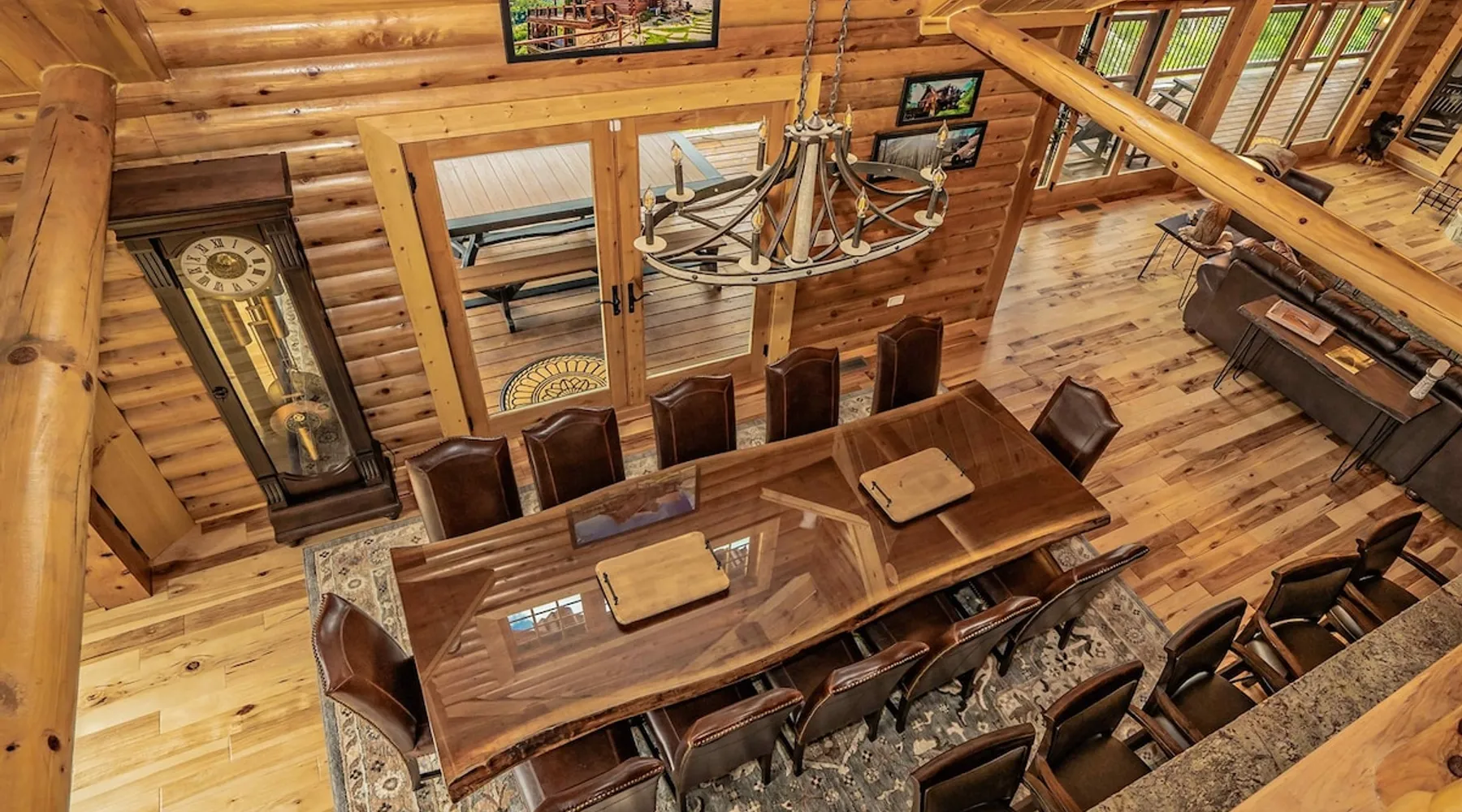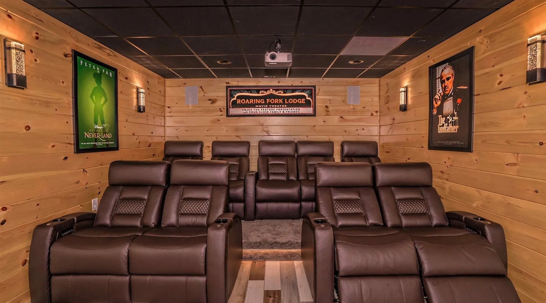No hidden fees! We do not charge extra cleaning fees. What you see is what you pay. Discover Roaring Fork Lodge, a stunning 6,312 sq. ft. northern white cedar log home in the heart of Gatlinburg. With 4 spacious levels, it comfortably sleeps up to 20 guests. Enjoy luxurious accommodations and easy access to local attractions while being immersed in the beauty of the Great Smoky Mountains. The space Welcome to Roaring Fork Lodge – The Pinnacle of Luxury and Comfort in Gatlinburg Discover Unmatched Luxury and Personalized Service Welcome to Roaring Fork Lodge, where superior quality and exceptional service await. My name is Chris, and alongside my wife Sarah, we personally manage our six cabins to ensure the highest standards of care and cleanliness. Unlike large property management companies, our hands-on approach means that every detail is meticulously attended to, guaranteeing a memorable stay in the Smoky Mountains. Featured in Log and Timber Home Living Magazine: Our Adirondack-Style true log home was proudly featured in the June/July 2023 issue of Log and Timber Home Living Magazine. Roaring Fork Lodge is an exquisite 6,312 sq. ft. northern white cedar custom-built log home, designed to comfortably accommodate up to 20 guests. Nestled in the heart of downtown Gatlinburg, our lodge offers unparalleled luxury and convenience, with privacy ensured by its location at the end of a quiet road. A Unique and Tranquil Retreat: Named after the rushing mountain river below, Roaring Fork Lodge provides a peaceful escape with breathtaking views and the soothing sounds of the flowing river. Our lodge is designed with high-end materials, including: • Northern White Cedar Logs: Sourced from Canada for their durability and natural beauty. • Solid Granite Counter-Tops: Adding elegance to our well-appointed kitchen. • Hand-Scraped Hickory Hardwood Floors: Offering a rustic charm and comfort. • Ceramic Tiled Showers and Floors: For a touch of sophistication. • Custom-Made Cabinetry: Providing functionality and style. Our outdoor spaces feature over 5,000 sq. ft. of deck and patio areas, much of which is covered, perfect for relaxing and enjoying the views. The property is surrounded by natural stone hardscaping and lush shrubs, ensuring privacy and enhancing the rustic ambiance. Explore the Great Outdoors. Roaring Fork Lodge is bordered by the Great Smoky Mountains National Park, offering stunning mountain views and a tranquil environment. Our property features: • Flagstone Walkway and Natural Stone Fire Pit: Located at the edge of the property for a cozy, private retreat. Enjoy seating on large boulders and hang a hammock for afternoon naps or relaxation. Roast hotdogs and make s'mores while soaking in the mountain views. • Grassy Area for Cornhole and Picnics: Perfect for outdoor fun and leisurely meals. • Wildlife Viewing: As our property borders the national park, sightings of black bears and other wildlife are common. Please be mindful of your belongings and waste to avoid attracting wildlife. Convenient Location with Easy Access: Roaring Fork Lodge offers a prime location just 1/2 mile from the bustling Gatlinburg strip, with ample parking on two levels of the driveway. A short 10-minute downhill walk brings you to a trolley station for easy access to downtown Gatlinburg. Keep in mind the walk back is uphill, or you can opt to drive. During special occasions like New Year’s Eve and the 4th of July, enjoy fireworks displays from the comfort of the lodge's back deck. Experience the Best of Both Worlds: Roaring Fork Lodge provides the perfect balance of serenity and convenience. Experience the sights and sounds of Gatlinburg while enjoying the peace and privacy of our mountain retreat. Our lodge is an ideal choice for creating lasting memories with family and friends in the Smoky Mountains. Book Your Stay Today: For a luxurious, spacious, and private escape in Gatlinburg, Roaring Fork Lodge is your ultimate destination. Contact us to check availability and secure your reservation. We are always available by phone or text to assist with any questions or concerns before and during your stay. We look forward to welcoming you to Roaring Fork Lodge, where every detail is designed to provide a memorable and enjoyable vacation experience. Amenities: • Extremely spacious with approximately 6,300 square feet in size with 4 floors • Sleeps up to 20 people • All linens, towels, and starter supply of toiletries provided, including travel size handmade goat's milk soaps • Spectacular large open floor plan on the main level with kitchen, dining and living areas. • The kitchen has a natural gas range, microwave, and electric oven • A beautiful 10 foot long solid walnut slab dining table that seats up to 12 people • Kitchen bar area adjacent to dining table seats an additional 5 people • Outdoor dining table (Outside dining room doors) seats 8 more people on the covered deck • Over 5,000 sf of mostly covered outdoor deck and patio space • Great views of the Smoky Mountains, downtown Gatlinburg, and nature • One (1) mile away From the Gatlinburg main entrance to the national park • Located in the heart of downtown Gatlinburg • Walking distance to the downtown Gatlinburg area, Anakeesta, Aquarium, and Trolley Stop • Views of Anakeesta, Space Needle, and the lights of the downtown strip • Parking for numerous vehicles • All bedrooms have doors with full deck access, except for 4th floor master bedroom • Leather couches and recliners throughout the home • Outdoor hammock posts (Bring Your Hammock) • Fire pit with abundant seating • Charcoal grill • Hot tub located on top deck • 2 gas log fireplaces (Breathtaking 50 inch full view gas fireplace upstairs and 36 inch gas fireplace downstairs) • Endless hot water system so you never run out • Full in cabin movie theater (Leather electric reclining seating | 120 Inch Screen | surround sound) • Arcade game 