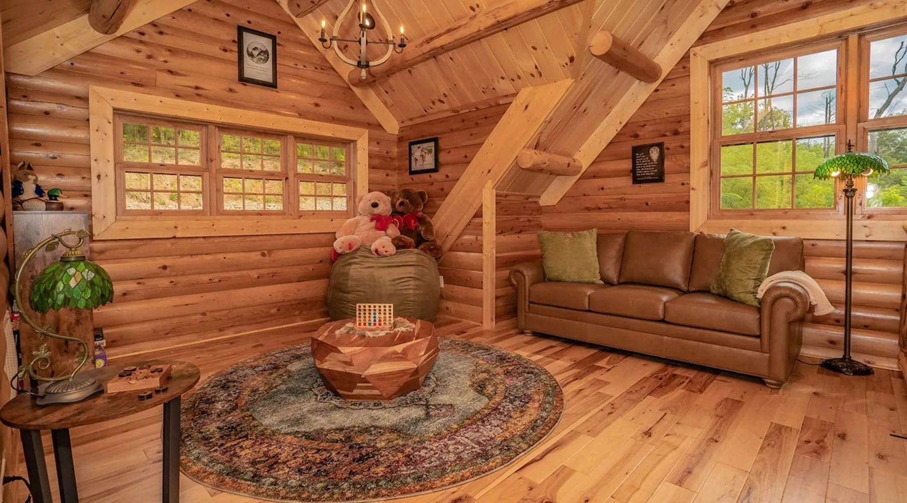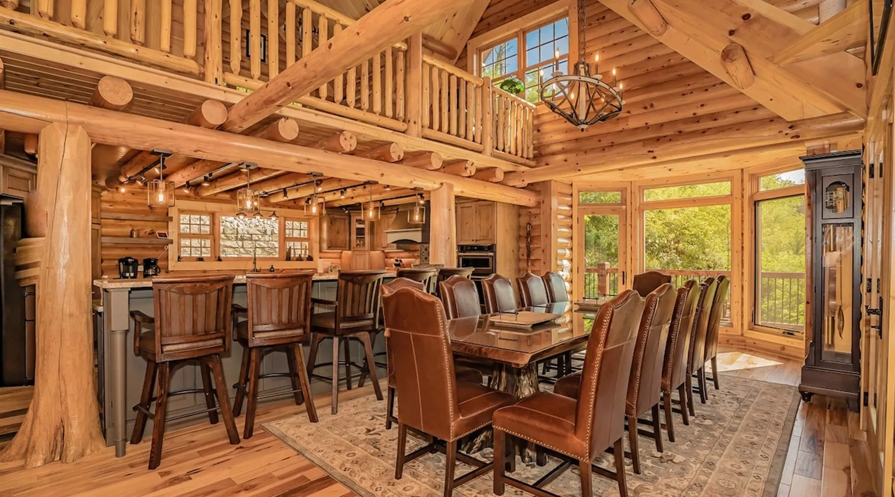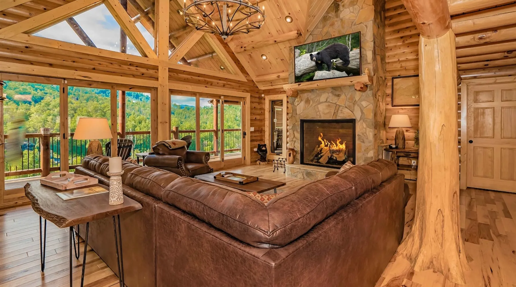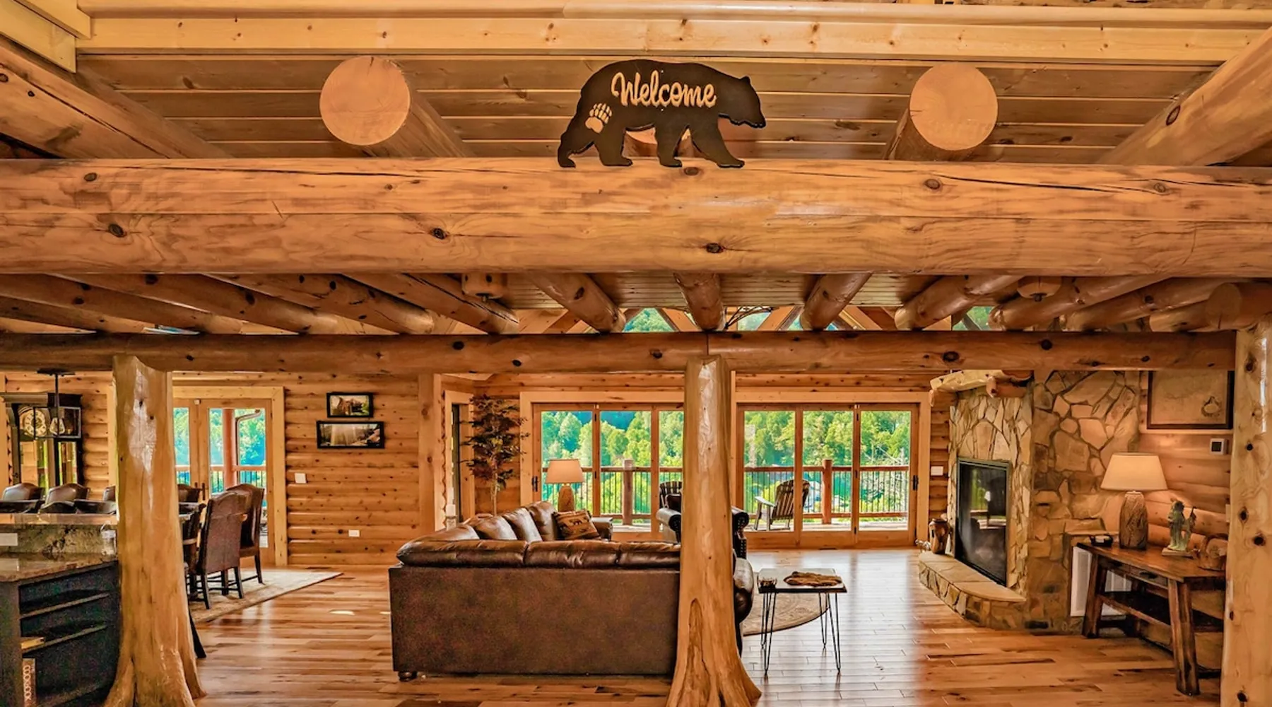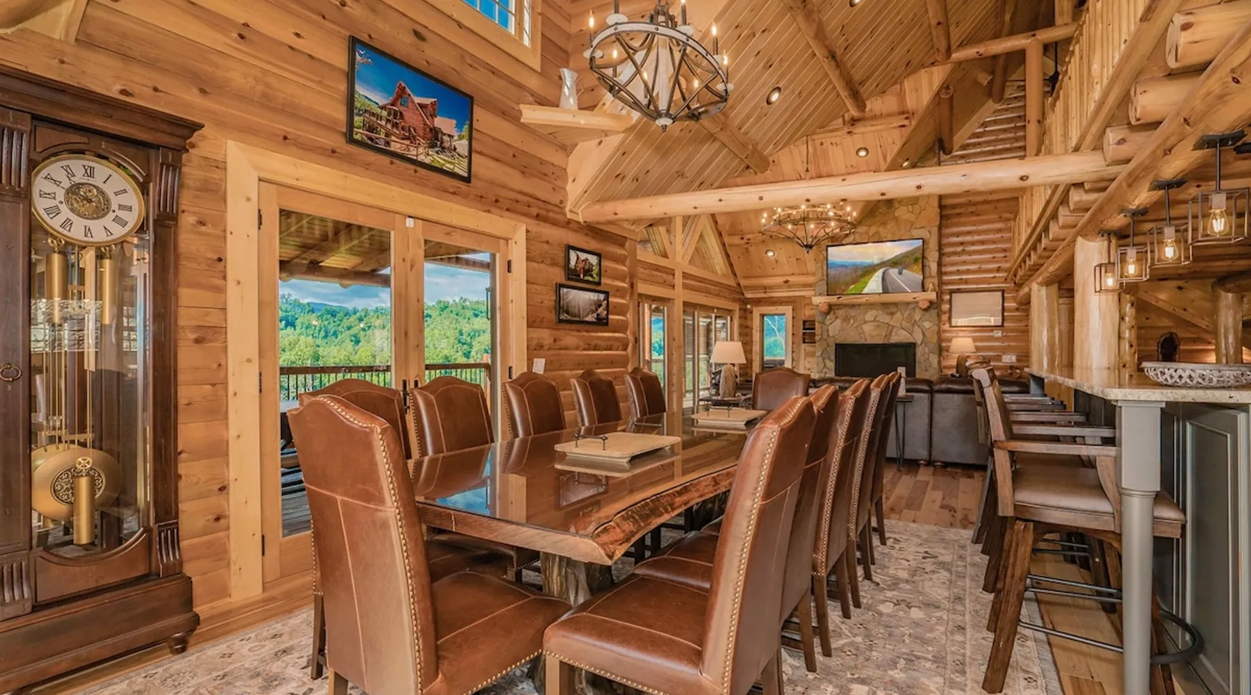 No hidden fees! We do not charge extra cleaning fees. What you see is what you pay. Discover Roaring Fork Lodge, a stunning 6,312 sq. ft. northern white cedar log home in the heart of Gatlinburg. With 4 spacious levels, it comfortably sleeps up to 20 guests. Enjoy luxurious accommodations and easy access to local attractions while being immersed in the beauty of the Great Smoky Mountains. The space Welcome to Roaring Fork Lodge – The Pinnacle of Luxury and Comfort in Gatlinburg Discover Unmatched Luxury and Personalized Service Welcome to Roaring Fork Lodge, where superior quality and exceptional service await. My name is Chris, and alongside my wife Sarah, we personally manage our six cabins to ensure the highest standards of care and cleanliness. Unlike large property management companies, our hands-on approach means that every detail is meticulously attended to, guaranteeing a memorable stay in the Smoky Mountains. Featured in Log and Timber Home Living Magazine: Our Adirondack-Style true log home was proudly featured in the June/July 2023 issue of Log and Timber Home Living Magazine. Roaring Fork Lodge is an exquisite 6,312 sq. ft. northern white cedar custom-built log home, designed to comfortably accommodate up to 20 guests. Nestled in the heart of downtown Gatlinburg, our lodge offers unparalleled luxury and convenience, with privacy ensured by its location at the end of a quiet road. A Unique and Tranquil Retreat: Named after the rushing mountain river below, Roaring Fork Lodge provides a peaceful escape with breathtaking views and the soothing sounds of the flowing river. Our lodge is designed with high-end materials, including: • Northern White Cedar Logs: Sourced from Canada for their durability and natural beauty. • Solid Granite Counter-Tops: Adding elegance to our well-appointed kitchen. • Hand-Scraped Hickory Hardwood Floors: Offering a rustic charm and comfort. • Ceramic Tiled Showers and Floors: For a touch of sophistication. • Custom-Made Cabinetry: Providing functionality and style. Our outdoor spaces feature over 5,000 sq. ft. of deck and patio areas, much of which is covered, perfect for relaxing and enjoying the views. The property is surrounded by natural stone hardscaping and lush shrubs, ensuring privacy and enhancing the rustic ambiance. Explore the Great Outdoors. Roaring Fork Lodge is bordered by the Great Smoky Mountains National Park, offering stunning mountain views and a tranquil environment. Our property features: • Flagstone Walkway and Natural Stone Fire Pit: Located at the edge of the property for a cozy, private retreat. Enjoy seating on large boulders and hang a hammock for afternoon naps or relaxation. Roast hotdogs and make s'mores while soaking in the mountain views. • Grassy Area for Cornhole and Picnics: Perfect for outdoor fun and leisurely meals. • Wildlife Viewing: As our property borders the national park, sightings of black bears and other wildlife are common. Please be mindful of your belongings and waste to avoid attracting wildlife. Convenient Location with Easy Access: Roaring Fork Lodge offers a prime location just 1/2 mile from the bustling Gatlinburg strip, with ample parking on two levels of the driveway. A short 10-minute downhill walk brings you to a trolley station for easy access to downtown Gatlinburg. Keep in mind the walk back is uphill, or you can opt to drive. During special occasions like New Year’s Eve and the 4th of July, enjoy fireworks displays from the comfort of the lodge's back deck. Experience the Best of Both Worlds: Roaring Fork Lodge provides the perfect balance of serenity and convenience. Experience the sights and sounds of Gatlinburg while enjoying the peace and privacy of our mountain retreat. Our lodge is an ideal choice for creating lasting memories with family and friends in the Smoky Mountains. Book Your Stay Today: For a luxurious, spacious, and private escape in Gatlinburg, Roaring Fork Lodge is your ultimate destination. Contact us to check availability and secure your reservation. We are always available by phone or text to assist with any questions or concerns before and during your stay. We look forward to welcoming you to Roaring Fork Lodge, where every detail is designed to provide a memorable and enjoyable vacation experience. Amenities: • Extremely spacious with approximately 6,300 square feet in size with 4 floors • Sleeps up to 20 people • All linens, towels, and starter supply of toiletries provided, including travel size handmade goat's milk soaps • Spectacular large open floor plan on the main level with kitchen, dining and living areas. • The kitchen has a natural gas range, microwave, and electric oven • A beautiful 10 foot long solid walnut slab dining table that seats up to 12 people • Kitchen bar area adjacent to dining table seats an additional 5 people • Outdoor dining table (Outside dining room doors) seats 8 more people on the covered deck • Over 5,000 sf of mostly covered outdoor deck and patio space • Great views of the Smoky Mountains, downtown Gatlinburg, and nature • One (1) mile away From the Gatlinburg main entrance to the national park • Located in the heart of downtown Gatlinburg • Walking distance to the downtown Gatlinburg area, Anakeesta, Aquarium, and Trolley Stop • Views of Anakeesta, Space Needle, and the lights of the downtown strip • Parking for numerous vehicles • All bedrooms have doors with full deck access, except for 4th floor master bedroom • Leather couches and recliners throughout the home • Outdoor hammock posts (Bring Your Hammock) • Fire pit with abundant seating • Charcoal grill • Hot tub located on top deck • 2 gas log fireplaces (Breathtaking 50 inch full view gas fireplace upstairs and 36 inch gas fireplace downstairs) • Endless hot water system so you never run out • Full in cabin movie theater (Leather electric reclining seating | 120 Inch Screen | surround sound) • Arcade game 