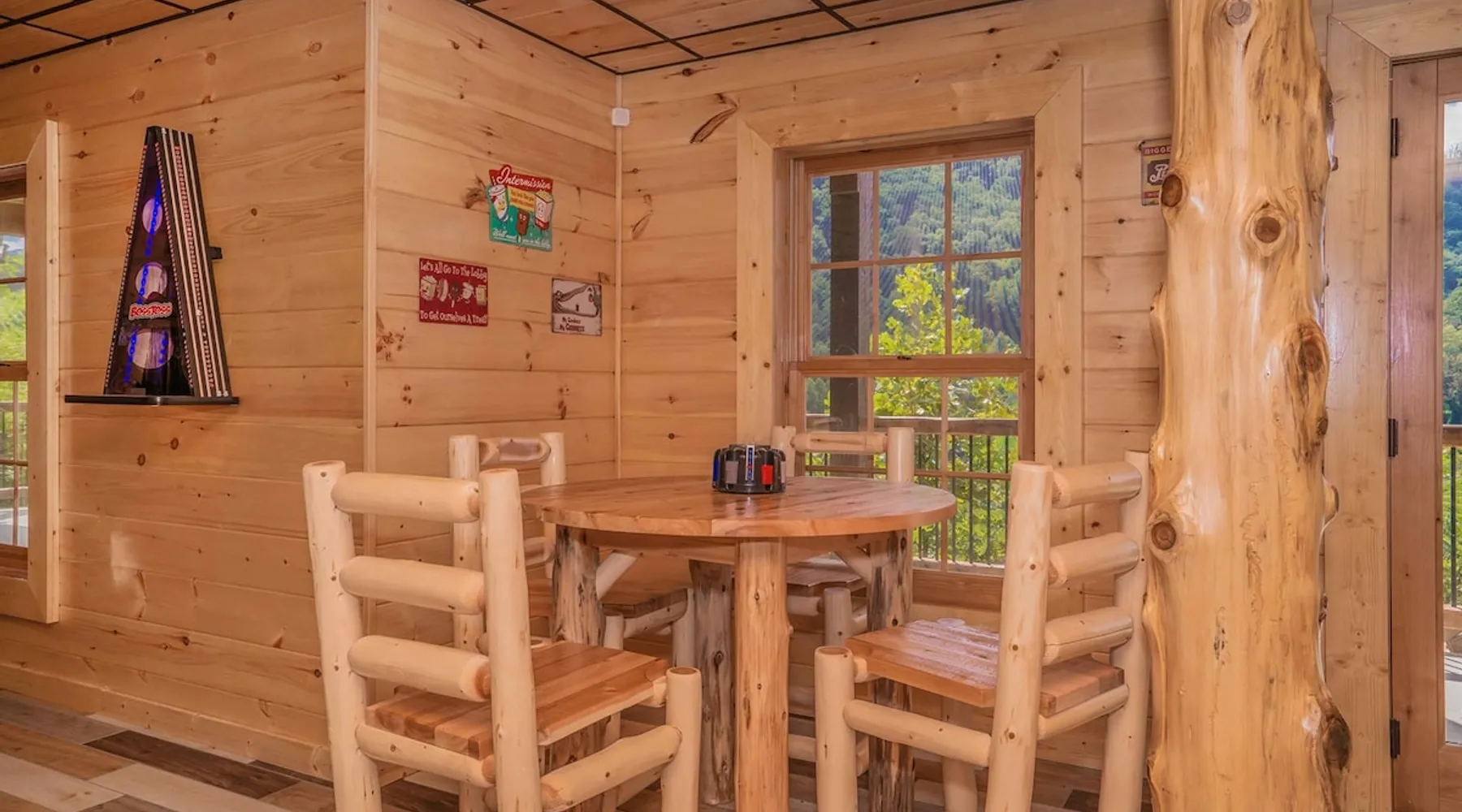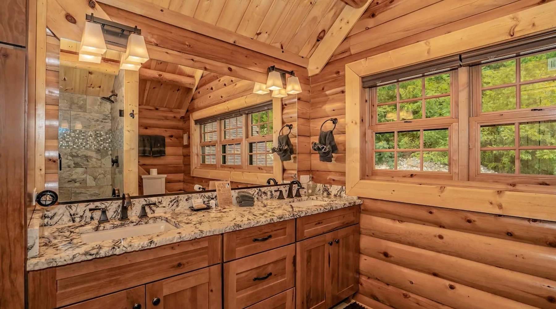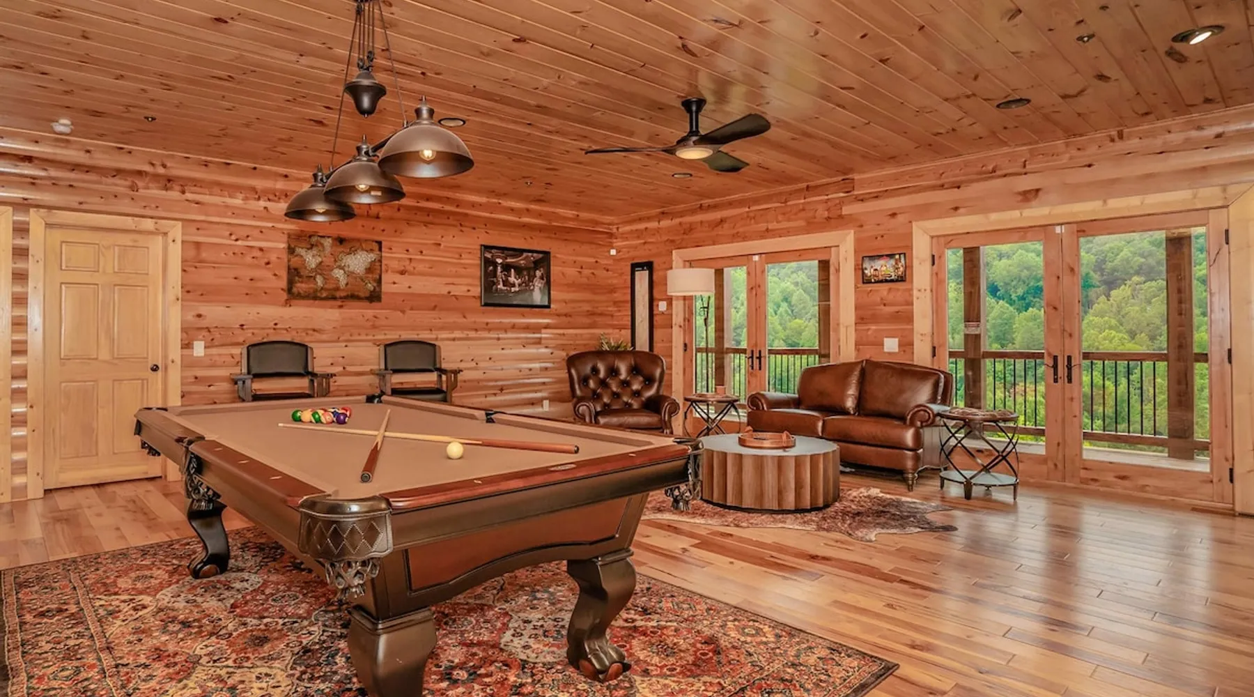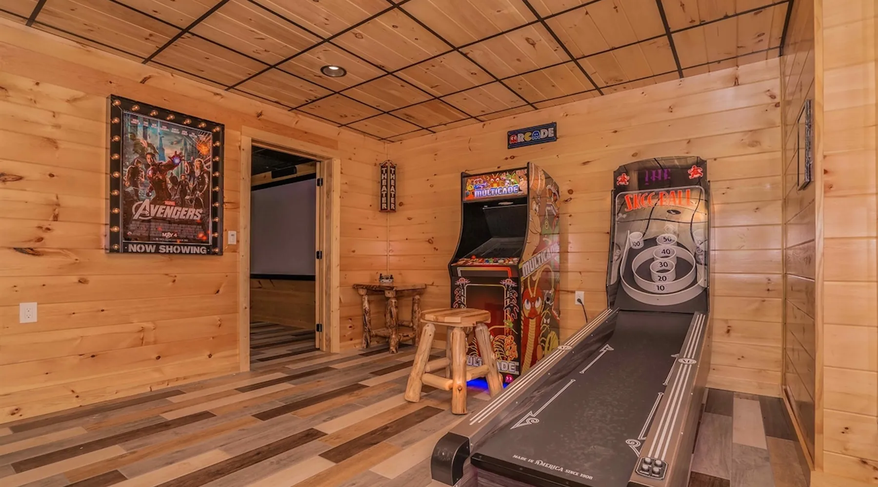 No hidden fees! We do not charge extra cleaning fees. What you see is what you pay. Discover Roaring Fork Lodge, a stunning 6,312 sq. ft. northern white cedar log home in the heart of Gatlinburg. With 4 spacious levels, it comfortably sleeps up to 20 guests. Enjoy luxurious accommodations and easy access to local attractions while being immersed in the beauty of the Great Smoky Mountains. The space Welcome to Roaring Fork Lodge – The Pinnacle of Luxury and Comfort in Gatlinburg Discover Unmatched Luxury and Personalized Service Welcome to Roaring Fork Lodge, where superior quality and exceptional service await. My name is Chris, and alongside my wife Sarah, we personally manage our six cabins to ensure the highest standards of care and cleanliness. Unlike large property management companies, our hands-on approach means that every detail is meticulously attended to, guaranteeing a memorable stay in the Smoky Mountains. Featured in Log and Timber Home Living Magazine: Our Adirondack-Style true log home was proudly featured in the June/July 2023 issue of Log and Timber Home Living Magazine. Roaring Fork Lodge is an exquisite 6,312 sq. ft. northern white cedar custom-built log home, designed to comfortably accommodate up to 20 guests. Nestled in the heart of downtown Gatlinburg, our lodge offers unparalleled luxury and convenience, with privacy ensured by its location at the end of a quiet road. A Unique and Tranquil Retreat: Named after the rushing mountain river below, Roaring Fork Lodge provides a peaceful escape with breathtaking views and the soothing sounds of the flowing river. Our lodge is designed with high-end materials, including: • Northern White Cedar Logs: Sourced from Canada for their durability and natural beauty. • Solid Granite Counter-Tops: Adding elegance to our well-appointed kitchen. • Hand-Scraped Hickory Hardwood Floors: Offering a rustic charm and comfort. • Ceramic Tiled Showers and Floors: For a touch of sophistication. • Custom-Made Cabinetry: Providing functionality and style. Our outdoor spaces feature over 5,000 sq. ft. of deck and patio areas, much of which is covered, perfect for relaxing and enjoying the views. The property is surrounded by natural stone hardscaping and lush shrubs, ensuring privacy and enhancing the rustic ambiance. Explore the Great Outdoors. Roaring Fork Lodge is bordered by the Great Smoky Mountains National Park, offering stunning mountain views and a tranquil environment. Our property features: • Flagstone Walkway and Natural Stone Fire Pit: Located at the edge of the property for a cozy, private retreat. Enjoy seating on large boulders and hang a hammock for afternoon naps or relaxation. Roast hotdogs and make s'mores while soaking in the mountain views. • Grassy Area for Cornhole and Picnics: Perfect for outdoor fun and leisurely meals. • Wildlife Viewing: As our property borders the national park, sightings of black bears and other wildlife are common. Please be mindful of your belongings and waste to avoid attracting wildlife. Convenient Location with Easy Access: Roaring Fork Lodge offers a prime location just 1/2 mile from the bustling Gatlinburg strip, with ample parking on two levels of the driveway. A short 10-minute downhill walk brings you to a trolley station for easy access to downtown Gatlinburg. Keep in mind the walk back is uphill, or you can opt to drive. During special occasions like New Year’s Eve and the 4th of July, enjoy fireworks displays from the comfort of the lodge's back deck. Experience the Best of Both Worlds: Roaring Fork Lodge provides the perfect balance of serenity and convenience. Experience the sights and sounds of Gatlinburg while enjoying the peace and privacy of our mountain retreat. Our lodge is an ideal choice for creating lasting memories with family and friends in the Smoky Mountains. Book Your Stay Today: For a luxurious, spacious, and private escape in Gatlinburg, Roaring Fork Lodge is your ultimate destination. Contact us to check availability and secure your reservation. We are always available by phone or text to assist with any questions or concerns before and during your stay. We look forward to welcoming you to Roaring Fork Lodge, where every detail is designed to provide a memorable and enjoyable vacation experience. Amenities: • Extremely spacious with approximately 6,300 square feet in size with 4 floors • Sleeps up to 20 people • All linens, towels, and starter supply of toiletries provided, including travel size handmade goat's milk soaps • Spectacular large open floor plan on the main level with kitchen, dining and living areas. • The kitchen has a natural gas range, microwave, and electric oven • A beautiful 10 foot long solid walnut slab dining table that seats up to 12 people • Kitchen bar area adjacent to dining table seats an additional 5 people • Outdoor dining table (Outside dining room doors) seats 8 more people on the covered deck • Over 5,000 sf of mostly covered outdoor deck and patio space • Great views of the Smoky Mountains, downtown Gatlinburg, and nature • One (1) mile away From the Gatlinburg main entrance to the national park • Located in the heart of downtown Gatlinburg • Walking distance to the downtown Gatlinburg area, Anakeesta, Aquarium, and Trolley Stop • Views of Anakeesta, Space Needle, and the lights of the downtown strip • Parking for numerous vehicles • All bedrooms have doors with full deck access, except for 4th floor master bedroom • Leather couches and recliners throughout the home • Outdoor hammock posts (Bring Your Hammock) • Fire pit with abundant seating • Charcoal grill • Hot tub located on top deck • 2 gas log fireplaces (Breathtaking 50 inch full view gas fireplace upstairs and 36 inch gas fireplace downstairs) • Endless hot water system so you never run out • Full in cabin movie theater (Leather electric reclining seating | 120 Inch Screen | surround sound) • Arcade game 
