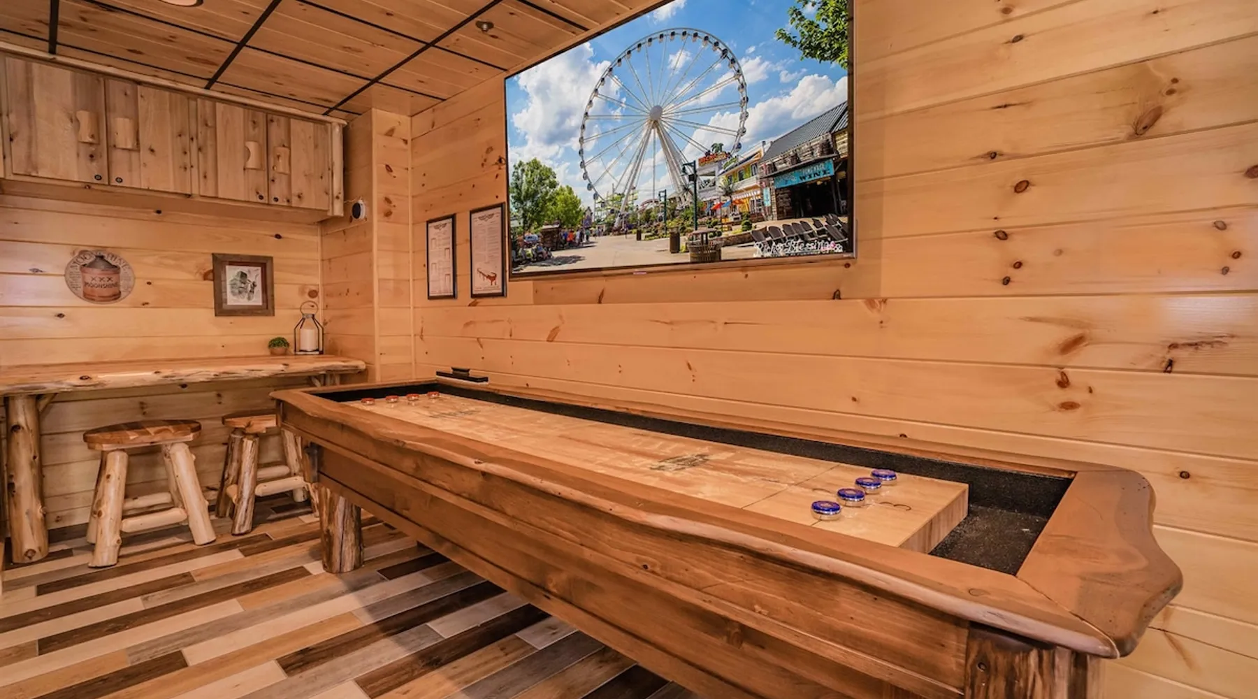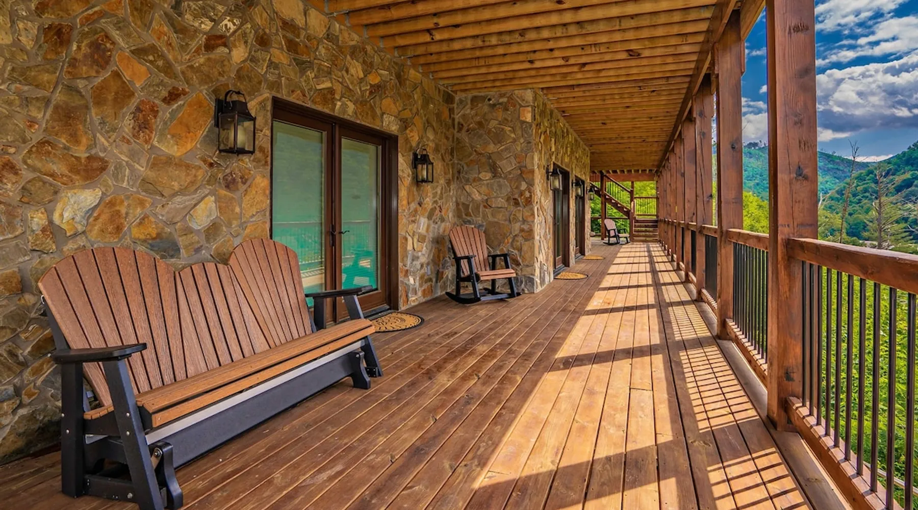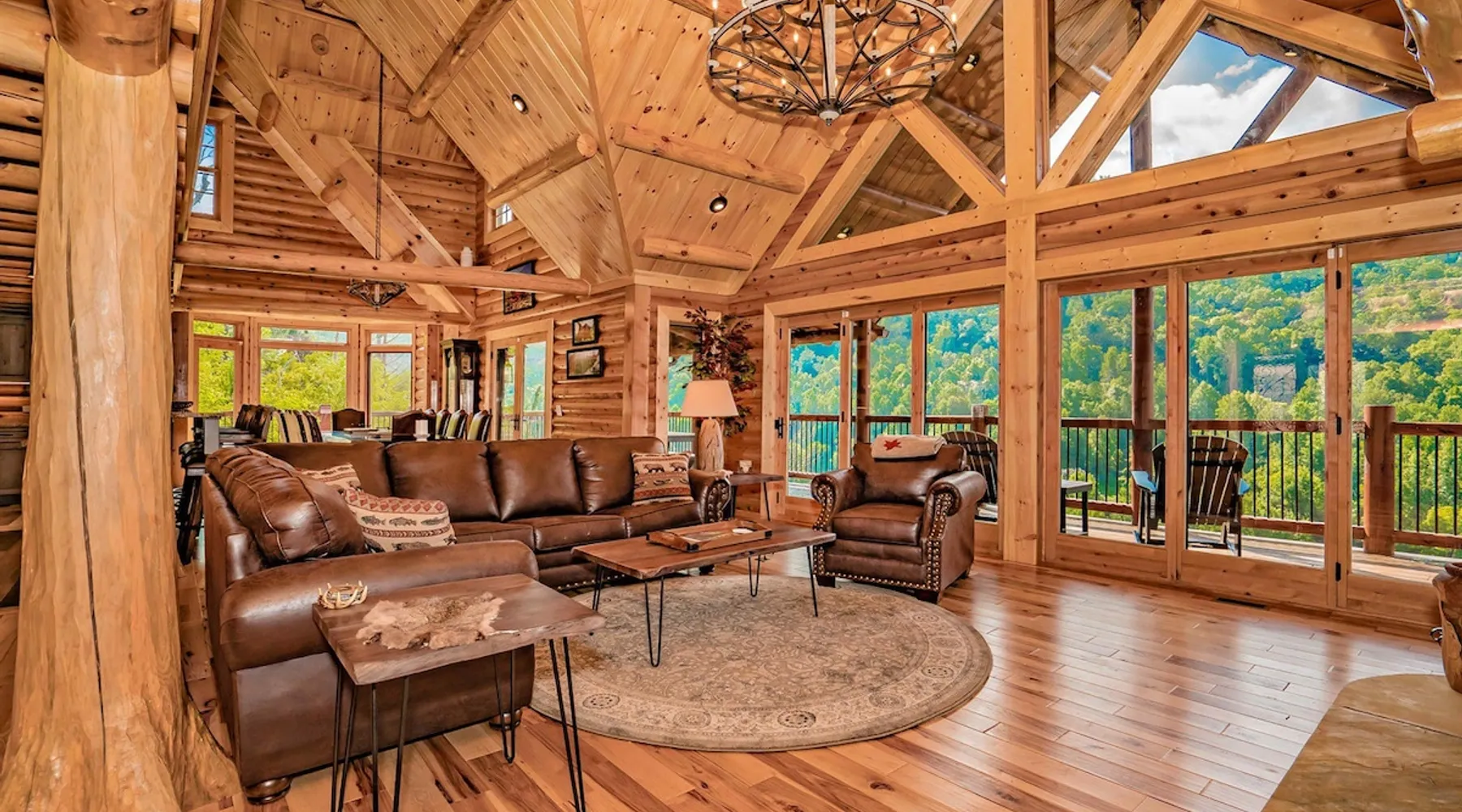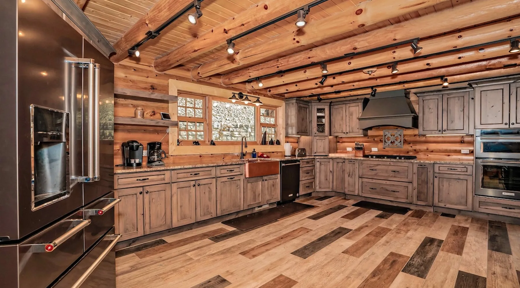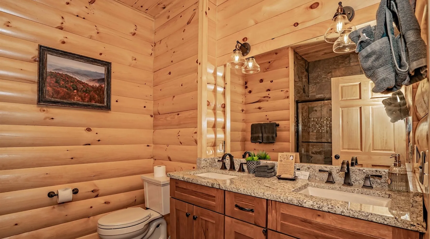 No hidden fees! We do not charge extra cleaning fees. What you see is what you pay. Discover Roaring Fork Lodge, a stunning 6,312 sq. ft. northern white cedar log home in the heart of Gatlinburg. With 4 spacious levels, it comfortably sleeps up to 20 guests. Enjoy luxurious accommodations and easy access to local attractions while being immersed in the beauty of the Great Smoky Mountains. The space Welcome to Roaring Fork Lodge – The Pinnacle of Luxury and Comfort in Gatlinburg Discover Unmatched Luxury and Personalized Service Welcome to Roaring Fork Lodge, where superior quality and exceptional service await. My name is Chris, and alongside my wife Sarah, we personally manage our six cabins to ensure the highest standards of care and cleanliness. Unlike large property management companies, our hands-on approach means that every detail is meticulously attended to, guaranteeing a memorable stay in the Smoky Mountains. Featured in Log and Timber Home Living Magazine: Our Adirondack-Style true log home was proudly featured in the June/July 2023 issue of Log and Timber Home Living Magazine. Roaring Fork Lodge is an exquisite 6,312 sq. ft. northern white cedar custom-built log home, designed to comfortably accommodate up to 20 guests. Nestled in the heart of downtown Gatlinburg, our lodge offers unparalleled luxury and convenience, with privacy ensured by its location at the end of a quiet road. A Unique and Tranquil Retreat: Named after the rushing mountain river below, Roaring Fork Lodge provides a peaceful escape with breathtaking views and the soothing sounds of the flowing river. Our lodge is designed with high-end materials, including: • Northern White Cedar Logs: Sourced from Canada for their durability and natural beauty. • Solid Granite Counter-Tops: Adding elegance to our well-appointed kitchen. • Hand-Scraped Hickory Hardwood Floors: Offering a rustic charm and comfort. • Ceramic Tiled Showers and Floors: For a touch of sophistication. • Custom-Made Cabinetry: Providing functionality and style. Our outdoor spaces feature over 5,000 sq. ft. of deck and patio areas, much of which is covered, perfect for relaxing and enjoying the views. The property is surrounded by natural stone hardscaping and lush shrubs, ensuring privacy and enhancing the rustic ambiance. Explore the Great Outdoors. Roaring Fork Lodge is bordered by the Great Smoky Mountains National Park, offering stunning mountain views and a tranquil environment. Our property features: • Flagstone Walkway and Natural Stone Fire Pit: Located at the edge of the property for a cozy, private retreat. Enjoy seating on large boulders and hang a hammock for afternoon naps or relaxation. Roast hotdogs and make s'mores while soaking in the mountain views. • Grassy Area for Cornhole and Picnics: Perfect for outdoor fun and leisurely meals. • Wildlife Viewing: As our property borders the national park, sightings of black bears and other wildlife are common. Please be mindful of your belongings and waste to avoid attracting wildlife. Convenient Location with Easy Access: Roaring Fork Lodge offers a prime location just 1/2 mile from the bustling Gatlinburg strip, with ample parking on two levels of the driveway. A short 10-minute downhill walk brings you to a trolley station for easy access to downtown Gatlinburg. Keep in mind the walk back is uphill, or you can opt to drive. During special occasions like New Year’s Eve and the 4th of July, enjoy fireworks displays from the comfort of the lodge's back deck. Experience the Best of Both Worlds: Roaring Fork Lodge provides the perfect balance of serenity and convenience. Experience the sights and sounds of Gatlinburg while enjoying the peace and privacy of our mountain retreat. Our lodge is an ideal choice for creating lasting memories with family and friends in the Smoky Mountains. Book Your Stay Today: For a luxurious, spacious, and private escape in Gatlinburg, Roaring Fork Lodge is your ultimate destination. Contact us to check availability and secure your reservation. We are always available by phone or text to assist with any questions or concerns before and during your stay. We look forward to welcoming you to Roaring Fork Lodge, where every detail is designed to provide a memorable and enjoyable vacation experience. Amenities: • Extremely spacious with approximately 6,300 square feet in size with 4 floors • Sleeps up to 20 people • All linens, towels, and starter supply of toiletries provided, including travel size handmade goat's milk soaps • Spectacular large open floor plan on the main level with kitchen, dining and living areas. • The kitchen has a natural gas range, microwave, and electric oven • A beautiful 10 foot long solid walnut slab dining table that seats up to 12 people • Kitchen bar area adjacent to dining table seats an additional 5 people • Outdoor dining table (Outside dining room doors) seats 8 more people on the covered deck • Over 5,000 sf of mostly covered outdoor deck and patio space • Great views of the Smoky Mountains, downtown Gatlinburg, and nature • One (1) mile away From the Gatlinburg main entrance to the national park • Located in the heart of downtown Gatlinburg • Walking distance to the downtown Gatlinburg area, Anakeesta, Aquarium, and Trolley Stop • Views of Anakeesta, Space Needle, and the lights of the downtown strip • Parking for numerous vehicles • All bedrooms have doors with full deck access, except for 4th floor master bedroom • Leather couches and recliners throughout the home • Outdoor hammock posts (Bring Your Hammock) • Fire pit with abundant seating • Charcoal grill • Hot tub located on top deck • 2 gas log fireplaces (Breathtaking 50 inch full view gas fireplace upstairs and 36 inch gas fireplace downstairs) • Endless hot water system so you never run out • Full in cabin movie theater (Leather electric reclining seating | 120 Inch Screen | surround sound) • Arcade game 