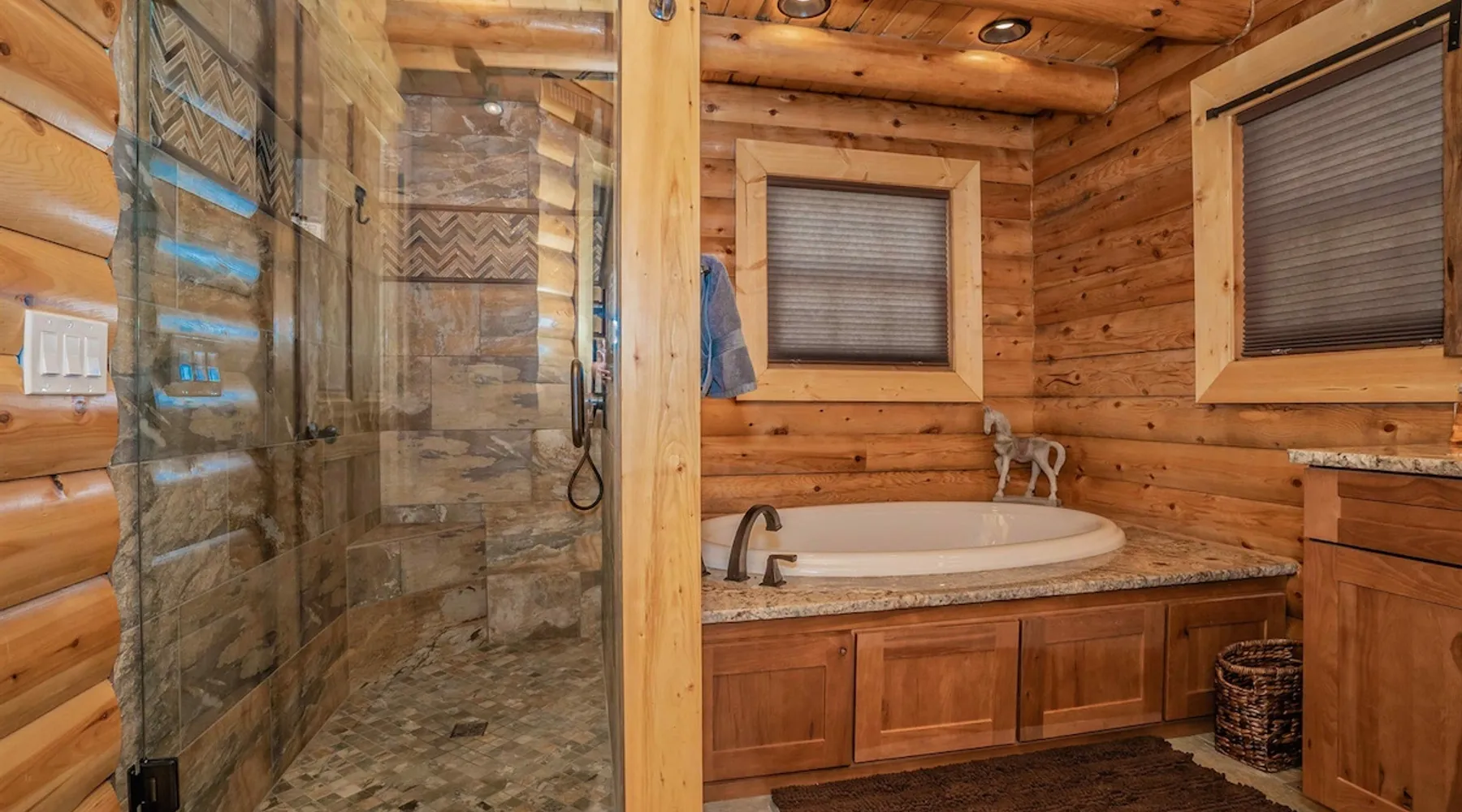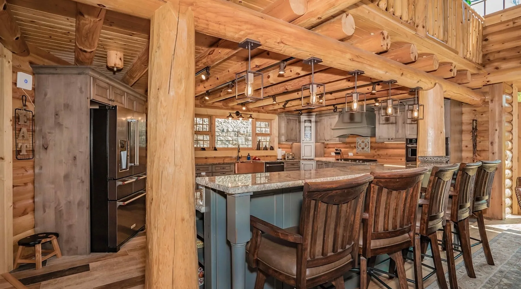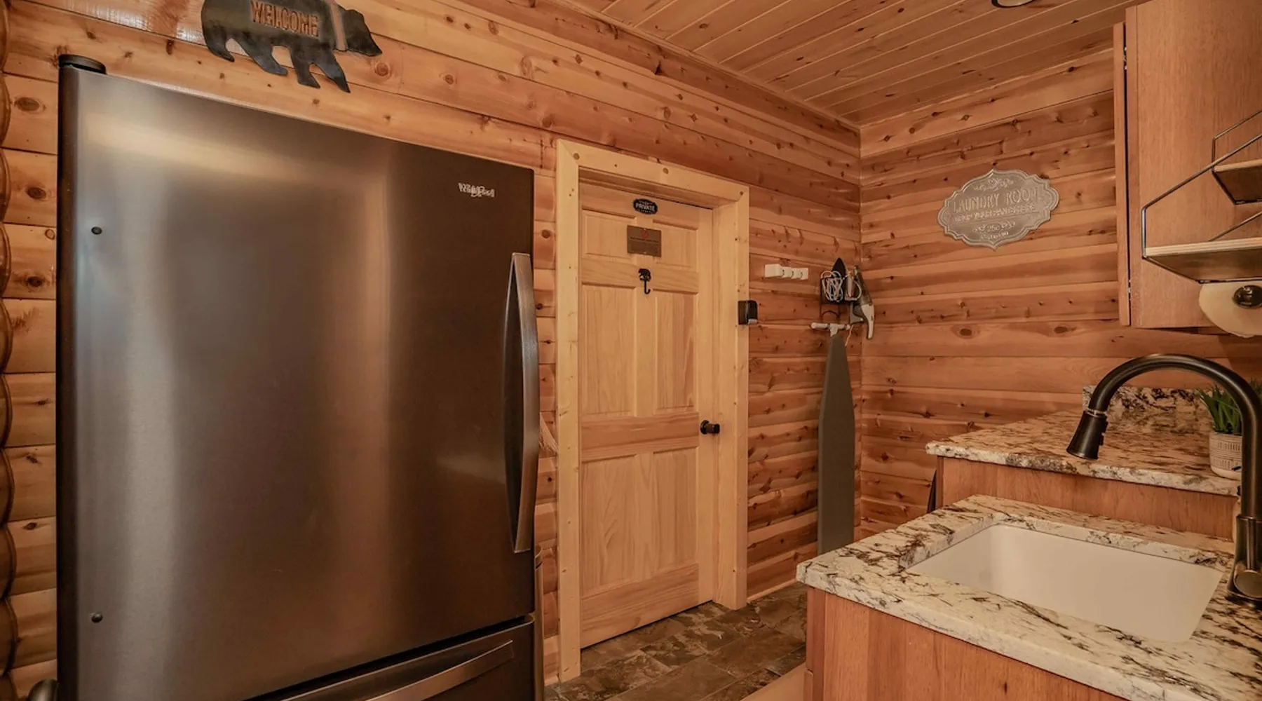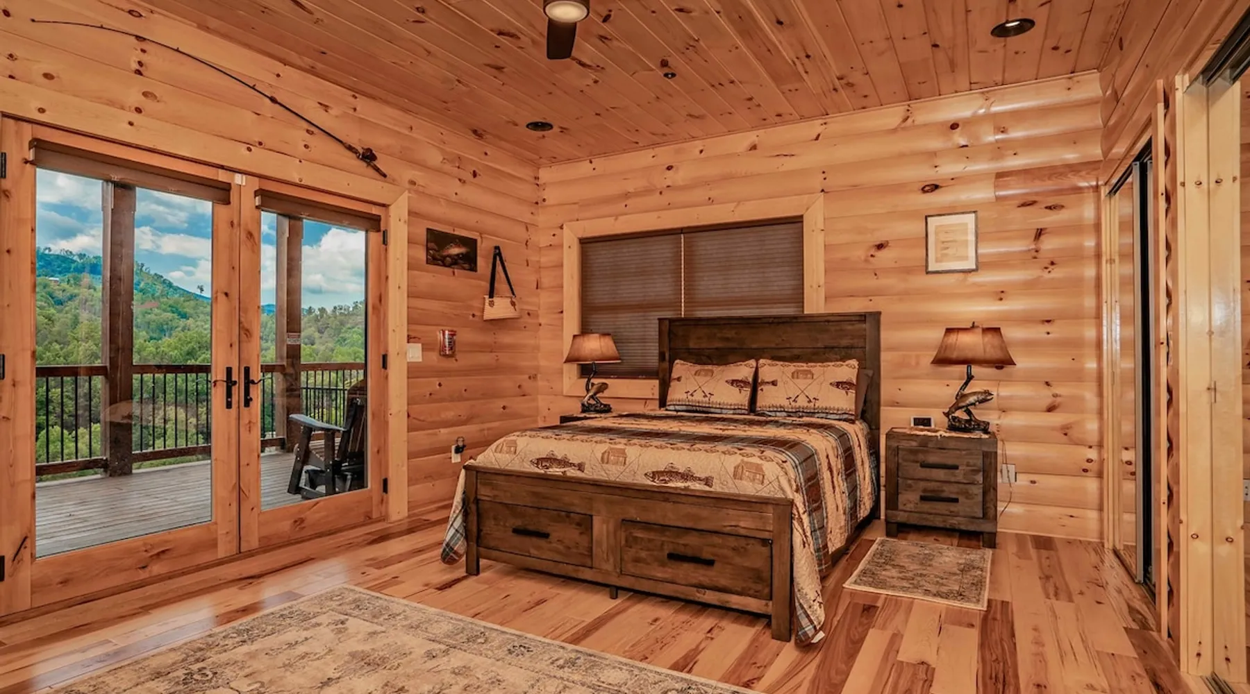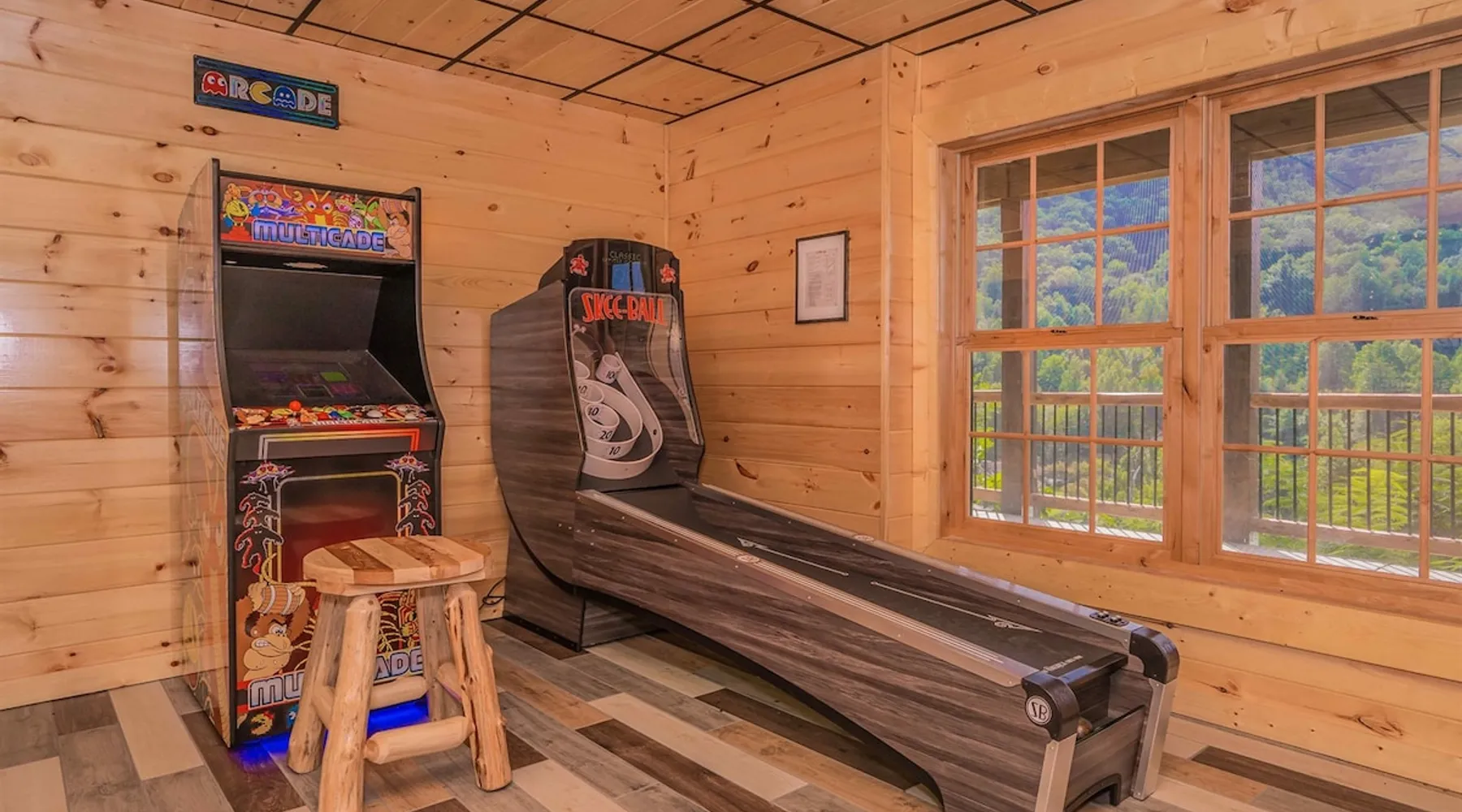 No hidden fees! We do not charge extra cleaning fees. What you see is what you pay. Discover Roaring Fork Lodge, a stunning 6,312 sq. ft. northern white cedar log home in the heart of Gatlinburg. With 4 spacious levels, it comfortably sleeps up to 20 guests. Enjoy luxurious accommodations and easy access to local attractions while being immersed in the beauty of the Great Smoky Mountains. The space Welcome to Roaring Fork Lodge – The Pinnacle of Luxury and Comfort in Gatlinburg Discover Unmatched Luxury and Personalized Service Welcome to Roaring Fork Lodge, where superior quality and exceptional service await. My name is Chris, and alongside my wife Sarah, we personally manage our six cabins to ensure the highest standards of care and cleanliness. Unlike large property management companies, our hands-on approach means that every detail is meticulously attended to, guaranteeing a memorable stay in the Smoky Mountains. Featured in Log and Timber Home Living Magazine: Our Adirondack-Style true log home was proudly featured in the June/July 2023 issue of Log and Timber Home Living Magazine. Roaring Fork Lodge is an exquisite 6,312 sq. ft. northern white cedar custom-built log home, designed to comfortably accommodate up to 20 guests. Nestled in the heart of downtown Gatlinburg, our lodge offers unparalleled luxury and convenience, with privacy ensured by its location at the end of a quiet road. A Unique and Tranquil Retreat: Named after the rushing mountain river below, Roaring Fork Lodge provides a peaceful escape with breathtaking views and the soothing sounds of the flowing river. Our lodge is designed with high-end materials, including: • Northern White Cedar Logs: Sourced from Canada for their durability and natural beauty. • Solid Granite Counter-Tops: Adding elegance to our well-appointed kitchen. • Hand-Scraped Hickory Hardwood Floors: Offering a rustic charm and comfort. • Ceramic Tiled Showers and Floors: For a touch of sophistication. • Custom-Made Cabinetry: Providing functionality and style. Our outdoor spaces feature over 5,000 sq. ft. of deck and patio areas, much of which is covered, perfect for relaxing and enjoying the views. The property is surrounded by natural stone hardscaping and lush shrubs, ensuring privacy and enhancing the rustic ambiance. Explore the Great Outdoors. Roaring Fork Lodge is bordered by the Great Smoky Mountains National Park, offering stunning mountain views and a tranquil environment. Our property features: • Flagstone Walkway and Natural Stone Fire Pit: Located at the edge of the property for a cozy, private retreat. Enjoy seating on large boulders and hang a hammock for afternoon naps or relaxation. Roast hotdogs and make s'mores while soaking in the mountain views. • Grassy Area for Cornhole and Picnics: Perfect for outdoor fun and leisurely meals. • Wildlife Viewing: As our property borders the national park, sightings of black bears and other wildlife are common. Please be mindful of your belongings and waste to avoid attracting wildlife. Convenient Location with Easy Access: Roaring Fork Lodge offers a prime location just 1/2 mile from the bustling Gatlinburg strip, with ample parking on two levels of the driveway. A short 10-minute downhill walk brings you to a trolley station for easy access to downtown Gatlinburg. Keep in mind the walk back is uphill, or you can opt to drive. During special occasions like New Year’s Eve and the 4th of July, enjoy fireworks displays from the comfort of the lodge's back deck. Experience the Best of Both Worlds: Roaring Fork Lodge provides the perfect balance of serenity and convenience. Experience the sights and sounds of Gatlinburg while enjoying the peace and privacy of our mountain retreat. Our lodge is an ideal choice for creating lasting memories with family and friends in the Smoky Mountains. Book Your Stay Today: For a luxurious, spacious, and private escape in Gatlinburg, Roaring Fork Lodge is your ultimate destination. Contact us to check availability and secure your reservation. We are always available by phone or text to assist with any questions or concerns before and during your stay. We look forward to welcoming you to Roaring Fork Lodge, where every detail is designed to provide a memorable and enjoyable vacation experience. Amenities: • Extremely spacious with approximately 6,300 square feet in size with 4 floors • Sleeps up to 20 people • All linens, towels, and starter supply of toiletries provided, including travel size handmade goat's milk soaps • Spectacular large open floor plan on the main level with kitchen, dining and living areas. • The kitchen has a natural gas range, microwave, and electric oven • A beautiful 10 foot long solid walnut slab dining table that seats up to 12 people • Kitchen bar area adjacent to dining table seats an additional 5 people • Outdoor dining table (Outside dining room doors) seats 8 more people on the covered deck • Over 5,000 sf of mostly covered outdoor deck and patio space • Great views of the Smoky Mountains, downtown Gatlinburg, and nature • One (1) mile away From the Gatlinburg main entrance to the national park • Located in the heart of downtown Gatlinburg • Walking distance to the downtown Gatlinburg area, Anakeesta, Aquarium, and Trolley Stop • Views of Anakeesta, Space Needle, and the lights of the downtown strip • Parking for numerous vehicles • All bedrooms have doors with full deck access, except for 4th floor master bedroom • Leather couches and recliners throughout the home • Outdoor hammock posts (Bring Your Hammock) • Fire pit with abundant seating • Charcoal grill • Hot tub located on top deck • 2 gas log fireplaces (Breathtaking 50 inch full view gas fireplace upstairs and 36 inch gas fireplace downstairs) • Endless hot water system so you never run out • Full in cabin movie theater (Leather electric reclining seating | 120 Inch Screen | surround sound) • Arcade game 