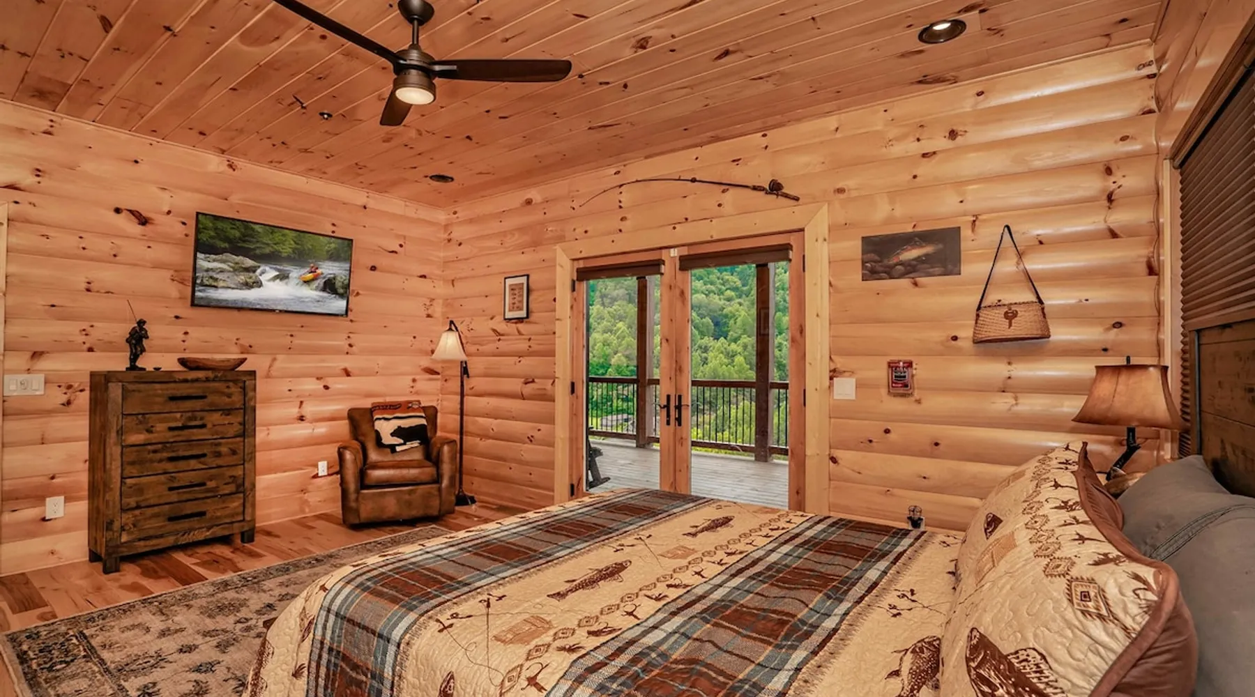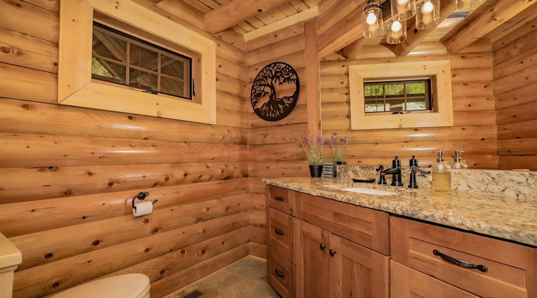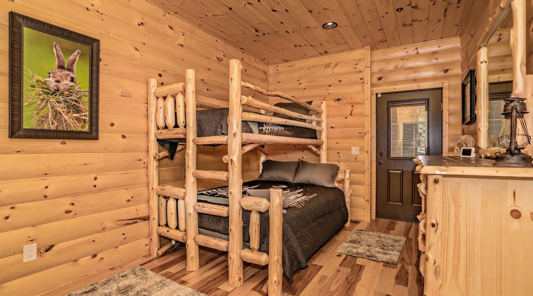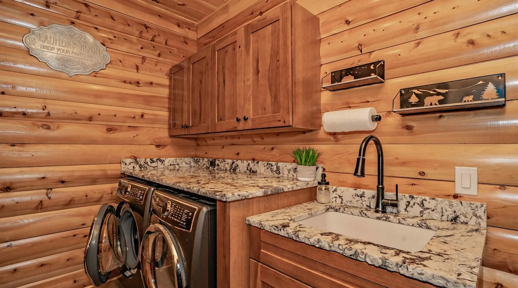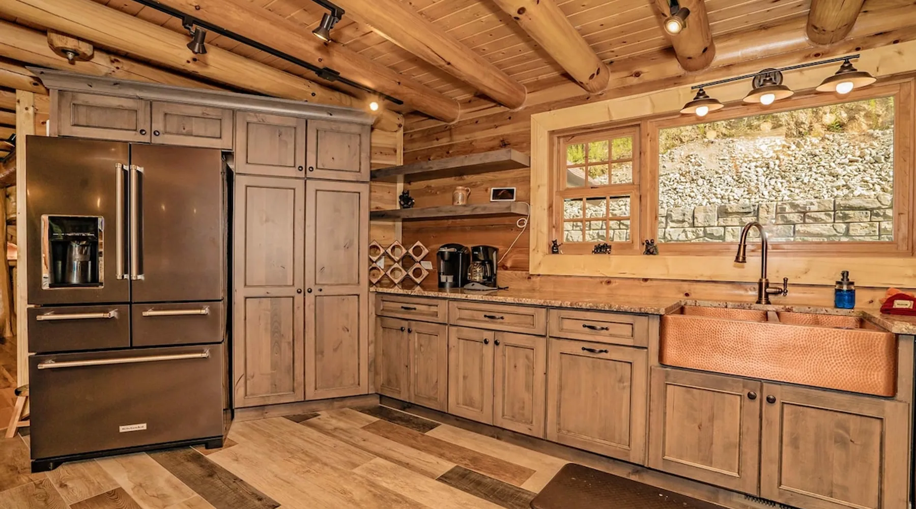 No hidden fees! We do not charge extra cleaning fees. What you see is what you pay. Discover Roaring Fork Lodge, a stunning 6,312 sq. ft. northern white cedar log home in the heart of Gatlinburg. With 4 spacious levels, it comfortably sleeps up to 20 guests. Enjoy luxurious accommodations and easy access to local attractions while being immersed in the beauty of the Great Smoky Mountains. The space Welcome to Roaring Fork Lodge – The Pinnacle of Luxury and Comfort in Gatlinburg Discover Unmatched Luxury and Personalized Service Welcome to Roaring Fork Lodge, where superior quality and exceptional service await. My name is Chris, and alongside my wife Sarah, we personally manage our six cabins to ensure the highest standards of care and cleanliness. Unlike large property management companies, our hands-on approach means that every detail is meticulously attended to, guaranteeing a memorable stay in the Smoky Mountains. Featured in Log and Timber Home Living Magazine: Our Adirondack-Style true log home was proudly featured in the June/July 2023 issue of Log and Timber Home Living Magazine. Roaring Fork Lodge is an exquisite 6,312 sq. ft. northern white cedar custom-built log home, designed to comfortably accommodate up to 20 guests. Nestled in the heart of downtown Gatlinburg, our lodge offers unparalleled luxury and convenience, with privacy ensured by its location at the end of a quiet road. A Unique and Tranquil Retreat: Named after the rushing mountain river below, Roaring Fork Lodge provides a peaceful escape with breathtaking views and the soothing sounds of the flowing river. Our lodge is designed with high-end materials, including: • Northern White Cedar Logs: Sourced from Canada for their durability and natural beauty. • Solid Granite Counter-Tops: Adding elegance to our well-appointed kitchen. • Hand-Scraped Hickory Hardwood Floors: Offering a rustic charm and comfort. • Ceramic Tiled Showers and Floors: For a touch of sophistication. • Custom-Made Cabinetry: Providing functionality and style. Our outdoor spaces feature over 5,000 sq. ft. of deck and patio areas, much of which is covered, perfect for relaxing and enjoying the views. The property is surrounded by natural stone hardscaping and lush shrubs, ensuring privacy and enhancing the rustic ambiance. Explore the Great Outdoors. Roaring Fork Lodge is bordered by the Great Smoky Mountains National Park, offering stunning mountain views and a tranquil environment. Our property features: • Flagstone Walkway and Natural Stone Fire Pit: Located at the edge of the property for a cozy, private retreat. Enjoy seating on large boulders and hang a hammock for afternoon naps or relaxation. Roast hotdogs and make s'mores while soaking in the mountain views. • Grassy Area for Cornhole and Picnics: Perfect for outdoor fun and leisurely meals. • Wildlife Viewing: As our property borders the national park, sightings of black bears and other wildlife are common. Please be mindful of your belongings and waste to avoid attracting wildlife. Convenient Location with Easy Access: Roaring Fork Lodge offers a prime location just 1/2 mile from the bustling Gatlinburg strip, with ample parking on two levels of the driveway. A short 10-minute downhill walk brings you to a trolley station for easy access to downtown Gatlinburg. Keep in mind the walk back is uphill, or you can opt to drive. During special occasions like New Year’s Eve and the 4th of July, enjoy fireworks displays from the comfort of the lodge's back deck. Experience the Best of Both Worlds: Roaring Fork Lodge provides the perfect balance of serenity and convenience. Experience the sights and sounds of Gatlinburg while enjoying the peace and privacy of our mountain retreat. Our lodge is an ideal choice for creating lasting memories with family and friends in the Smoky Mountains. Book Your Stay Today: For a luxurious, spacious, and private escape in Gatlinburg, Roaring Fork Lodge is your ultimate destination. Contact us to check availability and secure your reservation. We are always available by phone or text to assist with any questions or concerns before and during your stay. We look forward to welcoming you to Roaring Fork Lodge, where every detail is designed to provide a memorable and enjoyable vacation experience. Amenities: • Extremely spacious with approximately 6,300 square feet in size with 4 floors • Sleeps up to 20 people • All linens, towels, and starter supply of toiletries provided, including travel size handmade goat's milk soaps • Spectacular large open floor plan on the main level with kitchen, dining and living areas. • The kitchen has a natural gas range, microwave, and electric oven • A beautiful 10 foot long solid walnut slab dining table that seats up to 12 people • Kitchen bar area adjacent to dining table seats an additional 5 people • Outdoor dining table (Outside dining room doors) seats 8 more people on the covered deck • Over 5,000 sf of mostly covered outdoor deck and patio space • Great views of the Smoky Mountains, downtown Gatlinburg, and nature • One (1) mile away From the Gatlinburg main entrance to the national park • Located in the heart of downtown Gatlinburg • Walking distance to the downtown Gatlinburg area, Anakeesta, Aquarium, and Trolley Stop • Views of Anakeesta, Space Needle, and the lights of the downtown strip • Parking for numerous vehicles • All bedrooms have doors with full deck access, except for 4th floor master bedroom • Leather couches and recliners throughout the home • Outdoor hammock posts (Bring Your Hammock) • Fire pit with abundant seating • Charcoal grill • Hot tub located on top deck • 2 gas log fireplaces (Breathtaking 50 inch full view gas fireplace upstairs and 36 inch gas fireplace downstairs) • Endless hot water system so you never run out • Full in cabin movie theater (Leather electric reclining seating | 120 Inch Screen | surround sound) • Arcade game 