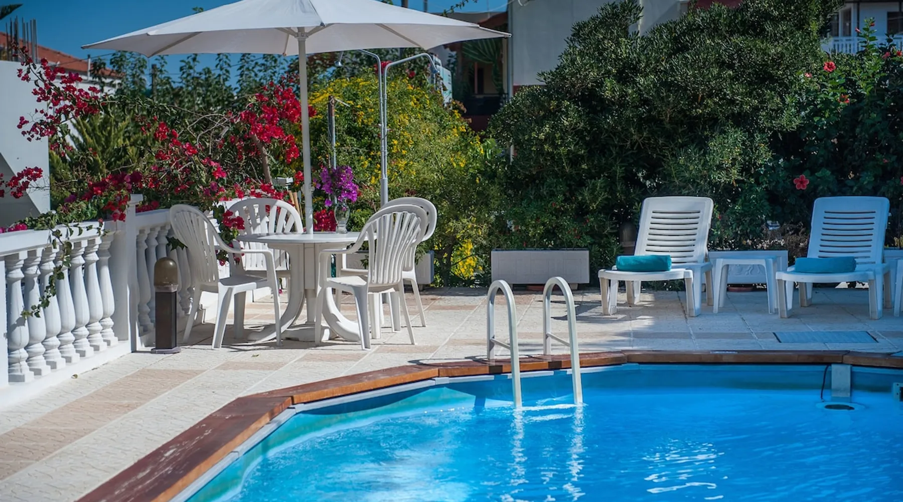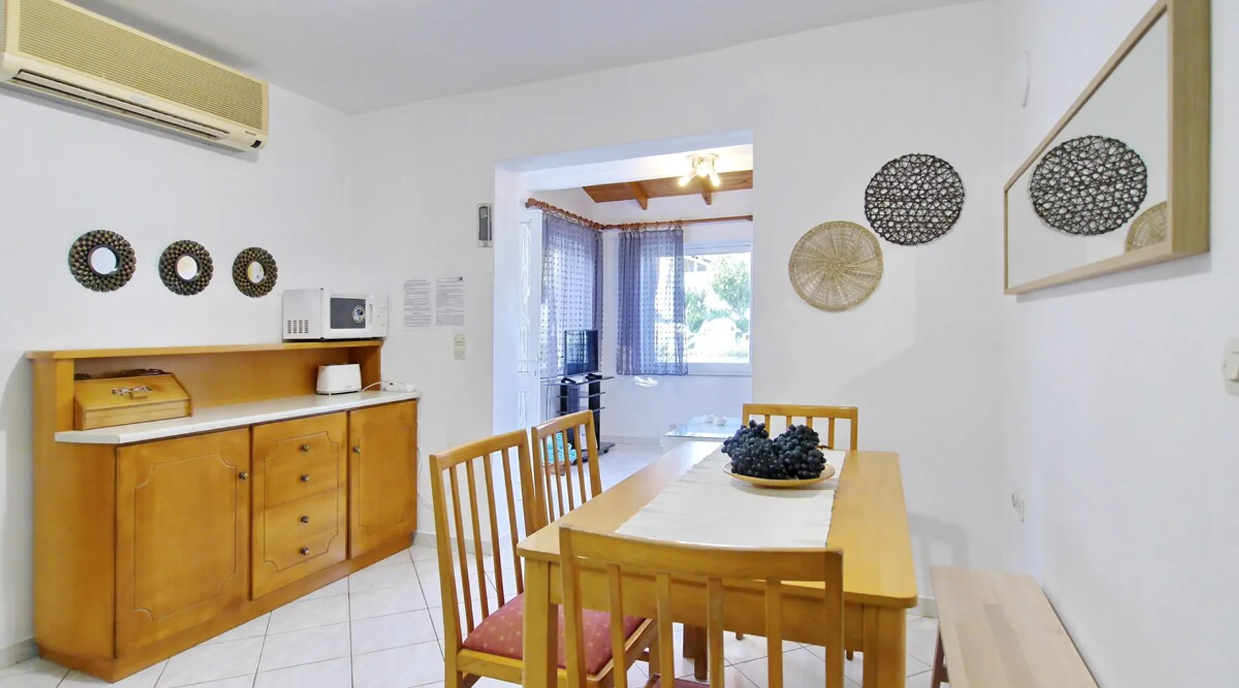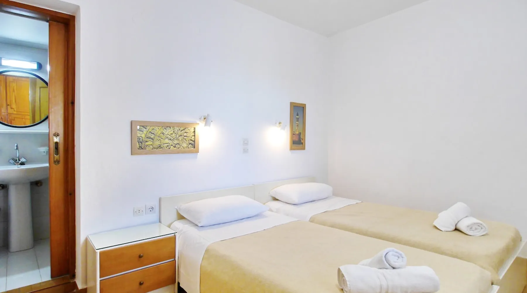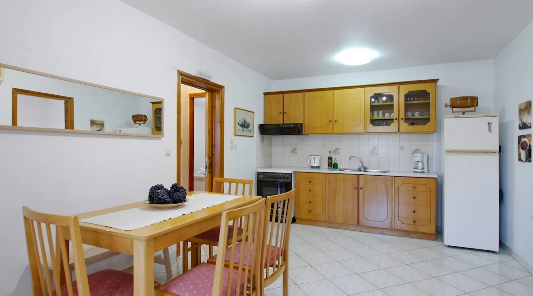 "Smart sea view apt. 5 min walk to beach, tavernas, shops" The space Since the Rouladina flats were introduced to our programme, they have been very popular with our guests who praise the high standards, warm welcome and hospitality of their owners Manolis and Dimitra. There are a total of six individual apartments. All flats share a spectacular 10m x 5m swimming pool, surrounded by terraces with pretty flowers and touches of bougainvillea adding a splash of colour. Behind the flats, vineyards stretch across the tranquil hillside, while from your balcony or the pool, the blue of the sea cuts through the dark green vines. Flat 4 Rouladina, Crete Located at the far end of the flats beyond the pool, three stairs lead down to a small terrace with an entrance leading into the living room (with air-conditioning). From here, an archway leads to the dining room, off of which is the breakfast bar and kitchen. On one side of the dining room is a windowed double bedroom with en-suite bathroom. On the other side, a sliding door leads to the hallway with a bathroom shared by a double bedroom with a small private terrace. This flat stands out for the charm of its private terrace shaded by trees and the proximity to the swimming pool, which makes it particularly attractive for families wishing to keep relaxed. Essential information Max 6 persons 3 bedrooms 2 bathrooms Cleaning service included Shared swimming pool 10 x 5 A/C Included Area of 70 m² Booking information Check-In any day (after 16:00) Check-out any day (before 10:00) Minimum stay 5 nights. Nearby places Beach 500 m Taverns 400 m Supermarkets 350 m Distances from the airport Chania 27 km Ferry Port Souda 1 5 km Heraklion 148 km Equipment of the villa Local TV Hair dryer Toaster Kettle Sun loungers Microwave WiFi Security Fan Departure Day Room Shared Washing Machine Juicer Communal barbecue Coffee machine with filter Iron and ironing board Pool towels Fridge Freezer Cooker Kitchen utensils Local facilities Stalos sandy beach Guest access The apartment and your balcony/terrace are for your private use. The pool is shared use as well as the garden. Bed linen, towels and pool towels are provided. The cleaner will come during your stay and change them according to the days of your stay. All this is included in the price. Other things to note Housekeeping Your apartment will be prepared for you on arrival with fresh bath and hand towels and all beds made up. For stays of 7 nights or more - house towels will be changed every 3 - 4 days. For stays of 14 nights or more - bed linen will be changed every 7 days. Pool/beach towels - one per person for the duration of your stay. Note that this is a professionally run rental villa which as been licensed by the Greek National Tourist Organization, EOT, which is required by the Greek law. This license allows the property owners to legally rent their accommodation to holiday makers, so that they comply to a set of standards and specific conditions for the safety & comfort of it's paying customers. Greek Climate Tax: The Greek Government has introduced a new tourist tax (Climate Crisis Resilience Fee) with effect from January 2024. This applies to villa rentals, apartments and hotels, between March and November. From 1/1/2025, the applicable tourist tax is 2.00 € per apt. per night. You’ll be asked to pay the tax, in cash, soon after you check-in. Registration Details 1042Κ032Α0138800