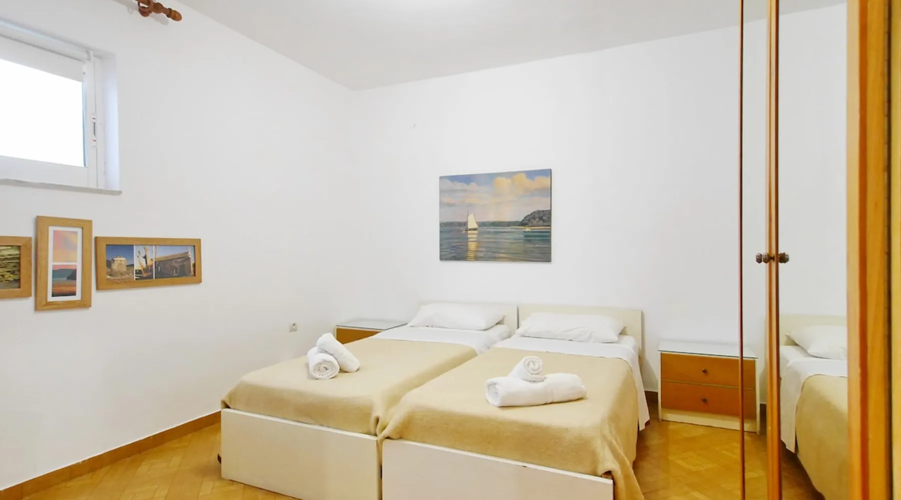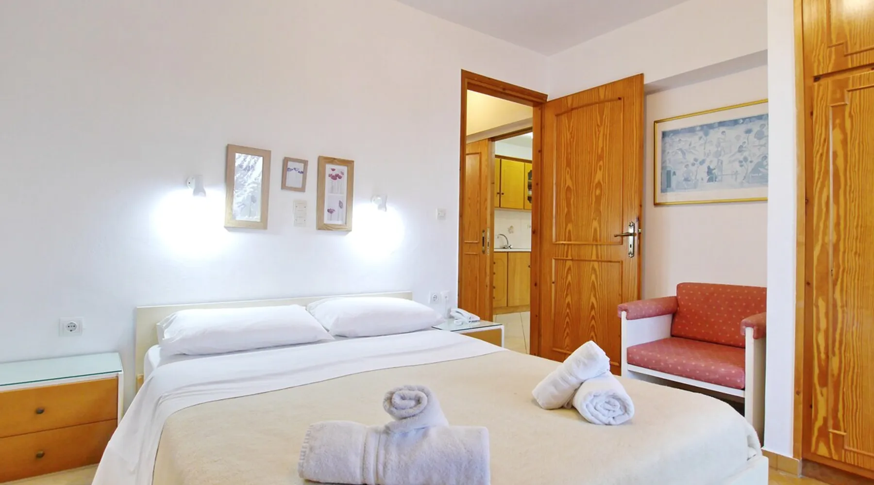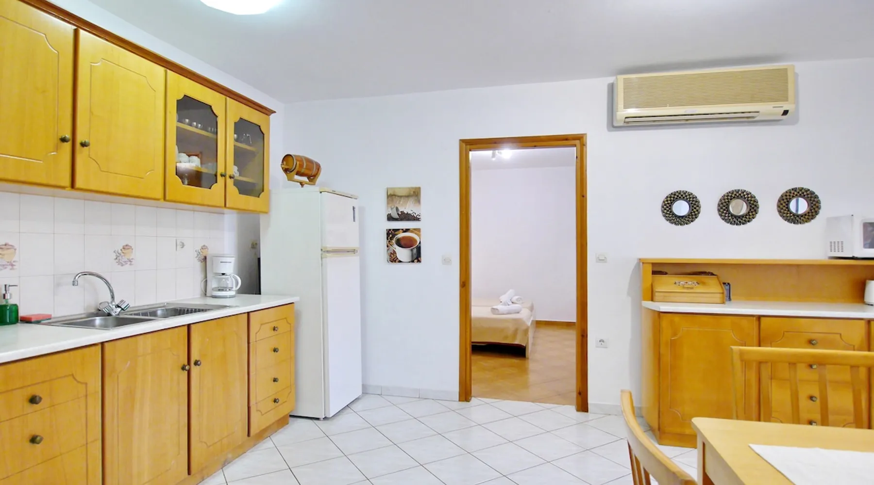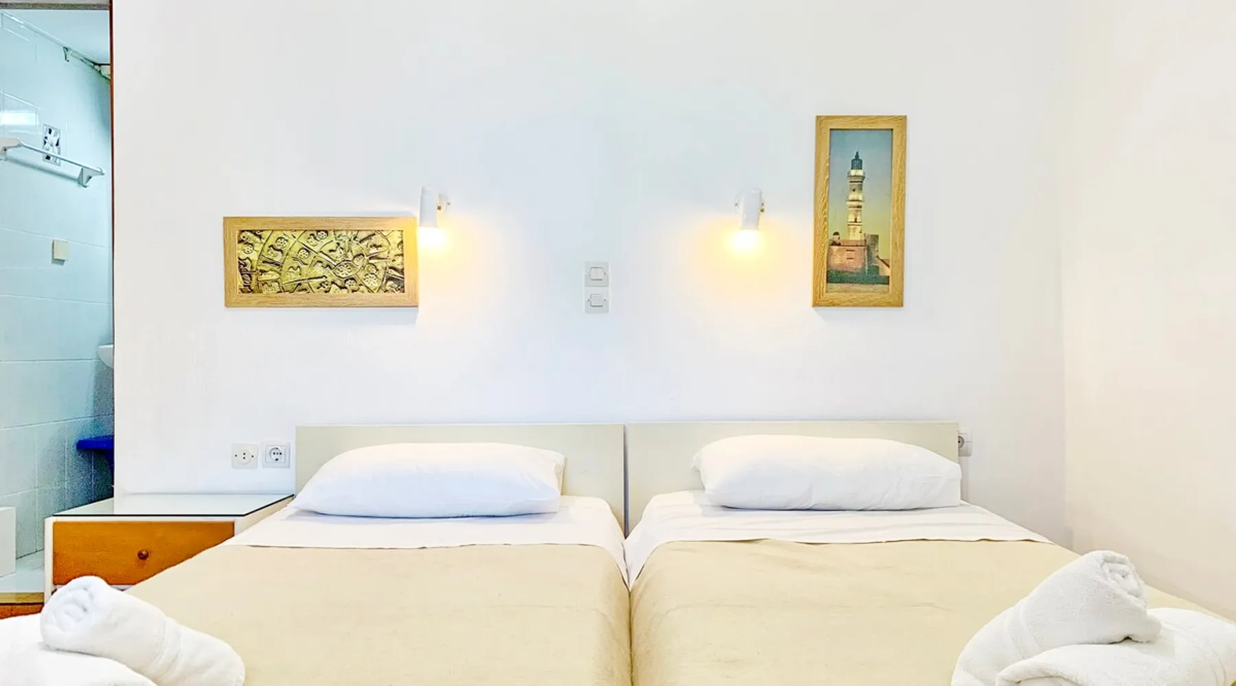"Smart sea view apt. 5 min walk to beach, tavernas, shops" The space Since the Rouladina flats were introduced to our programme, they have been very popular with our guests who praise the high standards, warm welcome and hospitality of their owners Manolis and Dimitra. There are a total of six individual apartments. All flats share a spectacular 10m x 5m swimming pool, surrounded by terraces with pretty flowers and touches of bougainvillea adding a splash of colour. Behind the flats, vineyards stretch across the tranquil hillside, while from your balcony or the pool, the blue of the sea cuts through the dark green vines. Flat 4 Rouladina, Crete Located at the far end of the flats beyond the pool, three stairs lead down to a small terrace with an entrance leading into the living room (with air-conditioning). From here, an archway leads to the dining room, off of which is the breakfast bar and kitchen. On one side of the dining room is a windowed double bedroom with en-suite bathroom. On the other side, a sliding door leads to the hallway with a bathroom shared by a double bedroom with a small private terrace. This flat stands out for the charm of its private terrace shaded by trees and the proximity to the swimming pool, which makes it particularly attractive for families wishing to keep relaxed. Essential information Max 6 persons 3 bedrooms 2 bathrooms Cleaning service included Shared swimming pool 10 x 5 A/C Included Area of 70 m² Booking information Check-In any day (after 16:00) Check-out any day (before 10:00) Minimum stay 5 nights. Nearby places Beach 500 m Taverns 400 m Supermarkets 350 m Distances from the airport Chania 27 km Ferry Port Souda 1 5 km Heraklion 148 km Equipment of the villa Local TV Hair dryer Toaster Kettle Sun loungers Microwave WiFi Security Fan Departure Day Room Shared Washing Machine Juicer Communal barbecue Coffee machine with filter Iron and ironing board Pool towels Fridge Freezer Cooker Kitchen utensils Local facilities Stalos sandy beach Guest access The apartment and your balcony/terrace are for your private use. The pool is shared use as well as the garden. Bed linen, towels and pool towels are provided. The cleaner will come during your stay and change them according to the days of your stay. All this is included in the price. Other things to note Housekeeping Your apartment will be prepared for you on arrival with fresh bath and hand towels and all beds made up. For stays of 7 nights or more - house towels will be changed every 3 - 4 days. For stays of 14 nights or more - bed linen will be changed every 7 days. Pool/beach towels - one per person for the duration of your stay. Note that this is a professionally run rental villa which as been licensed by the Greek National Tourist Organization, EOT, which is required by the Greek law. This license allows the property owners to legally rent their accommodation to holiday makers, so that they comply to a set of standards and specific conditions for the safety & comfort of it's paying customers. Greek Climate Tax: The Greek Government has introduced a new tourist tax (Climate Crisis Resilience Fee) with effect from January 2024. This applies to villa rentals, apartments and hotels, between March and November. From 1/1/2025, the applicable tourist tax is 2.00 € per apt. per night. You’ll be asked to pay the tax, in cash, soon after you check-in. Registration Details 1042Κ032Α0138800