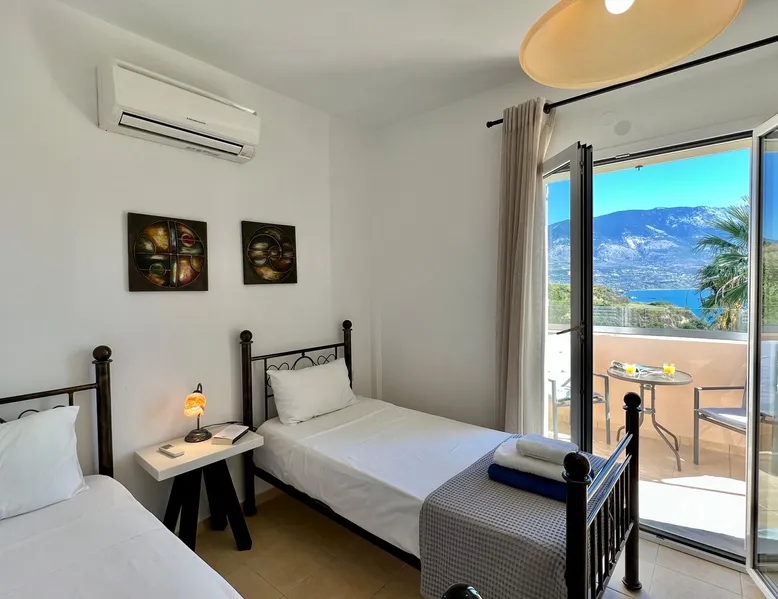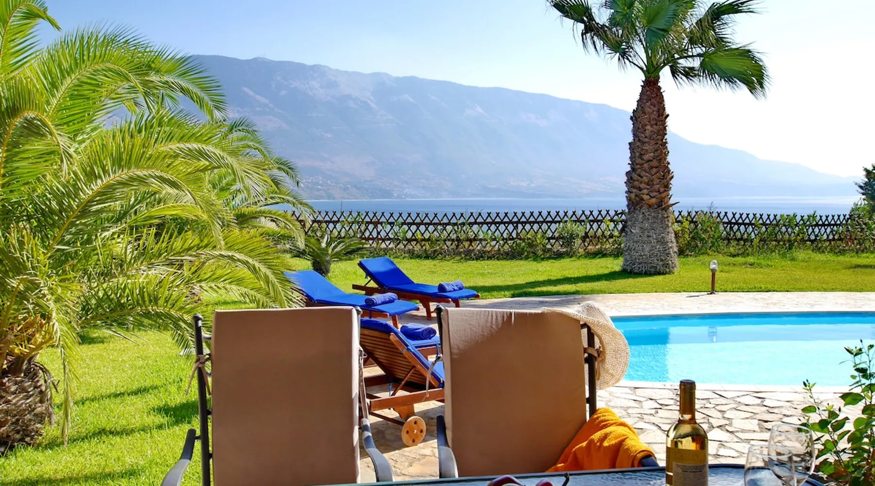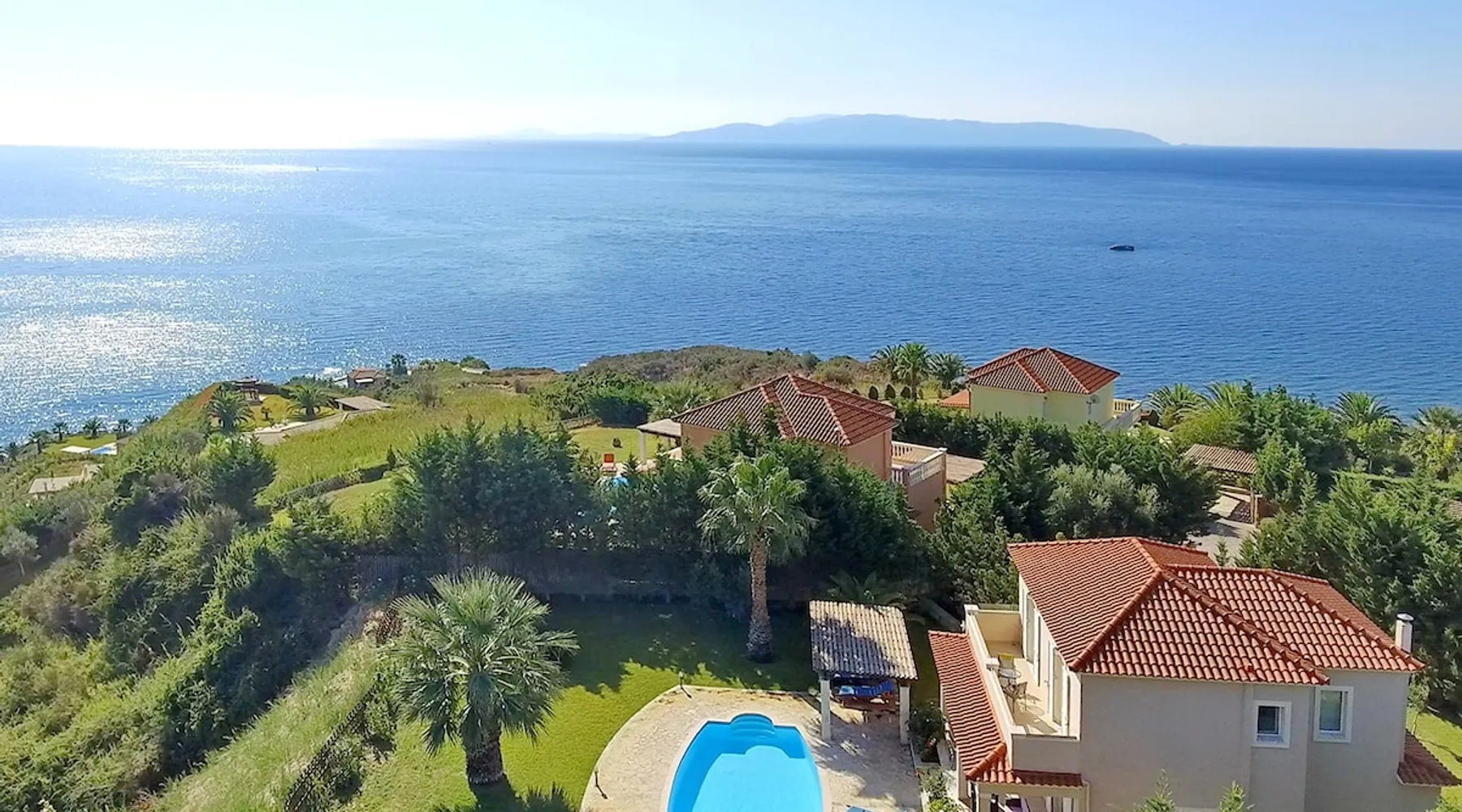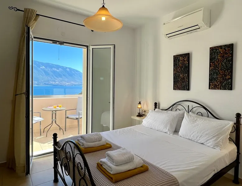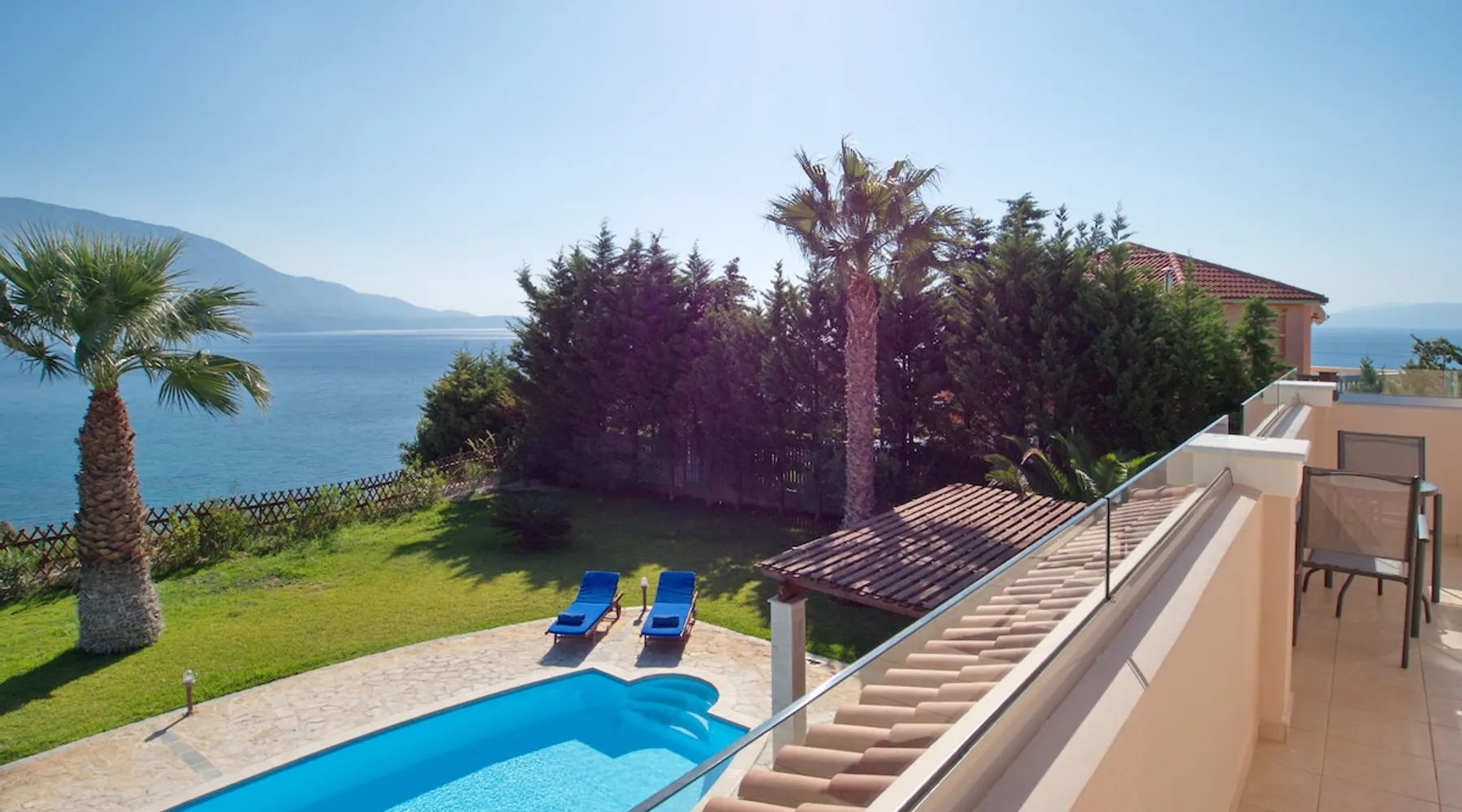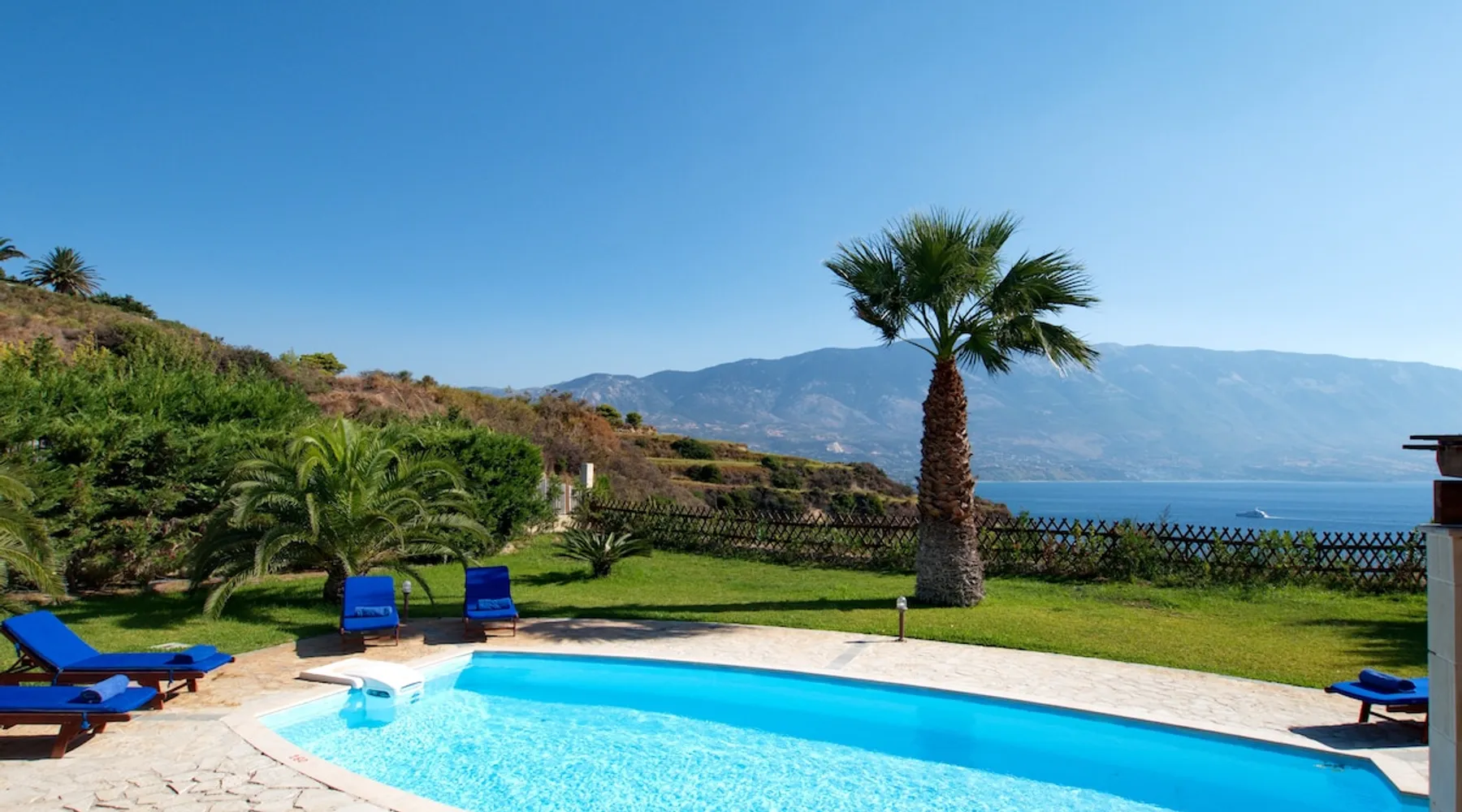 Villa Eros, a truly comfortable and beautifully laid out, sea view Villa , which is really five star when it comes to outside living. It's extensive area of lawns and copious area of covered terraces make it a truly excellent choice for families. One of a select group of Villas sharing the peninsular just south of the village of Spartia. The space Villa Eros, Spartia, Kefalonia With nothing short of fabulous views across the sea towards Mount Aenos, Villa Eros is one of a small and select group of Villas, a few kilometers from tiny Spartia village. A short walk down the hill takes you to an interesting rock formation with a platform lapped by the sea, equipped with sun beds and an ideal place to snorkel (see the video). Location There's a sandy beach just a 5 min drive away, above which The Waterways Taverna entices boat owners to tie up at the small jetty below. There's also a couple of tavernas amongst Spartia's maze of narrow streets, where there are also two mini markets. For a wider choice it is not much more than a 15 min drive to Argostoli where an evening walking the promenade and around the square before making a choice of restaurants is not to be missed. Outside Villa Eros Swimming Pool - 9m x 4.5m private pool with Roman step entry Pool depths 1.20m -1.60m. Sun Terrace - furnished with sun loungers. Pergola - poolside, with comfortable rattan sofa and chairs, sea view. Dining Terrace - Covered dining area with table and chairs. Pool views. BBQ - to the side of the villa. Garden - lawns bordered by shrubs. Inside Villa Eros Open plan living room Sitting Area – Two comfy sofas, plasma TV with satellite, DVD player and two large French doors to the covered dining terrace, with pool view. Air Con Unit. Dining Area - Wooden table and seating for six. Kitchen Area - Wooden fitted cupboards, double sink, electric oven with hobs, microwave, dishwasher, washing machine and fridge freezer. Window above the sink to the garden. Twin bedroom – Two single beds, French windows to side. Air Con Unit. Shower room - Shower with glass surround and door, washbasin and WC. First Floor Double bedroom with en suite bath/shower room - Double bed. French doors to balcony with sea views. Tiled en suite bathroom with bath and shower attachment, wash basin, WC. Air con unit Twin bedroom with en suite shower room - Two single beds, French doors to balcony with sea view. Tiled en suite bathroom with bath and separate shower cubicle, wash basin, WC. Air con unit Essential Grocery Pack - on arrival you will find a few essentials to begin your holiday. Guest access The villa and pool is for your private use only as well as the garden. Bed linen & towels are provided as well as pool towels. The cleaner will come in during your stay & change them, depending on how many days you are staying. All of this is included in the price. Other things to note Housekeeping Your Villa will be prepared for you on arrival with fresh bath and hand towels and all beds made up. For stays of 7 nights or more - house towels will be changed every 3 - 4 days. For stays of 14 nights or more - bed linen will be changed every 7 days. Pool/beach towels - one per person for the duration of your stay. If you need a travel cot or a high chair (usually for children up to 2 years old), please request when booking so we can have it ready for your arrival. Optional chargeable services: - Second High Chair - Second Cot Note that this is a professionally run rental villa which has been licensed by the Greek National Tourist Organization (EOT), which is required by the Greek law. This license allows the property owners to legally rent their accommodation to holiday makers, so that they comply to a set of standards and specific conditions for the safety & comfort of its paying customers. Registration Details 1237078
