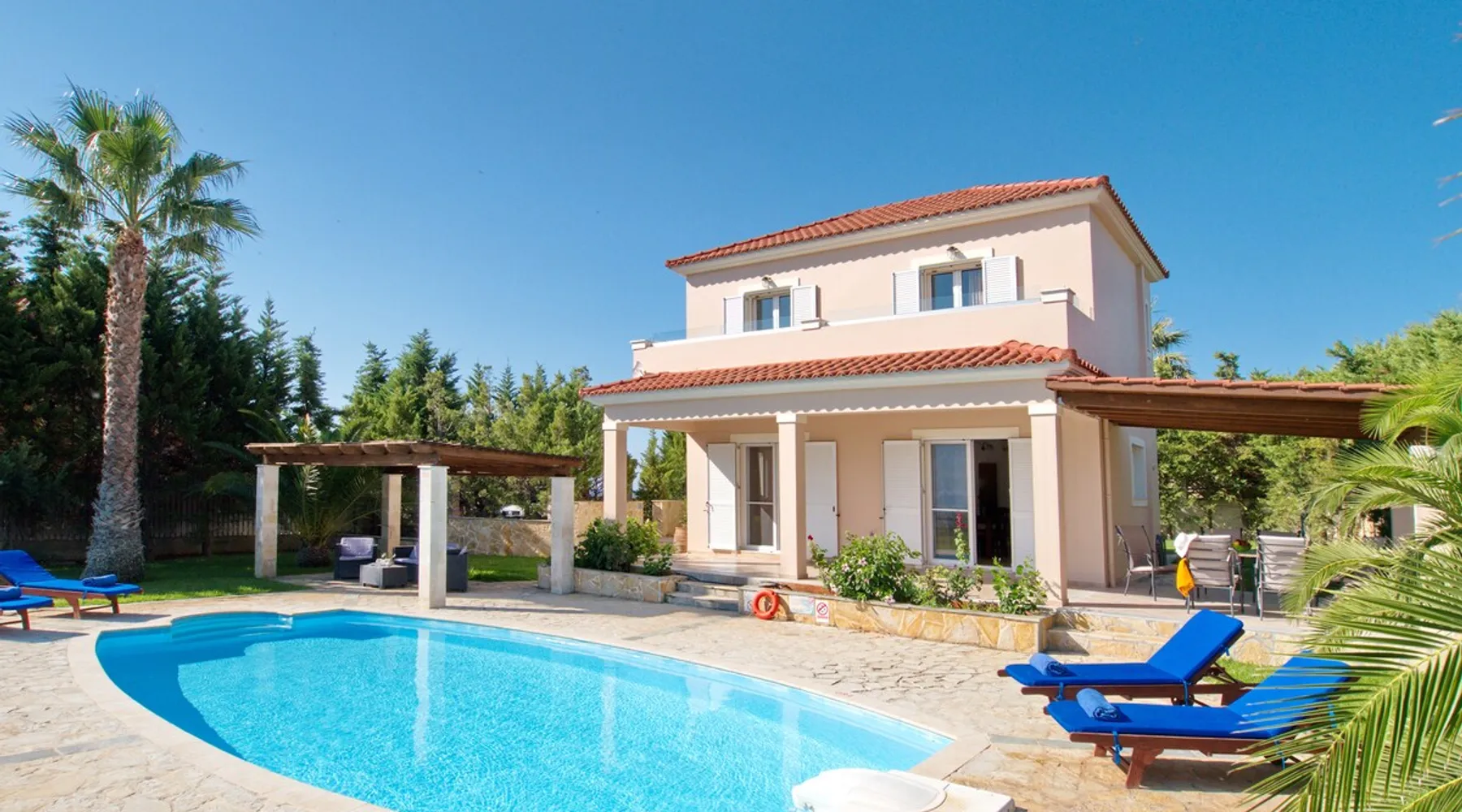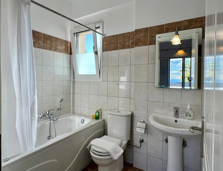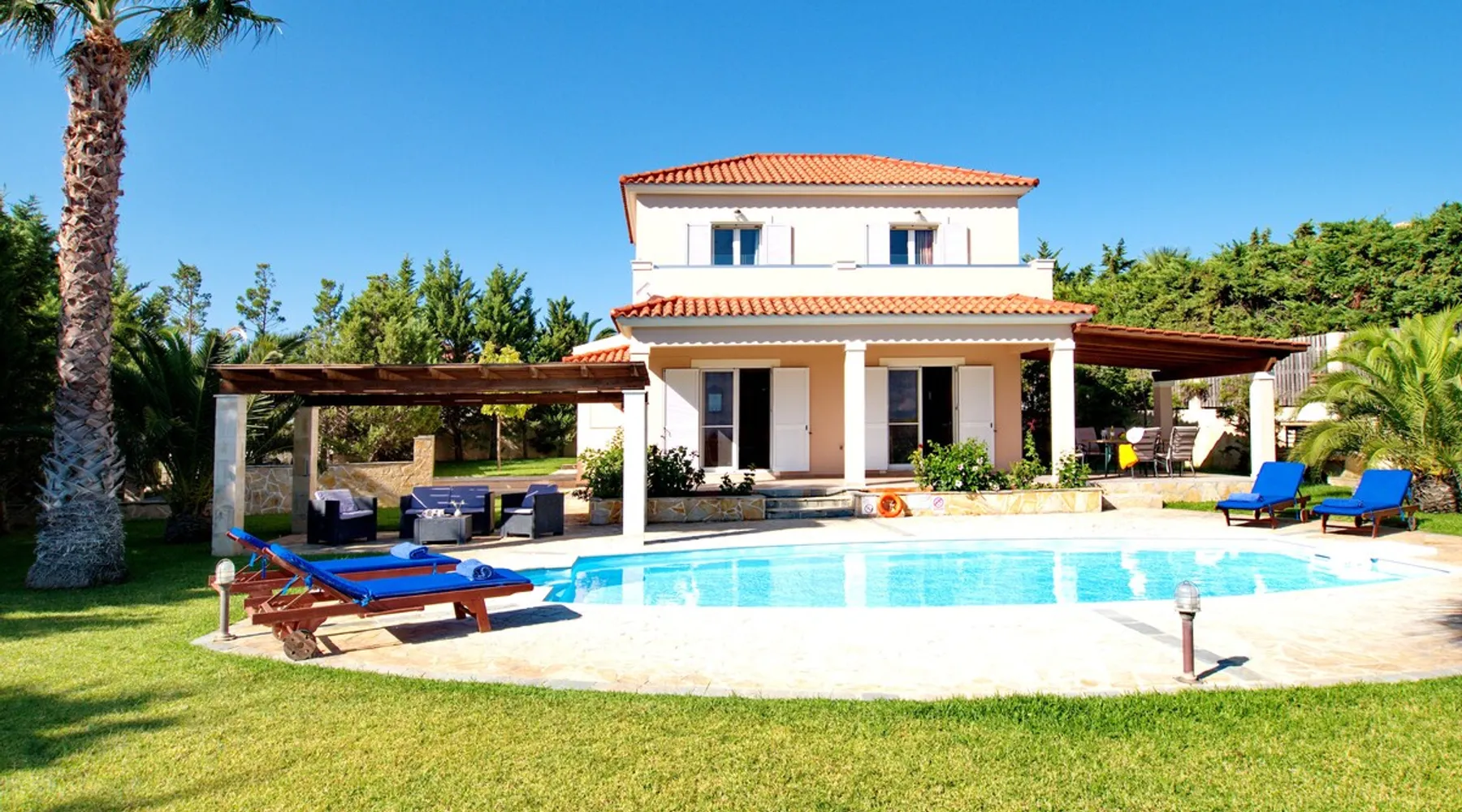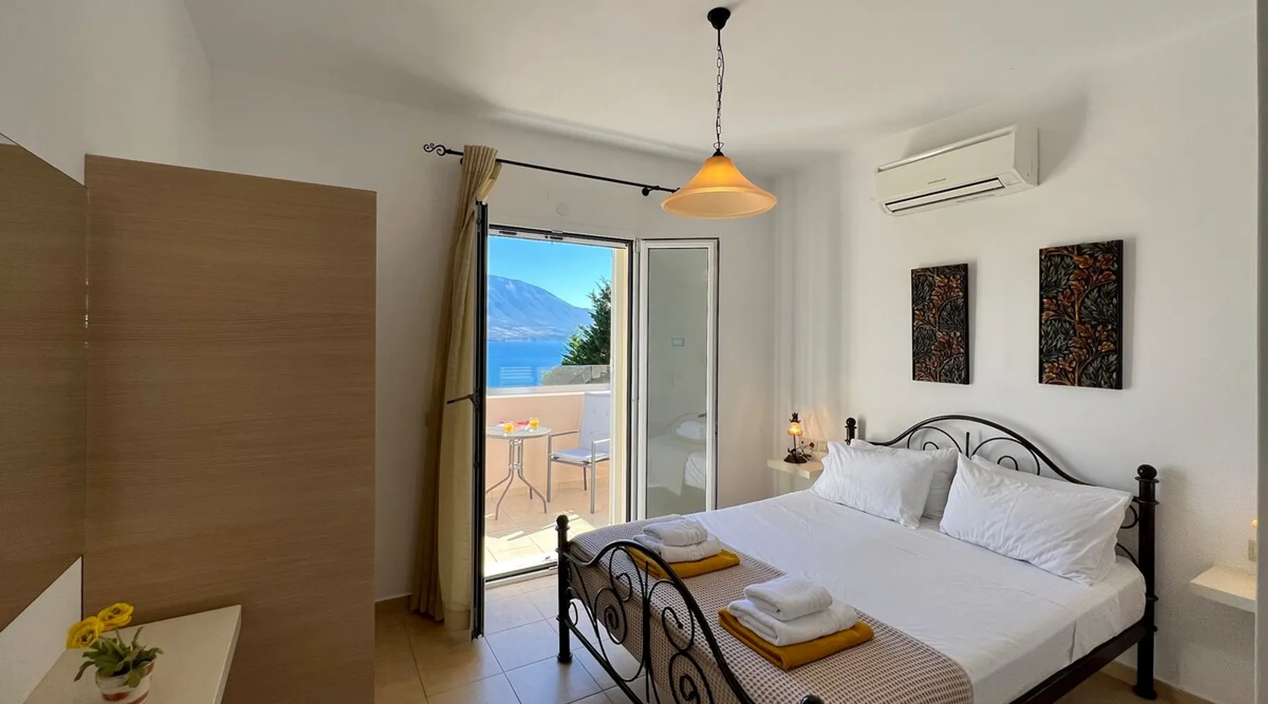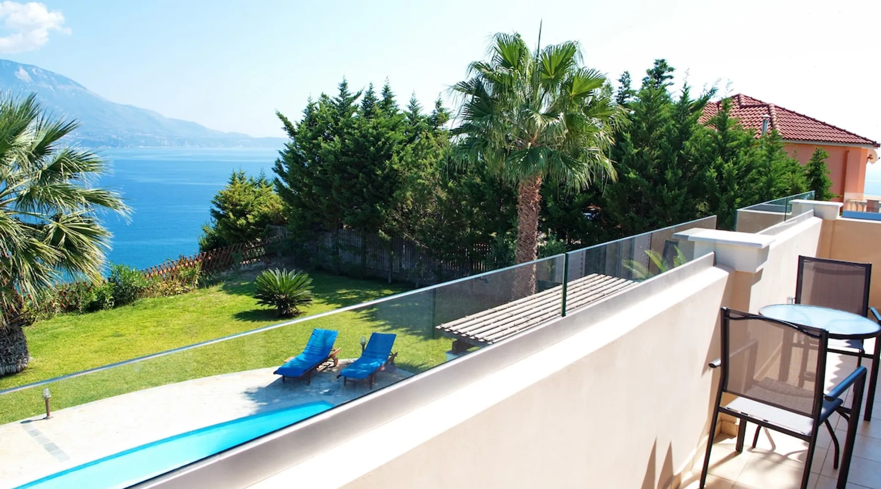 Villa Eros, a truly comfortable and beautifully laid out, sea view Villa , which is really five star when it comes to outside living. It's extensive area of lawns and copious area of covered terraces make it a truly excellent choice for families. One of a select group of Villas sharing the peninsular just south of the village of Spartia. The space Villa Eros, Spartia, Kefalonia With nothing short of fabulous views across the sea towards Mount Aenos, Villa Eros is one of a small and select group of Villas, a few kilometers from tiny Spartia village. A short walk down the hill takes you to an interesting rock formation with a platform lapped by the sea, equipped with sun beds and an ideal place to snorkel (see the video). Location There's a sandy beach just a 5 min drive away, above which The Waterways Taverna entices boat owners to tie up at the small jetty below. There's also a couple of tavernas amongst Spartia's maze of narrow streets, where there are also two mini markets. For a wider choice it is not much more than a 15 min drive to Argostoli where an evening walking the promenade and around the square before making a choice of restaurants is not to be missed. Outside Villa Eros Swimming Pool - 9m x 4.5m private pool with Roman step entry Pool depths 1.20m -1.60m. Sun Terrace - furnished with sun loungers. Pergola - poolside, with comfortable rattan sofa and chairs, sea view. Dining Terrace - Covered dining area with table and chairs. Pool views. BBQ - to the side of the villa. Garden - lawns bordered by shrubs. Inside Villa Eros Open plan living room Sitting Area – Two comfy sofas, plasma TV with satellite, DVD player and two large French doors to the covered dining terrace, with pool view. Air Con Unit. Dining Area - Wooden table and seating for six. Kitchen Area - Wooden fitted cupboards, double sink, electric oven with hobs, microwave, dishwasher, washing machine and fridge freezer. Window above the sink to the garden. Twin bedroom – Two single beds, French windows to side. Air Con Unit. Shower room - Shower with glass surround and door, washbasin and WC. First Floor Double bedroom with en suite bath/shower room - Double bed. French doors to balcony with sea views. Tiled en suite bathroom with bath and shower attachment, wash basin, WC. Air con unit Twin bedroom with en suite shower room - Two single beds, French doors to balcony with sea view. Tiled en suite bathroom with bath and separate shower cubicle, wash basin, WC. Air con unit Essential Grocery Pack - on arrival you will find a few essentials to begin your holiday. Guest access The villa and pool is for your private use only as well as the garden. Bed linen & towels are provided as well as pool towels. The cleaner will come in during your stay & change them, depending on how many days you are staying. All of this is included in the price. Other things to note Housekeeping Your Villa will be prepared for you on arrival with fresh bath and hand towels and all beds made up. For stays of 7 nights or more - house towels will be changed every 3 - 4 days. For stays of 14 nights or more - bed linen will be changed every 7 days. Pool/beach towels - one per person for the duration of your stay. If you need a travel cot or a high chair (usually for children up to 2 years old), please request when booking so we can have it ready for your arrival. Optional chargeable services: - Second High Chair - Second Cot Note that this is a professionally run rental villa which has been licensed by the Greek National Tourist Organization (EOT), which is required by the Greek law. This license allows the property owners to legally rent their accommodation to holiday makers, so that they comply to a set of standards and specific conditions for the safety & comfort of its paying customers. Registration Details 1237078