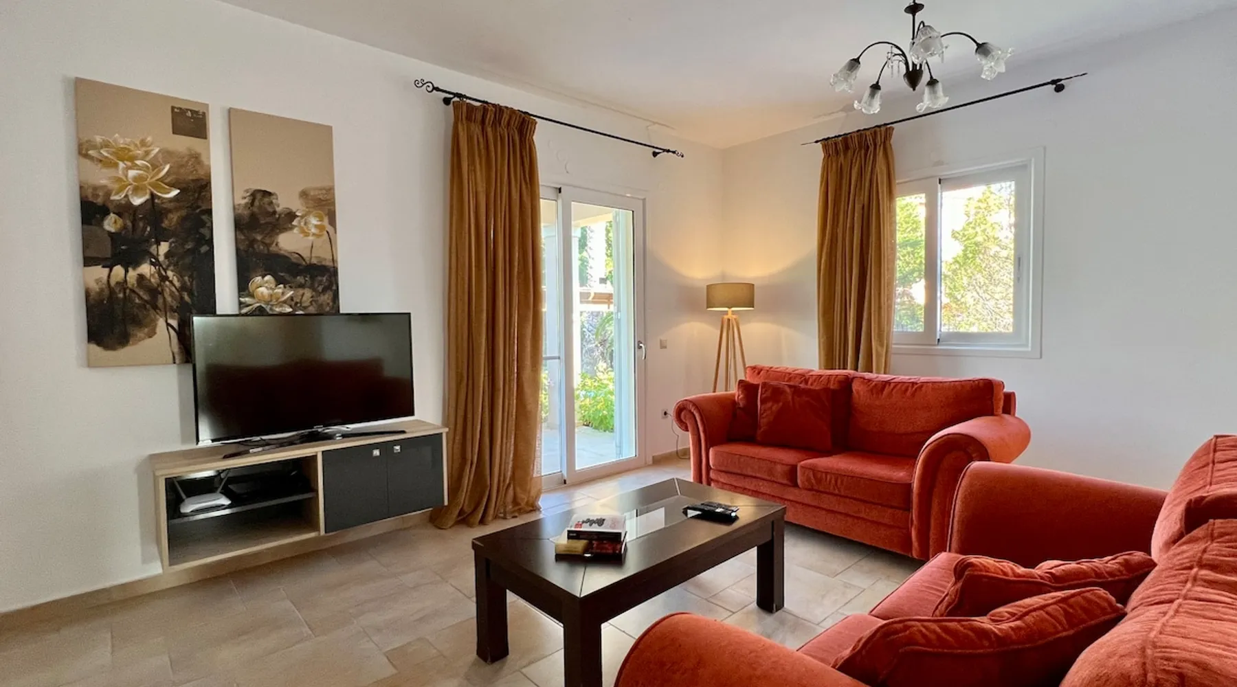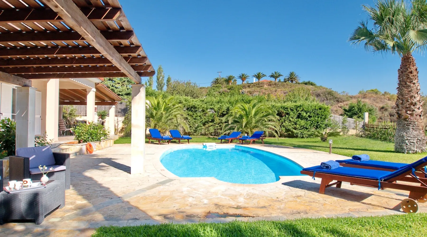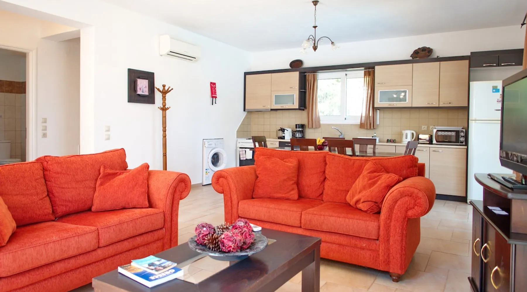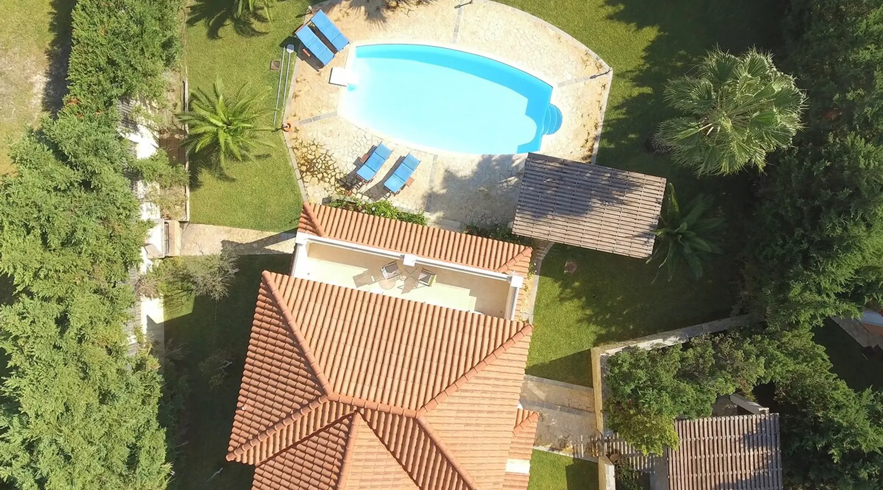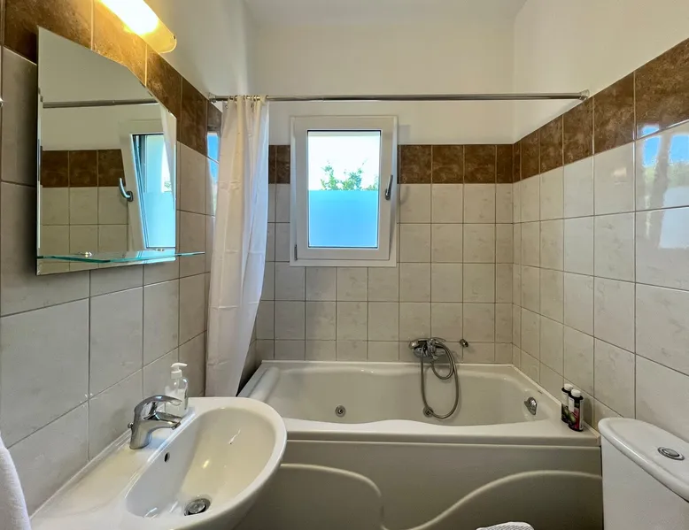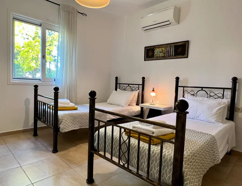 Villa Eros, a truly comfortable and beautifully laid out, sea view Villa , which is really five star when it comes to outside living. It's extensive area of lawns and copious area of covered terraces make it a truly excellent choice for families. One of a select group of Villas sharing the peninsular just south of the village of Spartia. The space Villa Eros, Spartia, Kefalonia With nothing short of fabulous views across the sea towards Mount Aenos, Villa Eros is one of a small and select group of Villas, a few kilometers from tiny Spartia village. A short walk down the hill takes you to an interesting rock formation with a platform lapped by the sea, equipped with sun beds and an ideal place to snorkel (see the video). Location There's a sandy beach just a 5 min drive away, above which The Waterways Taverna entices boat owners to tie up at the small jetty below. There's also a couple of tavernas amongst Spartia's maze of narrow streets, where there are also two mini markets. For a wider choice it is not much more than a 15 min drive to Argostoli where an evening walking the promenade and around the square before making a choice of restaurants is not to be missed. Outside Villa Eros Swimming Pool - 9m x 4.5m private pool with Roman step entry Pool depths 1.20m -1.60m. Sun Terrace - furnished with sun loungers. Pergola - poolside, with comfortable rattan sofa and chairs, sea view. Dining Terrace - Covered dining area with table and chairs. Pool views. BBQ - to the side of the villa. Garden - lawns bordered by shrubs. Inside Villa Eros Open plan living room Sitting Area – Two comfy sofas, plasma TV with satellite, DVD player and two large French doors to the covered dining terrace, with pool view. Air Con Unit. Dining Area - Wooden table and seating for six. Kitchen Area - Wooden fitted cupboards, double sink, electric oven with hobs, microwave, dishwasher, washing machine and fridge freezer. Window above the sink to the garden. Twin bedroom – Two single beds, French windows to side. Air Con Unit. Shower room - Shower with glass surround and door, washbasin and WC. First Floor Double bedroom with en suite bath/shower room - Double bed. French doors to balcony with sea views. Tiled en suite bathroom with bath and shower attachment, wash basin, WC. Air con unit Twin bedroom with en suite shower room - Two single beds, French doors to balcony with sea view. Tiled en suite bathroom with bath and separate shower cubicle, wash basin, WC. Air con unit Essential Grocery Pack - on arrival you will find a few essentials to begin your holiday. Guest access The villa and pool is for your private use only as well as the garden. Bed linen & towels are provided as well as pool towels. The cleaner will come in during your stay & change them, depending on how many days you are staying. All of this is included in the price. Other things to note Housekeeping Your Villa will be prepared for you on arrival with fresh bath and hand towels and all beds made up. For stays of 7 nights or more - house towels will be changed every 3 - 4 days. For stays of 14 nights or more - bed linen will be changed every 7 days. Pool/beach towels - one per person for the duration of your stay. If you need a travel cot or a high chair (usually for children up to 2 years old), please request when booking so we can have it ready for your arrival. Optional chargeable services: - Second High Chair - Second Cot Note that this is a professionally run rental villa which has been licensed by the Greek National Tourist Organization (EOT), which is required by the Greek law. This license allows the property owners to legally rent their accommodation to holiday makers, so that they comply to a set of standards and specific conditions for the safety & comfort of its paying customers. Registration Details 1237078