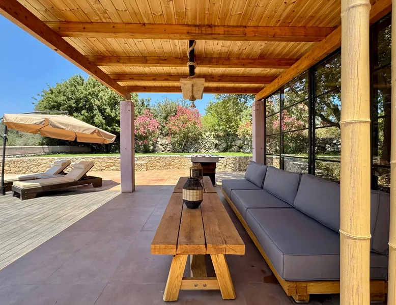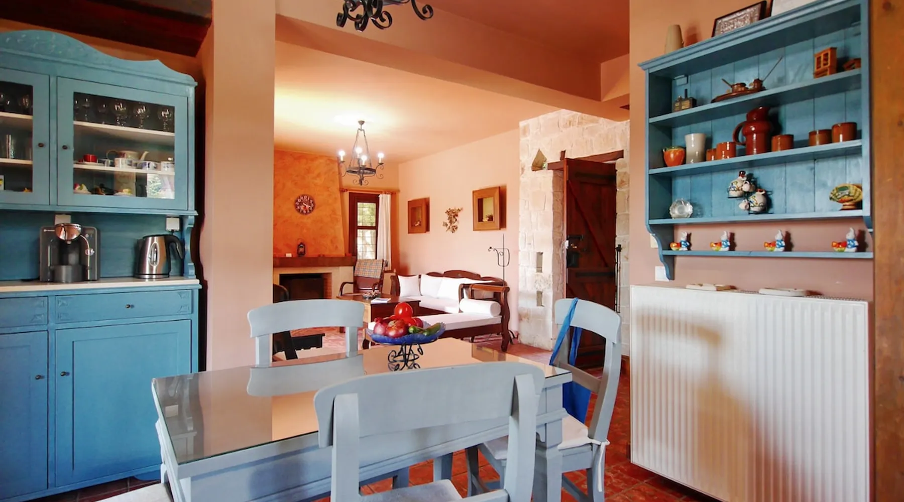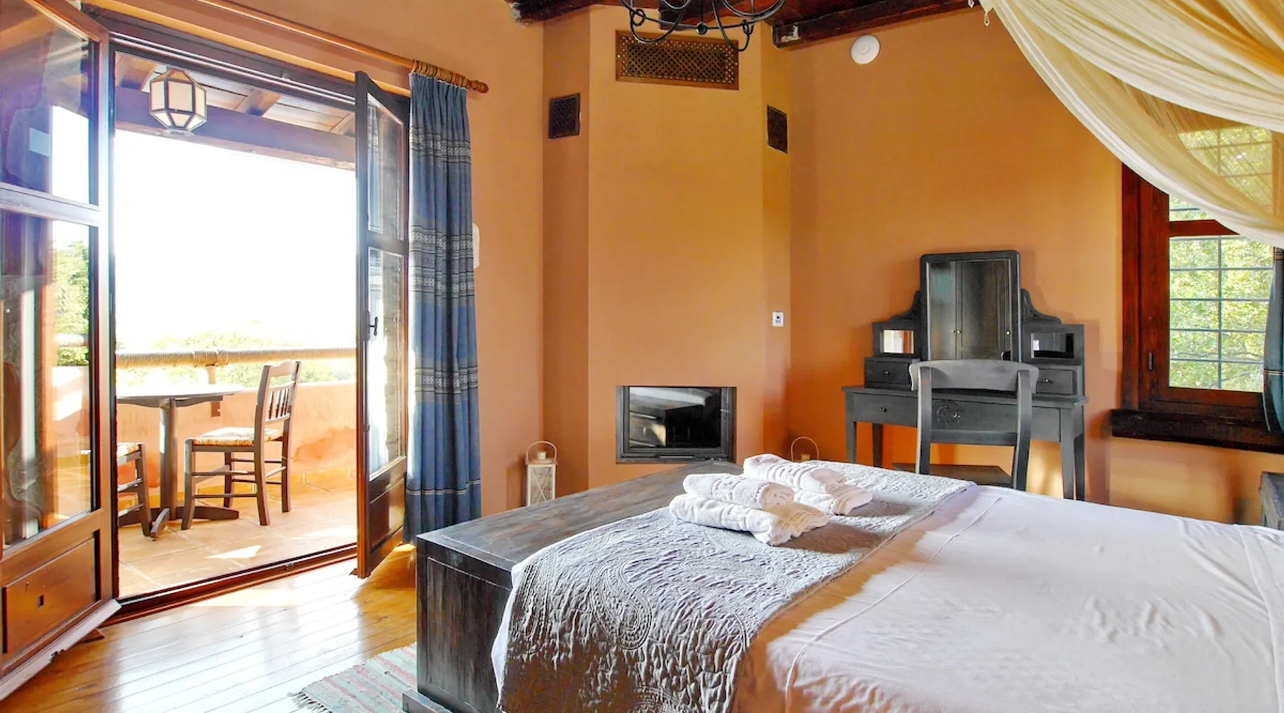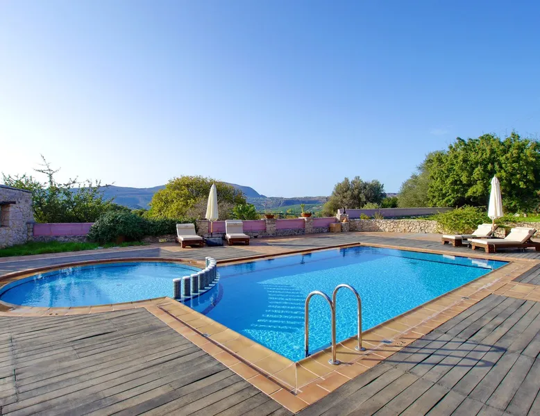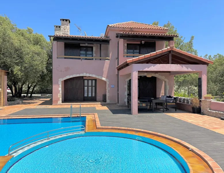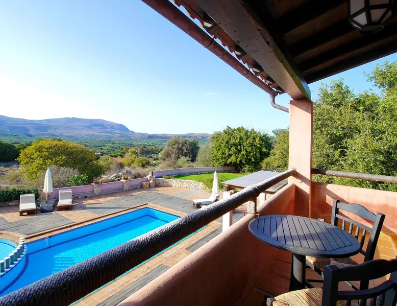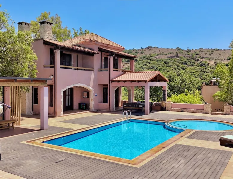 Set on a small hill above the village of Armeni, only 800 metres from the village square, Villa Galania is ideally placed to enjoy the rural idyll whilst still being within reasonable walking distance of local shops and tavernas and just ten minutes by car from the sandy beaches of Kalives. Gorgeous private pool, with adjoining small children's pool, table football and covered BBQ area featuring Cretan oven - perfect outdoor living. The space Passing a small copse of Holm Oak trees where a hammock has been slung and around the corner of the villa, the view of mountains dotted with villages unfolds in all its magnificence. The pale pastel rose facade of the villa and beautiful pool at one with the serenely peaceful backdrop of rural Crete and the White Mountains, occasionally still snow topped very early in the season. Villa Galania has been constructed in an atmospheric period style thanks to the skillful use of simple local materials. Covered balconies and terraces provide shade and respite from the heat of the sun, whilst the villa's stone faced doorways and rough hewn timbered ceilings add an authentic touch of the past. Villa Galania is furnished and equipped to a high standard and the owners really have ticked all the boxes down to the smallest detail. Outside around the 9m x 4m pool and adjoining children's pool, there's a huge amount of living space including a smart alfresco cover dining area, a lounge area, a table soccer, plus a rusticated covered barbecue complete with Cretan oven and a small fridge for drinks. Location Set on a small hill above the village of Armeni and only 800 metres from Armeni village square, Villa Galania is ideally placed to enjoy the rural idyll whilst still being within reasonable walking distance of the choice of tavernas, cafenion and cafe in the village. The sandy beaches of Kalives are just 5 minutes drive away. Villa Galania is well placed for discovering this western side of the island, being a convenient 5 min drive to the junction to the east-west highway and thus an easy 30 min trip into Chania. Outside Villa Galania Swimming Pool - 9m x 4m, depth 1.25m - 1.65m Children's Pool - Circular shallow pool. Poolside Sun Terrace - Sun beds, pergola with sofa set and table football. BBQ - Rustic covered BBQ with Cretan oven and small fridge for drinks. Covered Dining terrace - Table and chairs Garden - Grass dotted with holm oak. Shower - Poolside shower Balconies - Mountain view, covered bedroom balconies. Inside Villa Galania Ground floor Open plan Living room: Kitchen area - Well equipped kitchen with ceramic hob and oven, dishwasher, fridge freezer, microwave and breakfast table and chairs. Window with mountain view. Dining Area - Table and chairs, French doors to covered dining terrace. Living area - 2 Sofas, TV, and French doors to pool terrace. Shower room - Shower, wash basin, W.C. Washing machine First Floor Villa Galania Double bedroom with ensuite bathroom - 1 double bed, French doors to covered mountain view balcony. Ensuite bath with shower over, wash basin, W.C. Air Con. unit Twin bedroom, ensuite shower room - 2 single beds, French doors to covered mountain view balcony. Ensuite shower, wash basin, W.C. Air Con. unit Parking - Covered parking area beside the house Essential Information: Sleeps (Max) 4 Bedrooms 2 Shower Rooms 3 Maid Service Included Pool Private 9m x 4m A/C Included Floor Area m² 105 Booking Information: Check-In Any day (after 16:00) Check-Out Any day (before 10:00) Minimum stay 5 nights Local Facilities: Kalyves Beach 4,5 km Tavernas 800m Mini Market 800m Distances: Chania Airport 30 k Heraklion Airport 125 km Villa Equipment: DVD CD Satellite TV Dish Washer Washing Machine Hair Dryer Toaster Kettle Sun Lounger Microwave WiFi Connection Safe BBQ Mosquito Bed Net Filter Coffee Machine Iron & Board Pool Towels Fridge /Freezer Hob Cooking Utensils Guest access The villa and pool is for your private use only as well as the garden. Bed linen & towels are provided as well as pool towels. The cleaner will come in during your stay & change them, depending on how many days you are staying. All of this is included in the price. Other things to note Housekeeping Your Villa will be prepared for you on arrival with fresh bath and hand towels and all beds made up. For stays of 7 nights or more - house towels will be changed every 3 - 4 days. For stays of 14 nights or more - bed linen will be changed every 7 days. Pool/beach towels - one per person for the duration of your stay. If you need a travel cot or high chair, please request when booking so we can have it in the villa for you ready to use. Optional chargeable services: - Second High Chair - Second Cot Note that this is a professionally run rental villa which as been licensed by the Greek National Tourist Organization, EOT, which is required by the Greek law. This license allows the property owners to legally rent their accommodation to holiday makers, so that they comply to a set of standards and specific conditions for the safety & comfort of it's paying customers. Registration Details 1042Κ91003008401
