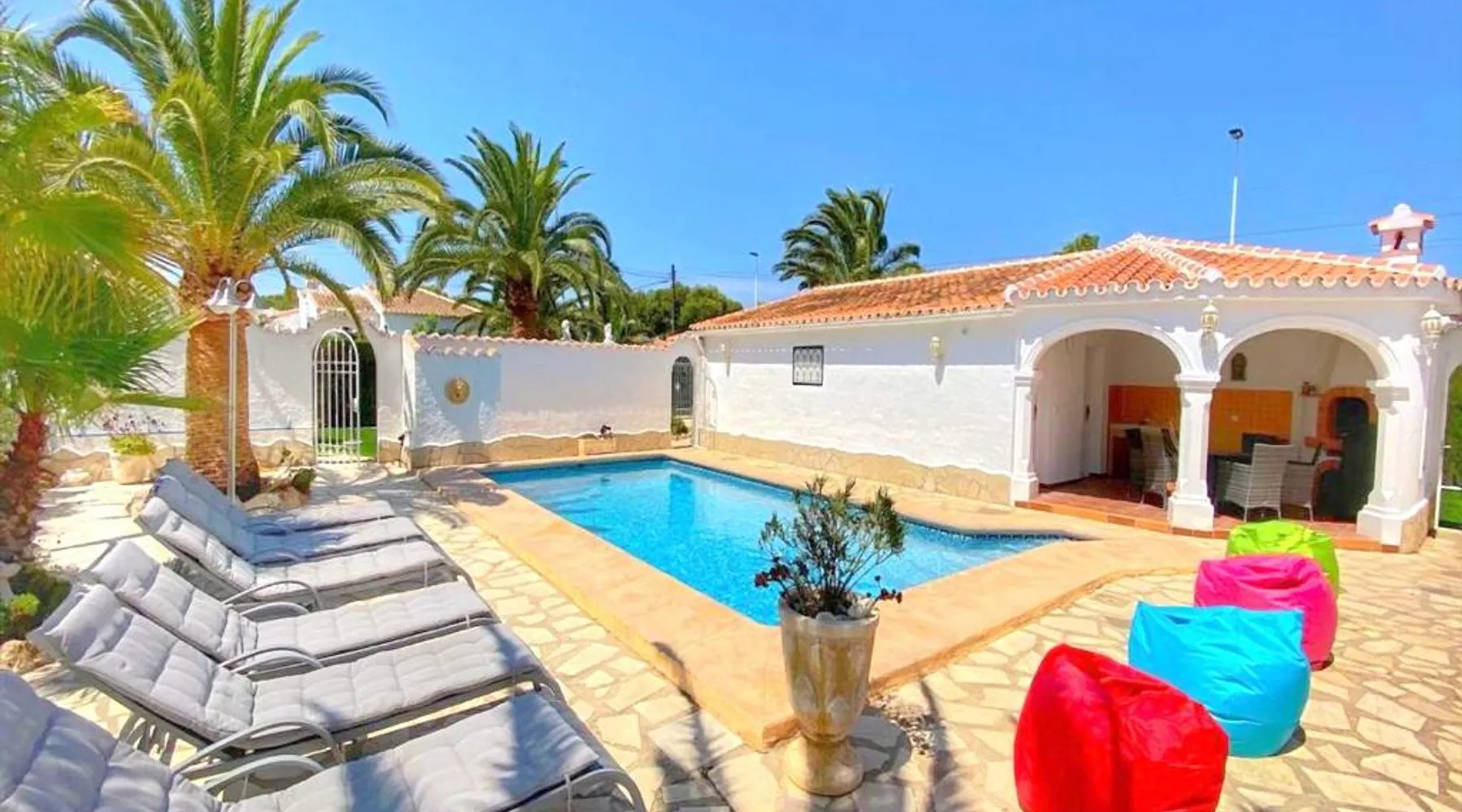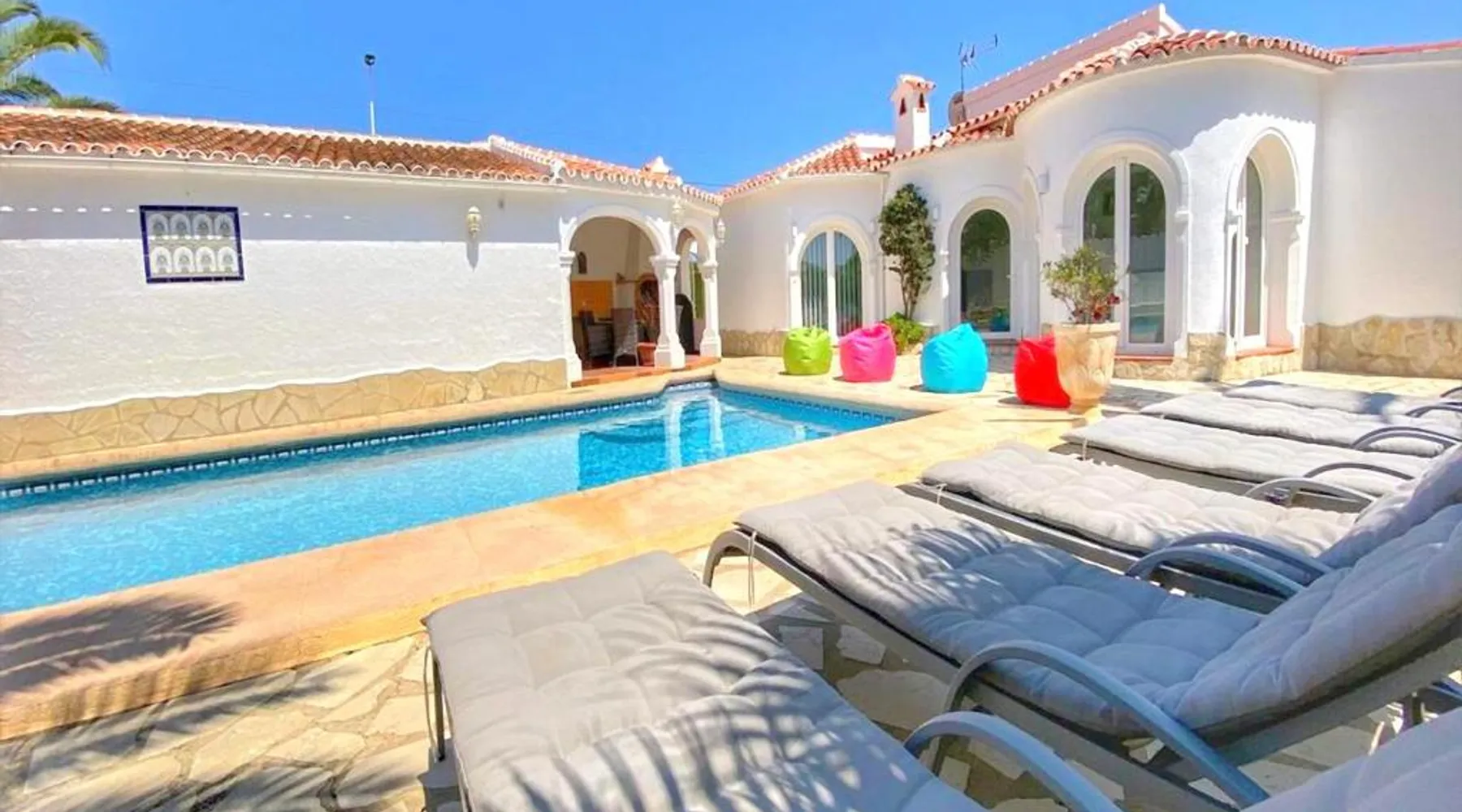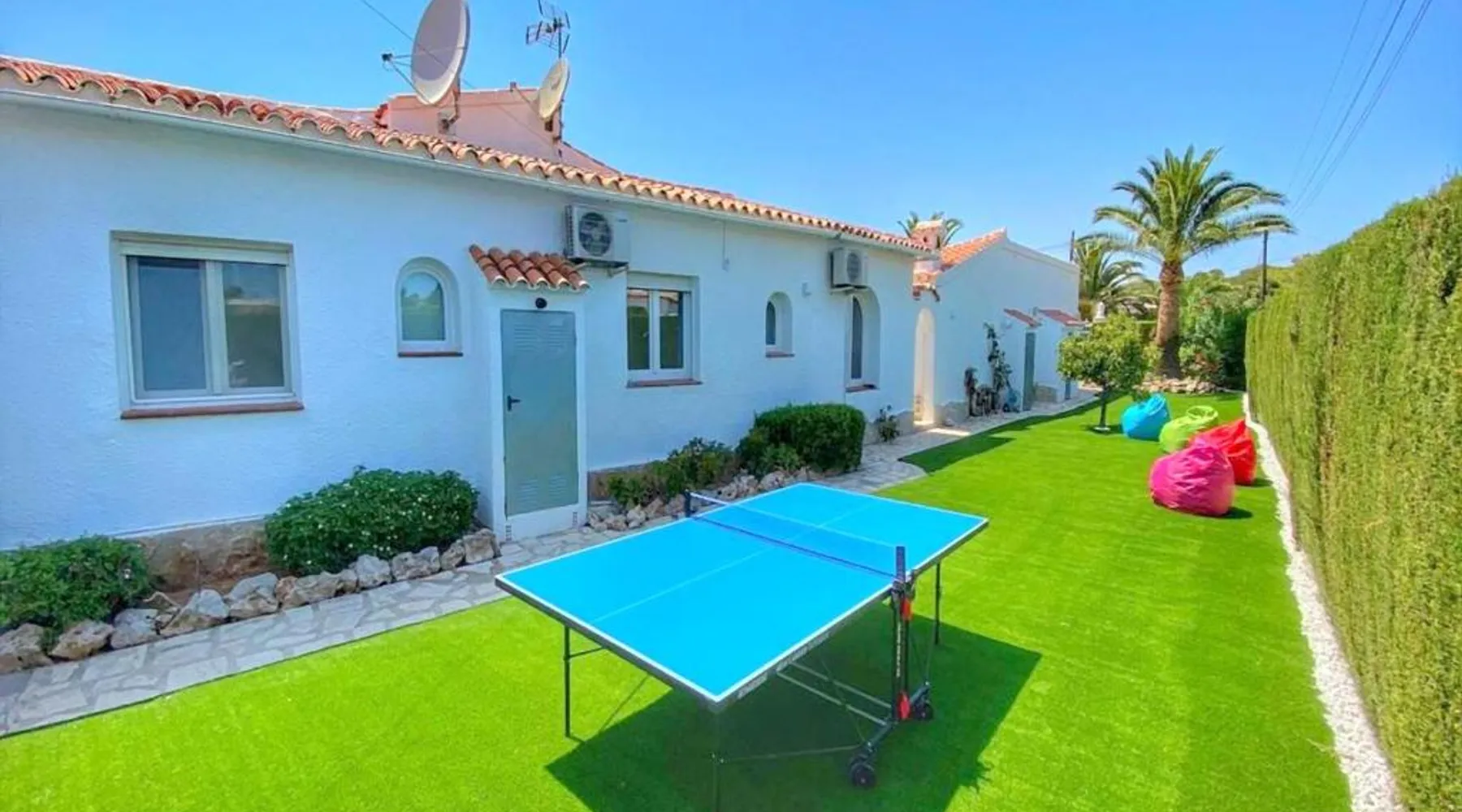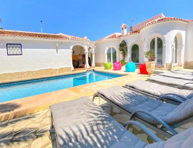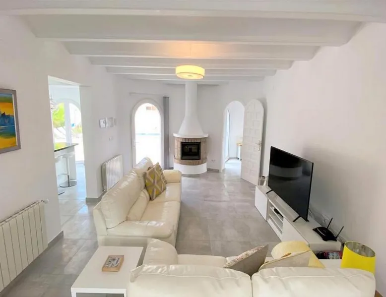 Spacious Accommodations: Casa Costa Nova Javea in Javea offers a spacious chalet with four bedrooms and three bathrooms. The property includes a living room and family rooms, ensuring comfort for all guests. Outdoor Amenities: Guests can enjoy a garden, terrace, and outdoor swimming pool. The terrace provides a perfect spot for relaxation, while the pool offers a refreshing retreat. Free WiFi is available throughout the property. Convenient Facilities: The chalet features air-conditioning, a fully equipped kitchen, washing machine, and free on-site private parking. Additional amenities include a fireplace, barbecue, and outdoor dining area. Nearby Attractions: Ambolo Beach is 1.2 mi away, while La Sella Golf lies 11 mi from the property. Other attractions include El Montgó (9.9 mi) and Peñón de Ifach Natural Park (17 mi). Alicante–Elche Miguel Hernández Airport is 65 mi distant. The private pool and fireplace are the special features of this chalet. Featuring a private entrance, this air-conditioned chalet consists of 1 living room, 4 separate bedrooms and 3 bathrooms with a bath and a shower. Guests will find a stovetop, a refrigerator, a dishwasher and kitchenware in the well-equipped kitchen. The chalet also offers a barbecue. The spacious chalet provides a flat-screen TV with satellite channels, a washing machine, a tea and coffee maker, a seating area as well as garden views. The unit offers 7 beds.