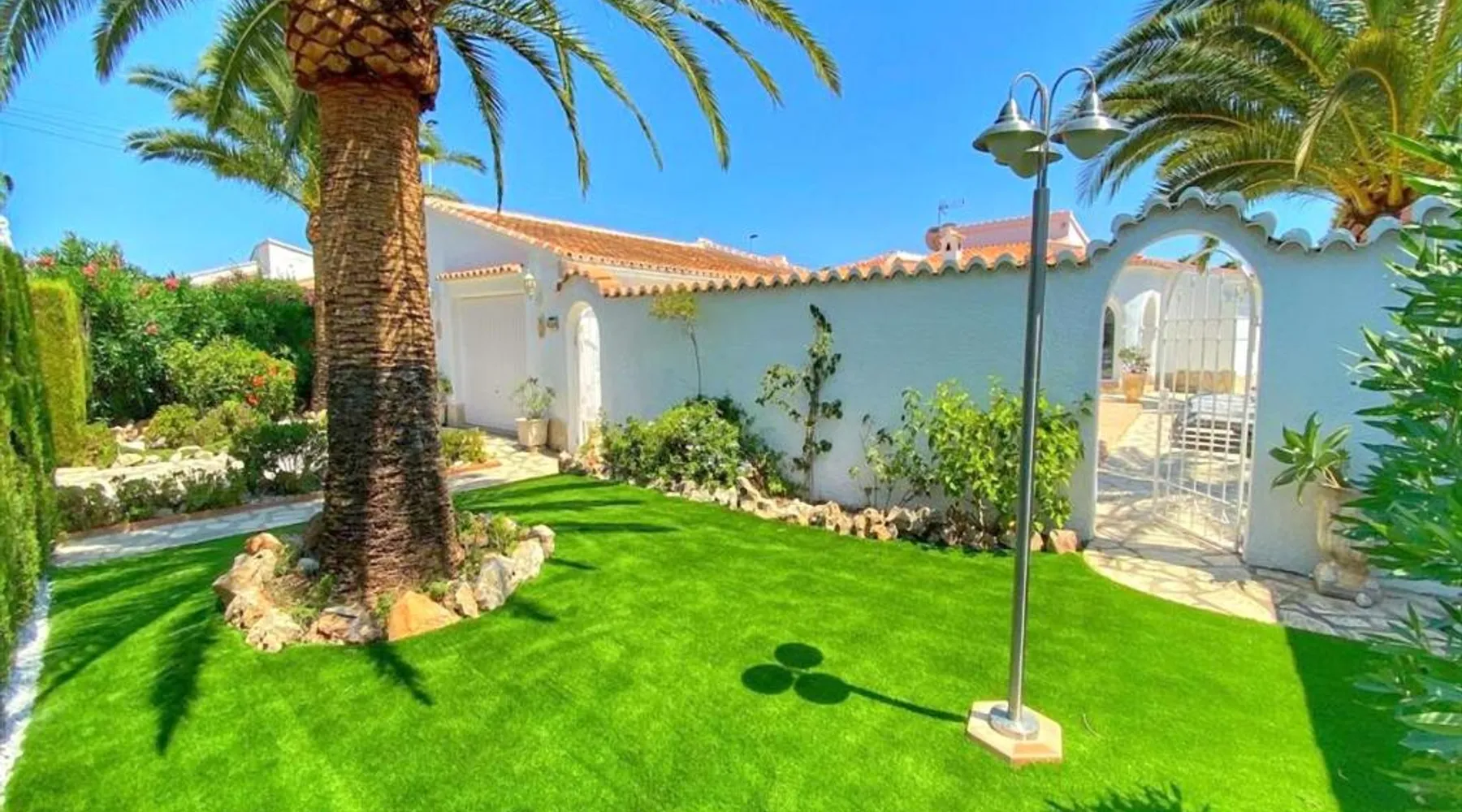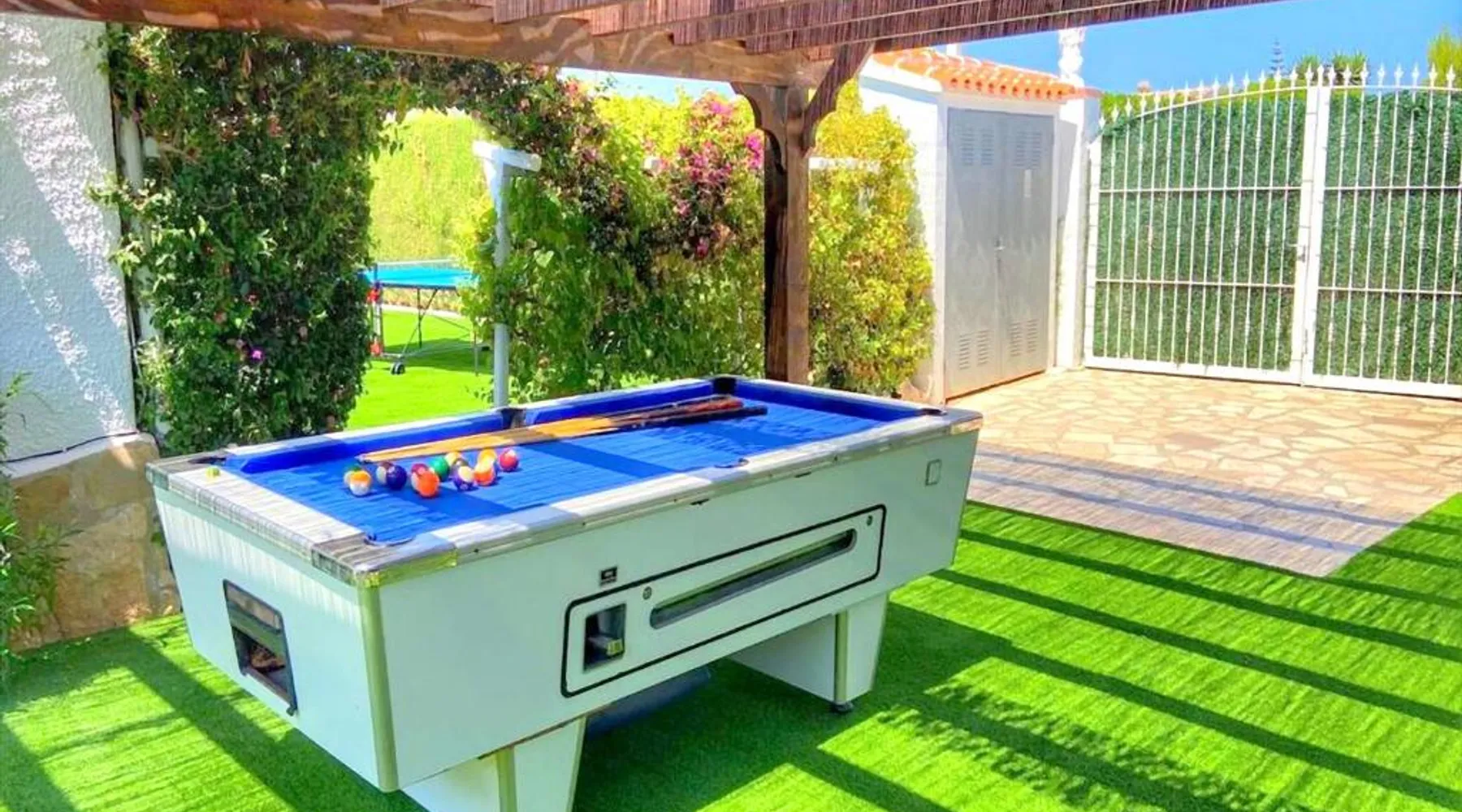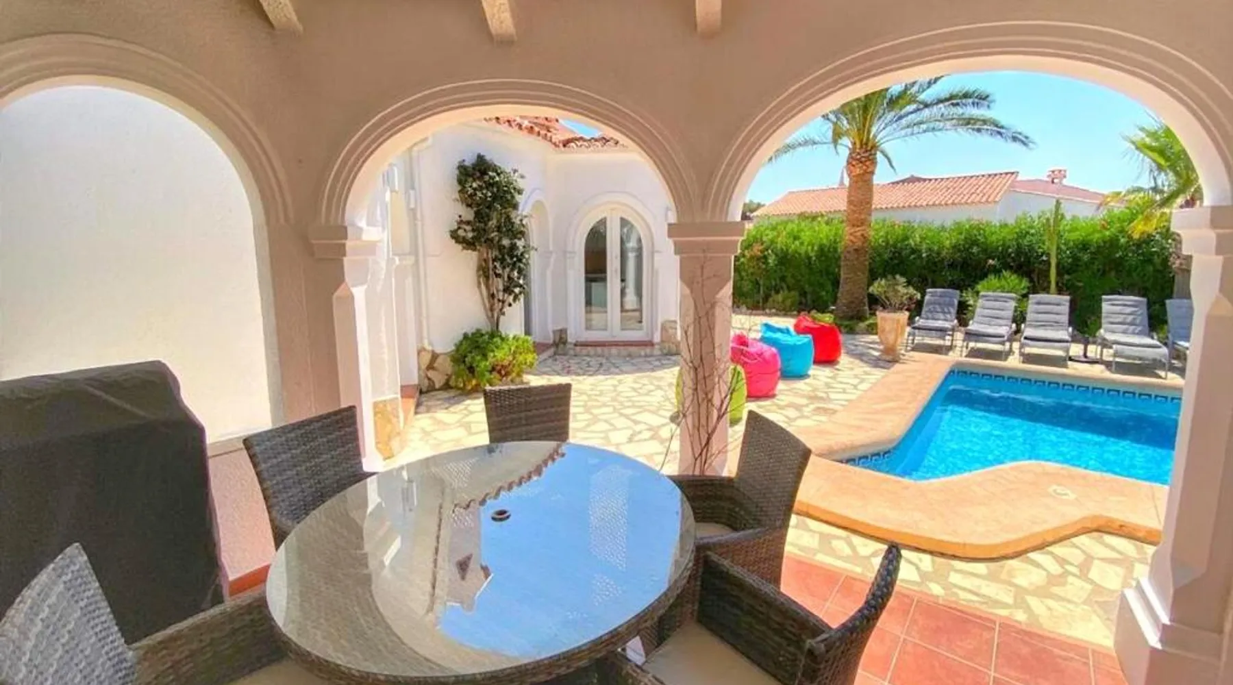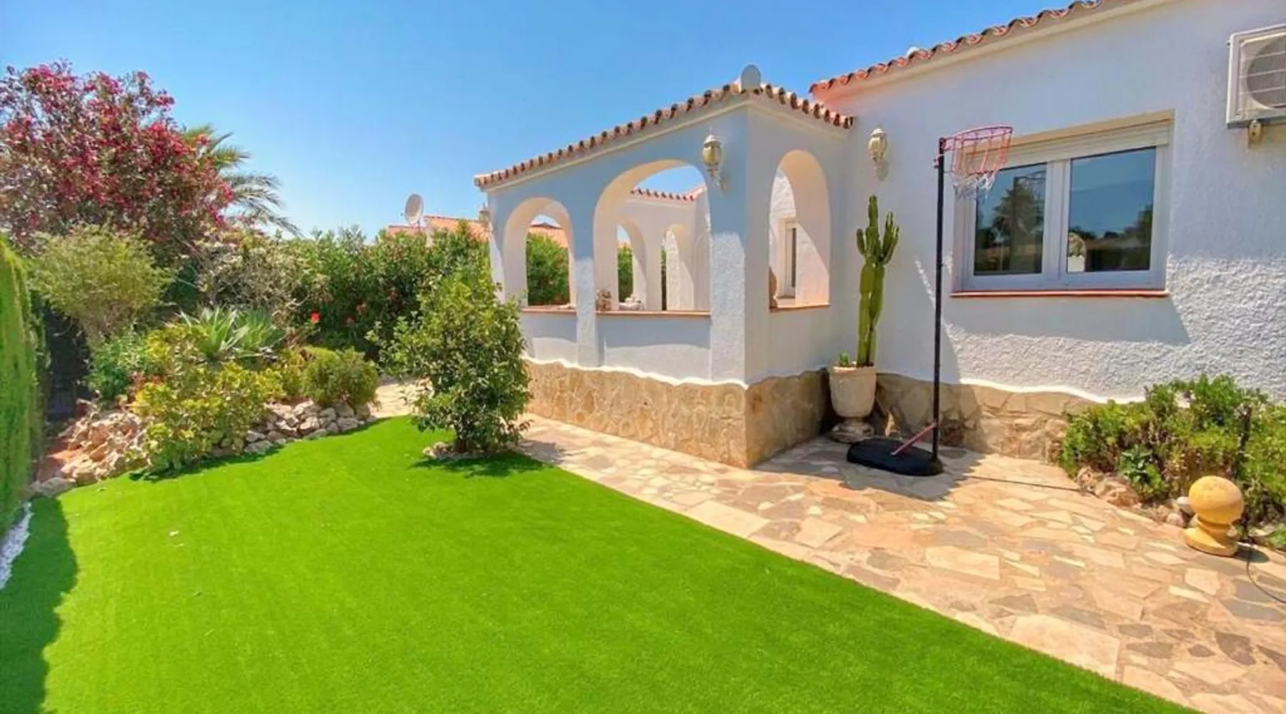Spacious Accommodations: Casa Costa Nova Javea in Javea offers a spacious chalet with four bedrooms and three bathrooms. The property includes a living room and family rooms, ensuring comfort for all guests. Outdoor Amenities: Guests can enjoy a garden, terrace, and outdoor swimming pool. The terrace provides a perfect spot for relaxation, while the pool offers a refreshing retreat. Free WiFi is available throughout the property. Convenient Facilities: The chalet features air-conditioning, a fully equipped kitchen, washing machine, and free on-site private parking. Additional amenities include a fireplace, barbecue, and outdoor dining area. Nearby Attractions: Ambolo Beach is 1.2 mi away, while La Sella Golf lies 11 mi from the property. Other attractions include El Montgó (9.9 mi) and Peñón de Ifach Natural Park (17 mi). Alicante–Elche Miguel Hernández Airport is 65 mi distant. The private pool and fireplace are the special features of this chalet. Featuring a private entrance, this air-conditioned chalet consists of 1 living room, 4 separate bedrooms and 3 bathrooms with a bath and a shower. Guests will find a stovetop, a refrigerator, a dishwasher and kitchenware in the well-equipped kitchen. The chalet also offers a barbecue. The spacious chalet provides a flat-screen TV with satellite channels, a washing machine, a tea and coffee maker, a seating area as well as garden views. The unit offers 7 beds.