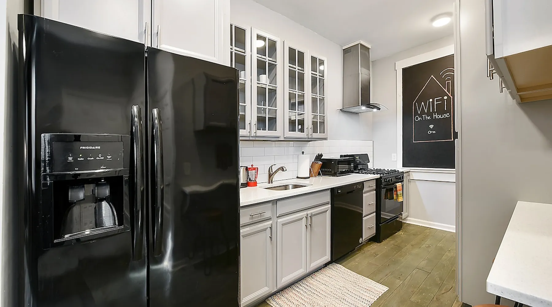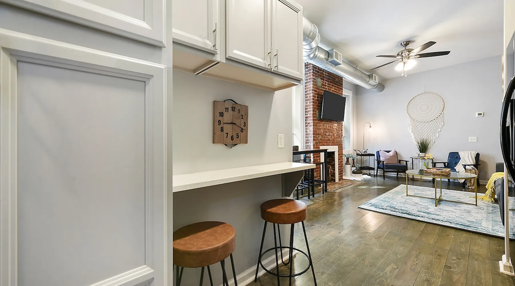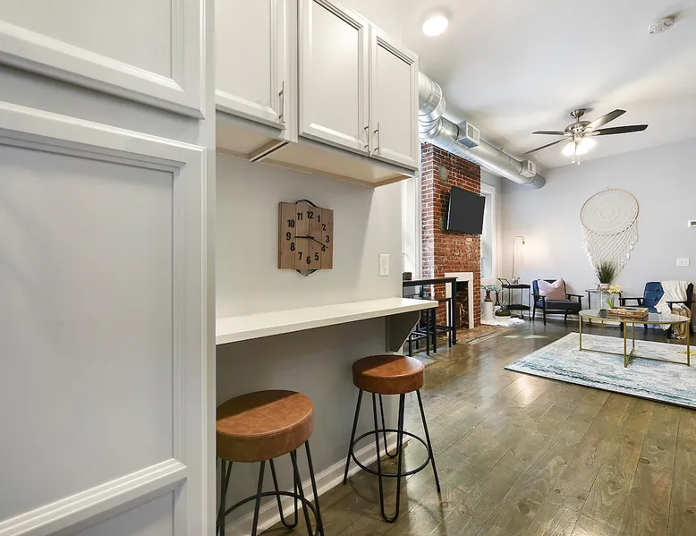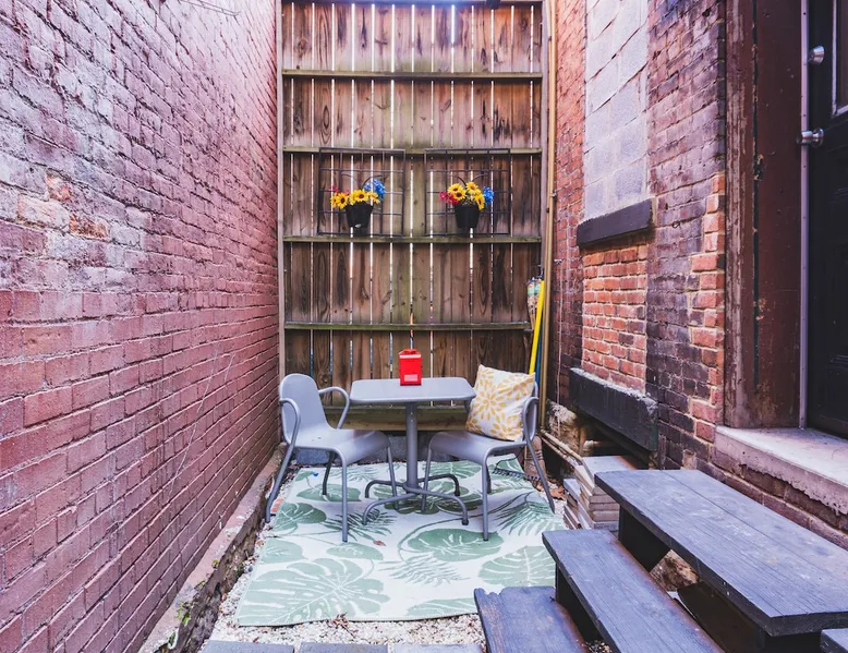 - Experience exposed brick, modern decor, towering ceilings, & ample natural light. - Unwind on the private patio in a cozy neighborhood, steps from lively urban life. - Utilize high-speed WiFi, professional workspaces, and smart home tech seamlessly. - Explore diverse dining, sporting events, and cultural spots within walking distance. - Reserve your unforgettable stay with premium amenities and Chore-Free Checkout! The space KEY AMENITIES / DETAILS: ✓ Check-out process: Chore-Free Checkout® ✓ Check-in process: Keyless entry with code ✓ Check-in technology: Dack-enabled software (optional) featuring swipe to unlock, digital guide, more! ✓ 2 Bedroom Apartment in Row House ✓ 1 Full Bathroom ✓ Sleeps 4: 1 King and 1 Queen bed in two bedrooms ✓ Internet: High speed 1 gig ✓ Parking: Two visitor parking passes available for street parking ✓ Laundry: Washer/dryer in basement area ✓ Kitchen: Fully stocked with seating for 4 ✓ Work from home: 1 desk + ergonomic chair ✓ Coffee: Pittsburgh's Commonplace Roasters premium whole bean coffee ✓ Tech: G-Mini enabled speaker, one 55" and two 40" 4K smart TVs ✓ Eco-friendly: Recycling, earth-friendly toiletries, water filters, focus on minimizing plastic use ✓ HVAC: Air conditioning & forced air heating ABOUT HOSTWISE STAYS: As the top-ranked professional hosts in the Pittsburgh area, we are obsessed with quality service & amenities. Like high end hotels (but better!), we don't have crazy check out procedures, we only use professional cleaners, and we're available 24 / 7 / 365 (often within seconds!) We provide our valued guests with seamless lodging experiences & top-notch amenities - fast Wi-Fi, high end coffee bars, quality linens, clean spaces, earth-friendly products, remote work spaces, premium toiletries, and more! CLEANING PROCEDURES: Now more than ever it is important to stay in a professionally cleaned space. We don't "outsource" our cleaning - our cleaners are professionally trained with a passion for what they do! Our team follows an industry-leading cleaning checklist, and our Operations team executes randomized inspections to ensure our standards are met. DETALIED FEATURES: ➤ 2 BR / 1BA ~1,000 sq ft apartment on the first floor of a three story building ➤ Outdoor space: Small patio out the back of apartment ➤ Sleeps 4: Four in two bedrooms ➣ Bedroom 1 - 1 King - medium plush, 12" memory foam ➣ Bedroom 2 - 1 Queen - Firm 10" memory foam with cooling gel ➤ Parking - TWO visitor parking passes available for street parking. The North Side is permit only, but we can provide you a visitor pass for the duration of your stay. AGH James Street parking garage is only a block away if you'd prefer a garage. ➤ Bathroom: One full bath with soaker tub ➣ Includes shower, soaker tub, blow dryer, linens, premium toiletries, makeup remover, cotton swabs, etc. ➤ Technology + Security - External camera + internal non-recording decibel meter, for party prevention. ➣ Dack-enabled smart lock with random code generation + digital app (app use is optional) ➣ G-Mini enabled - with your voice, play music, ask about the weather, etc. The house has "smart" capabilities, so guests can control lights & temperature with their voice! Free Netflix is also included ➤ TVs: 55" Fire Smart TV + 40" Roku TVs in the bedrooms. Note that the property does not have cable. Most apps are free to use and / or you are able to use your cable provider's login info for "paid" apps (ESPN, HBO, Showtime, etc.) ➤ Internet: High speed 1 gig up/down Verizon FiOS fiber optic. Work from home with high speed! ➤ Kitchen: fully stocked with stainless pots & pans, knives, utensils, toaster, microwave, drip coffee maker, French press, etc. ➤ Coffee & Tea - Drip coffee maker, French press, premium locally roasted Commonplace medium roast whole bean coffee, burr grinder, premium assorted tea selection & electric kettle is provided ➤ Dining: Seating for 2 along counter, and 2 more at the breakfast nook. ➤ Laundry: washer/dryer available ➤ Air Conditioning / heating - central air / heating ➤ Pets Not permitted ➤ No Smoking indoors - smoking on back patio permitted Guest access The entire 1st floors is yours once you enter unit #1. There are two other floors with apartments that are not accessible. Other things to note The washing machine for our property is in the basement, not in the apartment. It's shared with our cleaning team.