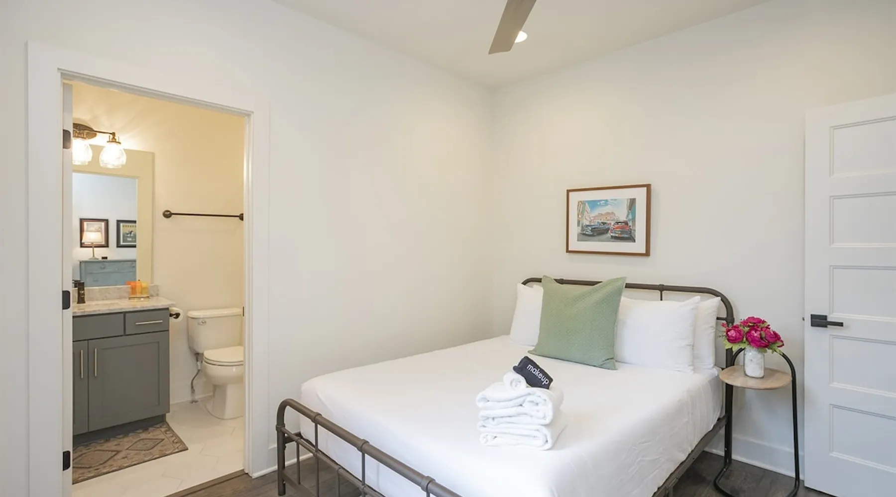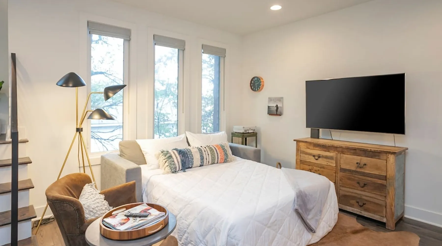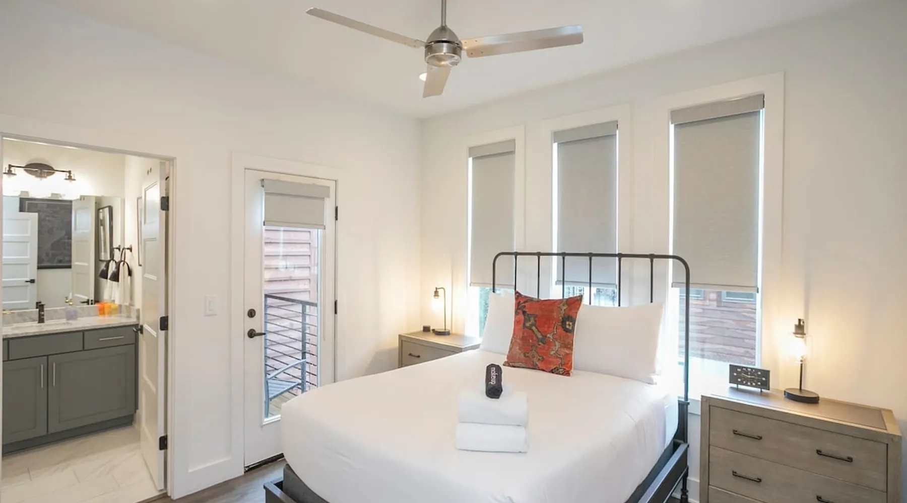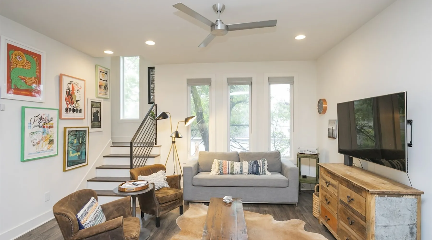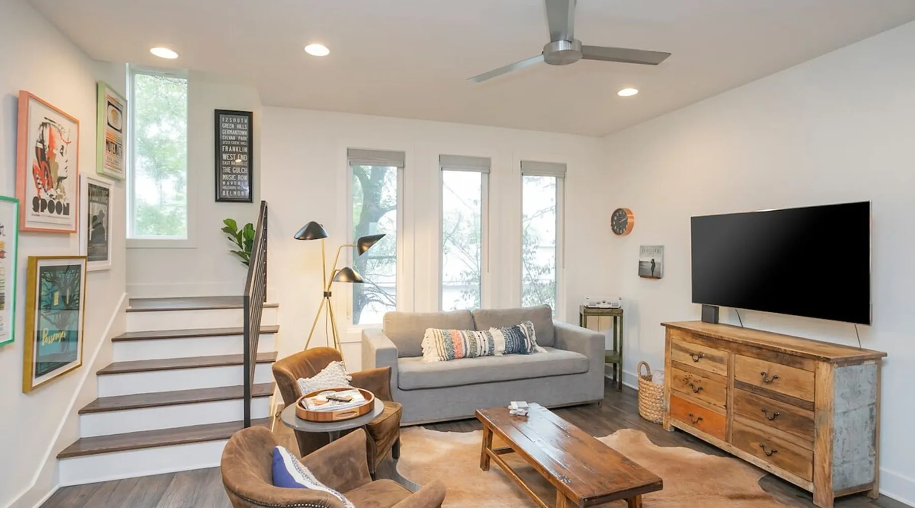 ✨ 2 luxe top-floor suites—each with private bath & balcony 🛋️ Spacious living room w/ vinyls, games & queen sleeper sofa 🚗 Private 2-car garage + paid lot just across the street 🌙 Private balconies perfect for coffee or stargazing 🐾 Pet friendly! Bring 1–2 well-behaved dogs for a nominal fee 🎸 3 miles to Broadway, minutes to TopGolf, parks & eats The space Welcome to River North Retreat, part of the ComeVisitNashville collection—a modern, three-story townhome that puts you at the heart of East Nashville’s electric culture. From the city’s best restaurants and indie shops to its legendary music venues, you’ll have the local scene right at your doorstep. ROOM TO RELAX & RECHARGE Treat yourself to two private, top-floor suites designed for maximum comfort. 🛏️ 2 TOP-FLOOR SUITES: Each bedroom features a plush queen bed, private walk-in shower, and its own balcony—perfect for sipping morning coffee or unwinding under the stars. 🌙 PRIMARY BEDROOM: Enjoy an en-suite bathroom, plus an outdoor seating area for a quiet retreat. 🏠 Second Bedroom: Just as cozy, with a generous balcony for catching fresh air. LOUNGE & CONNECT Enjoy a spacious second-floor living area that invites everyone to gather and unwind. 🛋️ Open-Plan Living: Kick back on the comfy sofa, spin a vinyl record, or host a board game night. 📺 Entertainment: Stream your favorite apps on the flat-screen TV (YouTubeTV included; bring your own logins for others). 😴 Extra Sleeping Space: The sofa easily converts into a queen-size bed to accommodate additional guests. COOK & DINE Prepare and share meals with ease in a kitchen that has everything you need. 🍳 Well-Stocked: An espresso machine, coffee maker, blender, slow cooker, and more. 🍽️ Dining Options: Sit around the dining table or pull up a stool at the breakfast bar—perfect for laid-back brunches or evening wine. COMFORT & CONVENIENCE We’ve included all the essentials to make your stay worry-free. 🧺 Fundamentals: Washer/dryer, plush towels, hair dryers, iron—pack light and stay fresh. 🐾 Pet Friendly: Up to two well-behaved, potty-trained dogs are welcome for a small fee. (See House Rules for details.) 🚗 Parking: A private garage fits two smaller vehicles or one larger one, plus a paid lot across the street if you need extra space. EXPLORE EAST NASHVILLE & BEYOND Immerse yourself in local charm while enjoying easy access to Nashville’s iconic attractions. 🤠 Iconic Broadway: Only 3 miles away—explore the bars, honky-tonks, and live music that make Nashville famous. 🌆 Local Scene: Short drive to the city's most popular restaurants, shops, and coffeehouses. ⛳ Minutes from Fun: TopGolf is just a 5-minute drive away. 🌳 Outdoor Adventure: Parks, greenways, and more are nearby to help you enjoy the great outdoors. BOOK YOUR NASHVILLE ADVENTURE Seize the chance to live like a local while soaking up the best of Music City. Reserve your stay at River North Retreat and get ready for an unforgettable Nashville getaway! We look forward to hosting y'all! Guest access Guests have complete and private access to the entire townhome as well as the garage, with parking for 1-2 cars (depending on size). We provide starter supplies of toilet paper, paper towels, coffee/creamer/sugar, hand/dish soap, and toiletries. Other things to note Our nightly rate covers 1-4 guests. Additional guests (up to 6) are charged at $20 per person per night. Accurate headcount must be confirmed no later than 24 hours prior to arrival. Our max occupancy is firm and we cannot accommodate groups larger than 6. We welcome potty-trained, well-behaved dogs, up to 2 dogs per stay, for a fee of $25 per night per dog. Dogs must remain on-leash at all times outside the rental. Please let us know ahead of time if you plan to bring pets. (Details in House Rules.) Guests are required to sign a digital rental agreement within 48 hours (or ASAP if you’re arriving in the next 5 days). Failure to do so may lead to guest-initiated cancellation under the agreed policy. Standard check-in is 4 PM or later, with check-out at 11 AM. In some cases it may be possible to arrange for earlier check-in or later check-out for an additional fee. We are fully permitted and abide by all local and state regulations governing short-term rentals. Registration Details 2019050241