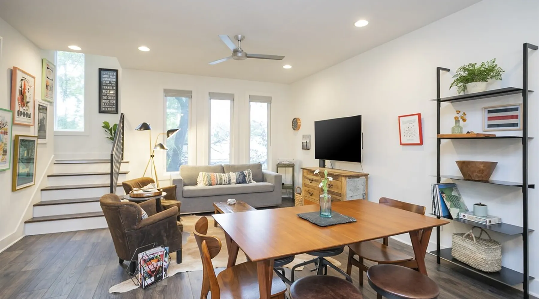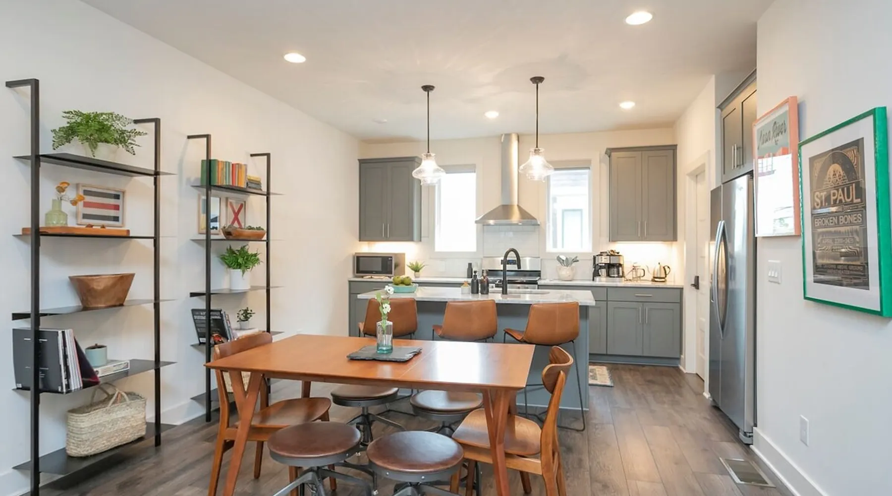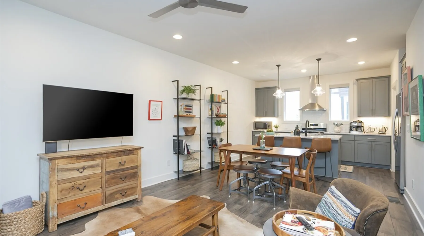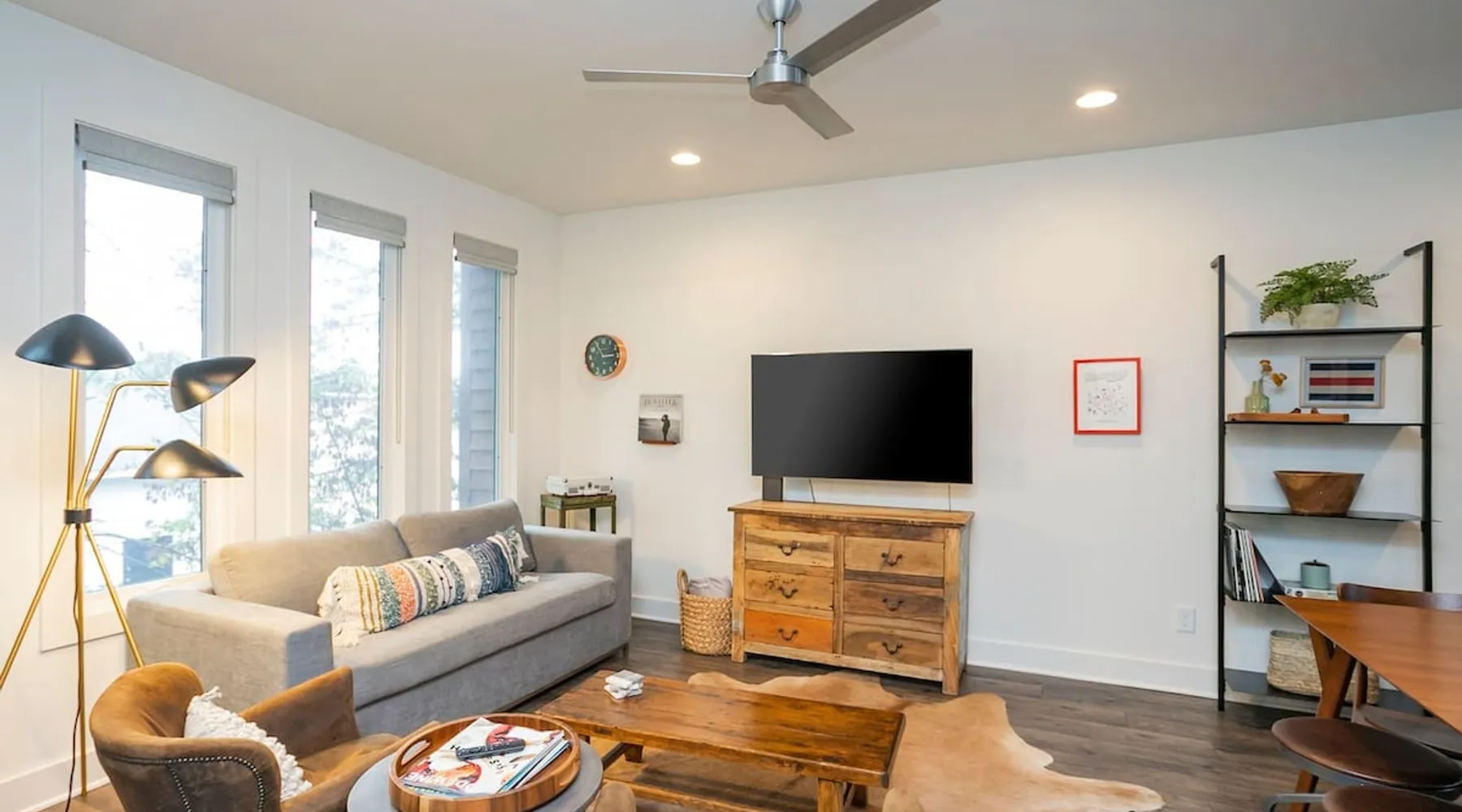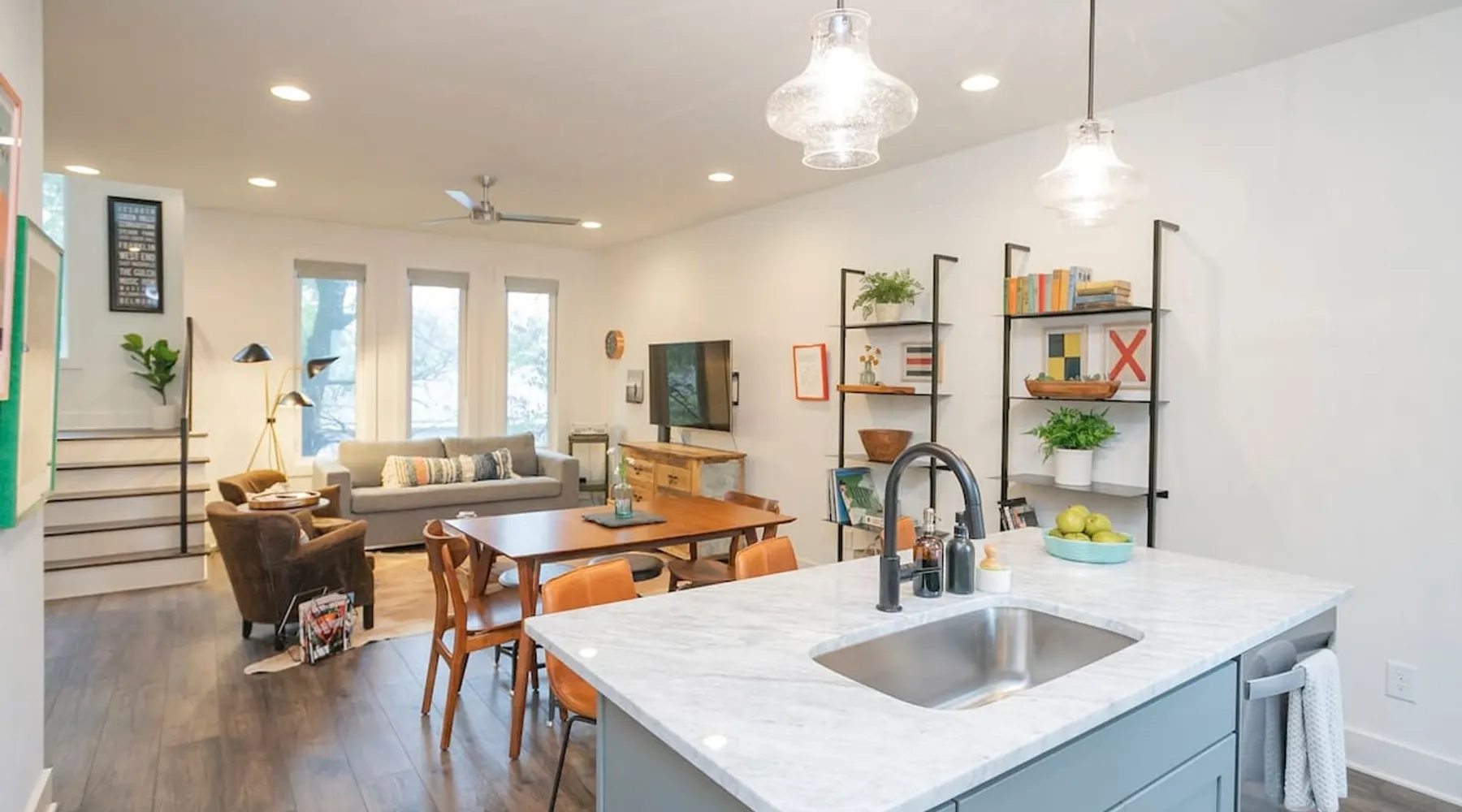 ✨ 2 luxe top-floor suites—each with private bath & balcony 🛋️ Spacious living room w/ vinyls, games & queen sleeper sofa 🚗 Private 2-car garage + paid lot just across the street 🌙 Private balconies perfect for coffee or stargazing 🐾 Pet friendly! Bring 1–2 well-behaved dogs for a nominal fee 🎸 3 miles to Broadway, minutes to TopGolf, parks & eats The space Welcome to River North Retreat, part of the ComeVisitNashville collection—a modern, three-story townhome that puts you at the heart of East Nashville’s electric culture. From the city’s best restaurants and indie shops to its legendary music venues, you’ll have the local scene right at your doorstep. ROOM TO RELAX & RECHARGE Treat yourself to two private, top-floor suites designed for maximum comfort. 🛏️ 2 TOP-FLOOR SUITES: Each bedroom features a plush queen bed, private walk-in shower, and its own balcony—perfect for sipping morning coffee or unwinding under the stars. 🌙 PRIMARY BEDROOM: Enjoy an en-suite bathroom, plus an outdoor seating area for a quiet retreat. 🏠 Second Bedroom: Just as cozy, with a generous balcony for catching fresh air. LOUNGE & CONNECT Enjoy a spacious second-floor living area that invites everyone to gather and unwind. 🛋️ Open-Plan Living: Kick back on the comfy sofa, spin a vinyl record, or host a board game night. 📺 Entertainment: Stream your favorite apps on the flat-screen TV (YouTubeTV included; bring your own logins for others). 😴 Extra Sleeping Space: The sofa easily converts into a queen-size bed to accommodate additional guests. COOK & DINE Prepare and share meals with ease in a kitchen that has everything you need. 🍳 Well-Stocked: An espresso machine, coffee maker, blender, slow cooker, and more. 🍽️ Dining Options: Sit around the dining table or pull up a stool at the breakfast bar—perfect for laid-back brunches or evening wine. COMFORT & CONVENIENCE We’ve included all the essentials to make your stay worry-free. 🧺 Fundamentals: Washer/dryer, plush towels, hair dryers, iron—pack light and stay fresh. 🐾 Pet Friendly: Up to two well-behaved, potty-trained dogs are welcome for a small fee. (See House Rules for details.) 🚗 Parking: A private garage fits two smaller vehicles or one larger one, plus a paid lot across the street if you need extra space. EXPLORE EAST NASHVILLE & BEYOND Immerse yourself in local charm while enjoying easy access to Nashville’s iconic attractions. 🤠 Iconic Broadway: Only 3 miles away—explore the bars, honky-tonks, and live music that make Nashville famous. 🌆 Local Scene: Short drive to the city's most popular restaurants, shops, and coffeehouses. ⛳ Minutes from Fun: TopGolf is just a 5-minute drive away. 🌳 Outdoor Adventure: Parks, greenways, and more are nearby to help you enjoy the great outdoors. BOOK YOUR NASHVILLE ADVENTURE Seize the chance to live like a local while soaking up the best of Music City. Reserve your stay at River North Retreat and get ready for an unforgettable Nashville getaway! We look forward to hosting y'all! Guest access Guests have complete and private access to the entire townhome as well as the garage, with parking for 1-2 cars (depending on size). We provide starter supplies of toilet paper, paper towels, coffee/creamer/sugar, hand/dish soap, and toiletries. Other things to note Our nightly rate covers 1-4 guests. Additional guests (up to 6) are charged at $20 per person per night. Accurate headcount must be confirmed no later than 24 hours prior to arrival. Our max occupancy is firm and we cannot accommodate groups larger than 6. We welcome potty-trained, well-behaved dogs, up to 2 dogs per stay, for a fee of $25 per night per dog. Dogs must remain on-leash at all times outside the rental. Please let us know ahead of time if you plan to bring pets. (Details in House Rules.) Guests are required to sign a digital rental agreement within 48 hours (or ASAP if you’re arriving in the next 5 days). Failure to do so may lead to guest-initiated cancellation under the agreed policy. Standard check-in is 4 PM or later, with check-out at 11 AM. In some cases it may be possible to arrange for earlier check-in or later check-out for an additional fee. We are fully permitted and abide by all local and state regulations governing short-term rentals. Registration Details 2019050241