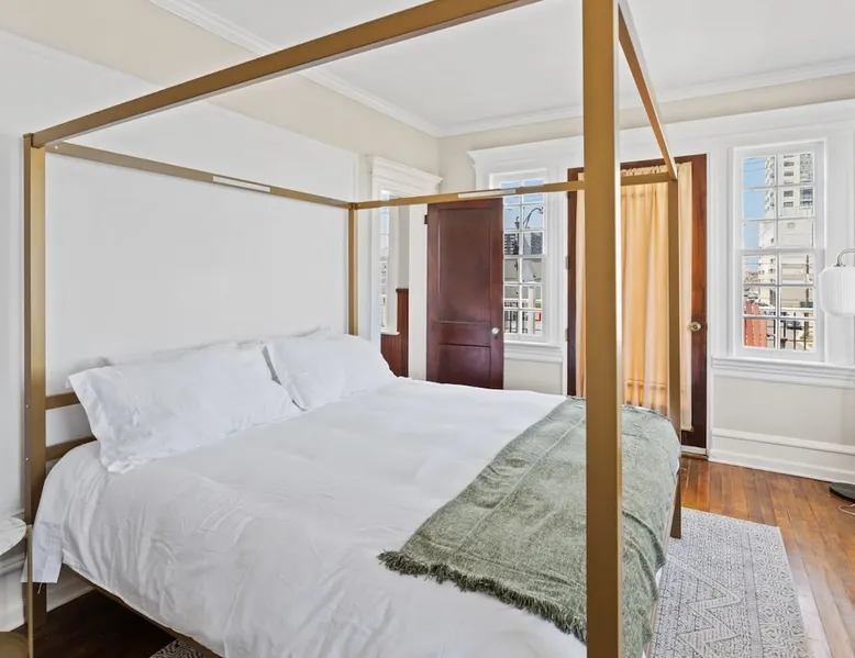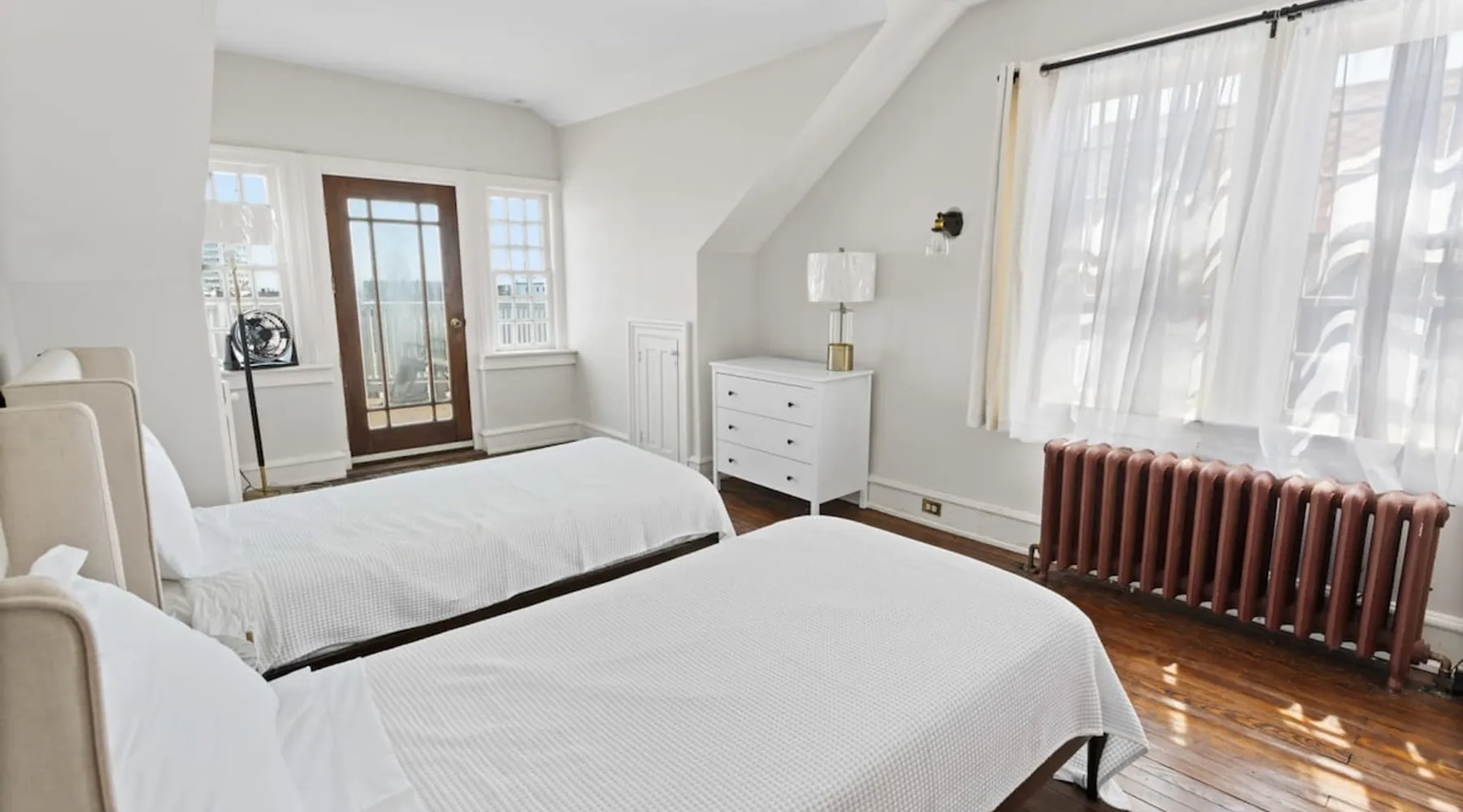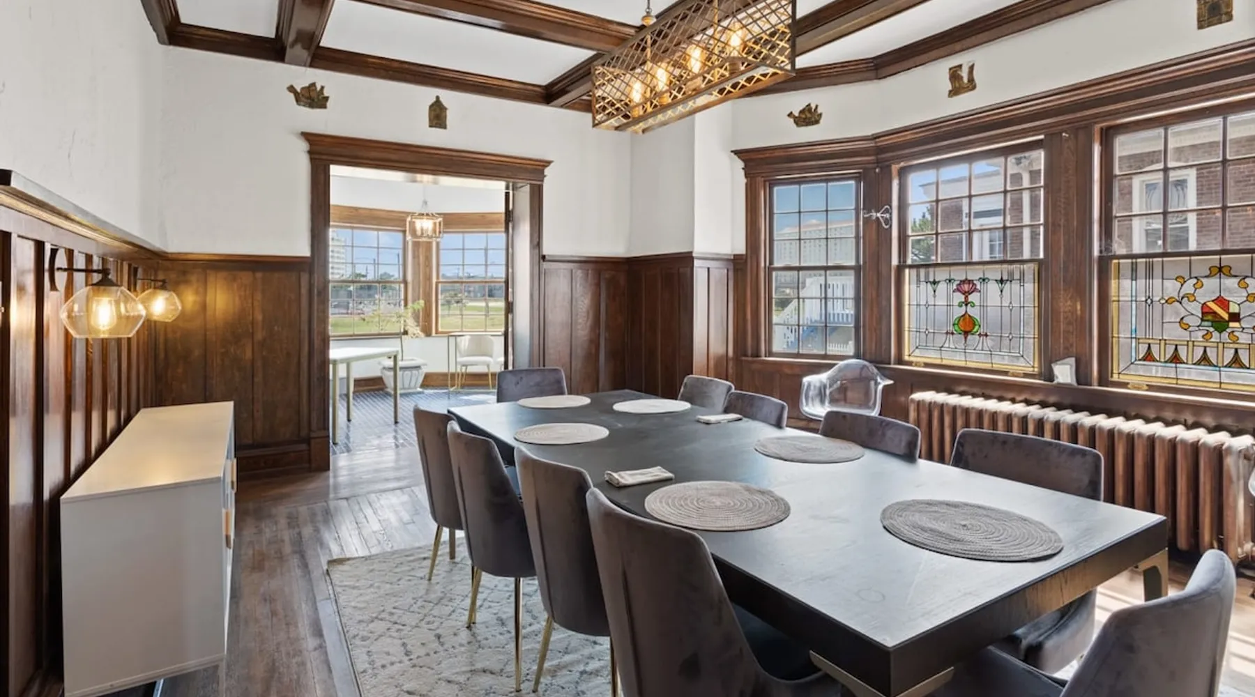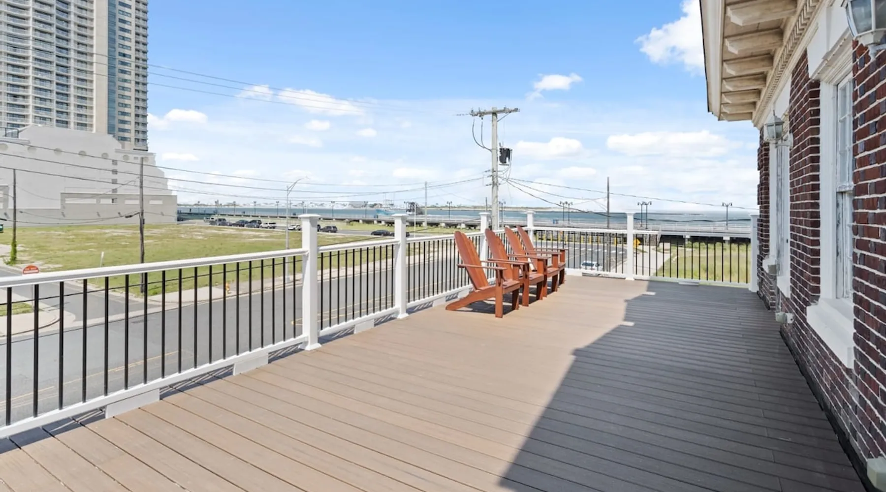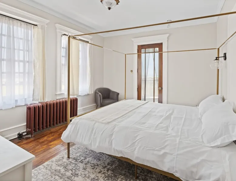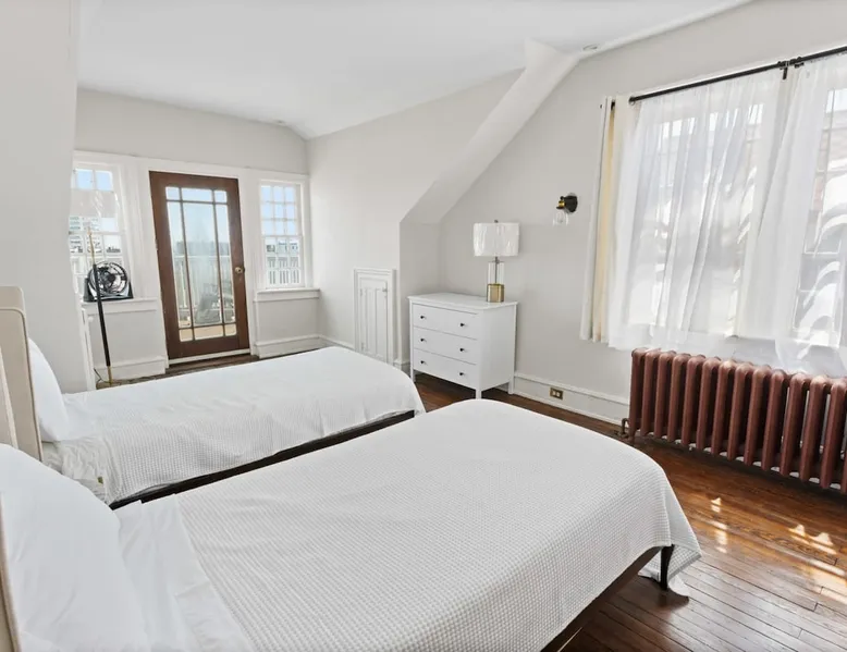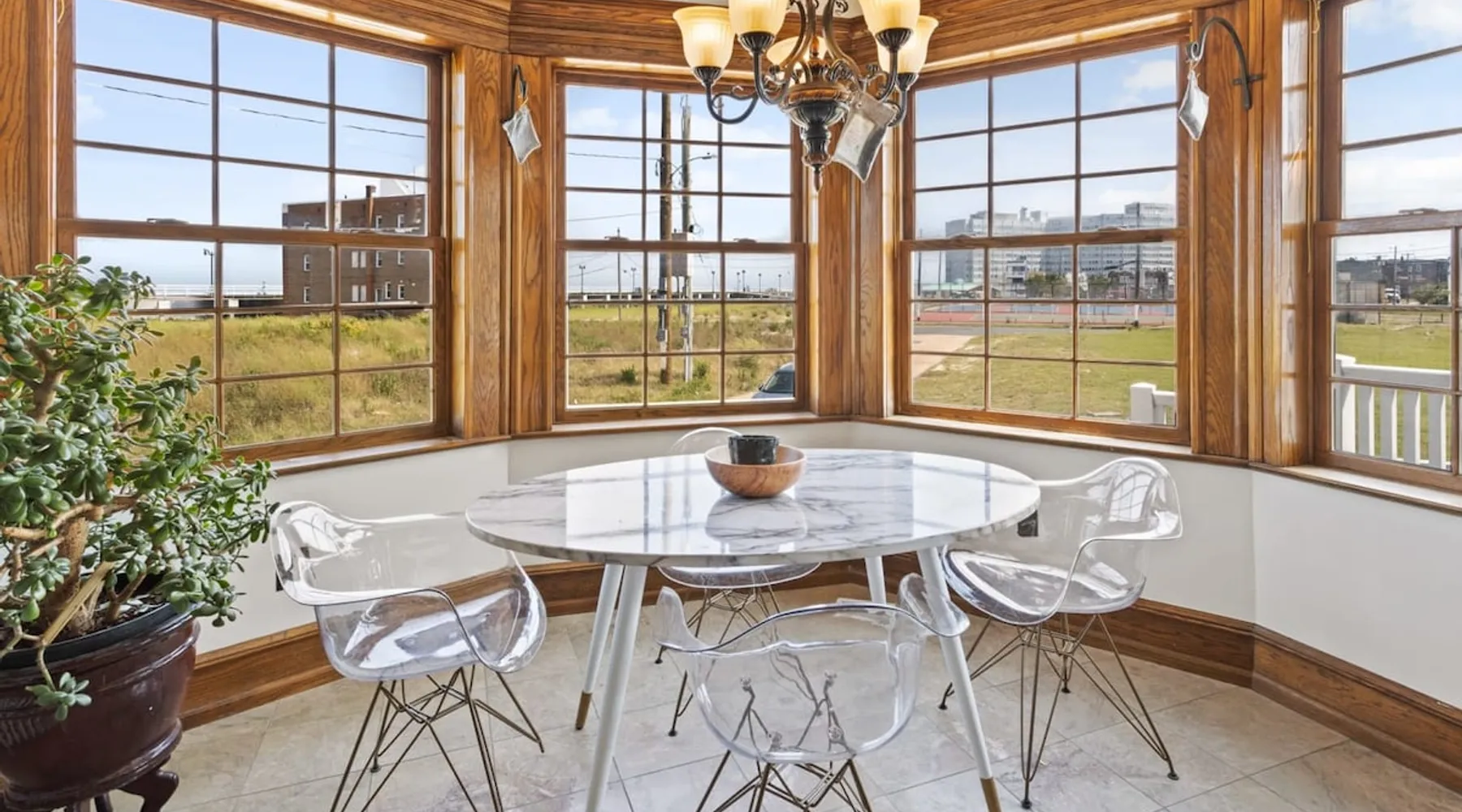 The space Transport yourself back in time at our beautifully restored, majestic historic home nestled just a few steps from the famous 4-mile Atlantic City Boardwalk! A perfect escape to host your next family vacation or group gathering among friends, the 4,000 SF home features (8) delicately furnished bedrooms, 6-1/2 spacious bathrooms, original hardwood floors, a gorgeous solarium, and relaxing ocean views. Craving Atlantic City’s world-class entertainment and dining scene? We are a 10-minute walk al - A blend of comfort, class, and convenience awaits you as soon as you step through the front door. The spacious living area, characterized by large windows showering the space with natural light, will immediately welcome you with plenty of seating for the entire family. Adorned with tastefully picked décor, comfortable sofa and chaise, the living room is an ideal space for gathering. For your entertainment, there is a 65” Roku TV as well as a soundbar. The kitchen boasts beautiful granite countertops that add an appealing touch to the well-lit room. Fully equipped for all of your essential cooking needs, the kitchen features a variety of amenities such as a coffee maker, microwave, full stove/oven, dishwasher and offers a range of kitchenware and cookware you need to whip up a tasty meal during your stay. Right by the kitchen is a cozy dining area adorned with furniture featuring a vintage design that will make you feel like you're dining in a rustic café. The large table will seat up to (6) guests comfortably. Between the kitchen and living room is the spacious formal dining room, with seating for up to (10). The dining room is flanked by the sun-filled solarium, offering additional seating for a more informal dining experience. When you’re ready to cap off the night, choose from the (8) comfy bedrooms across the top two floors. On the second floor, there are (4) bedrooms, each of which consists of a king-sized bed on top of a canopy-style bed frame. Each of the king bedrooms also features its own ensuite bathroom stocked with all the essentials. The third floor features another (4) bedrooms with flexible sleeping arrangements: Bedroom #5: twin-over-full bunk bed with direct access to the third floor deck Bedroom #6: (2) twin beds with direct access to the third floor deck Bedroom #7: (1) full bed + a twin daybed w/trundle (twin) - no deck access Bedroom #8: (1) full bed + a twin daybed - no deck access The third floor offers (2) separate bathrooms with tiled walk-in showers. The entire house is served by a 3-zone central A/C system, so each floor is controlled by its own thermostat to maintain its desired temperature. The top floor is also on its own zone for heating. Several bedrooms do not have closets, but each bedroom has at least a dresser/chest of drawers. If you're working away from home - no worries! The house is equipped with high-speed Internet through Xfinity for all your Zoom call and virtual meeting needs. Our Internet plan calls for 800 mbps. For fastest speeds, your best bet is to plug directly into the modem/router in the living room, or to set up close to the router. While we do not tolerate excessive partying (particularly with guests who are not included on your reservation), we welcome bachelor party and bachelorette party groups. Please advise beforehand, and we are happy to make recommendations for your bachelor/bachelorette parties! We also welcome groups coming to town on golf trips, business/corporate retreats, family reunions, and milestone birthdays. Guest access Guests have private access to the entire house as well as free Wi-Fi, free parking, and access to the laundry with a washing machine and dryer. Other things to note A few things to note about the house: 1. Pets are welcome for an additional pet fee of $149 per pet (per stay). Please advise before booking your reservation. 2. As you would expect from a house of this age, it has its quirks you won't find in a modern home. We hope that you embrace its imperfections and see these as an addition to the house’s beauty and charm. 3. There is one 65” Smart TV in the living room. Please note that we do not have cable TV. 4. In an effort to combat noise concerns and out of consideration for our neighbors, we have noise sensors installed at the property to monitor noise levels. We do not record audio of any type. This is strictly to ensure that noise does not eclipse a reasonable level, particularly in the evening hours. All we receive is a time-stamped decibel reading. You should have nothing to worry about as long as you're not engaging in excessive partying. 5. Please note that per Atlantic City's rules, we are not permitted to rent to groups under the age of 21. 6. Please note that this house has multiple decks (with beautiful views of the water). However, if you are traveling with young children, please be mindful not to leave them outside unsupervised. (6) of the (8) bedrooms have direct access to decks. 7. The fireplace on the first floor is decorative. It cannot be used. 8. (2) bathrooms on the second floor have clawfoot tubs with handheld showers. There is no overhead shower in those bathrooms. 9. Entering the house requires climbing a flight of stairs. Once inside, all of the bedrooms are located up another flight or two of stairs. Please keep this in mind if anyone in your group has an issue with stairs.