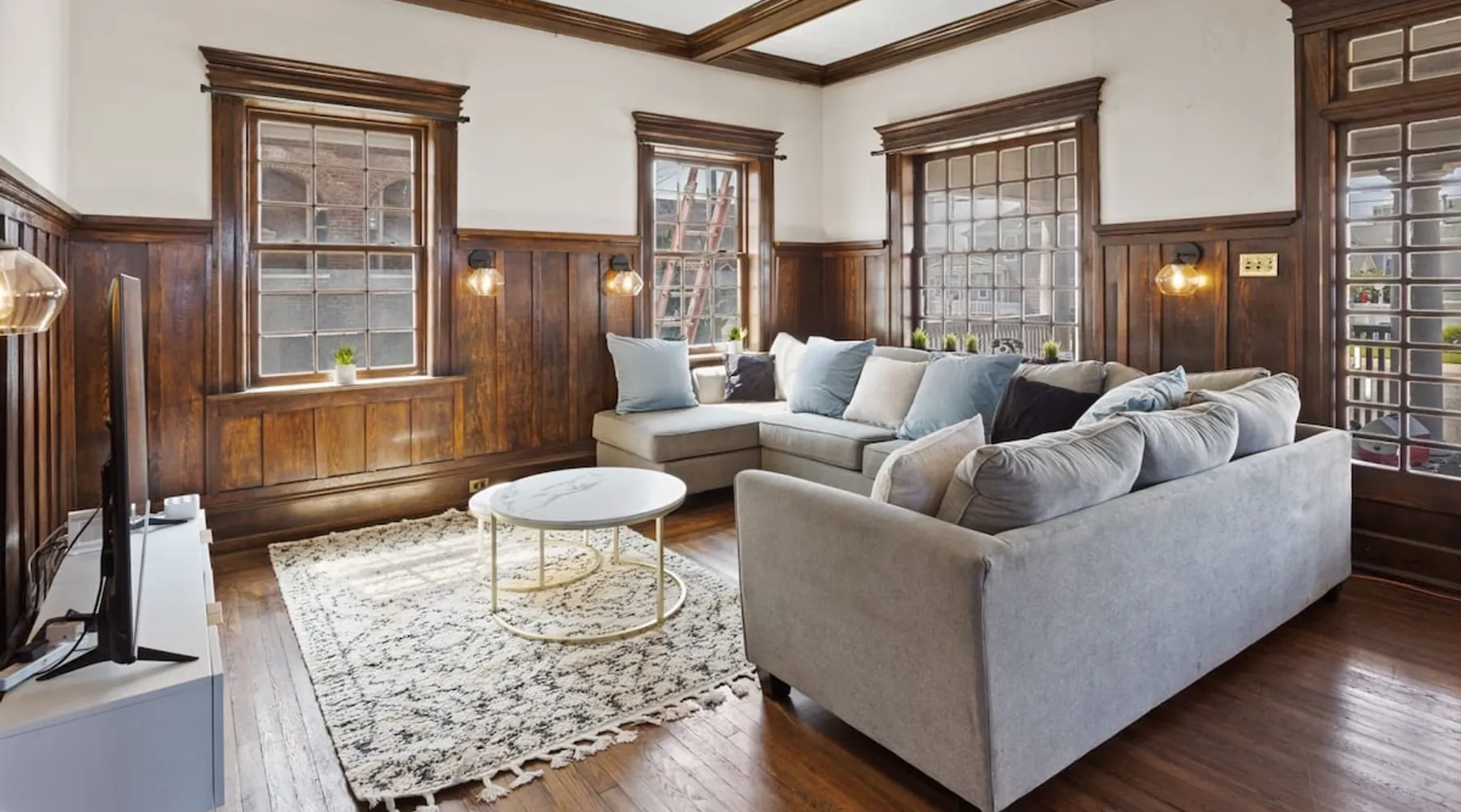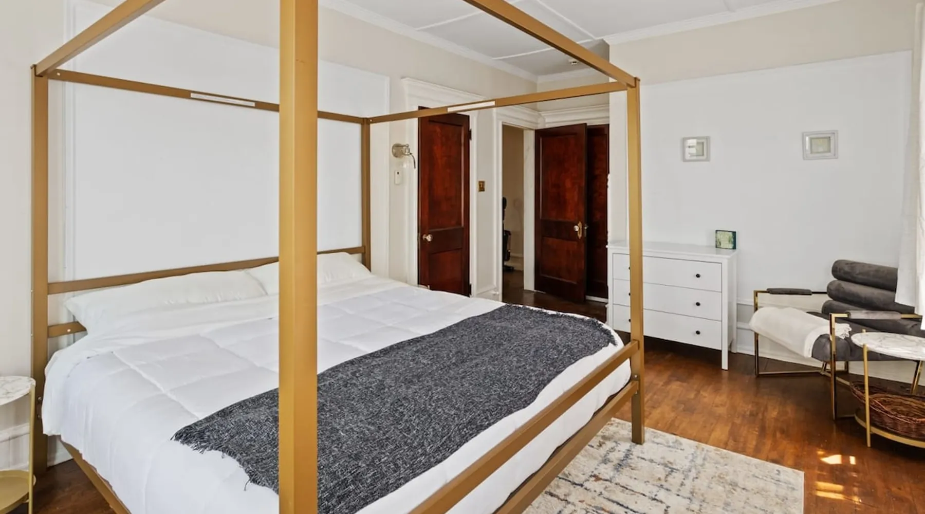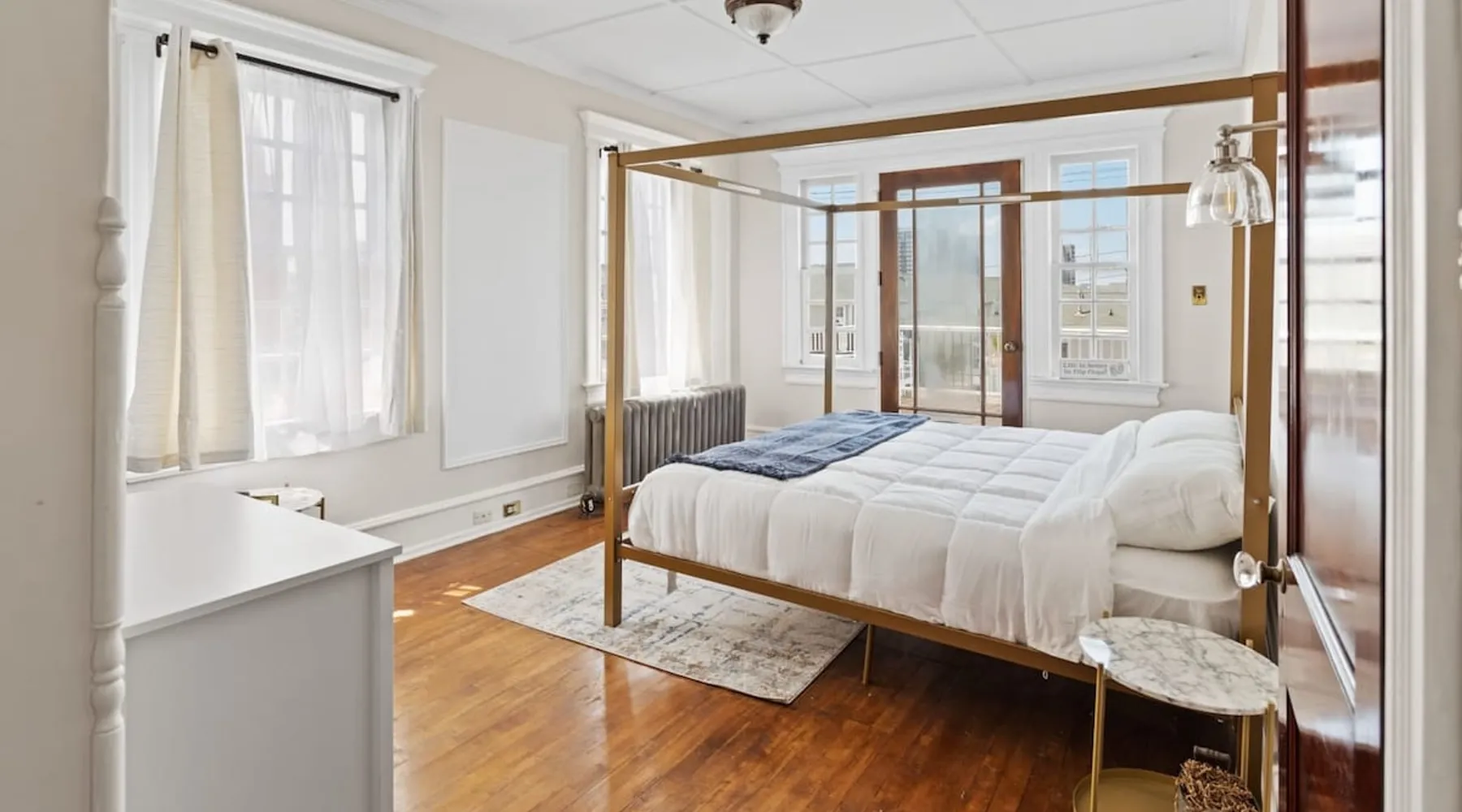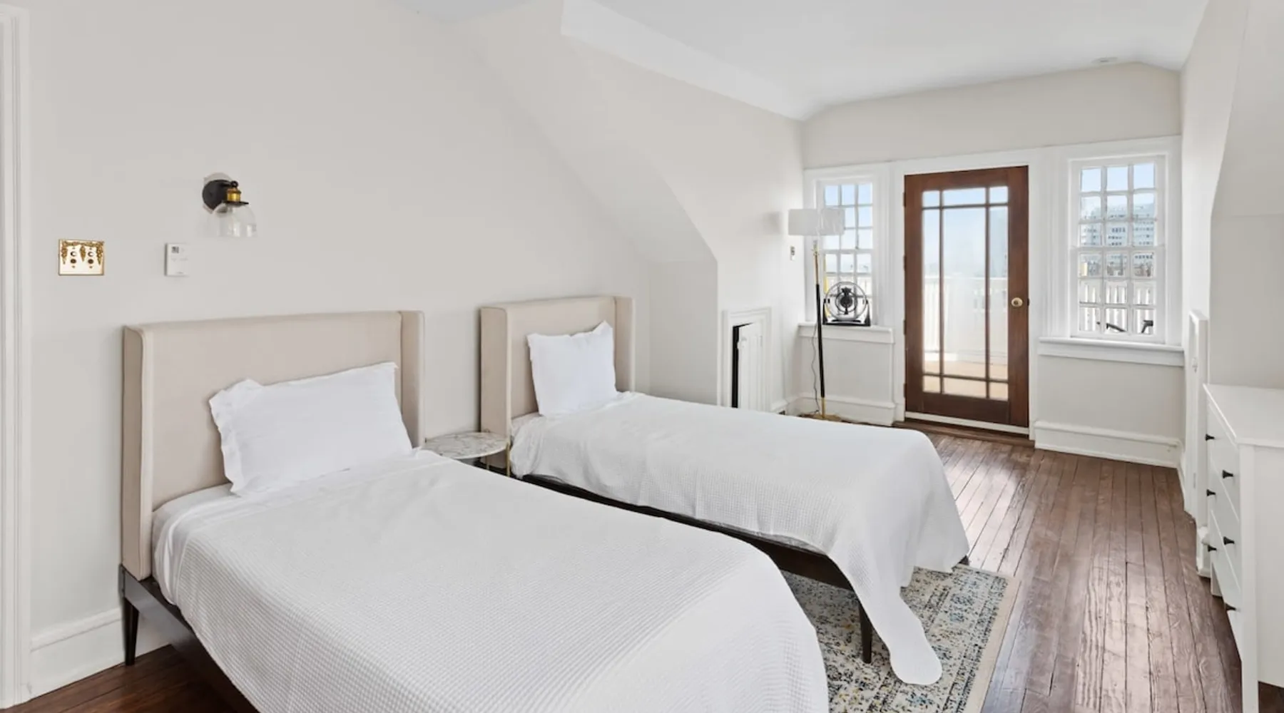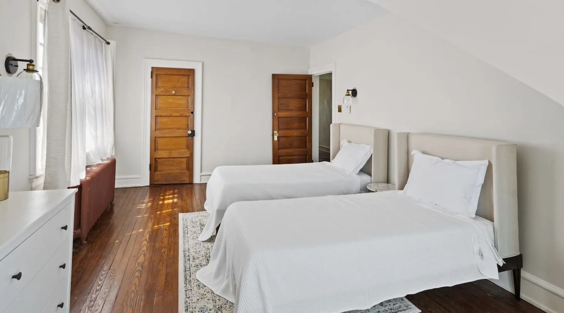 The space Transport yourself back in time at our beautifully restored, majestic historic home nestled just a few steps from the famous 4-mile Atlantic City Boardwalk! A perfect escape to host your next family vacation or group gathering among friends, the 4,000 SF home features (8) delicately furnished bedrooms, 6-1/2 spacious bathrooms, original hardwood floors, a gorgeous solarium, and relaxing ocean views. Craving Atlantic City’s world-class entertainment and dining scene? We are a 10-minute walk al - A blend of comfort, class, and convenience awaits you as soon as you step through the front door. The spacious living area, characterized by large windows showering the space with natural light, will immediately welcome you with plenty of seating for the entire family. Adorned with tastefully picked décor, comfortable sofa and chaise, the living room is an ideal space for gathering. For your entertainment, there is a 65” Roku TV as well as a soundbar. The kitchen boasts beautiful granite countertops that add an appealing touch to the well-lit room. Fully equipped for all of your essential cooking needs, the kitchen features a variety of amenities such as a coffee maker, microwave, full stove/oven, dishwasher and offers a range of kitchenware and cookware you need to whip up a tasty meal during your stay. Right by the kitchen is a cozy dining area adorned with furniture featuring a vintage design that will make you feel like you're dining in a rustic café. The large table will seat up to (6) guests comfortably. Between the kitchen and living room is the spacious formal dining room, with seating for up to (10). The dining room is flanked by the sun-filled solarium, offering additional seating for a more informal dining experience. When you’re ready to cap off the night, choose from the (8) comfy bedrooms across the top two floors. On the second floor, there are (4) bedrooms, each of which consists of a king-sized bed on top of a canopy-style bed frame. Each of the king bedrooms also features its own ensuite bathroom stocked with all the essentials. The third floor features another (4) bedrooms with flexible sleeping arrangements: Bedroom #5: twin-over-full bunk bed with direct access to the third floor deck Bedroom #6: (2) twin beds with direct access to the third floor deck Bedroom #7: (1) full bed + a twin daybed w/trundle (twin) - no deck access Bedroom #8: (1) full bed + a twin daybed - no deck access The third floor offers (2) separate bathrooms with tiled walk-in showers. The entire house is served by a 3-zone central A/C system, so each floor is controlled by its own thermostat to maintain its desired temperature. The top floor is also on its own zone for heating. Several bedrooms do not have closets, but each bedroom has at least a dresser/chest of drawers. If you're working away from home - no worries! The house is equipped with high-speed Internet through Xfinity for all your Zoom call and virtual meeting needs. Our Internet plan calls for 800 mbps. For fastest speeds, your best bet is to plug directly into the modem/router in the living room, or to set up close to the router. While we do not tolerate excessive partying (particularly with guests who are not included on your reservation), we welcome bachelor party and bachelorette party groups. Please advise beforehand, and we are happy to make recommendations for your bachelor/bachelorette parties! We also welcome groups coming to town on golf trips, business/corporate retreats, family reunions, and milestone birthdays. Guest access Guests have private access to the entire house as well as free Wi-Fi, free parking, and access to the laundry with a washing machine and dryer. Other things to note A few things to note about the house: 1. Pets are welcome for an additional pet fee of $149 per pet (per stay). Please advise before booking your reservation. 2. As you would expect from a house of this age, it has its quirks you won't find in a modern home. We hope that you embrace its imperfections and see these as an addition to the house’s beauty and charm. 3. There is one 65” Smart TV in the living room. Please note that we do not have cable TV. 4. In an effort to combat noise concerns and out of consideration for our neighbors, we have noise sensors installed at the property to monitor noise levels. We do not record audio of any type. This is strictly to ensure that noise does not eclipse a reasonable level, particularly in the evening hours. All we receive is a time-stamped decibel reading. You should have nothing to worry about as long as you're not engaging in excessive partying. 5. Please note that per Atlantic City's rules, we are not permitted to rent to groups under the age of 21. 6. Please note that this house has multiple decks (with beautiful views of the water). However, if you are traveling with young children, please be mindful not to leave them outside unsupervised. (6) of the (8) bedrooms have direct access to decks. 7. The fireplace on the first floor is decorative. It cannot be used. 8. (2) bathrooms on the second floor have clawfoot tubs with handheld showers. There is no overhead shower in those bathrooms. 9. Entering the house requires climbing a flight of stairs. Once inside, all of the bedrooms are located up another flight or two of stairs. Please keep this in mind if anyone in your group has an issue with stairs.