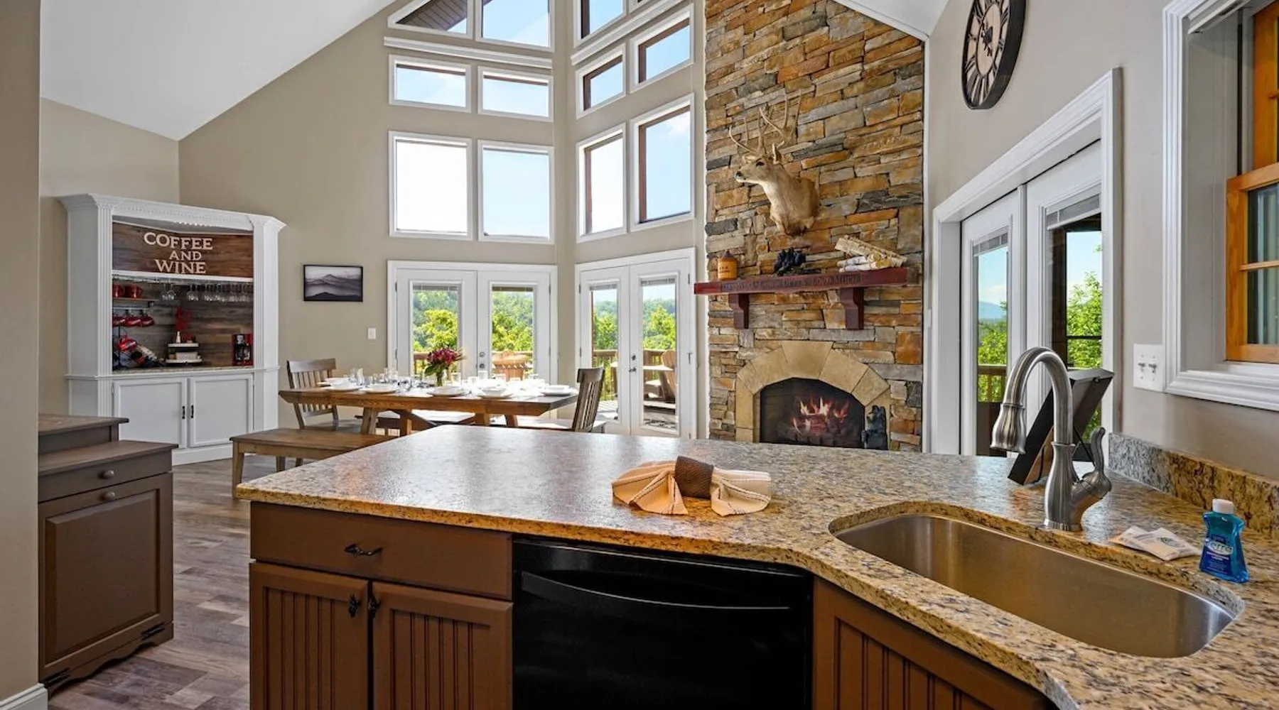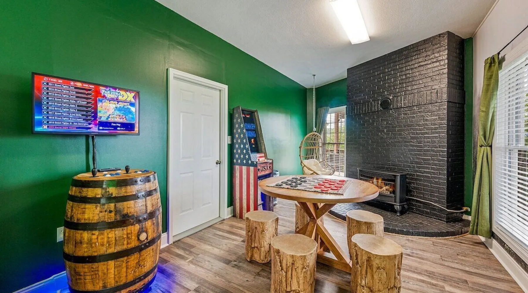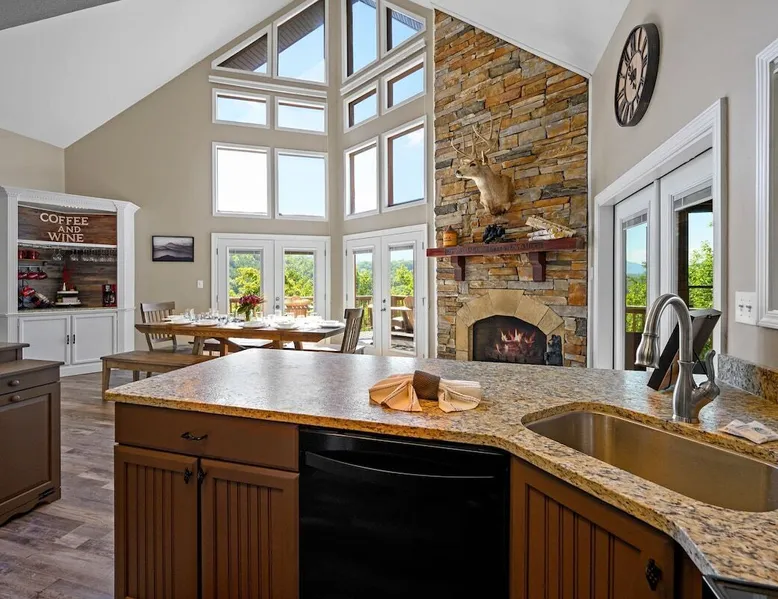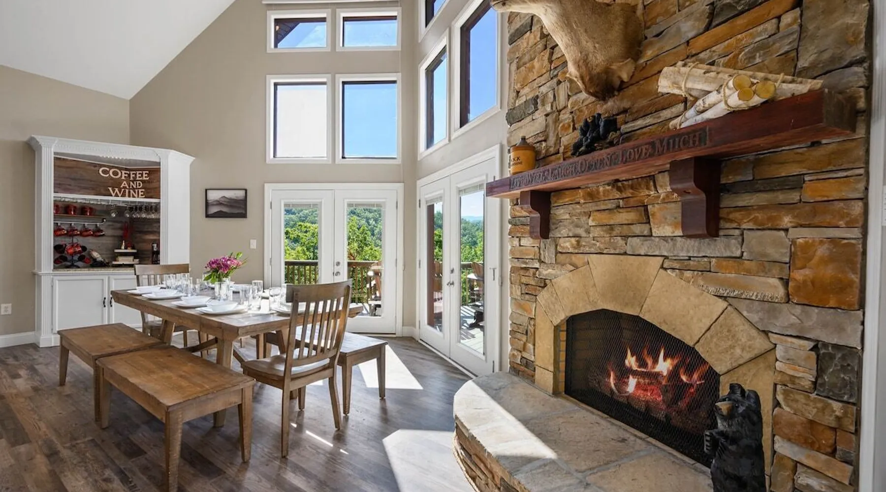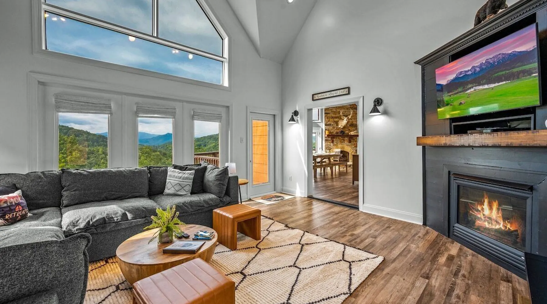 Welcome to Trace of Heaven, our stunning dog-friendly modern cabin near Pigeon Forge, TN! This spacious and private cabin situated on five private acres behind two gates boasts epic panoramic views of the surrounding Smoky Mountains that will take your breath away. The sunsets from the deck are truly amazing! The cabin features three beautifully appointed bedrooms, each with its own attached bathroom for ultimate privacy and comfort. The basement is fully finished with additional bunk beds, a 65-inch smart TV, and arcade machines. With ample space for up to 14 guests, this is the perfect spot for families, groups of friends, or couples looking for a romantic getaway. You'll love spending your evenings soaking in the private hot tub on the deck, enjoying the breathtaking views as you relax and unwind. And when hunger strikes, fire up the propane grill for a delicious outdoor meal with the mountains as your backdrop. Inside, you'll find all the modern amenities you need for a comfortable stay, including high-speed internet, a dedicated work space, a fully equipped kitchen, and a cozy living area with a gas fireplace. Up to two dogs allowed per reservation. Located just a short five mile drive from Pigeon Forge, you'll have easy access to all the area's top attractions, including Dollywood, Great Smoky Mountains National Park, as well as local shopping, dining, and entertainment options. Book your stay at our modern cabin today and experience the ultimate mountain getaway with all the comforts of home! Trace of Heaven is located off of scenic Wears Valley Road just minutes from downtown Pigeon Forge and the Great Smoky Mountain National Park making it very easy and convenient to get to all of the Great Smoky Mountain area attractions! GREAT LOCATION! -5 miles from downtown Pigeon Forge -12 miles to Gatlinburg -7 miles to the Great Smoky Mountain National Park(Line Springs Rd. Entrance) -9 miles to Dollywood *Sleeping Arrangements* * Three Master Suites - two QUEENS on main level and one KING upstairs, perfect for 3 couples! All three have attached full bathrooms. * Upstairs Master offers private deck/balcony to enjoy breathtaking sunsets and mountain views. * Two sets of bunks in the basement. One full over full and one twin over twin. Perfect for couples or the kids! * Queen sleeper sofa in the living room if needed. Please note that you will need to bring queen linens if you use the sleeper sofa. Amenities: *Hot tub big enough for 8+ people with mountain views * Arcade Games, Flat Screen Smart Roku TVs * Cable Television - 5 Flat Screen TVs * Custom stone gas log fireplace * Huge deck with a propane grill and amazing 50 mile mountain views! * Screened porch with amazing mountain sunset views and ample seating * Fully equipped kitchen with black stainless steel appliances * Huge custom dinner table with ample seating and amazing mountain views * High speed Internet * Ample flat parking * Washer & dryer * Cathedral ceilings * Open kitchen, dining, and living room area - great for entertaining * Two seasonal gas fireplaces Floor Plan: **Main Level** Huge deck overlooking the Smoky Mountains, screen porch nicknamed the 'Tree House', kitchen, living room with sofa sleeper, two Queen master suites with full bathrooms, large dining room, and additional half bathroom **2nd Floor** Master suite with King size bed, full bathroom with jacuzzi tub, and private deck to take in the views **Basement** One full over full bunk bed, one twin over twin bunk bed, TV area, large game room, laundry room, walk out to lower deck with an 8 person hot tub, a porch swing, and additional seating **Trace of Heaven can also be rented with our other cabin that sleeps 10 named Paradise View on the same road. Property ID 2259250. Link: https://t.vrbo.io/PcHprlQlikb Please reach out if you would like to book both cabins. During some months, 4-wheel drive may be needed. The indoor gas fireplaces are seasonal. (typically available Nov-Mar)