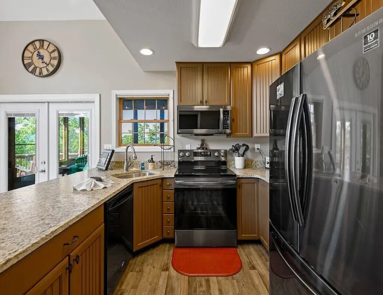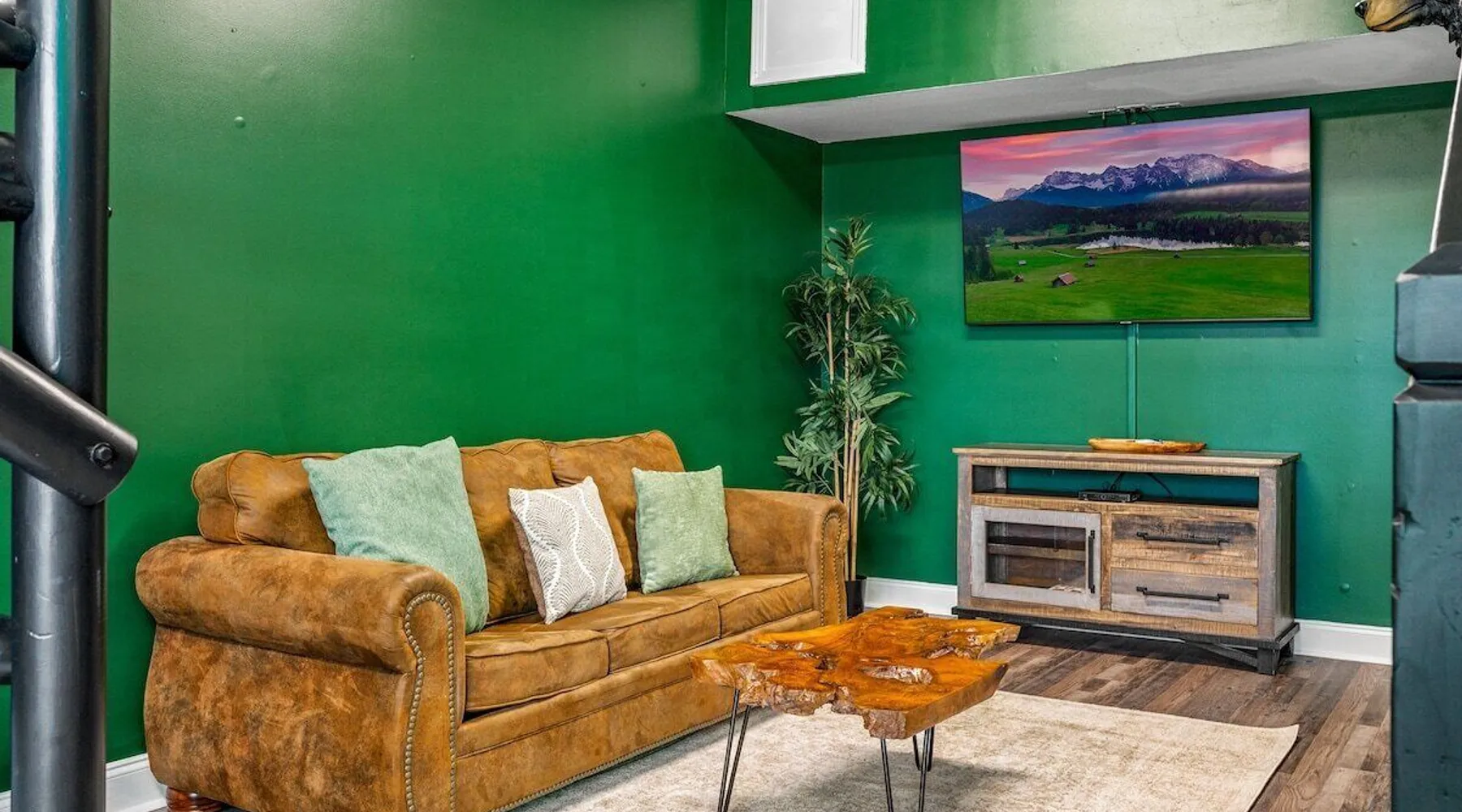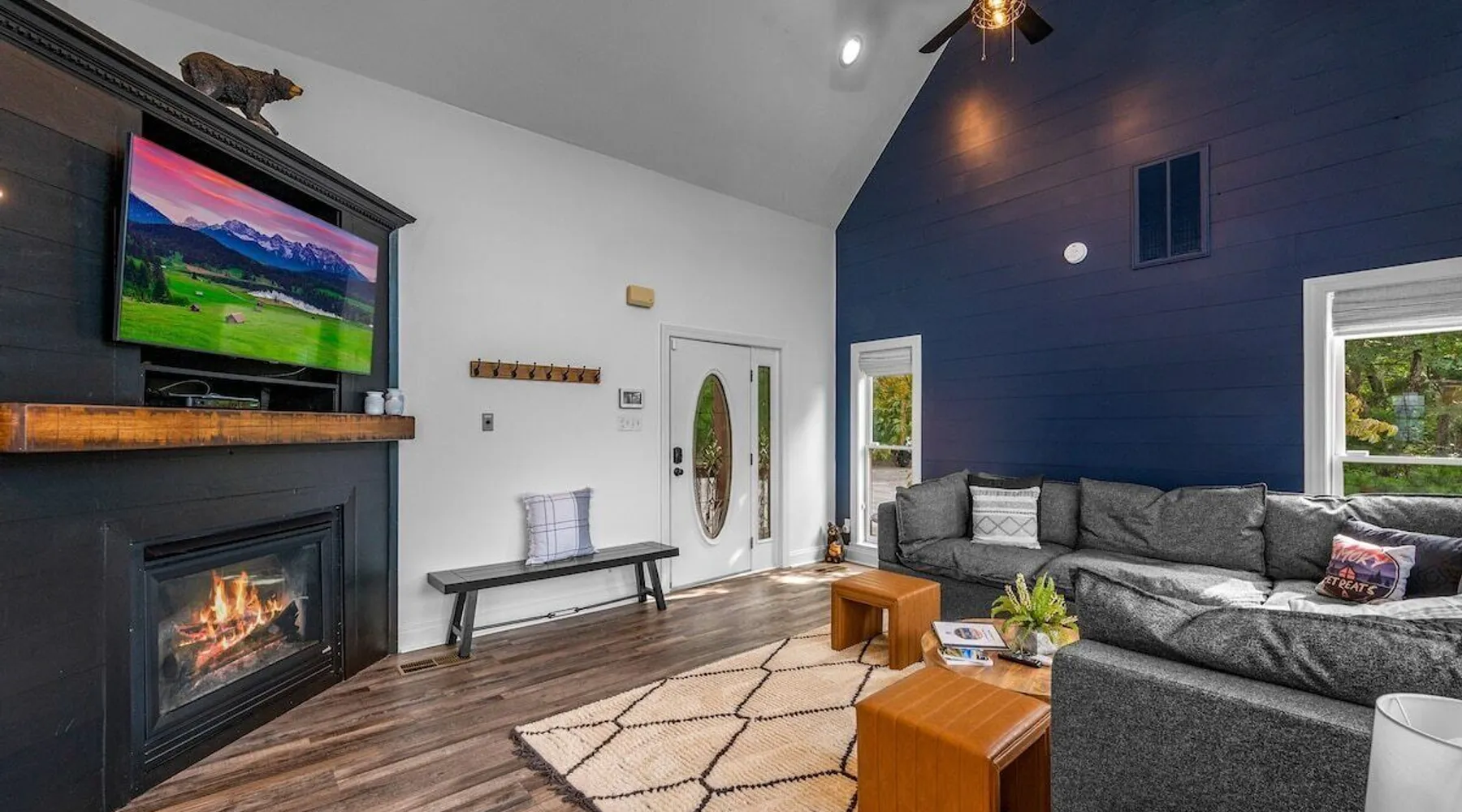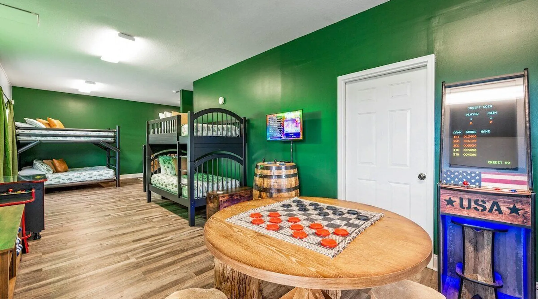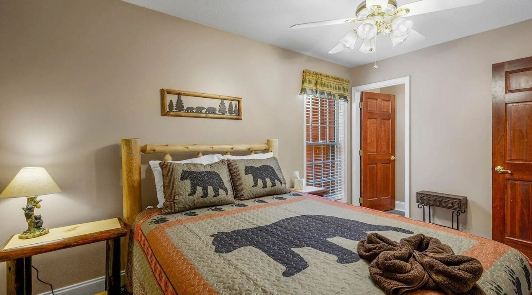 Welcome to Trace of Heaven, our stunning dog-friendly modern cabin near Pigeon Forge, TN! This spacious and private cabin situated on five private acres behind two gates boasts epic panoramic views of the surrounding Smoky Mountains that will take your breath away. The sunsets from the deck are truly amazing! The cabin features three beautifully appointed bedrooms, each with its own attached bathroom for ultimate privacy and comfort. The basement is fully finished with additional bunk beds, a 65-inch smart TV, and arcade machines. With ample space for up to 14 guests, this is the perfect spot for families, groups of friends, or couples looking for a romantic getaway. You'll love spending your evenings soaking in the private hot tub on the deck, enjoying the breathtaking views as you relax and unwind. And when hunger strikes, fire up the propane grill for a delicious outdoor meal with the mountains as your backdrop. Inside, you'll find all the modern amenities you need for a comfortable stay, including high-speed internet, a dedicated work space, a fully equipped kitchen, and a cozy living area with a gas fireplace. Up to two dogs allowed per reservation. Located just a short five mile drive from Pigeon Forge, you'll have easy access to all the area's top attractions, including Dollywood, Great Smoky Mountains National Park, as well as local shopping, dining, and entertainment options. Book your stay at our modern cabin today and experience the ultimate mountain getaway with all the comforts of home! Trace of Heaven is located off of scenic Wears Valley Road just minutes from downtown Pigeon Forge and the Great Smoky Mountain National Park making it very easy and convenient to get to all of the Great Smoky Mountain area attractions! GREAT LOCATION! -5 miles from downtown Pigeon Forge -12 miles to Gatlinburg -7 miles to the Great Smoky Mountain National Park(Line Springs Rd. Entrance) -9 miles to Dollywood *Sleeping Arrangements* * Three Master Suites - two QUEENS on main level and one KING upstairs, perfect for 3 couples! All three have attached full bathrooms. * Upstairs Master offers private deck/balcony to enjoy breathtaking sunsets and mountain views. * Two sets of bunks in the basement. One full over full and one twin over twin. Perfect for couples or the kids! * Queen sleeper sofa in the living room if needed. Please note that you will need to bring queen linens if you use the sleeper sofa. Amenities: *Hot tub big enough for 8+ people with mountain views * Arcade Games, Flat Screen Smart Roku TVs * Cable Television - 5 Flat Screen TVs * Custom stone gas log fireplace * Huge deck with a propane grill and amazing 50 mile mountain views! * Screened porch with amazing mountain sunset views and ample seating * Fully equipped kitchen with black stainless steel appliances * Huge custom dinner table with ample seating and amazing mountain views * High speed Internet * Ample flat parking * Washer & dryer * Cathedral ceilings * Open kitchen, dining, and living room area - great for entertaining * Two seasonal gas fireplaces Floor Plan: **Main Level** Huge deck overlooking the Smoky Mountains, screen porch nicknamed the 'Tree House', kitchen, living room with sofa sleeper, two Queen master suites with full bathrooms, large dining room, and additional half bathroom **2nd Floor** Master suite with King size bed, full bathroom with jacuzzi tub, and private deck to take in the views **Basement** One full over full bunk bed, one twin over twin bunk bed, TV area, large game room, laundry room, walk out to lower deck with an 8 person hot tub, a porch swing, and additional seating **Trace of Heaven can also be rented with our other cabin that sleeps 10 named Paradise View on the same road. Property ID 2259250. Link: https://t.vrbo.io/PcHprlQlikb Please reach out if you would like to book both cabins. During some months, 4-wheel drive may be needed. The indoor gas fireplaces are seasonal. (typically available Nov-Mar)