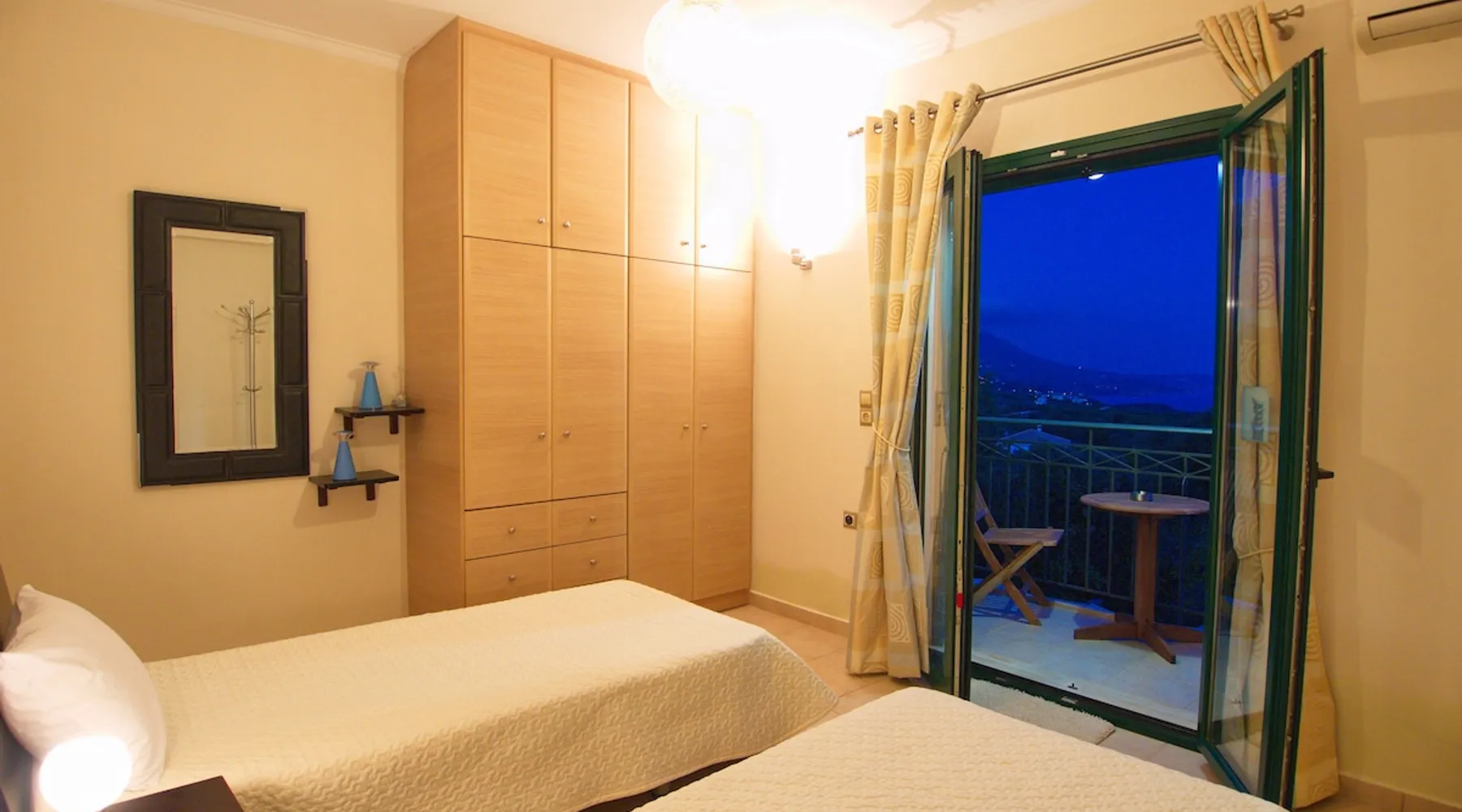 "Fab Villa with Sea views, stroll to great taverna" On the edge of the village of Karavados, 2 kms inland from pretty St Thomas Beach, Villa Yianna has light and spacious accommodation laid out over two floors and is ideal for couples or a small family. The jewel of this smart two bedroom villa is the absorbing sea and mountain views from the terraces and balconies. It is no more than a few minutes’ walk to a convenient minimarket and a taverna. The space Villa Yianna, Lourdas, Kefalonia On the edge of the village of Karavados, 2 kms inland from pretty St Thomas Beach, Villa Yianna has light and spacious accommodation laid out over two floors and is ideal for couples or a small family. The jewel of this smart two bedroom villa is the absorbing sea and mountain views from the terraces and balconies. It is no more than a few minutes’ walk to a convenient minimarket and a taverna. Location Little villages dot the hillsides between the mountains and the sea and there is an excellent choice of tavernas to be found with a little exploration. There are also many small beaches to discover in this area all with soft gently shelving sand. Argostoli itself is an easy 15 mins drive and worth the trip for a walk along the harbour side and a little window shopping. The leafy square is a great place to stop for a coffee at one of the cafes and there are some excellent tavernas around the town. Outside Villa Yianna Swimming Pool - 6m x 3.5m, depth 1m - 1.3m Sun Terrace - Tiled area by the pool with sun beds and parasol Covered Terrace - Table and chairs BBQ - Free standing BBQ Garden - small area of lawn with olive trees and flower beds 2 Sea View Balconies - table and chairs Inside Villa Yianna Ground floor Open Plan Living Room Sitting area - L shaped sofa, flat screen TV, stairs to first foor. French doors to covered pool terrace. Air Con unit. Kitchen area - Wooden fitted cupboards, sink, electric oven and electric hob, microwave, dishwasher and fridge freezer. Window above the sink to the garden and pool area. French doors to part covered poool terrace. Shower room - Shower, washbasin, WC, washing machine. First Floor Double Bedroom, ensuite bathroom - 1 double bed, French doors to sea and mountain view balcony, ensuite shower room, wash basin, WC. Air Con unit Twin bedroom, ensuite bathroom - 2 single beds, French doors to sea and mountain view balcony, ensuite bath with shower over, wash basin, WC. Air Con unit There is a simple folding bed for a fifth person in the living area, suitable for a child. Parking- there is space right next to the villa for parking. Essential Information Sleeps (Max)4 Bedrooms2 Shower Rooms2 Maid ServiceIncluded PoolPrivate 6 x 3.5 A/CIncluded Floor Area m²110 Booking Information Check-InAny day (after 16:00) Check-OutAny day (before 10:00) Minimum stay5 nights Villa Equipment DVD Satellite TV Dish Washer Washing Machine Hair Dryer Toaster Kettle Microwave WiFi Connection BBQ Filter Coffee Machine Iron & Board Pool Towels Fridge Freezer Hob Cooking Utensils Oven Guest access The villa and pool is for your private use only as well as the garden. Bed linen & towels are provided as well as pool towels. The cleaner will come in during your stay & change them, depending on how many days you are staying. All of this is included in the price. Other things to note Housekeeping Your Villa will be prepared for you on arrival with fresh bath and hand towels and all beds made up. For stays of 7 nights or more - house towels will be changed every 3 - 4 days. For stays of 14 nights or more - bed linen will be changed every 7 days. Pool/beach towels - one per person for the duration of your stay. If you need a ‘travel’ cot or a high chair (usually for children up to 2 years old), please request when booking so we can have it in the villa for you ready. Optional chargeable services: - Second High Chair - Second Cot Note that this is a professionally run rental villa which has been licensed by the Greek National Tourist Organization (EOT), which is required by the Greek law. This license allows the property owners to legally rent their accommodation to holiday makers, so that they comply to a set of standards and specific conditions for the safety & comfort of its paying customers. Registration Details 0458K91000360601