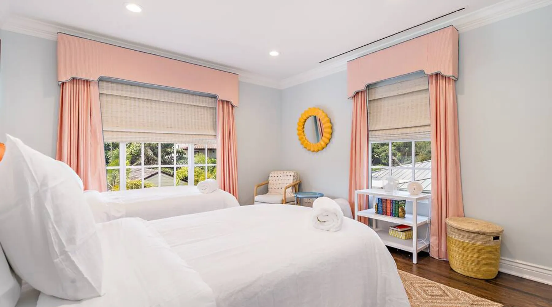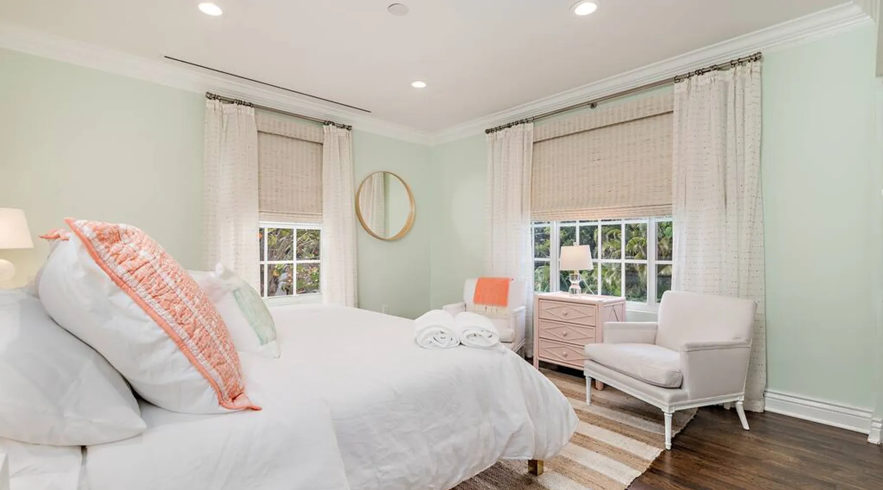 Welcome to the ultimate Palm Beach home, fabulously designed and outfitted with all the perks you and your guests are looking for! The space This Lilly Serene Oasis combines style and sophistication for entertainment and fun. Treat yourself to the perfect vacation rental, steps to the beach and park. The outdoor oasis boasts a beautiful clear blue pool, luxury outdoor seating, BBQ grill, outdoor games and lots of room to run and play! There are multiple living spaces for you to relax or entertain. The expansive fully-stocked kitchen offers everything your heart desires for culinary creations. Add Heated Pool for only $100 per night. (October - April) Ask us how? Special Features! - Starbucks Drip Coffee - Each guest receives a complimentary bottle of wine - Tea, Sugar, Creamer & cooking basics are always provided Enjoy Complimentary Concierge Service Elevate your vacation rental experience with our exclusive complimentary concierge service. Our bookings include a complimentary concierge whom can arrange your transportation, order spa services, order a private chef, order the fridge stocked prior to your arrival with your favorite things, babysitting and so much more. Outdoors & More: Have some fun in the sun with friends and family in the pool! Layout on one of the lounge chairs and catch some rays or play with the kids in the yard. Grill up dinner on the natural gas-fueled 3-burner barbecue grill and dine alfresco in the outdoor dining table covered by beautiful hanging lights. Challenge your friends and family in the many games provided: soccer, corn hole, and pool games; or grab a deck of cards and play the winning hand. Wind down the day in the Florida room in front of the big screen TV, or read a book in one of the many comfortable nooks. Indoors: This vacation home opens up to spacious living rooms and gourmet kitchen. There is plenty of room in the living to dining in front of the 54-inch Smart television and colorful high end comforts, switch-controlled ceiling fans with seating for a crowd. The dining room features a formal dining area with seating for 8. The fully equipped kitchen features stunning stainless-steel appliances such as an LG French door refrigerator and offers everything one would need to create their perfect meal, including granite countertops and an expansive island. The three living spaces offer their own unique comforts. The Florida room can easily accommodate a guest on the couch and the sitting nook off of the kitchen can comfortably sleep another guest on the couch. Bedroom Descriptions: Master: The master suite is located upstairs and features a king size bed, and private sitting room. Private, en-suite bathroom features a tile shower, two vanity sinks, and plush towels. 2nd Bedroom: The second bedroom features a two twin size beds, large closet and toys for the kids. 2nd Bathroom: The upstairs bathroom features bathtub and modern full-glass standing shower. Bedroom 3: The third bedroom features a Queen-sized Bed and reach in closet. Office / Bedroom 4: Features a comfortable twin size day-bed, desk and printer with large reach in closet. Downstairs Bathroom: This full bathroom off of the office features a tile shower with modern full-glass surround. Private Casita: Features queen bed and room for a queen size air mattress, private full bathroom and sitting area with Nespresso Starbucks coffee in the morning. Kid Friendly: The doors that lead to the pool have alarms on them, so you can easily monitor when they open and close. We also provide games for kids to enjoy both indoors and outdoors. A travel crib can be available by request. There are kid friendly plates, bowls and utensils in the kitchen for your peace of mind. Other Amenities: *** High-speed wireless internet *** High-quality linens, bath and pool towels *** Paul Mitchel Shampoo and Conditioner & Organic Body Wash *** Hair Dryers in each bathroom Fully equipped laundry room with washer, dryer, ironing board, and iron Expansive driveway parking. Pet Policy: NO PETS Bedroom Sleeping Arrangements: Master Suite 1: 1 King – Sleeps 2 Bedroom 2: 1 Queen – Sleeps 2 Bedroom 3: 2 Twins - Sleeps 2 Bedroom 4 / Office: 1 Twin - Sleeps 1 Bedroom 5: Queen Bedroom & Office - With air mattress - Sleeps 4 Florida Room: Sofa – Sleeps 1 Living Room 2: Large Couch - Sleeps 1 A little bit about us.. You are about to book with Hotel Home Stays, the best of luxury home vacation experiences. Our team prides themselves on ensuring our guests experience PEACE for the soul. Our hotel standards ensure the highest level of care throughout your stay. While our luxury designed homes ensure the comforts you just can’t live without. (wink, wink) PROTECTION – With mattress encasements, pillow protectors, hypoallergenic bedding options and COVID cleanliness standards, we go the extra mile in every home. EFFORTLESS – No guess work, we text and email the check-in details. No looking for keys, the door code allows 24-hour access. Electronic guest books provided prior to and during your stay. AMMENITIES – Arrive to Starbucks coffee, a phenomenally outfitted kitchen that includes coffee bar, mixology bar, kids plates, cups, etc. Along with the necessities, like Insta-Pot and blender. CLEAN – Our housekeepers are fantastic. But we never leave anything to chance, so our managers check the home before you arrive to ensure all the details were handled. EXCELLENCE – Throughout your stay, you will have on-going communication from our amazing team who can provide local insights, take care of special requests, and handle any issues that arise during your stay swiftly. Other things to note Pet Policy: Dogs are allowed, under 20lbs each with a maximum of two. Approval in writing and $250 fee per pet is required. Bringing a pet onto the property without approval is terms for removal without refund and up to $1,500 in fines. Service Animals are exempt from this policy. Service Animals are animals which provide a service to their 