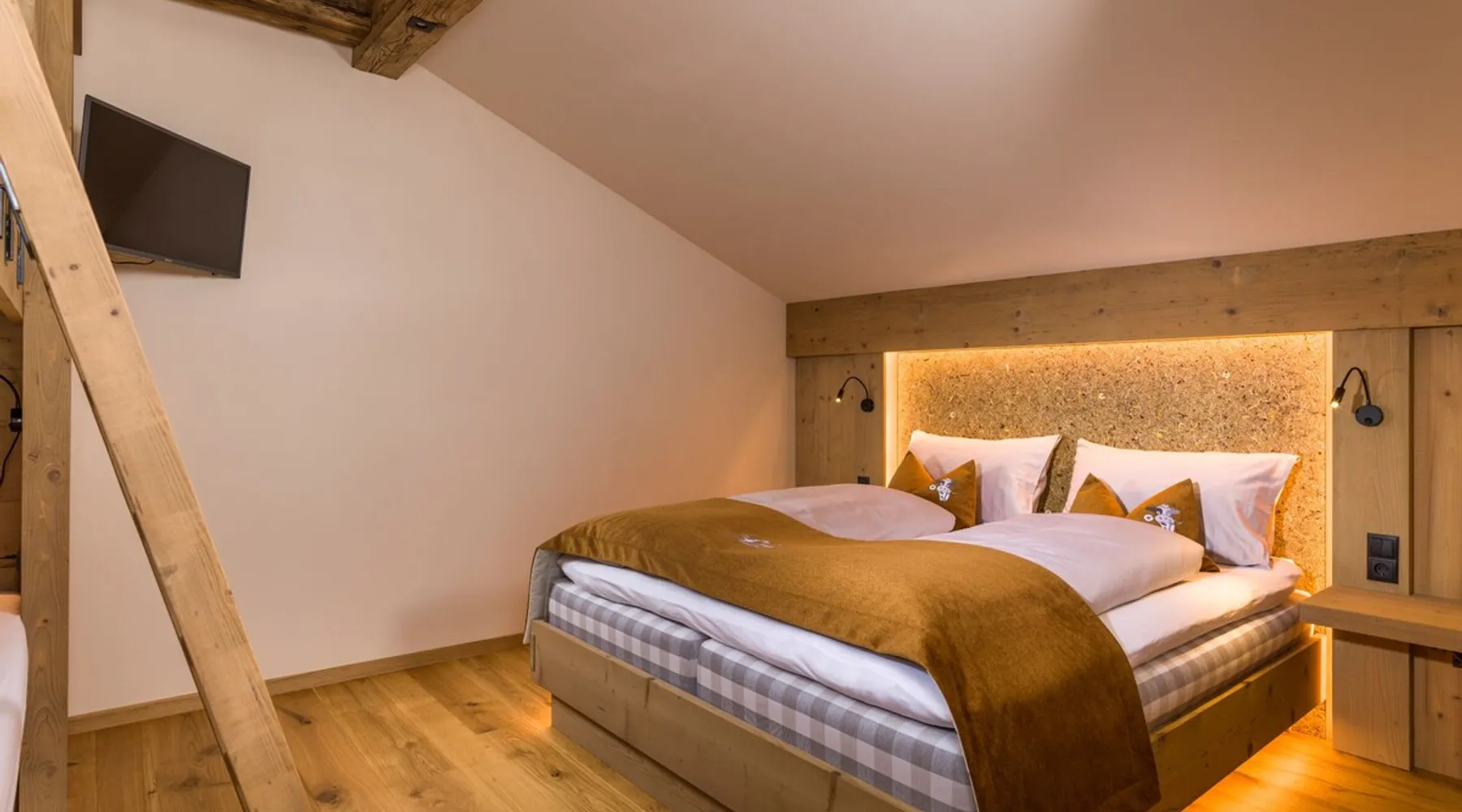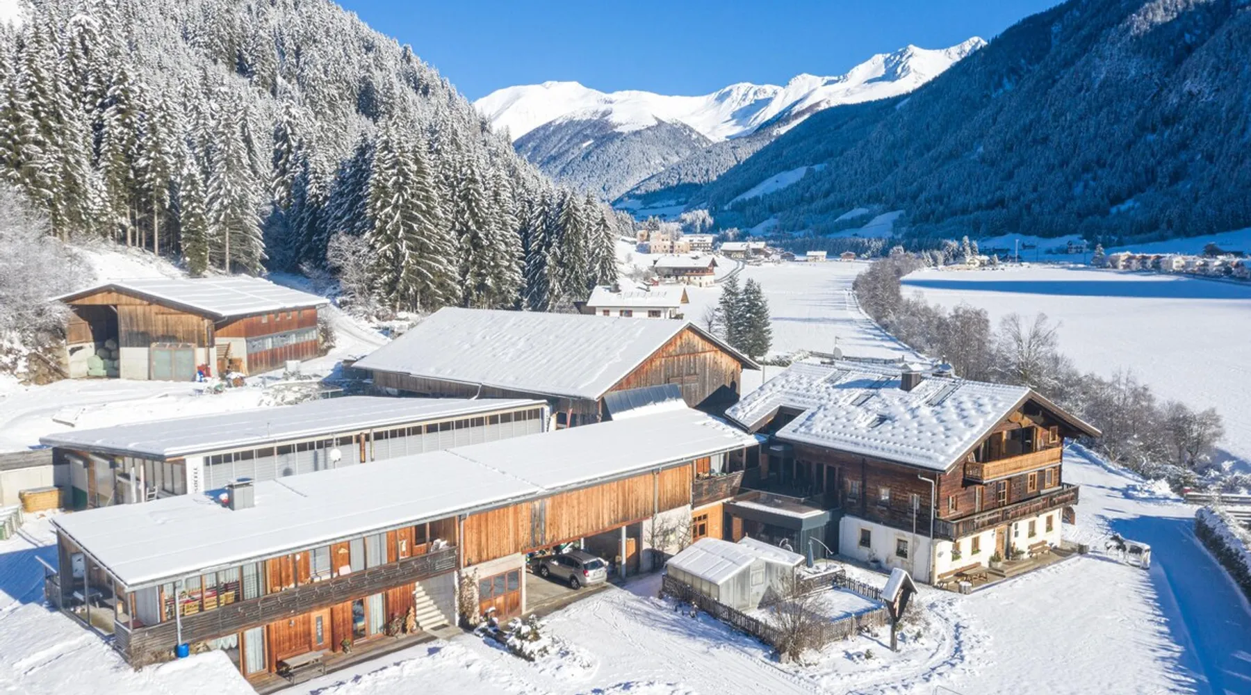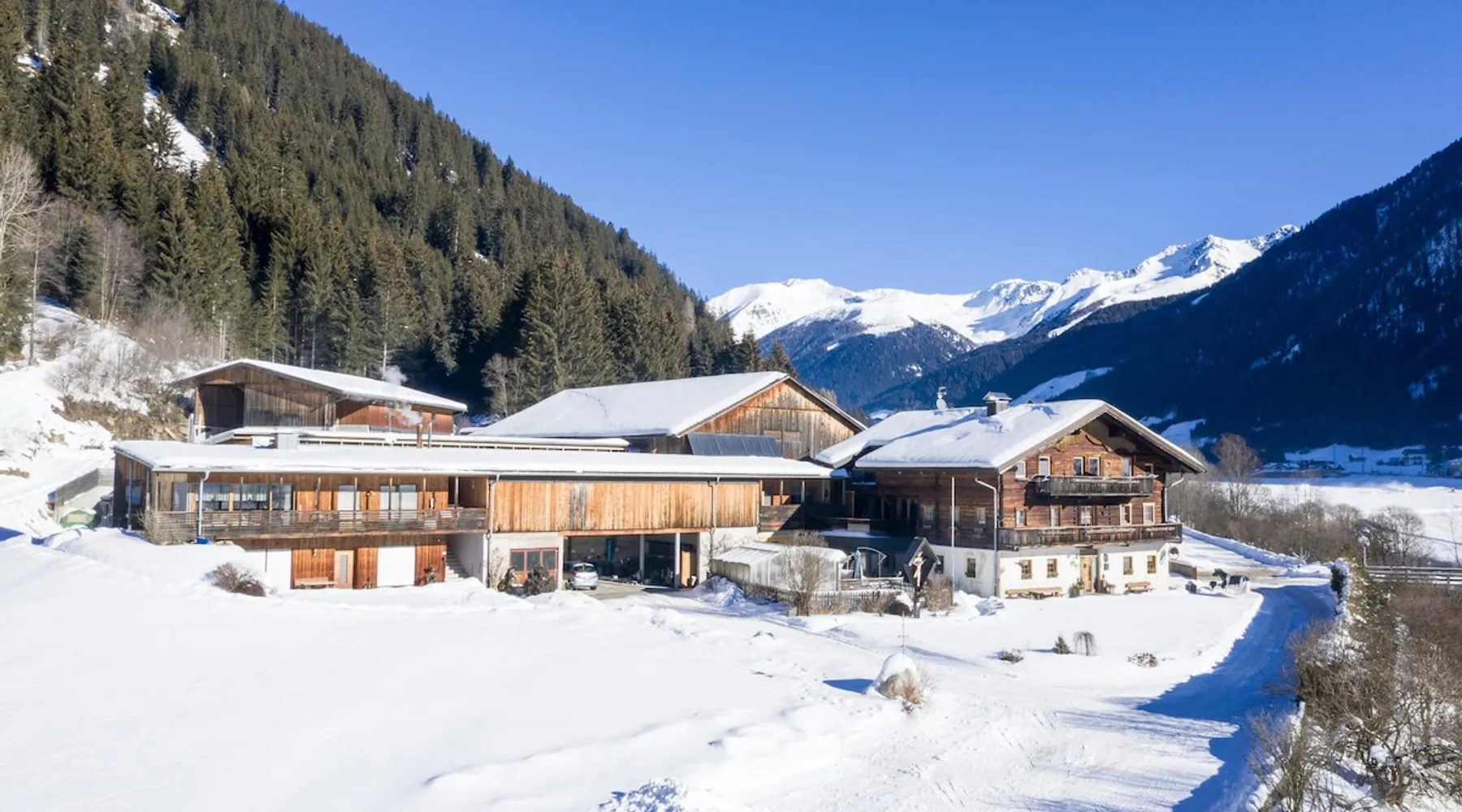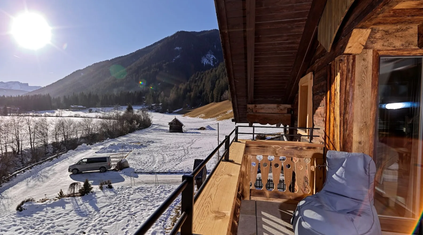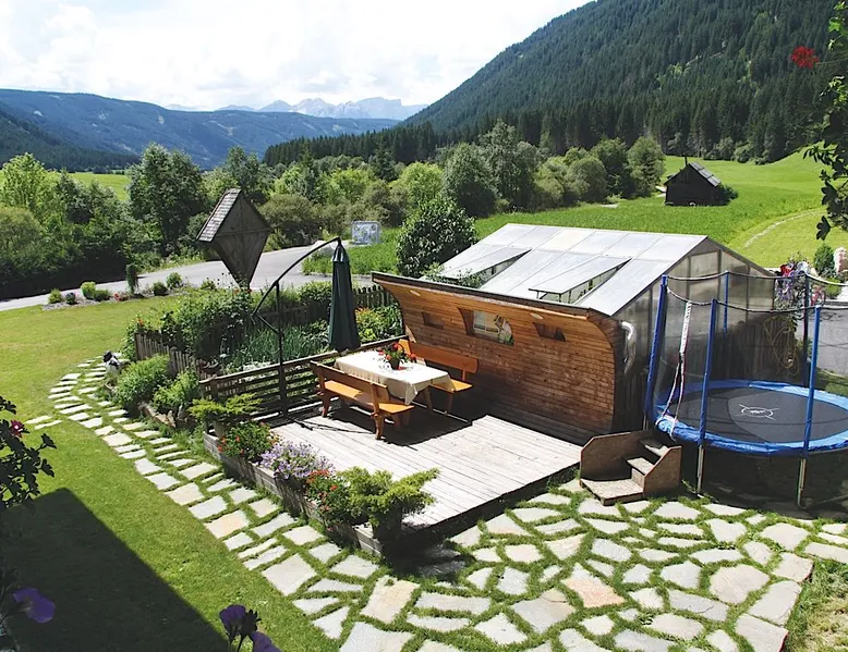 The charming “Hofchalet Heu” is part of the “Örlerhof” farm’s alpine-style apartments in the Gsies Valley (Valle di Casies) in South Tyrol and is a great starting point for hiking or skiing holidays in the Alps. The 60 m² attic apartment consists of a living room, a well-equipped kitchen with a dishwasher, 2 bedrooms as well as one bathroom and can therefore accommodate 6 people. The child-friendly apartment includes Wi-Fi, a fireplace, cable/satellite TV and a safe, while a baby crib and a highchair can be added on request. The apartment boasts a private covered terrace with seating furniture, where you can enjoy a cup of coffee with great mountain views. Furthermore, a private sauna will guarantee relaxation after a day in the mountains. The farm’s communal outdoor area has a garden with farm animals. You can find a supermarket, a pharmacy and a restaurant 650m from the property (an 8-minute walk), and the town of Bruneck can be reached after a 30-minute drive (29 km). The area offers plenty of opportunities for hiking, cycling and swimming, as well as for skiing or cross-country skiing, all within a 10-minute drive from the property. Guests can experience life as a farmer by helping on the farm. The accommodation is also ideal for children: there is a large garden and a playground in the forest. The high-quality beds are from the Swedish manufacturer Hästens. All apartments are built in a rustic yet modern style (century-old structure in a rustic-modern style) and have a Hydrosoft infrared steam sauna. Parking spaces are available on the property. Pets are not allowed. A washing machine and a dryer are available in the communal room. Breakfast is available on request and for an extra fee. Bikes can be provided. - Breakfast payment 18EUR per person per night