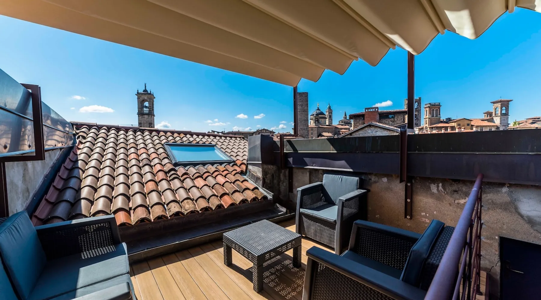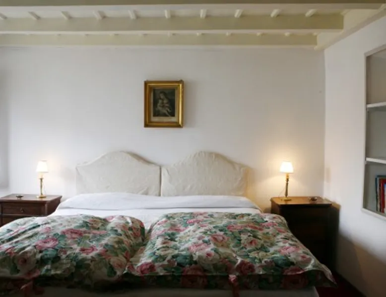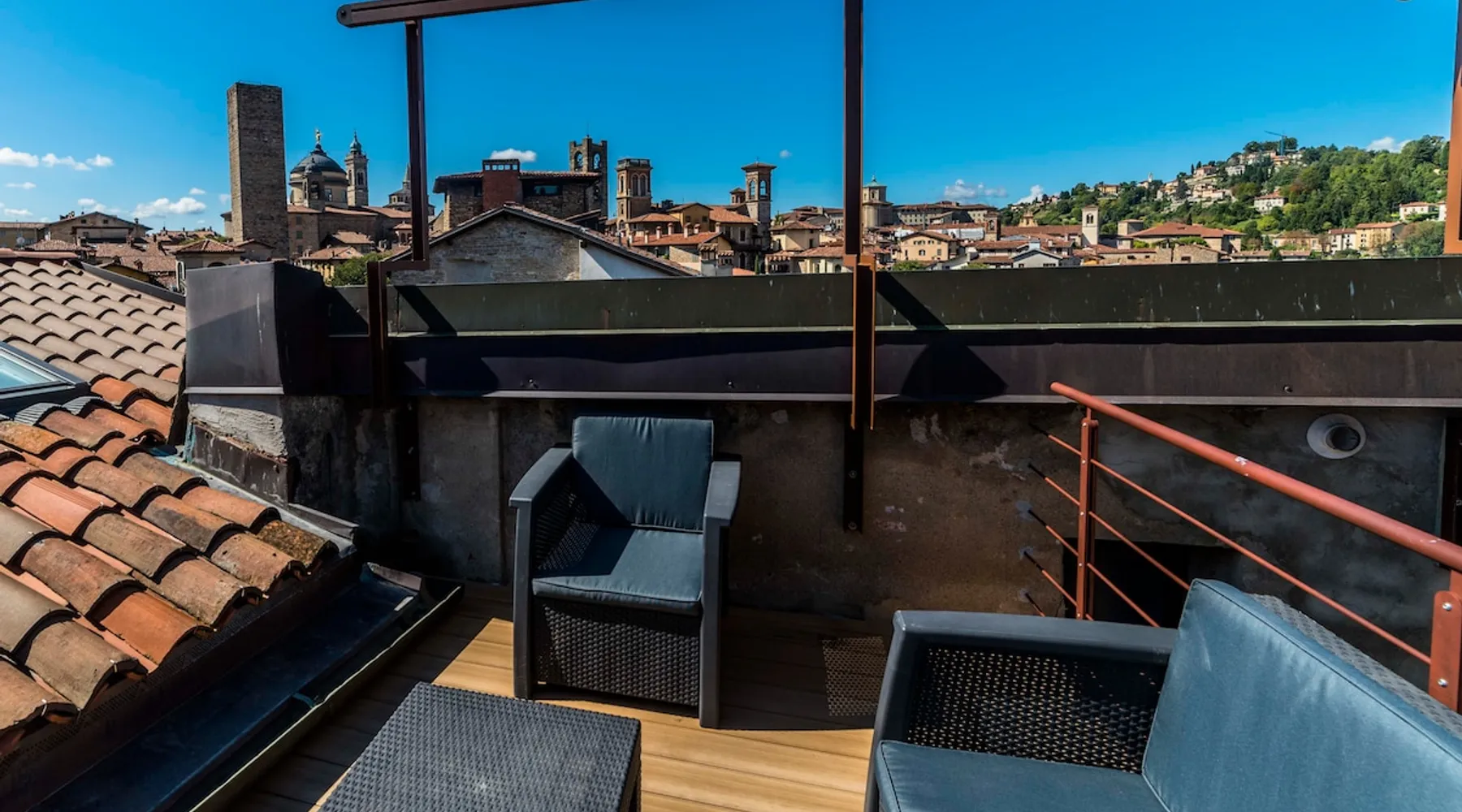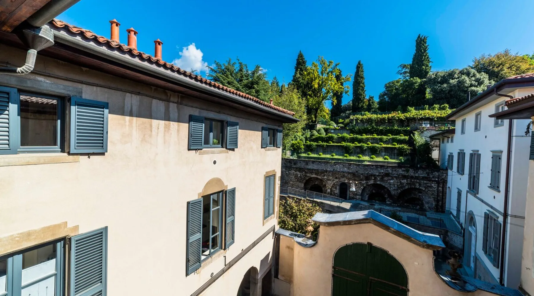 In the heart of Città Alta, a few meters from the historic center, a charming apartment on the second floor in a building from the 1300s and 1600s. Fantastic view and period furnishings, exposed beams. Very cozy. Large and romantic bedroom. Living room with double sofa bed (sleeps 2), modern equipped kitchen (washing machine, dishwasher, oven, large fridge and 4 burners), bathroom with shower. Bright and romantic. Access to the building through an ancient courtyard with a very charming porch. The space Rarely are apartments in historic homes so bright! It is furnished with antique furniture but is renovated, therefore practical and functional. Romantic, with exposed beams, it overlooks the rooftops of Città Alta and offers a magnificent view of Colle di S. Vigilio, especially from the solarium whose use is reserved for guests of the apartment. Guest access Equipped with a solarium with table and chairs and a remote-controlled awning. There is also an inner courtyard with a porch where guests can sit and enjoy the coolness and quiet of the courtyard in summer. Very quiet, peaceful area, but 100 meters from the shops. Other things to note Bergamo and Città Alta are beautiful. Being able to stay in a medium-sized apartment, very bright in a period context with fresco on the stairs, original wrought iron staircase, period furniture, stately, elegant but also romantic and refined will make your vacation even more enjoyable. Registration Details IT016024C2BYAYYM2F