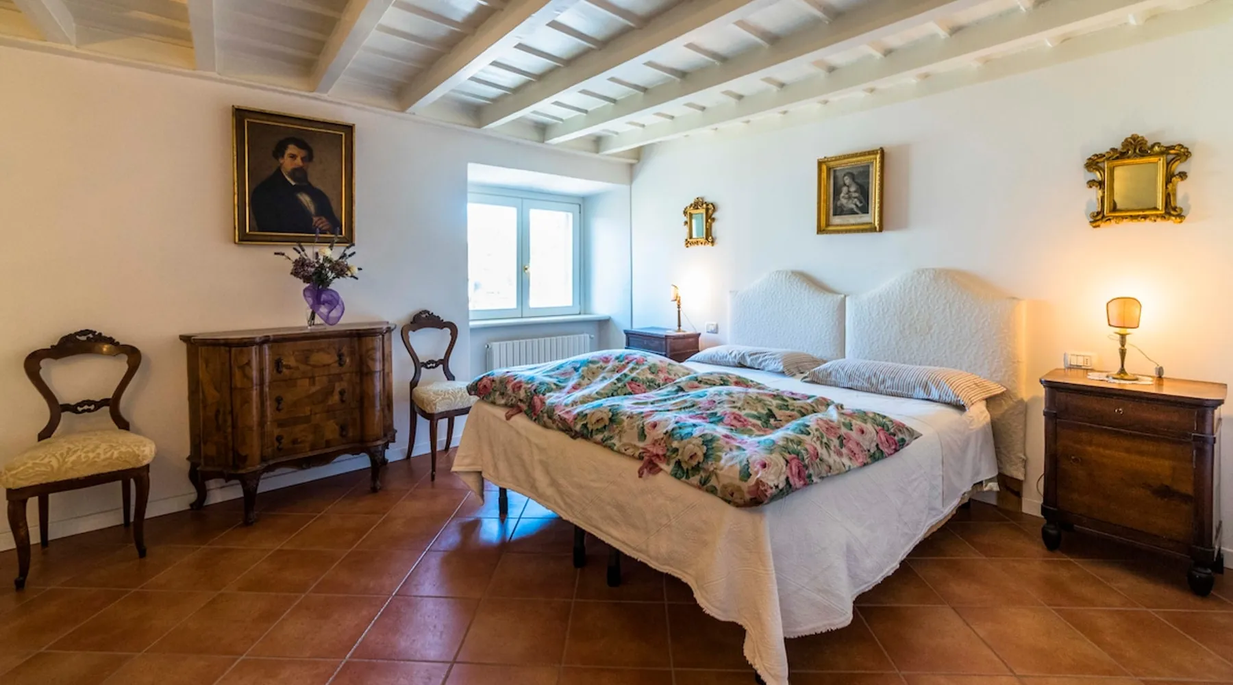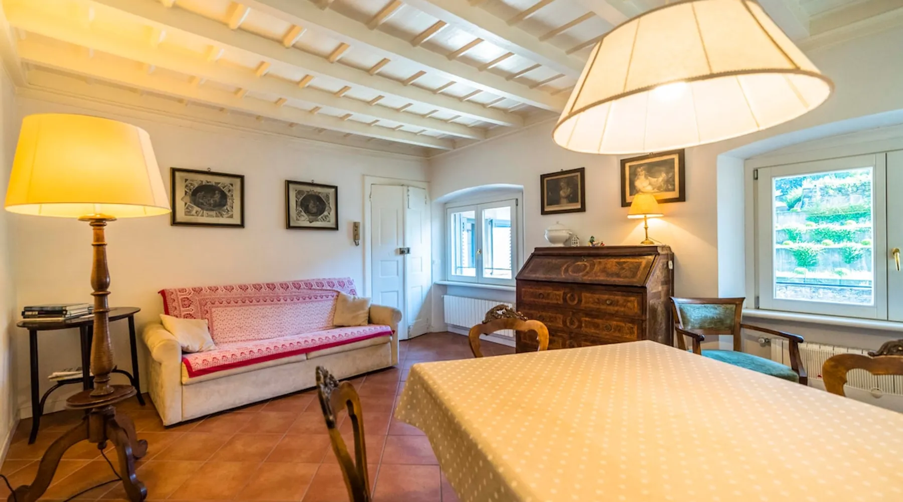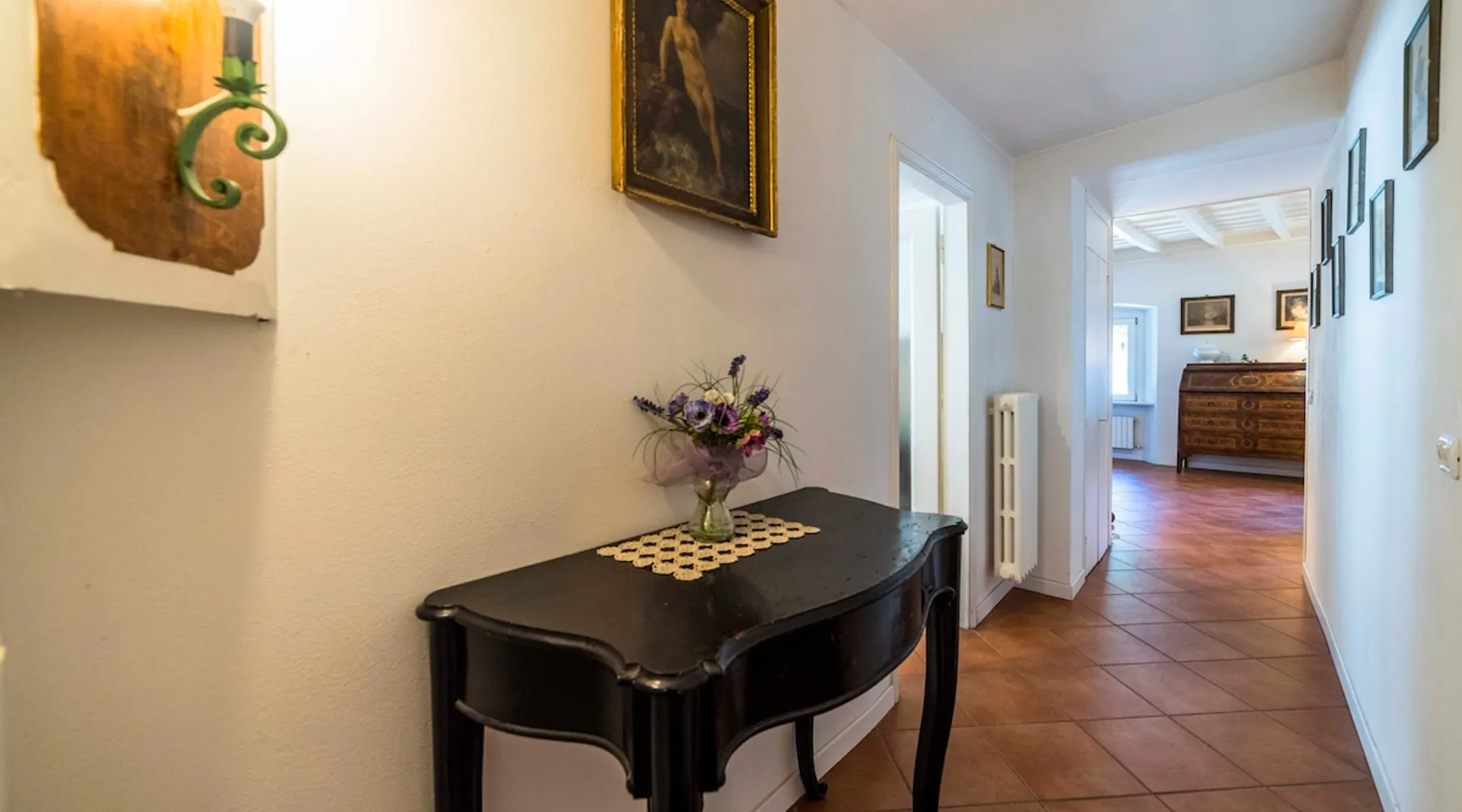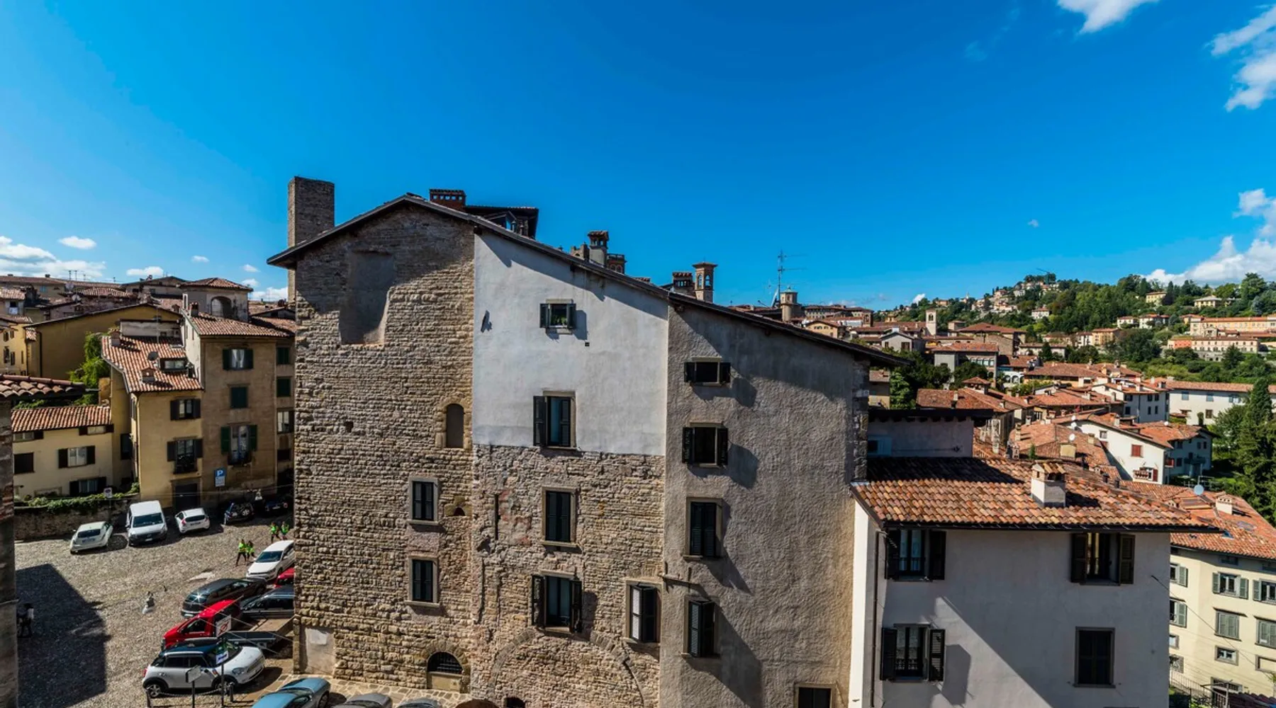 In the heart of Città Alta, a few meters from the historic center, a charming apartment on the second floor in a building from the 1300s and 1600s. Fantastic view and period furnishings, exposed beams. Very cozy. Large and romantic bedroom. Living room with double sofa bed (sleeps 2), modern equipped kitchen (washing machine, dishwasher, oven, large fridge and 4 burners), bathroom with shower. Bright and romantic. Access to the building through an ancient courtyard with a very charming porch. The space Rarely are apartments in historic homes so bright! It is furnished with antique furniture but is renovated, therefore practical and functional. Romantic, with exposed beams, it overlooks the rooftops of Città Alta and offers a magnificent view of Colle di S. Vigilio, especially from the solarium whose use is reserved for guests of the apartment. Guest access Equipped with a solarium with table and chairs and a remote-controlled awning. There is also an inner courtyard with a porch where guests can sit and enjoy the coolness and quiet of the courtyard in summer. Very quiet, peaceful area, but 100 meters from the shops. Other things to note Bergamo and Città Alta are beautiful. Being able to stay in a medium-sized apartment, very bright in a period context with fresco on the stairs, original wrought iron staircase, period furniture, stately, elegant but also romantic and refined will make your vacation even more enjoyable. Registration Details IT016024C2BYAYYM2F