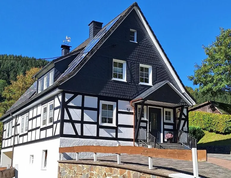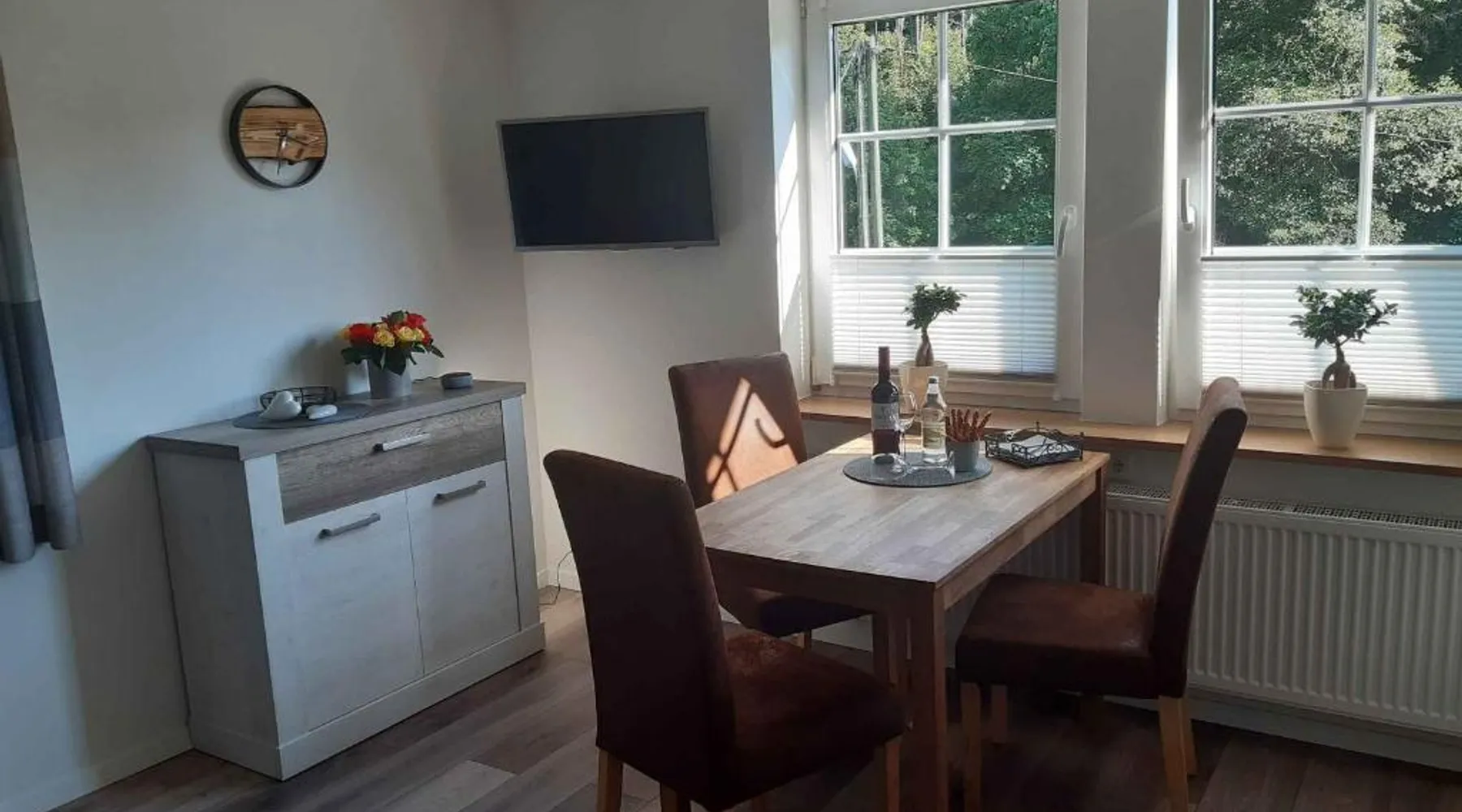 Spacious Accommodations: Ferienwohnung Zur Basemicke in Schmallenberg offers a spacious 3-star apartment with one bedroom and one bathroom. Guests enjoy a terrace with garden and river views, complemented by a fully equipped kitchen. Modern Amenities: The apartment features free WiFi, a dishwasher, and a washing machine. Additional amenities include a hairdryer, coffee machine, and free toiletries. An outdoor seating area and ski storage provide additional comfort. Convenient Location: Located 41 mi from Paderborn-Lippstadt Airport, the property is near attractions such as Kahler Asten (4.3 mi), St.-Georg-Schanze (6.2 mi), and Rothaargebirge Nature Park (17 mi). Guests can enjoy skiing, hiking, and cycling in the surrounding area. Highly Rated by Guests: Ferienwohnung Zur Basemicke receives high ratings from guests for its spaciousness and excellent facilities. Featuring a private entrance, this spacious apartment also consists of 1 separate bedroom and 1 bathroom with a bath and a shower. The fully equipped kitchen features a stovetop, a refrigerator, a dishwasher and kitchenware. Boasting a terrace with garden views, this apartment also provides a coffee machine and a TV with satellite channels. The unit offers 2 beds.