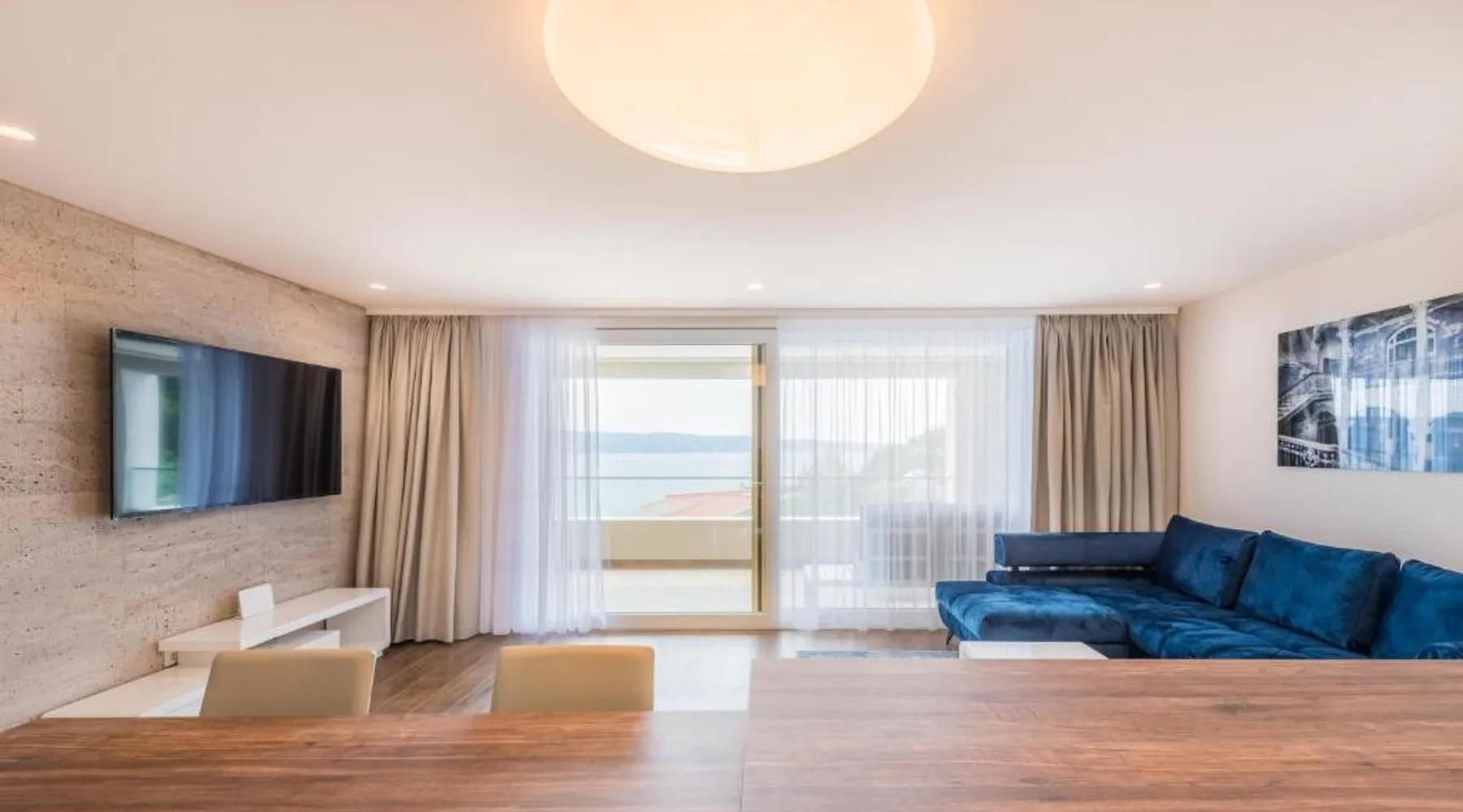 Spacious Accommodations: Apartment Olijfboom in Dugi Rat offers a spacious layout with two bedrooms and a living room. Guests enjoy sea views, air-conditioning, and a balcony. Modern Amenities: The apartment features a terrace, free WiFi, and a elevator. Additional amenities include a washing machine, dishwasher, and a fully equipped kitchen with a coffee machine. Convenient Location: Located 22 mi from Split Airport, the property is a 6-minute walk from Dugi Rat Beach. Nearby attractions include Diocletian's Palace and Park Mladeži Stadium, each 13 mi away. Activities and Surroundings: Guests can enjoy water sports, boating, kayaking, and canoeing. The surrounding area offers quiet street and garden views. Highly rated by guests. Featuring a private entrance, this air-conditioned apartment is consisted of of 1 living room, 2 separate bedrooms and 1 bathroom with a walk-in shower and a hairdryer. Meals can be prepared in the kitchen, which comes with a stovetop, a refrigerator, a dishwasher and kitchenware. The spacious apartment offers a washing machine, soundproof walls, a coffee machine, a flat-screen TV with cable channels, as well as sea views. The unit offers 3 beds.