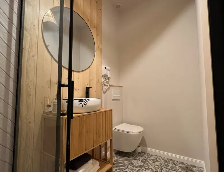 Casa Ido is located in the village of Peştera, this being one of the most beautiful villages in Romania, at an altitude of almost 1100m. The house offers an amazing view from all sides to the Bucegi Mountains and Piatra Craiului. With a perfect mix and a good taste between modern and rustic design, Casa Ido is the right choice for those looking for peace and privacy, away from the noise and daily crowds and who want a successful stay with family or friends. The space For increased comfort, Casa Ido accommodates a maximum of 6 adults and 3 children (ages 2-12). On the ground floor you will find 1 bedroom with a king size double bed (180cm x 200cm), with its own bathroom, a service bathroom, a spacious living room with generous windows to enjoy the view right from the comfort of the sofa and a fully equipped kitchen: combine refrigerator, oven and induction hob and a Nespresso espresso machine for the start of a perfect morning. The house has underfloor heating. Upstairs two bedrooms with king size bed (180cmx200cm) and 2 bathrooms. Outside, you can enjoy the spectacle of nature from the terrace and related garden areas. Guest access Access to the property parking lot is only 250 meters from the main road.